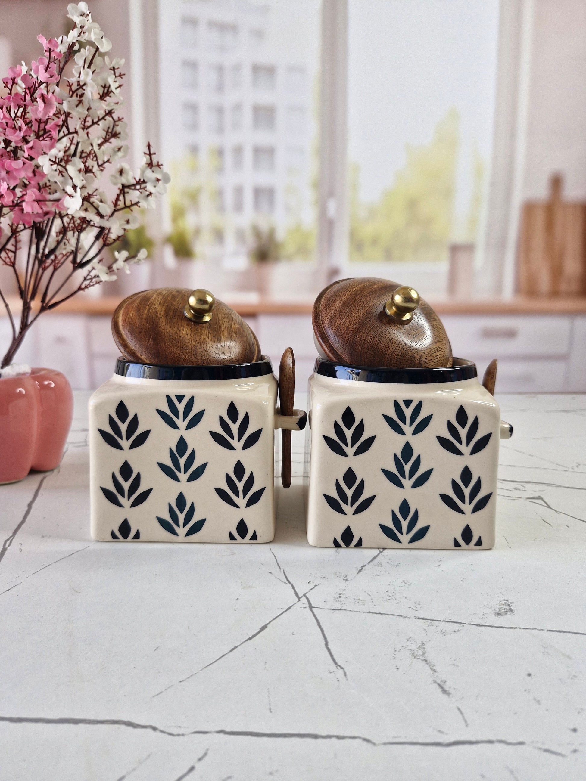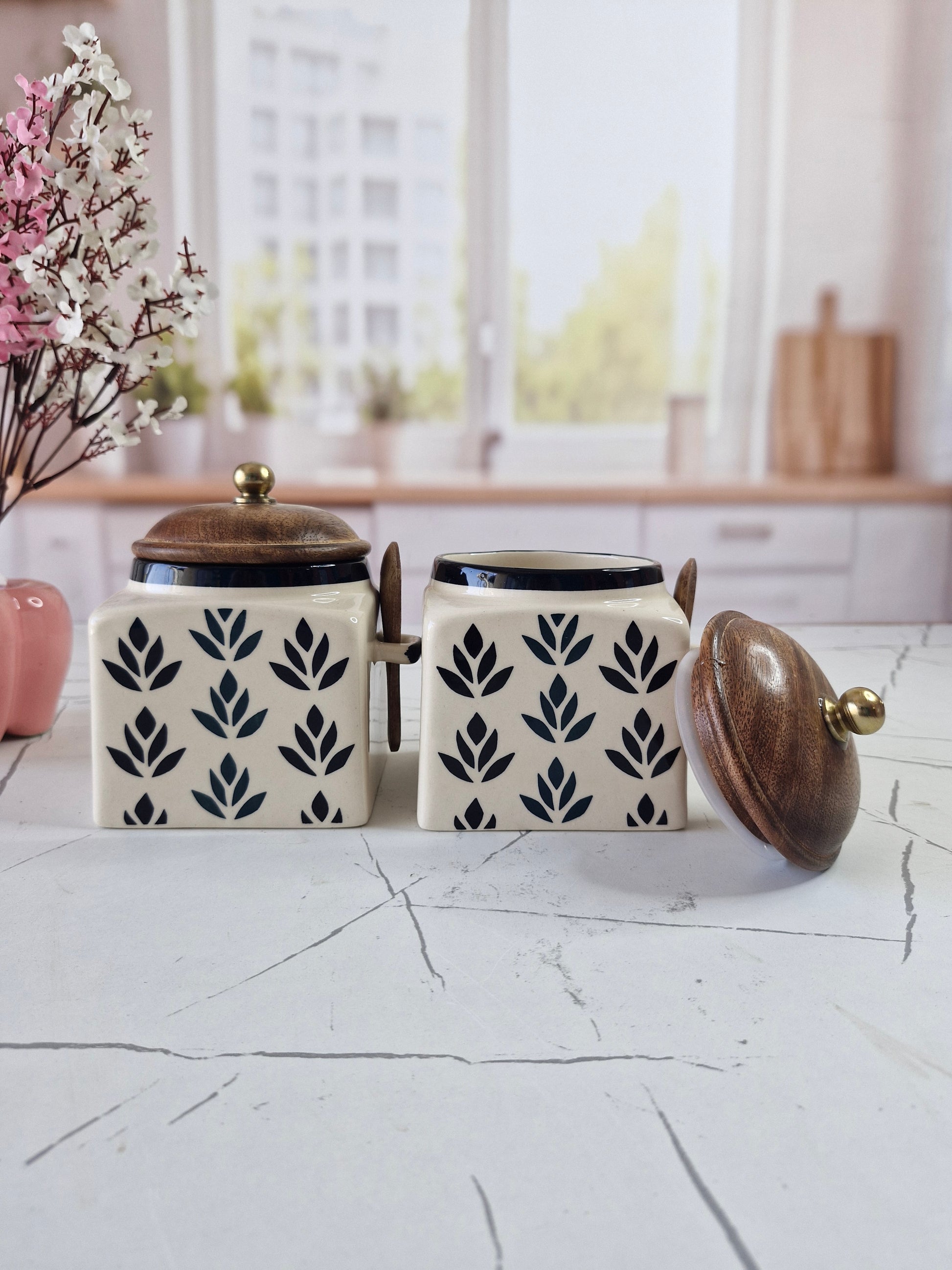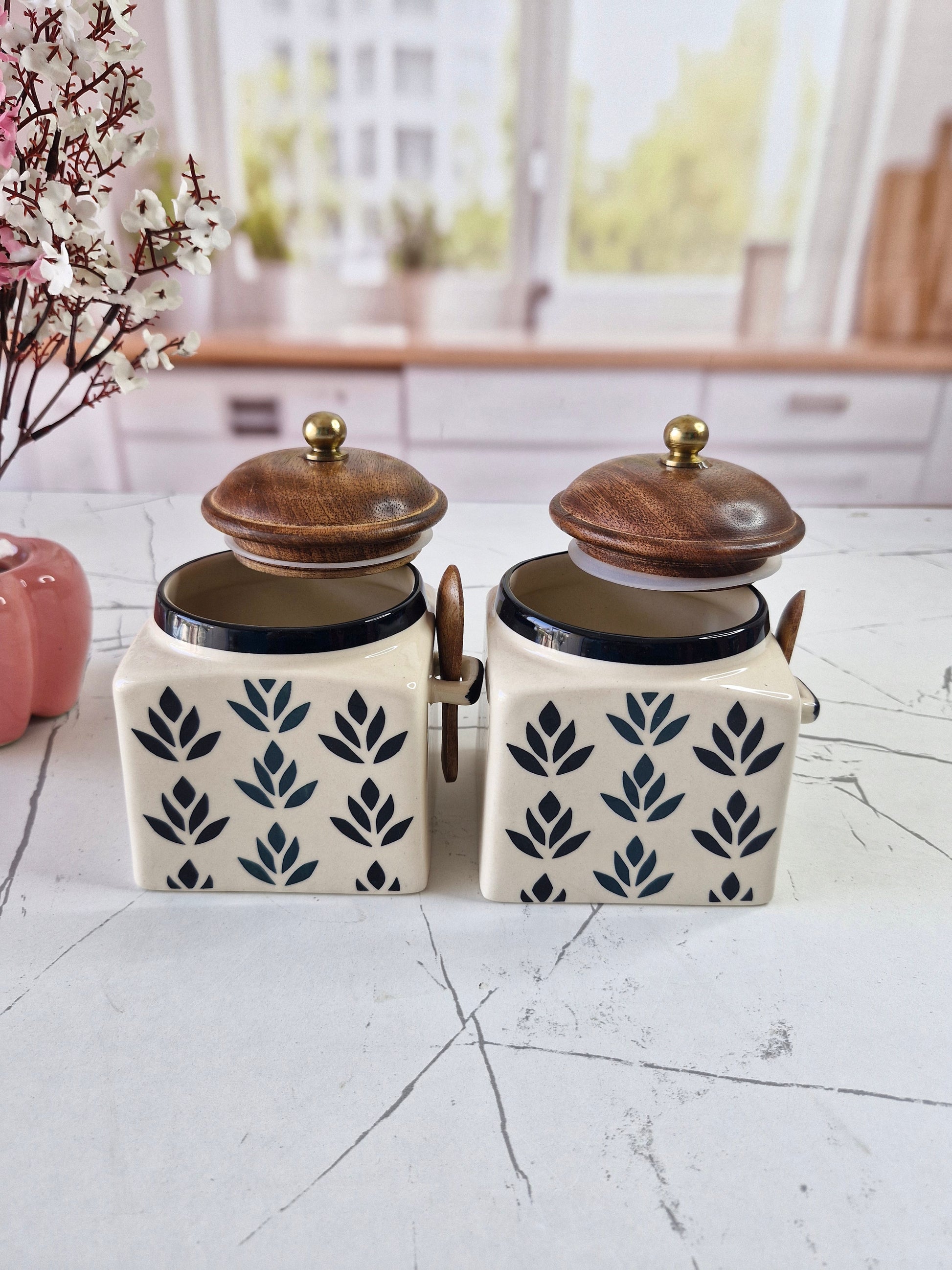 Lotus Hand Painted Designs Airtight Square Jars (1/2 kg) with spoon for Spices & Cookies