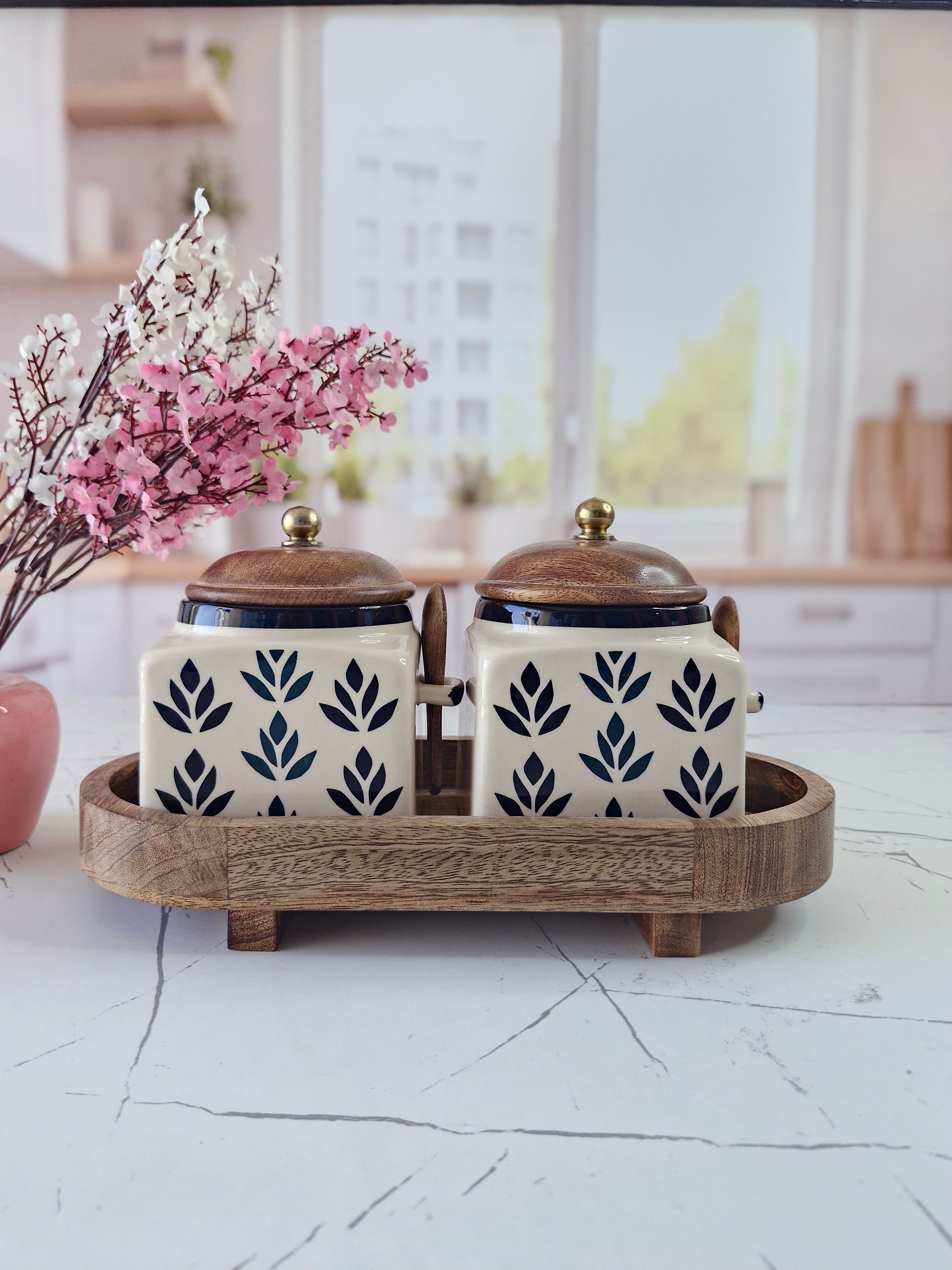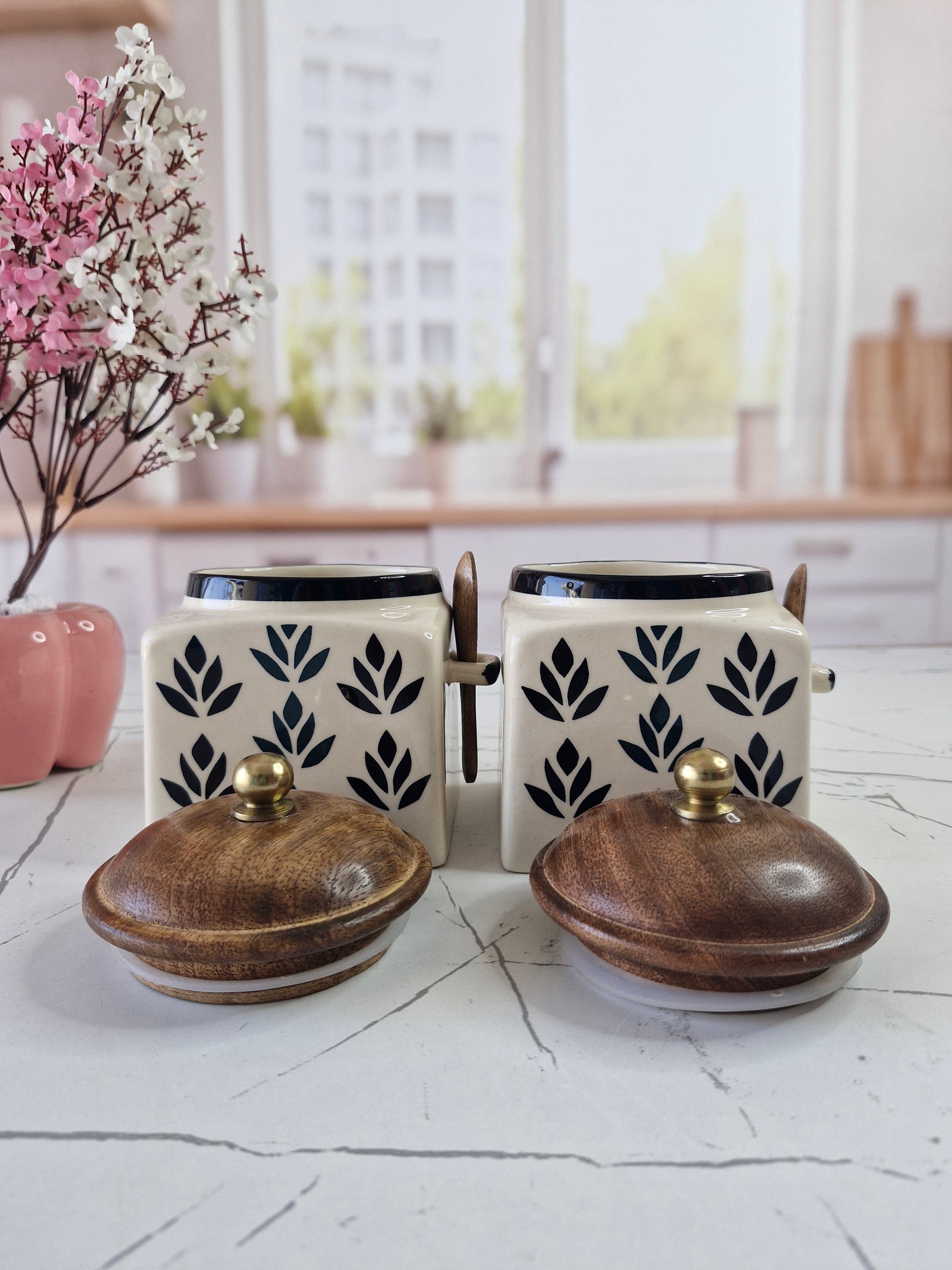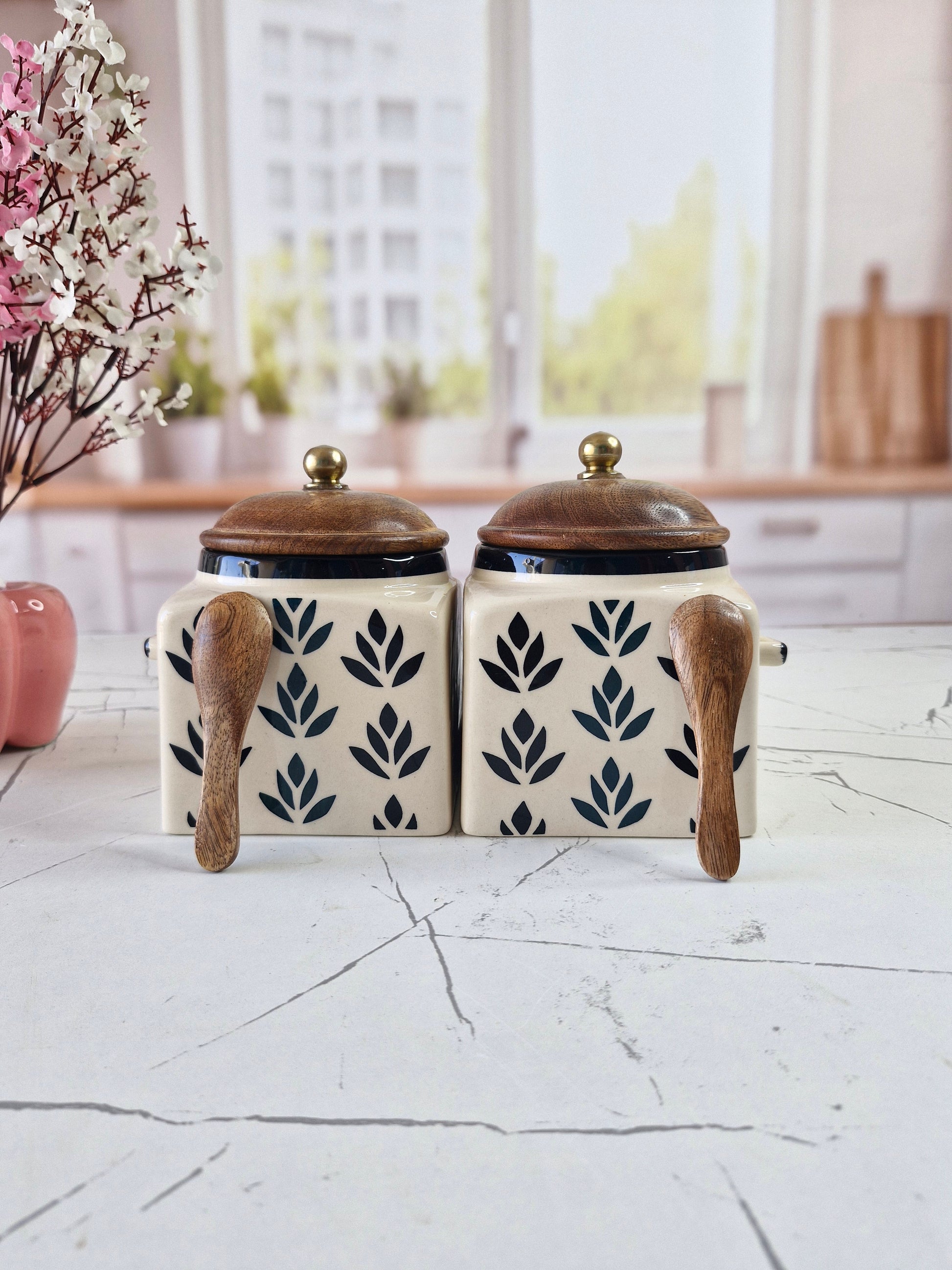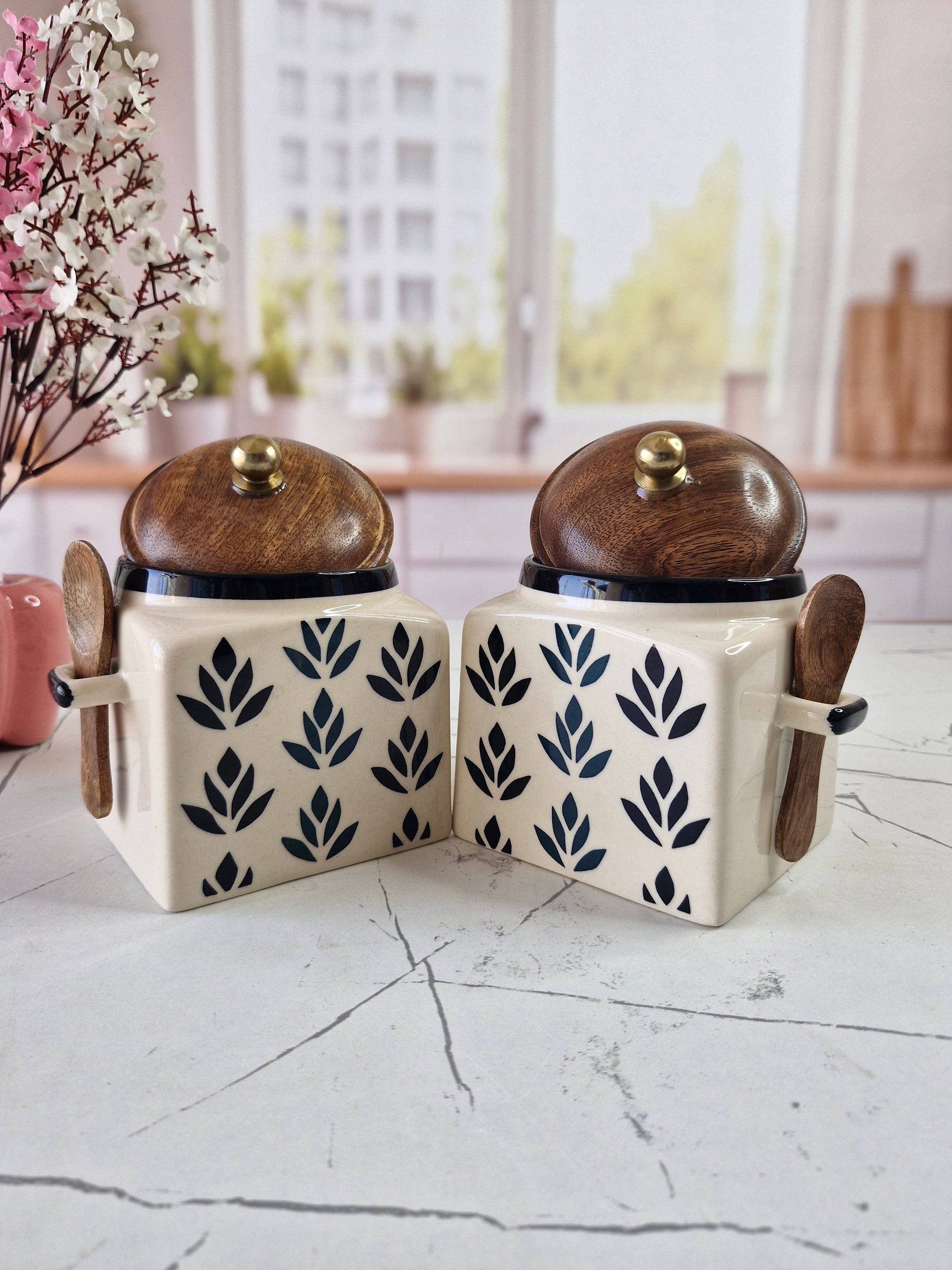 Lotus Hand Painted Designs Airtight Square Jars (1/2 kg) with spoon for Spices & Cookies
