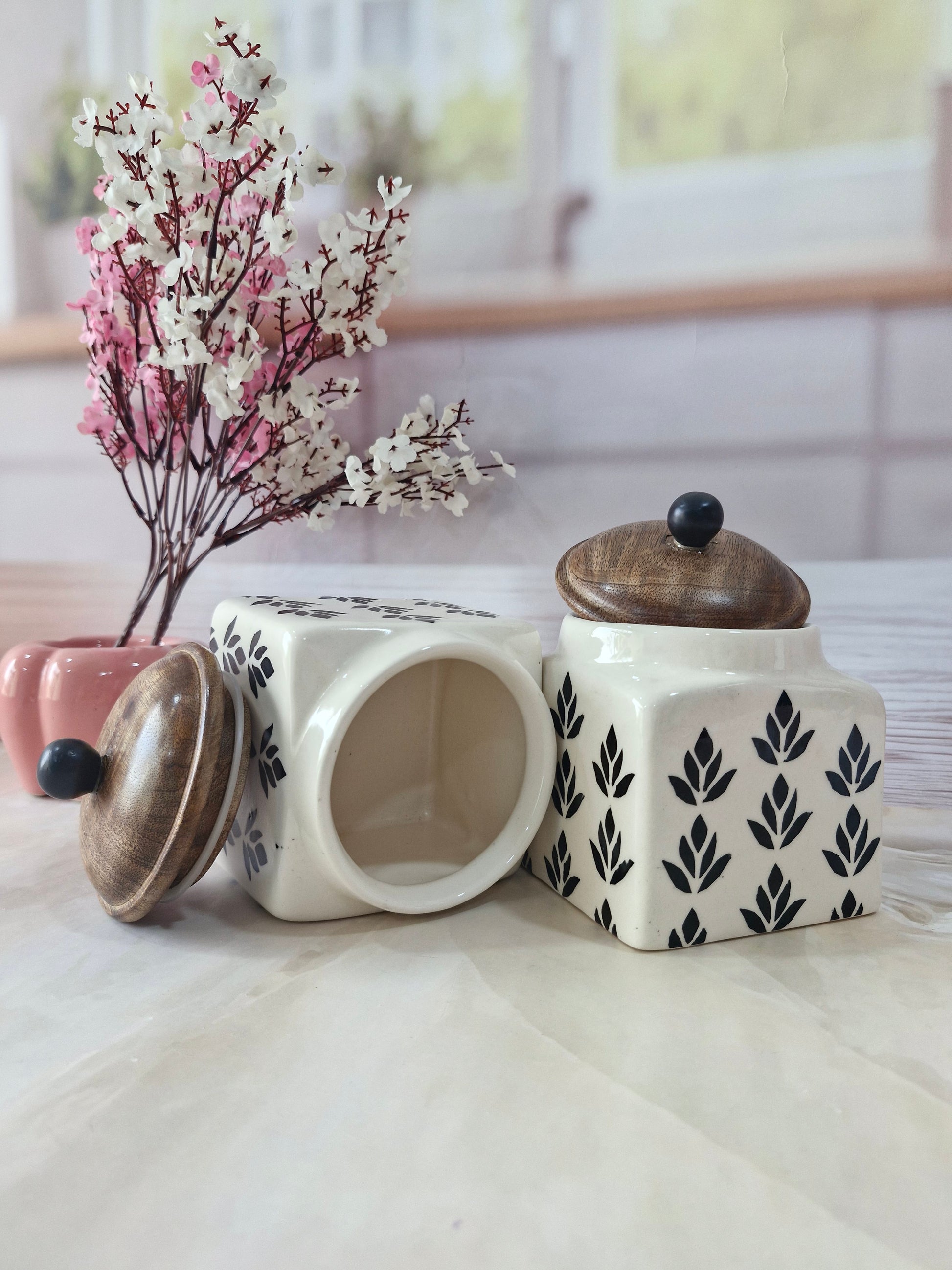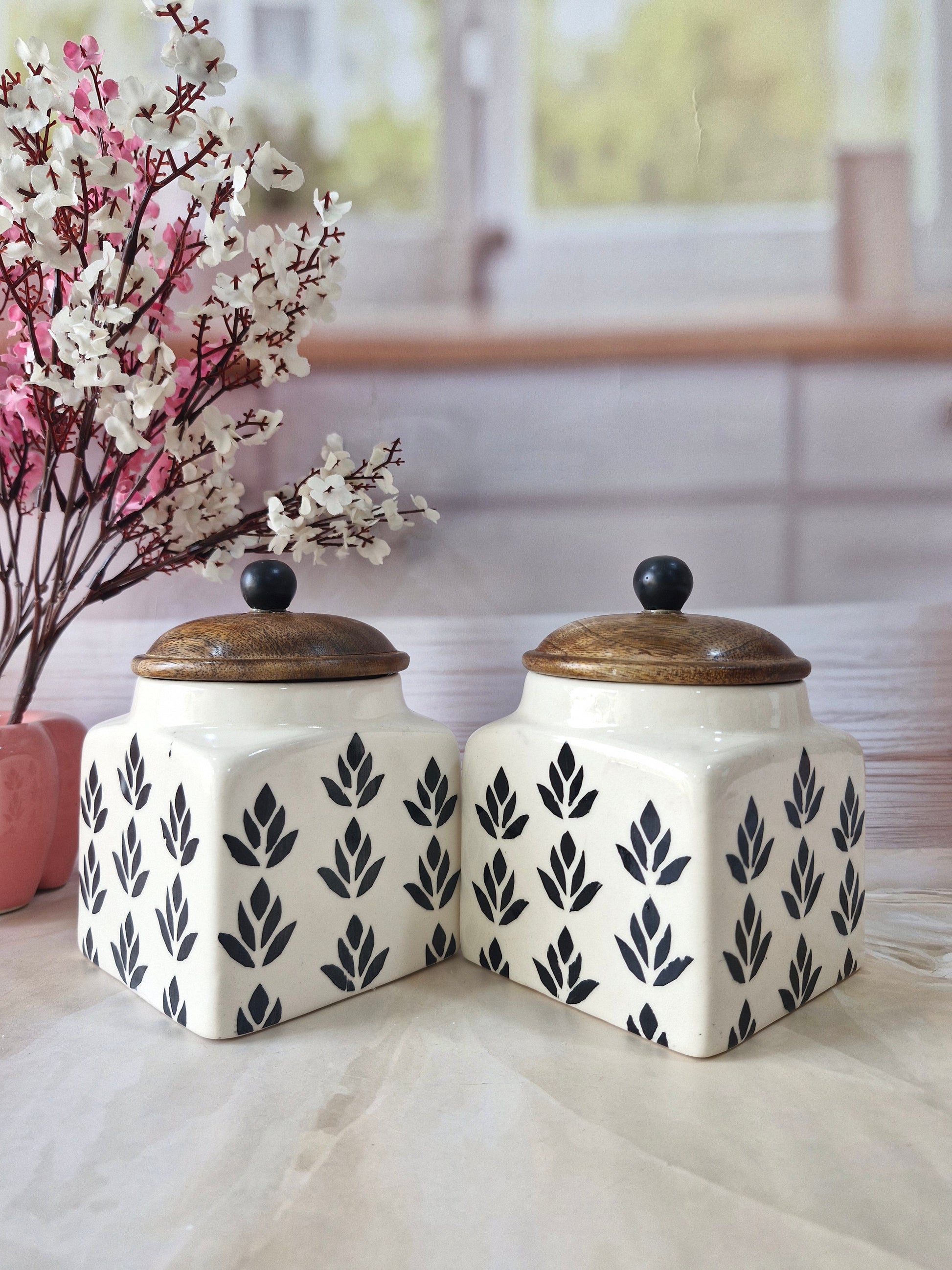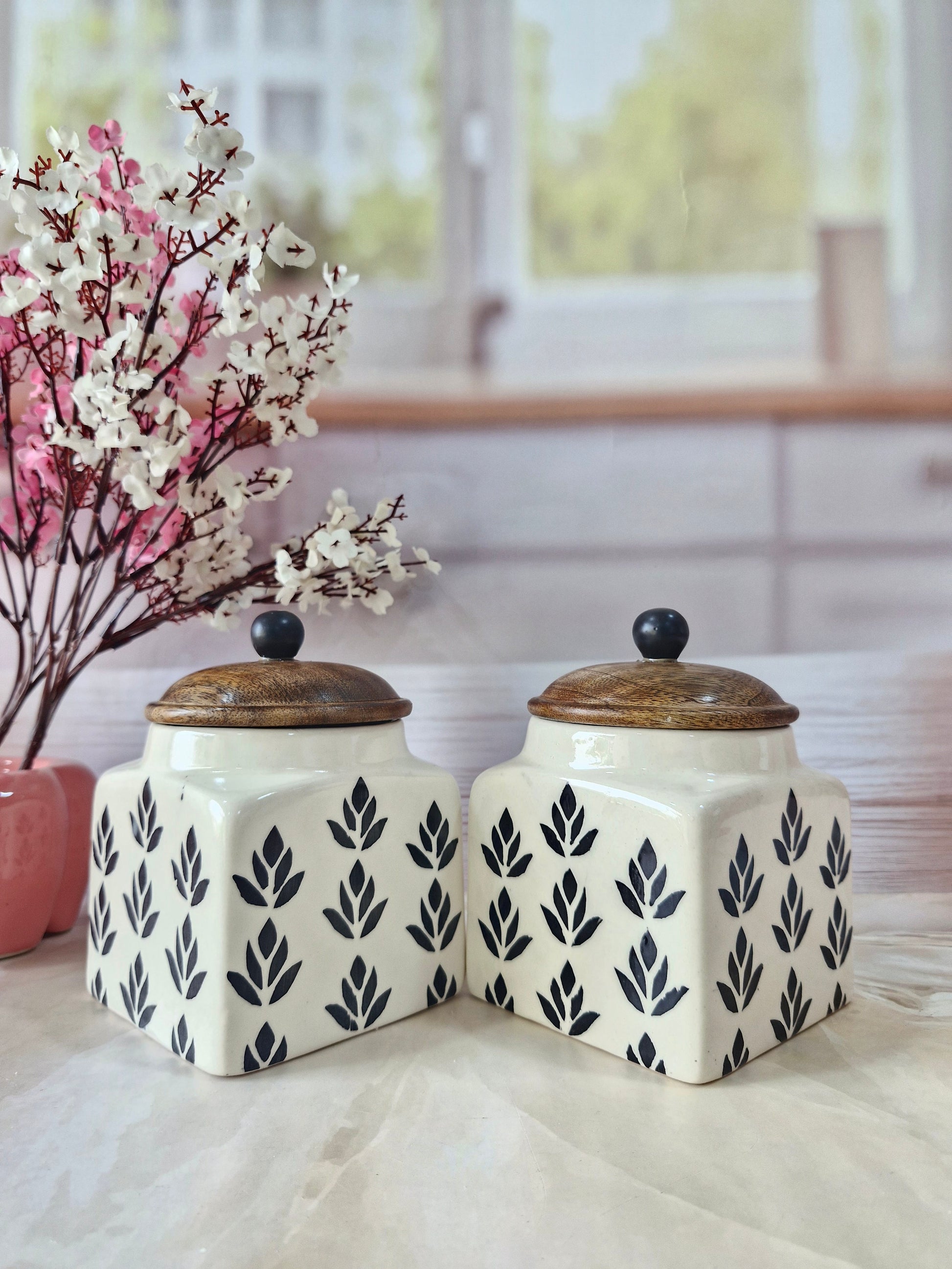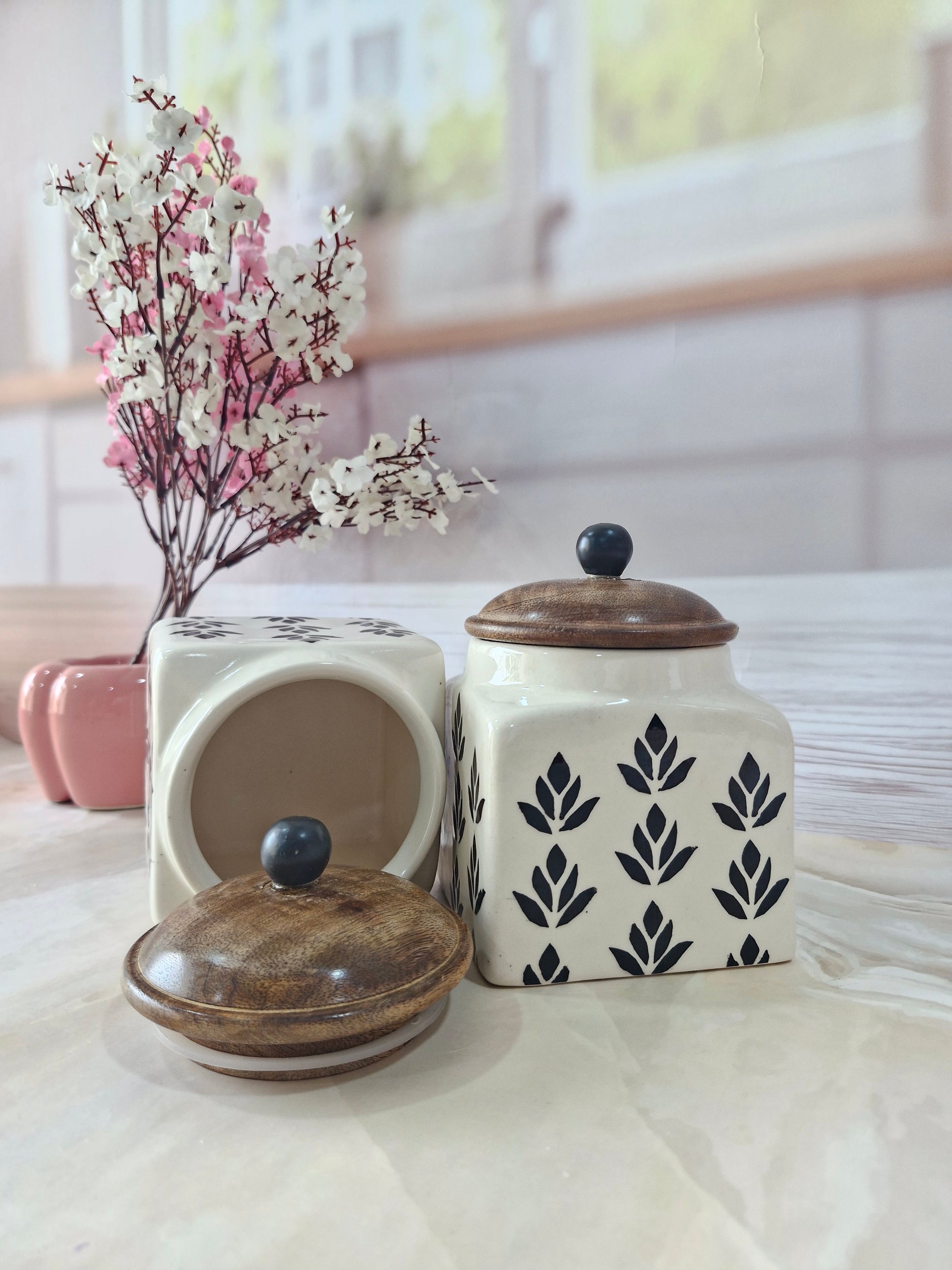 Lotus Hand Painted Designs with Love Retreat (1/2 kg) Set of 2 Airtight Square Jars for Spices & Cookies