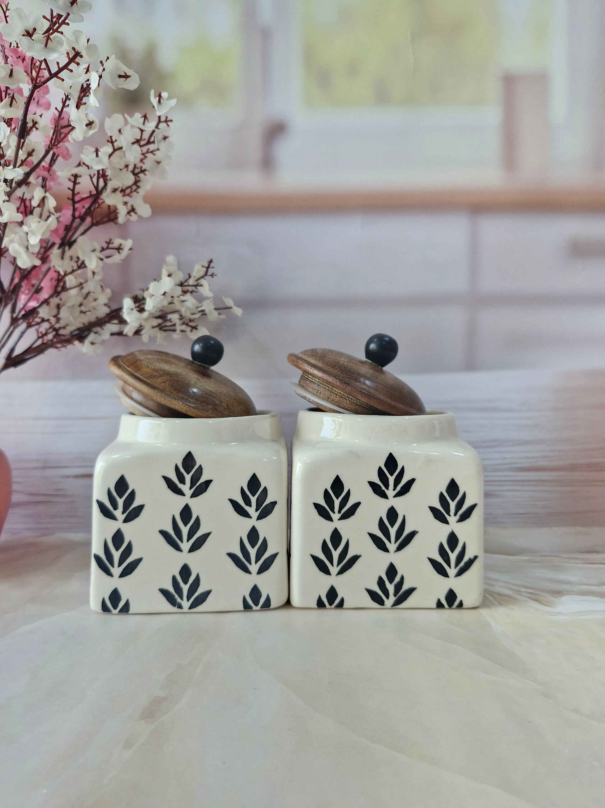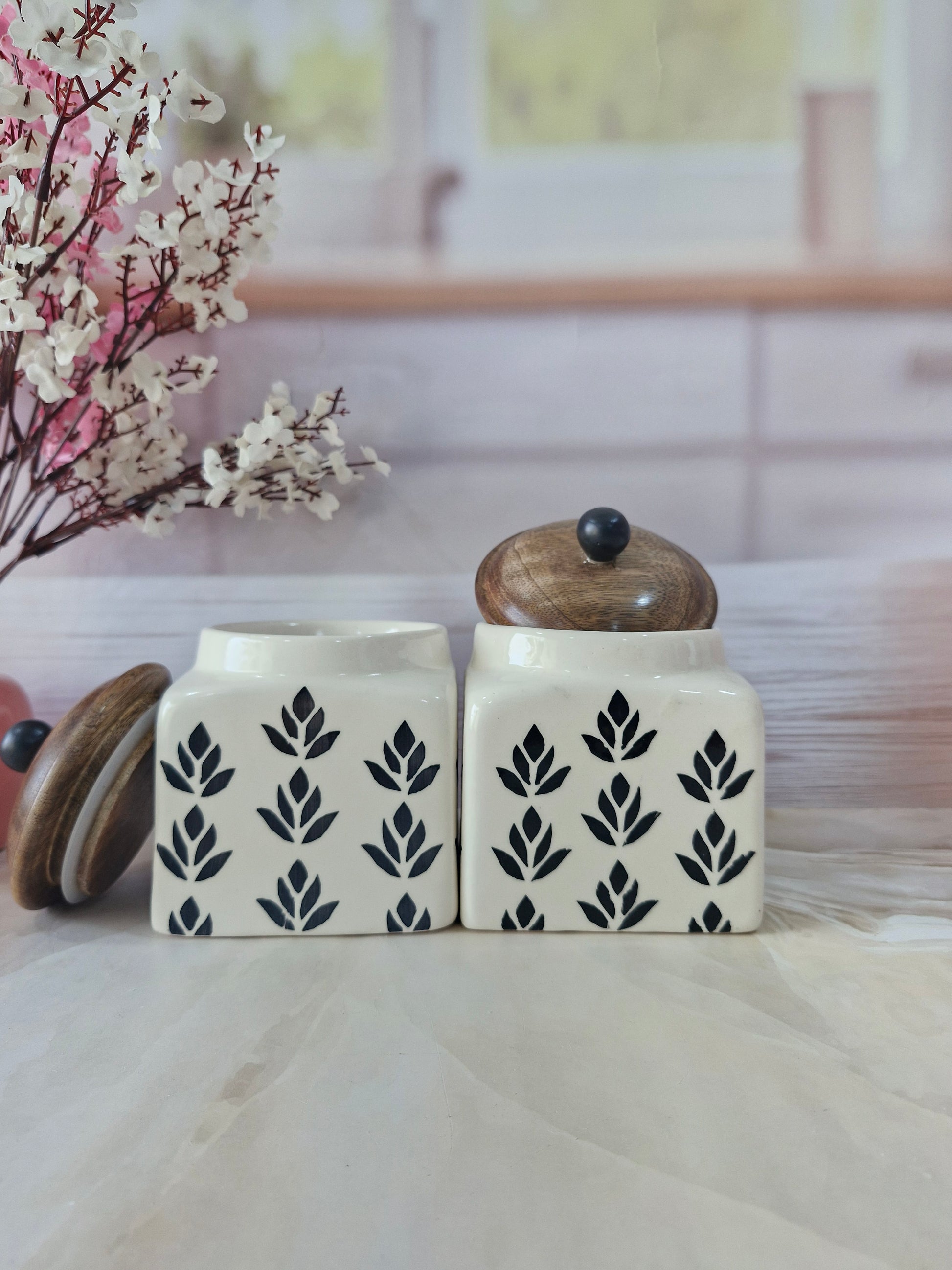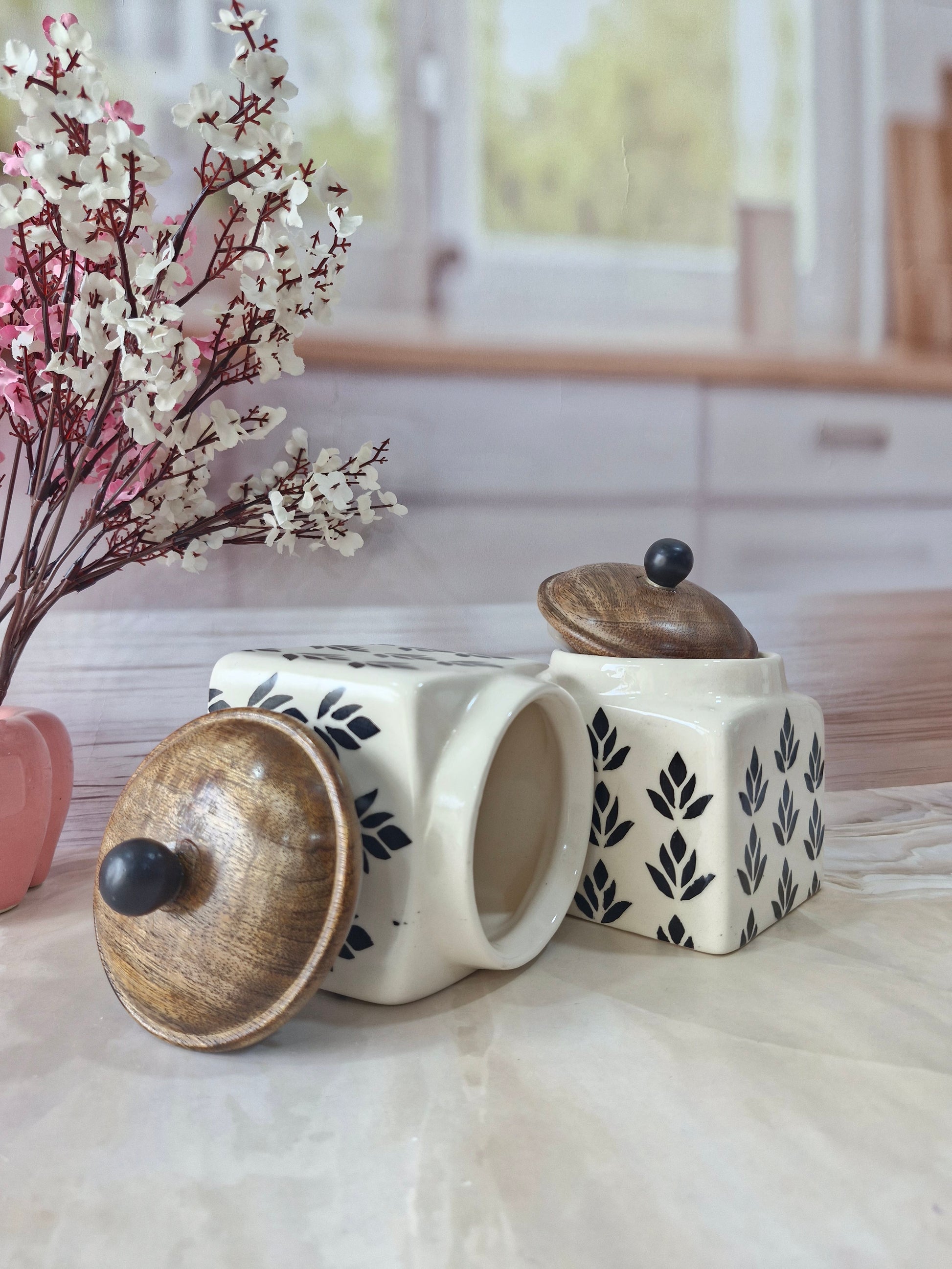 Lotus Hand Painted Designs with Love Retreat (1/2 kg) Set of 2 Airtight Square Jars for Spices & Cookies
