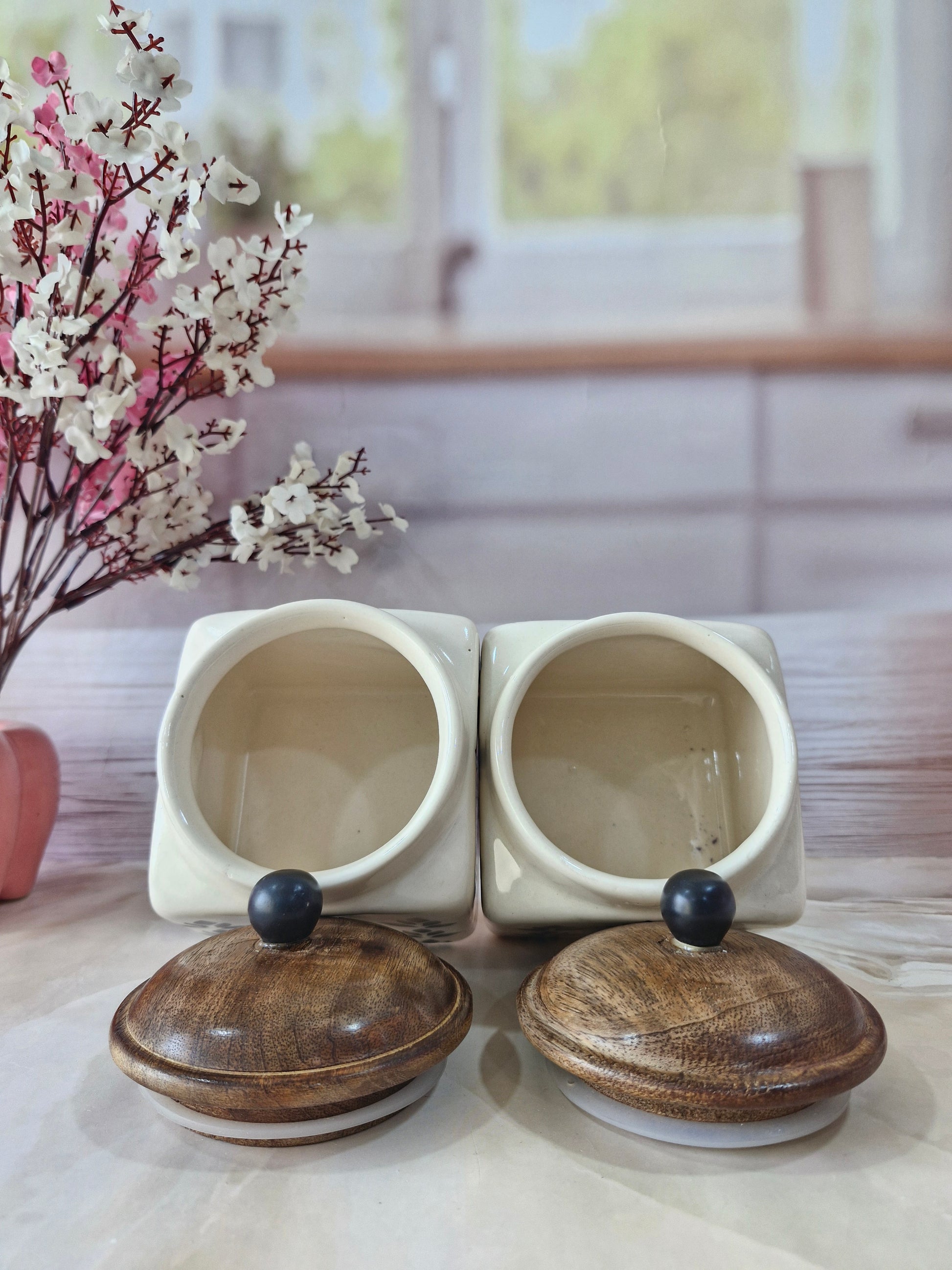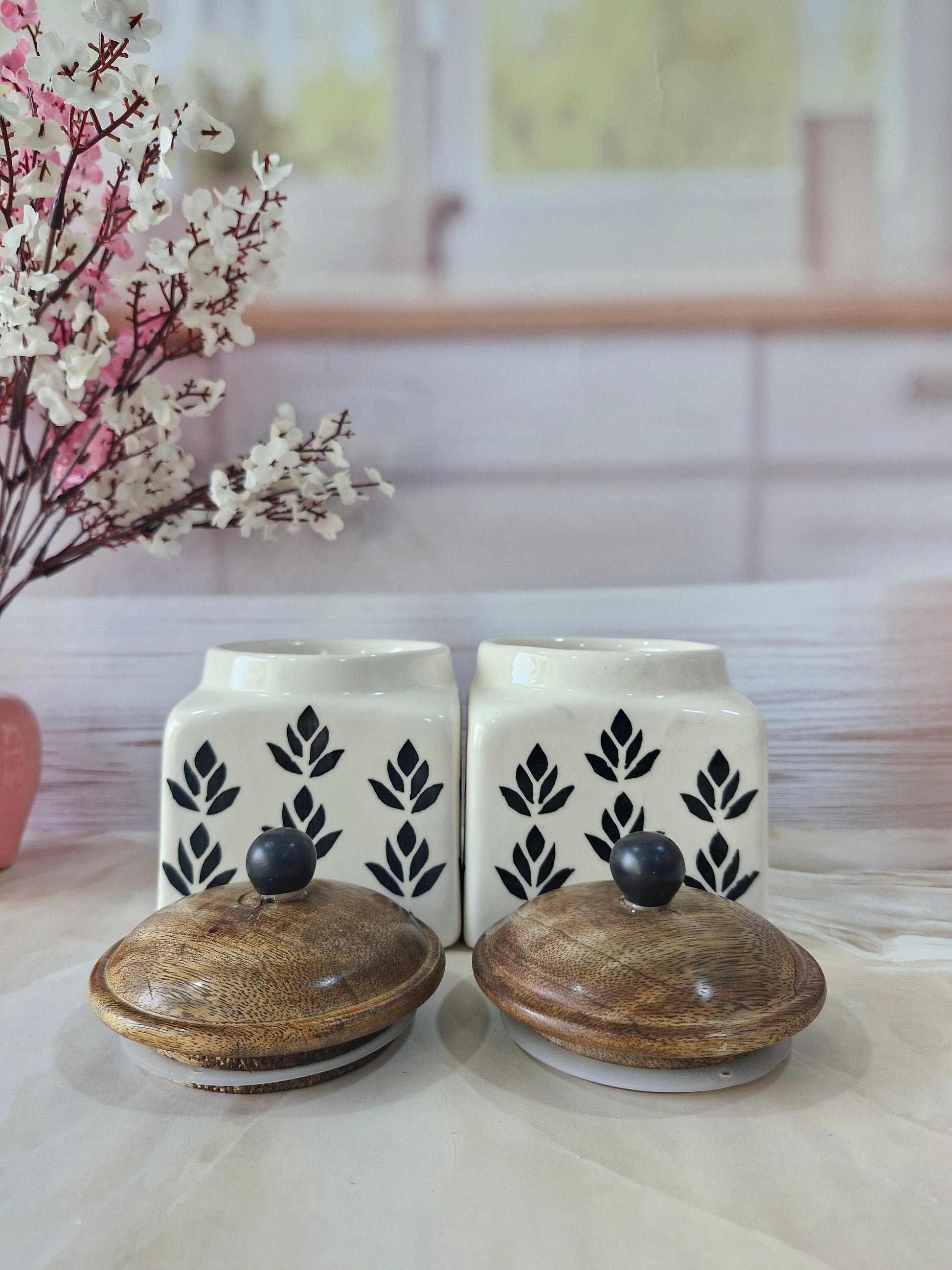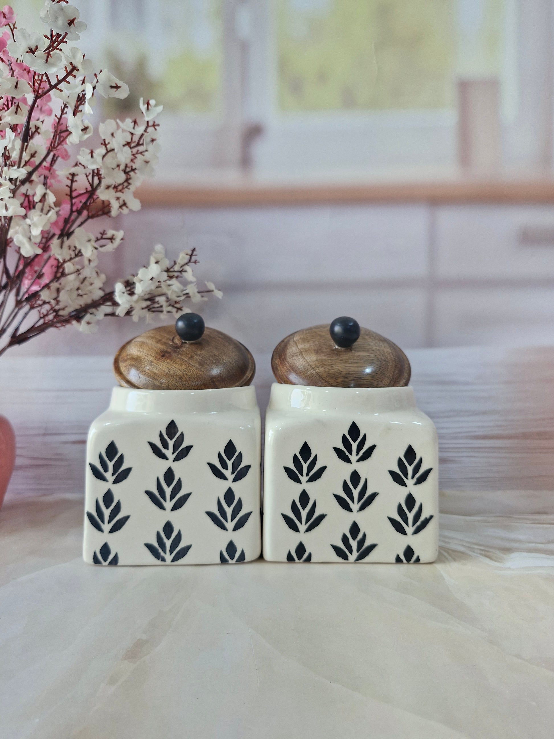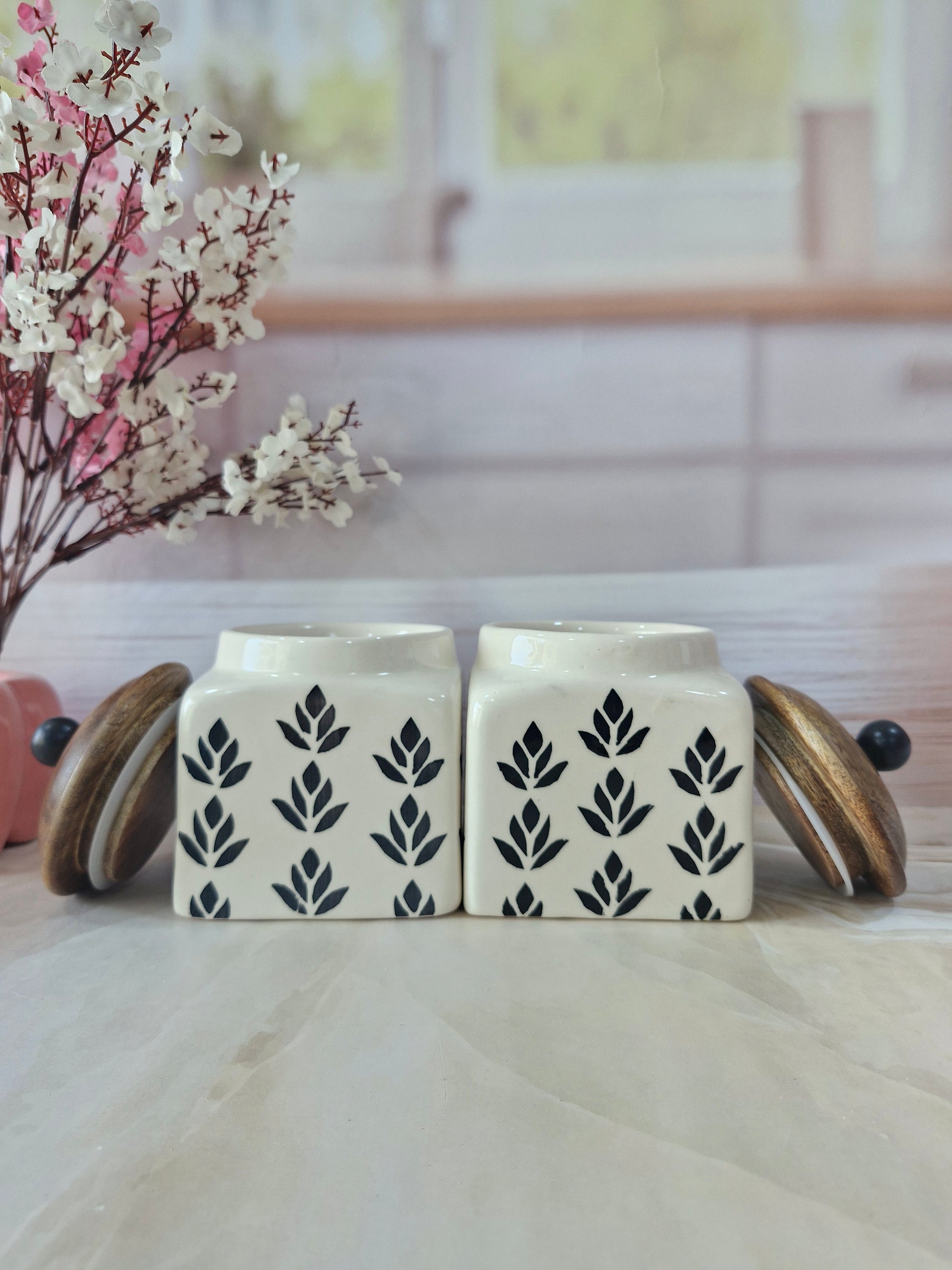 Lotus Hand Painted Designs with Love Retreat (1/2 kg) Set of 2 Airtight Square Jars for Spices & Cookies