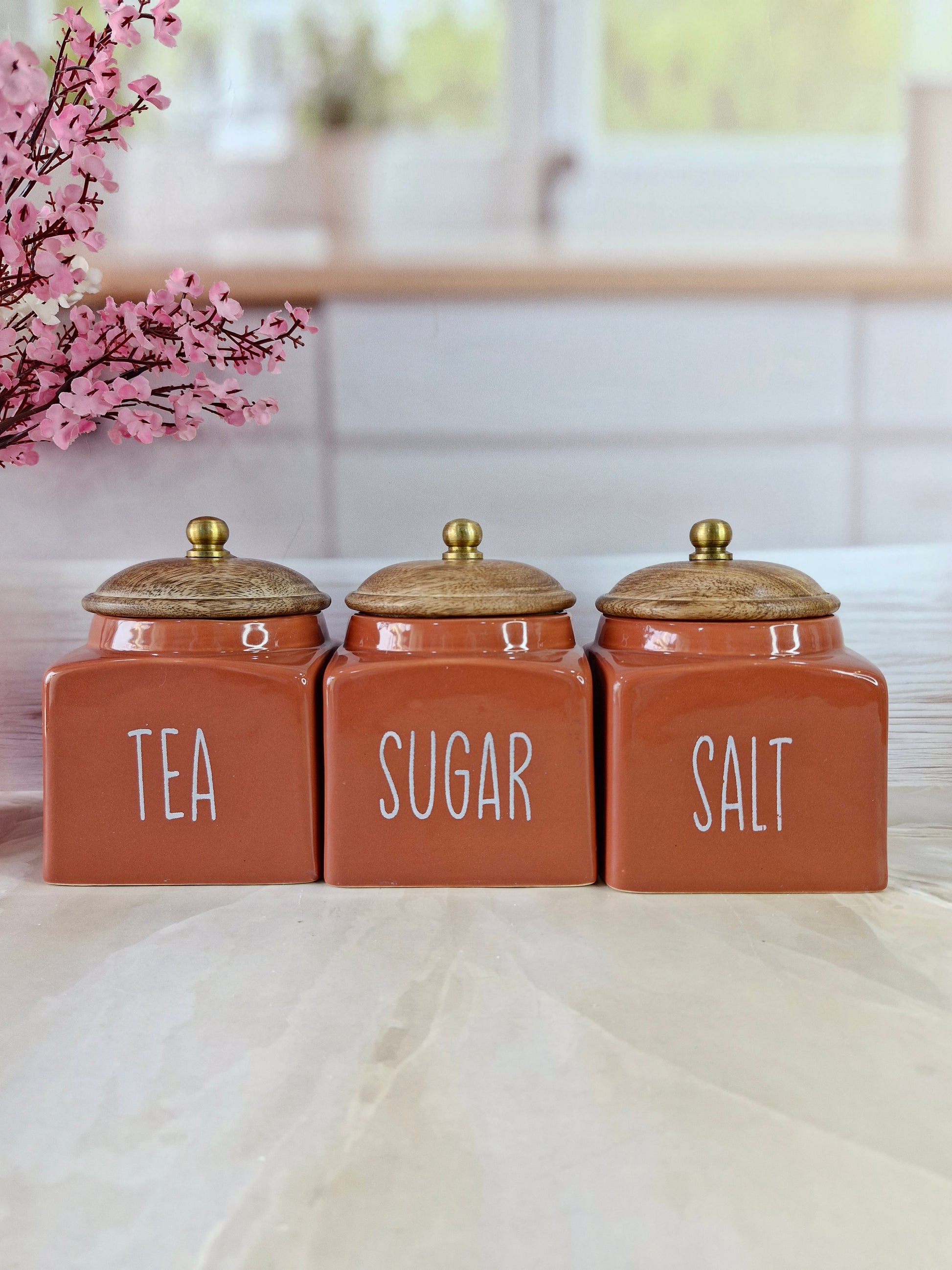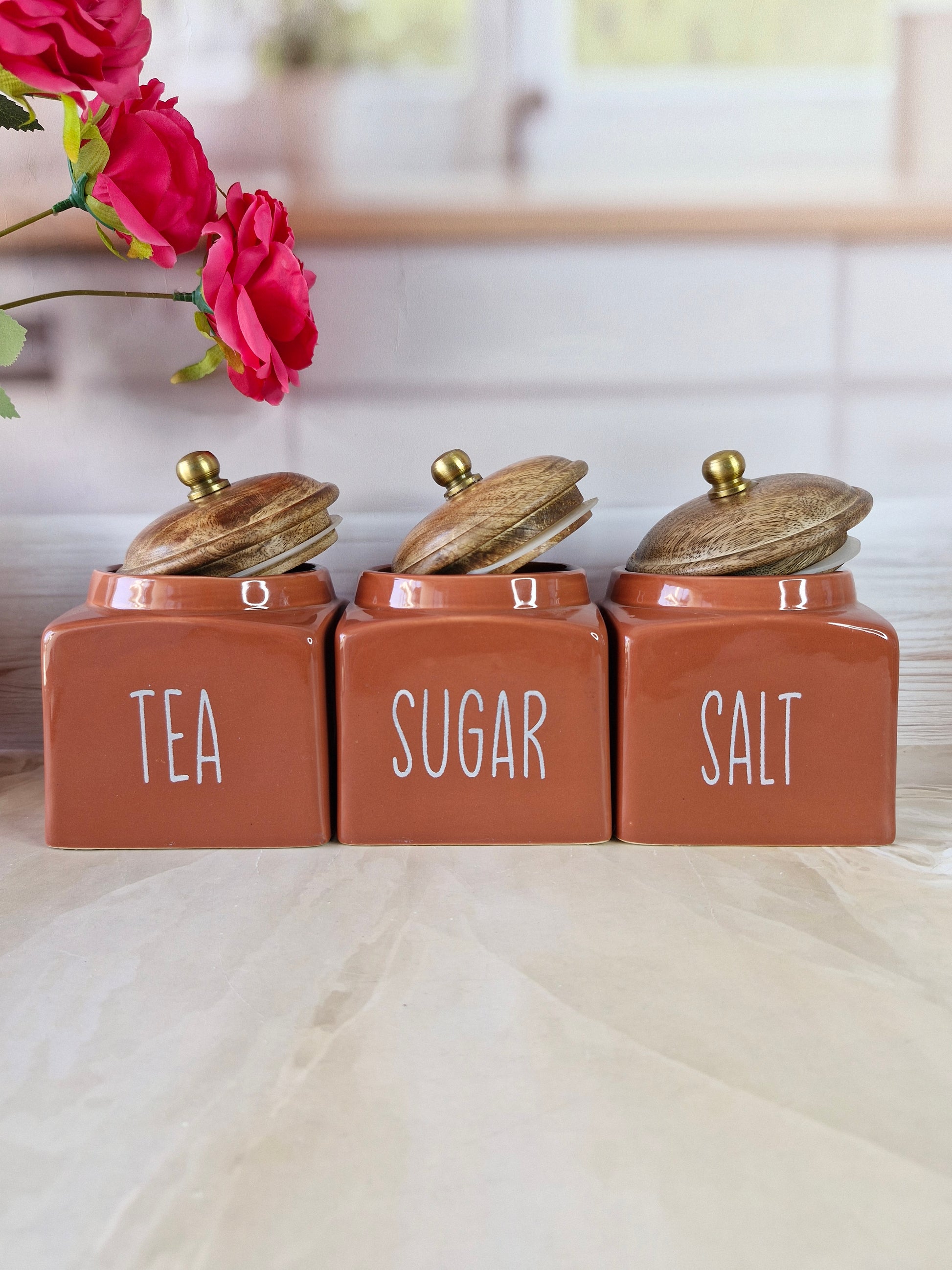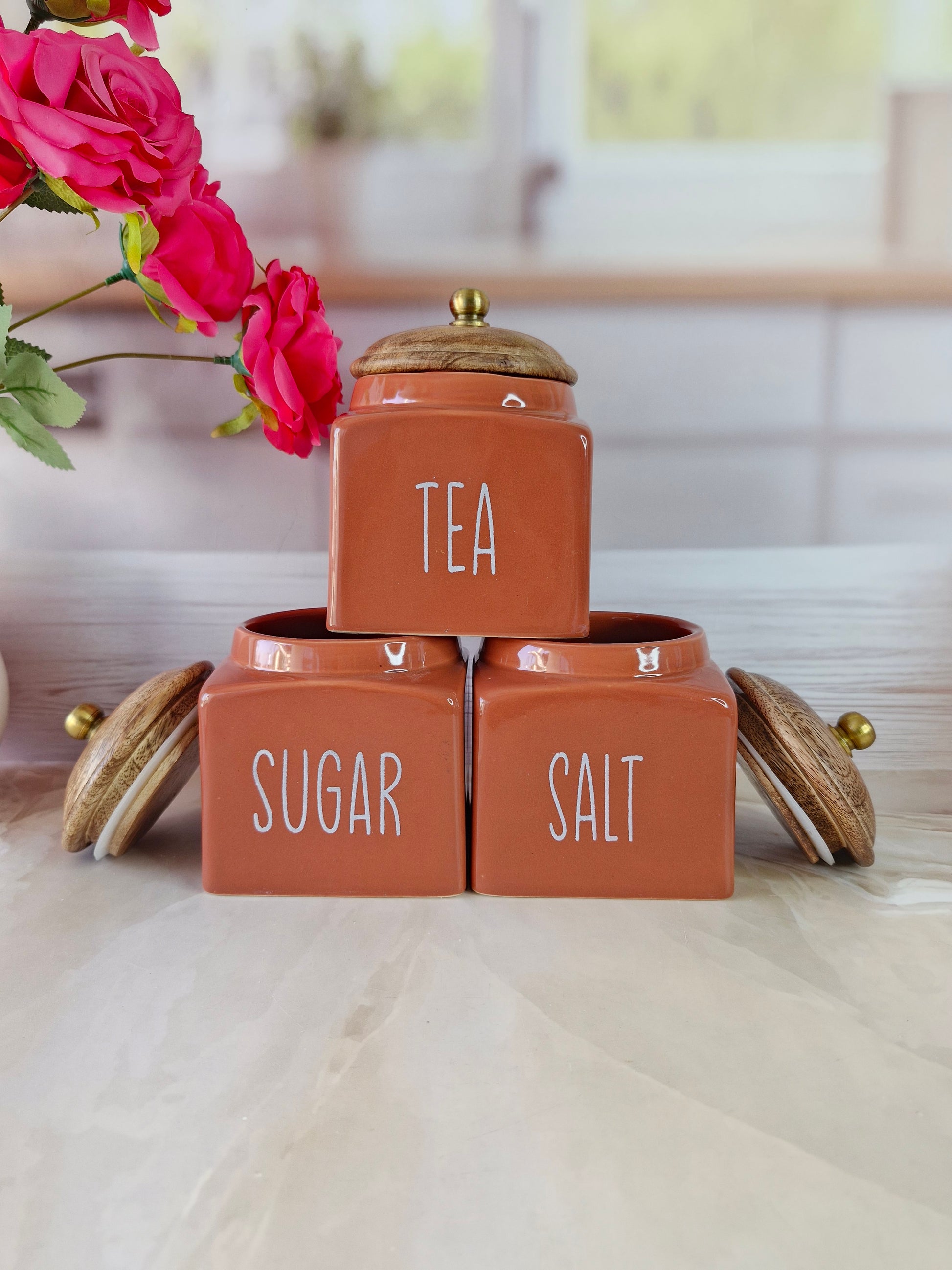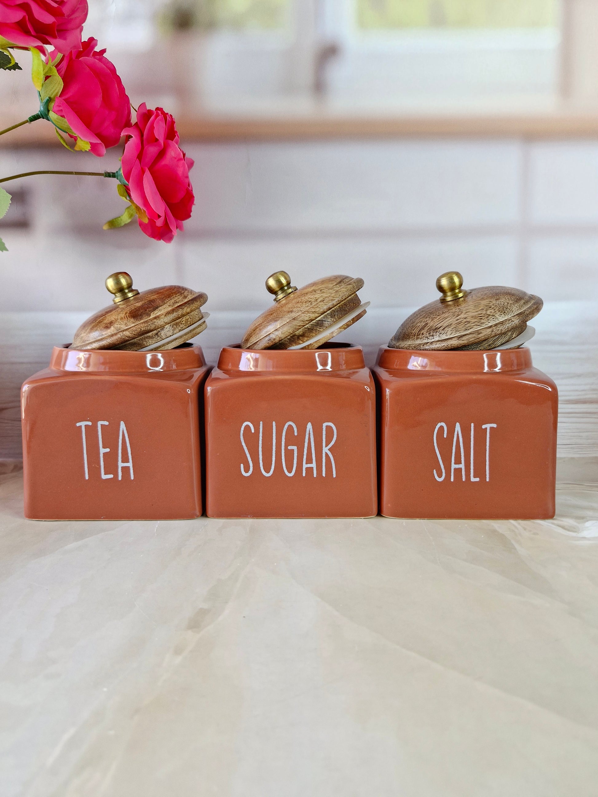 Maroon Square Solid Tea ,Sugar, Salt,Ceramic Canisters 500 ml
