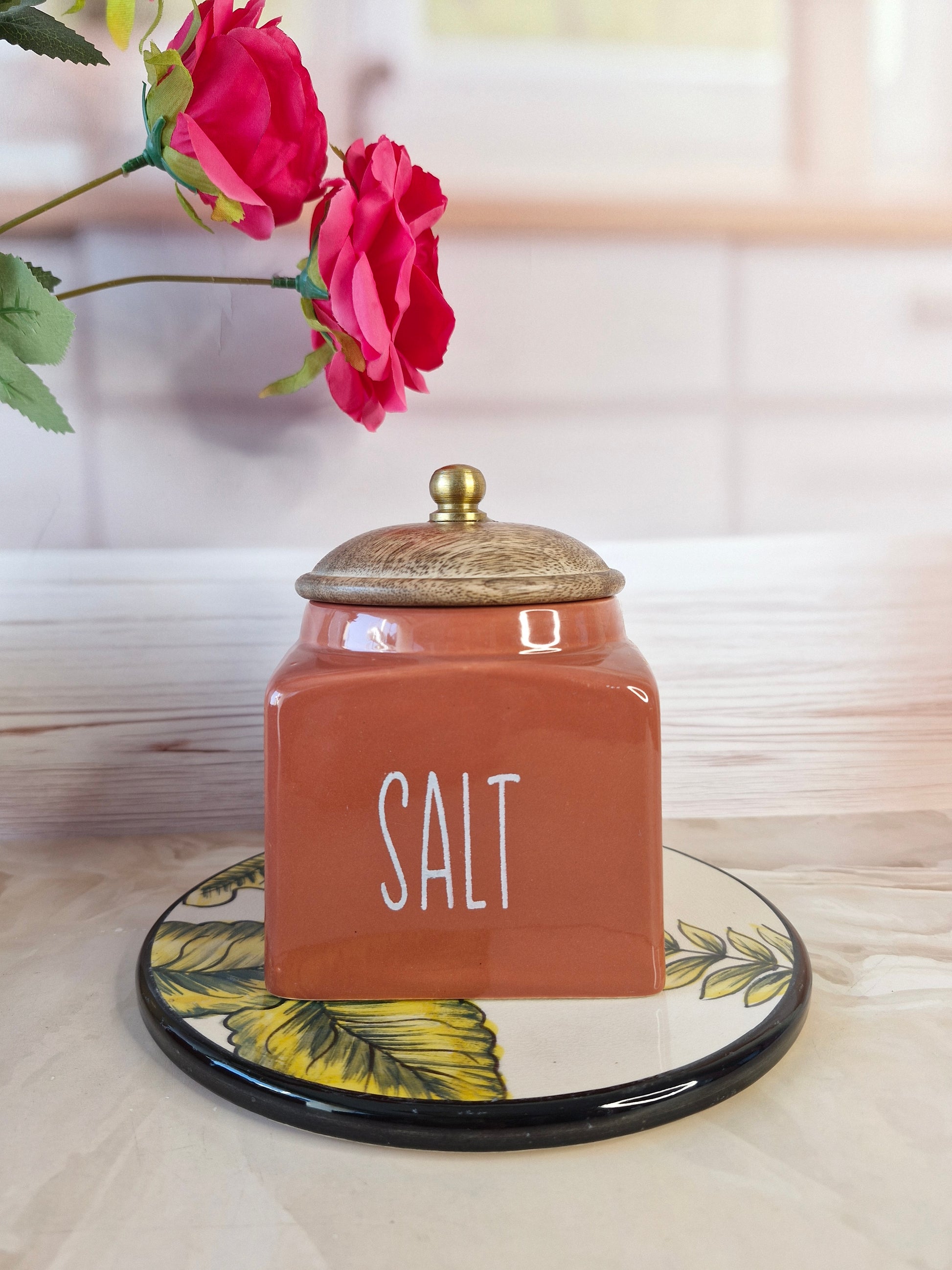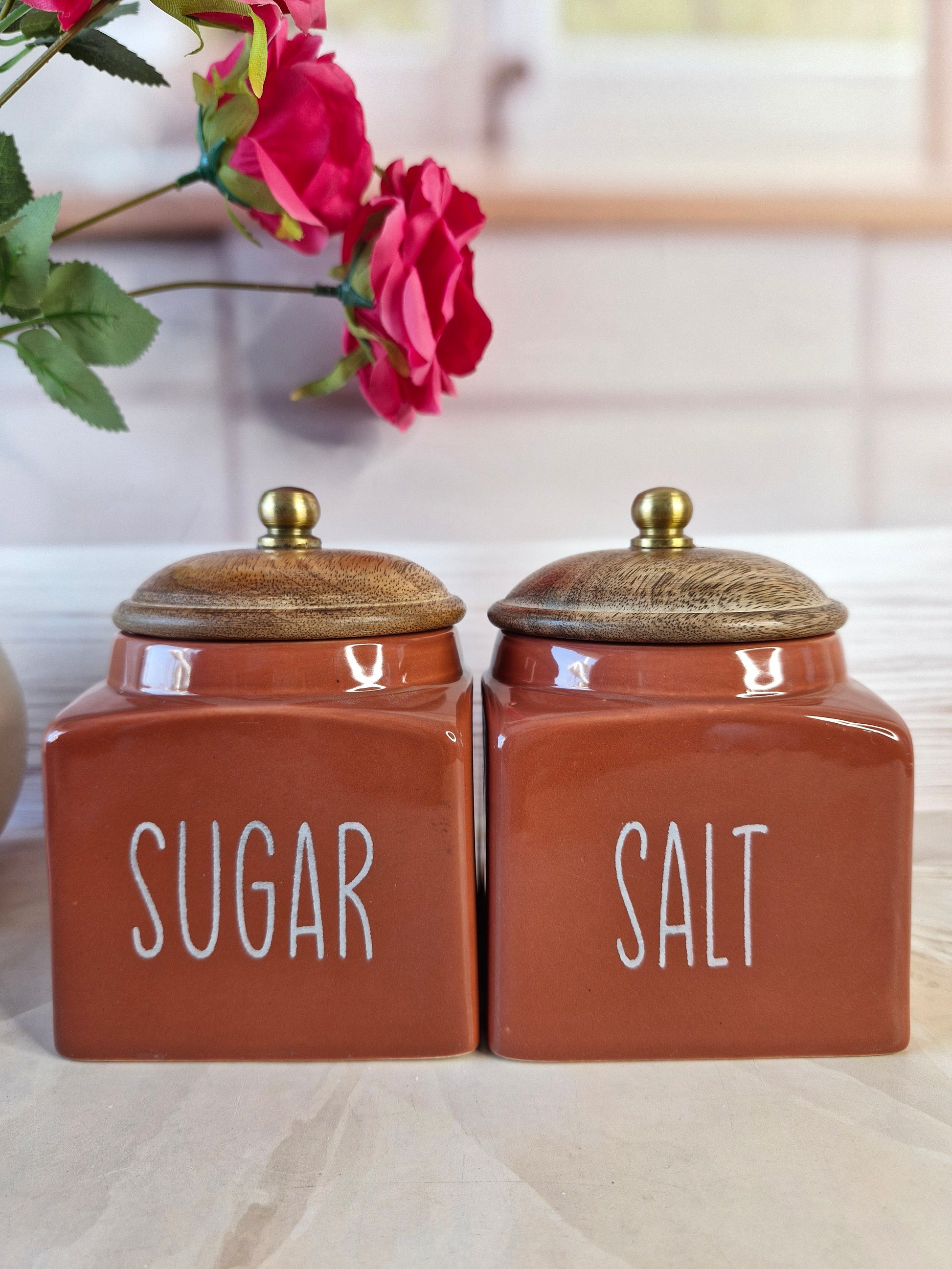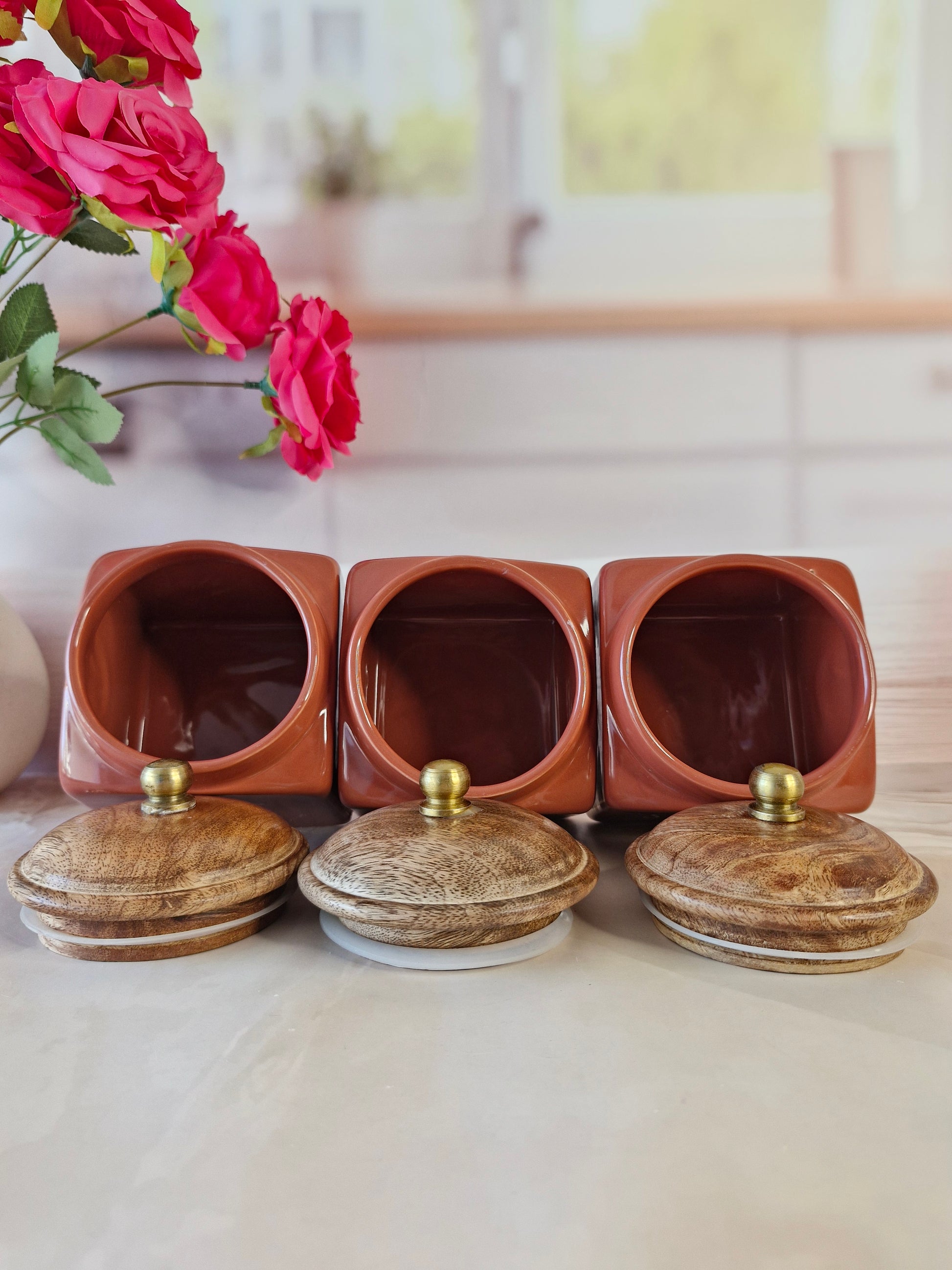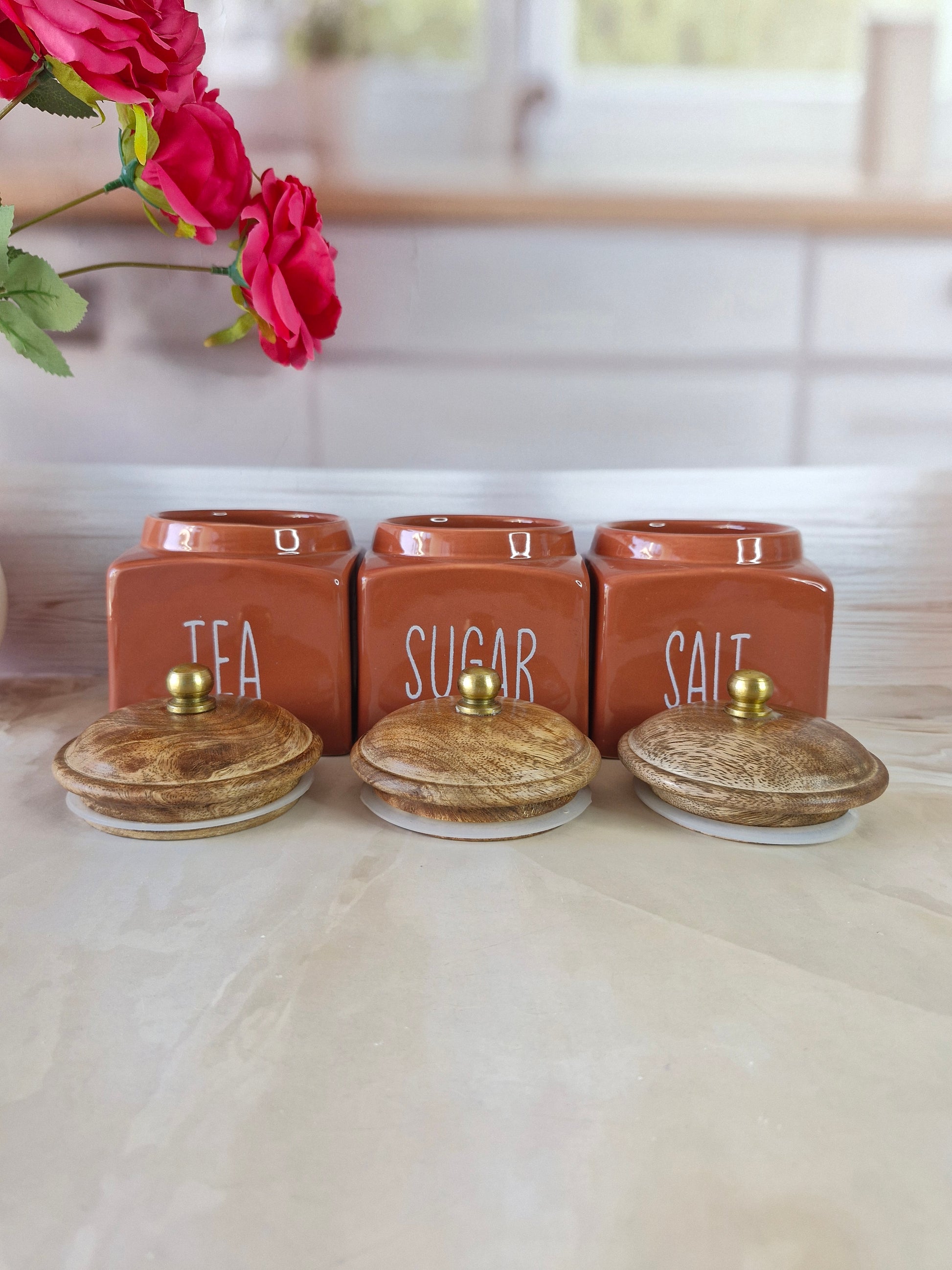Maroon Square Solid Tea ,Sugar, Salt,Ceramic Canisters 500 ml