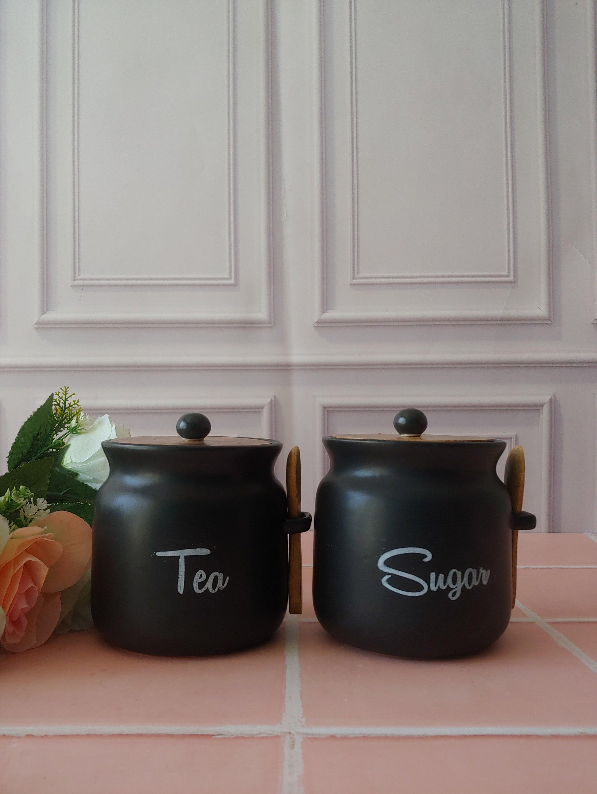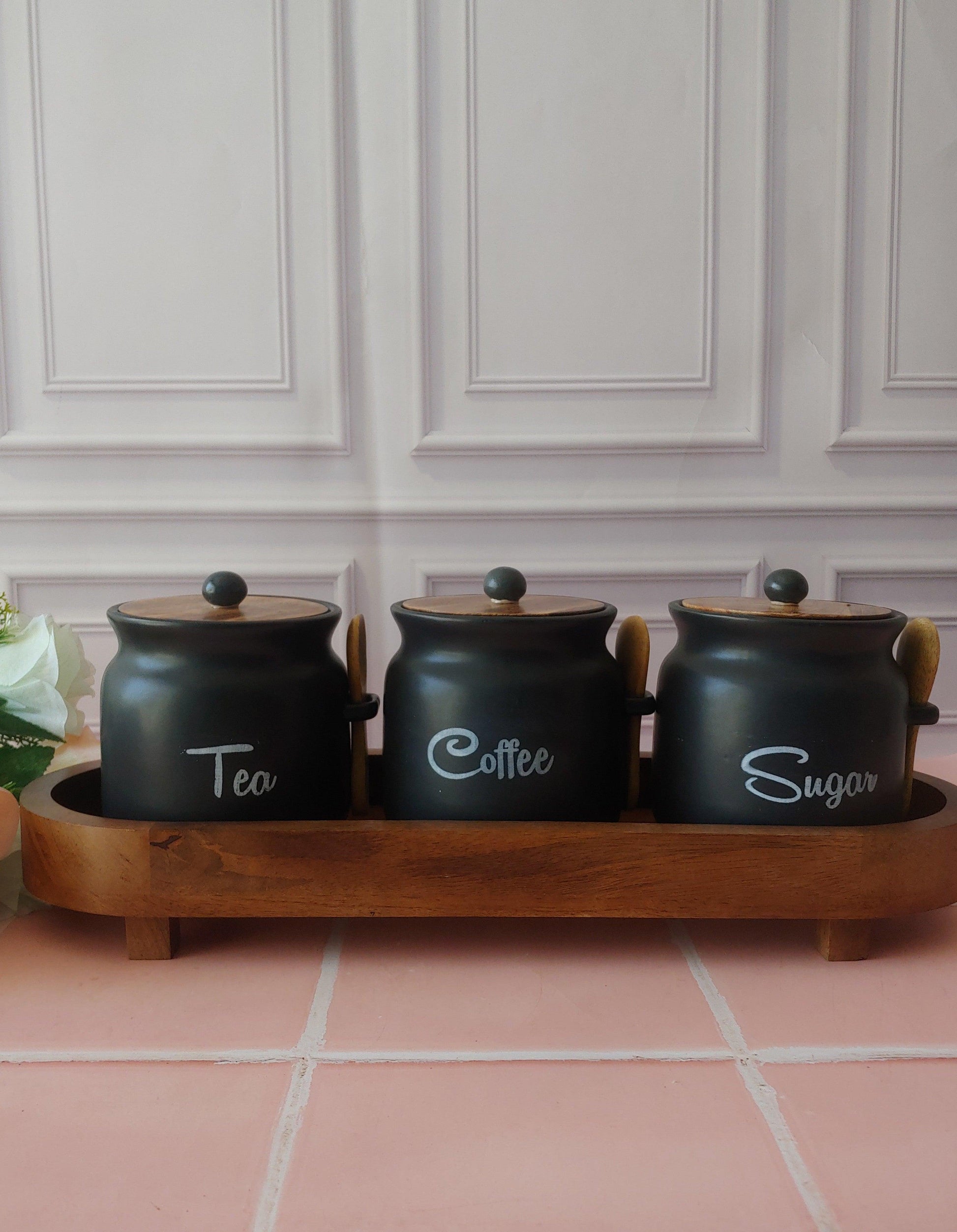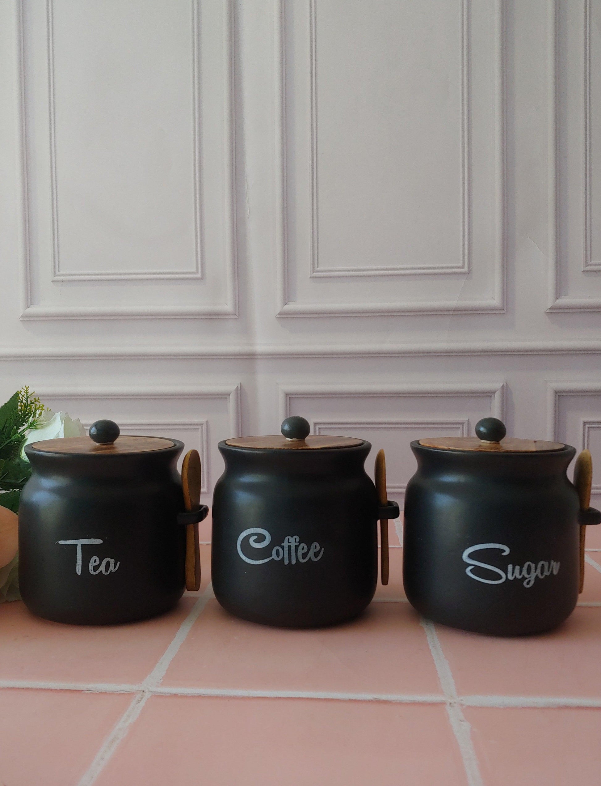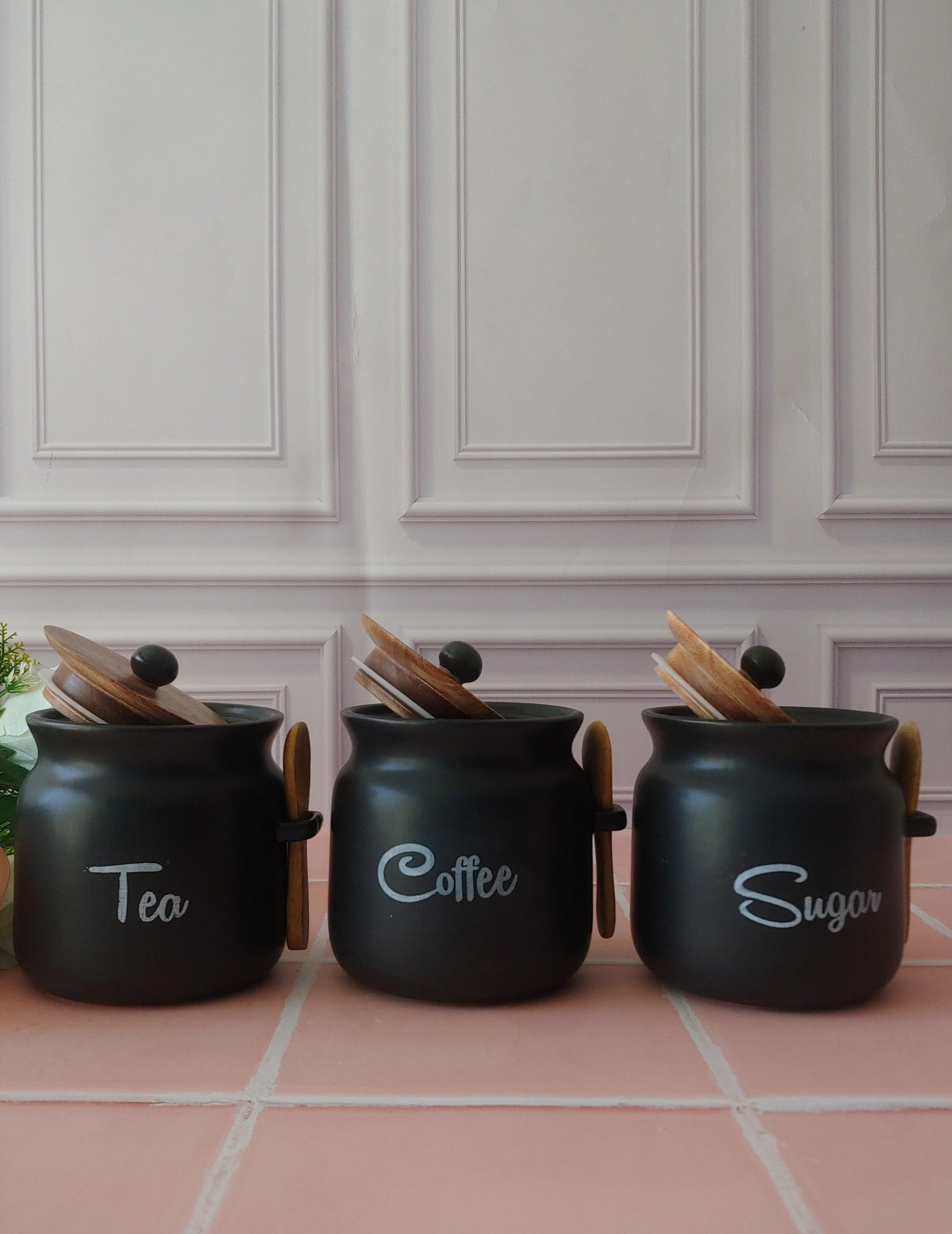 Black Diamond Matka Tea,Coffee, Sugar Solid Ceremic Canisters 500ml