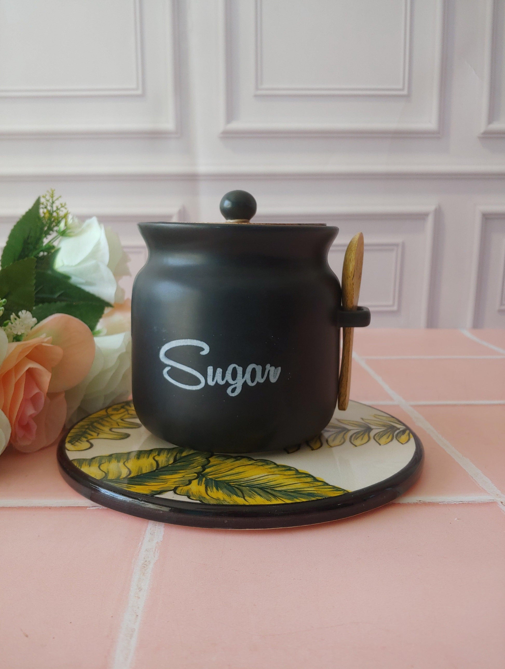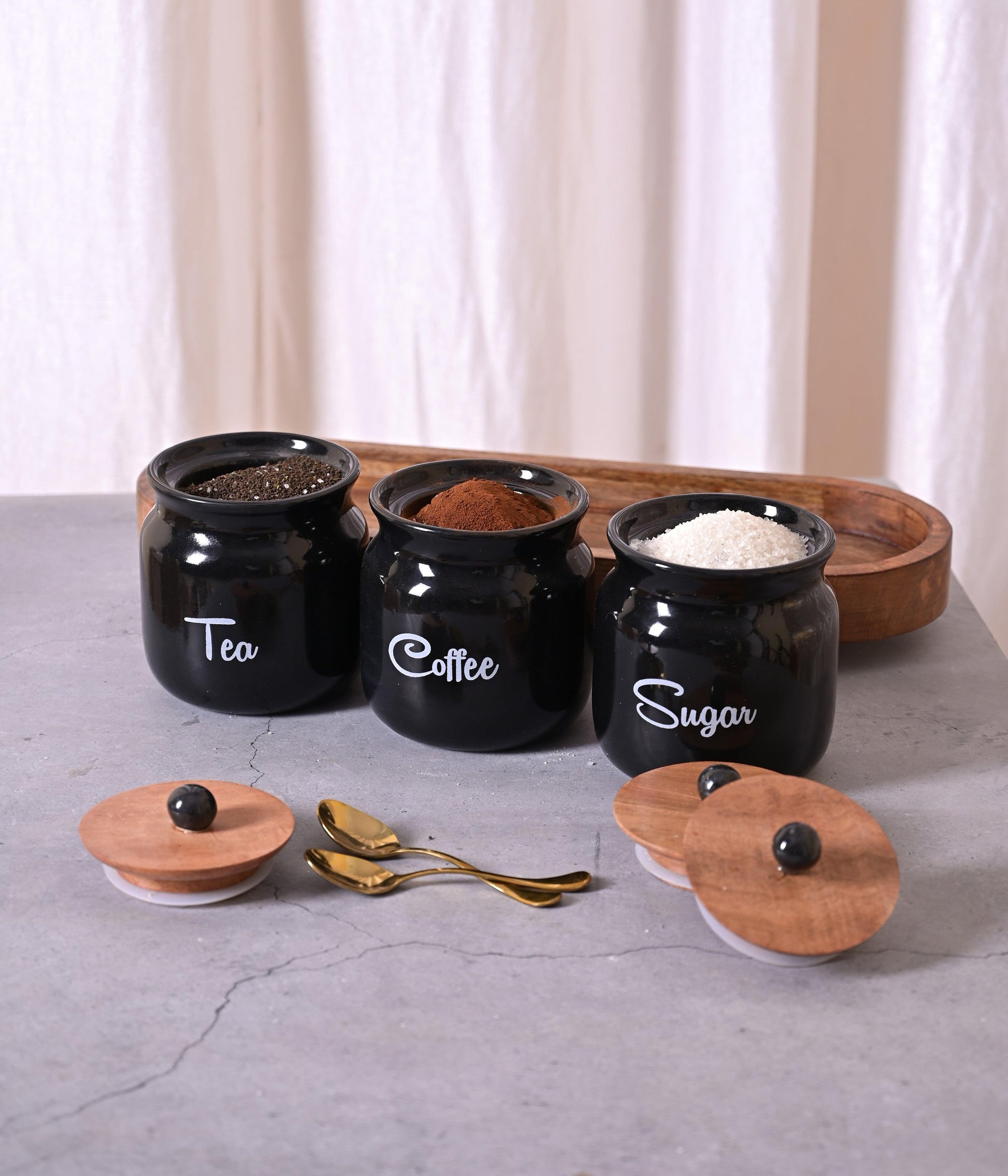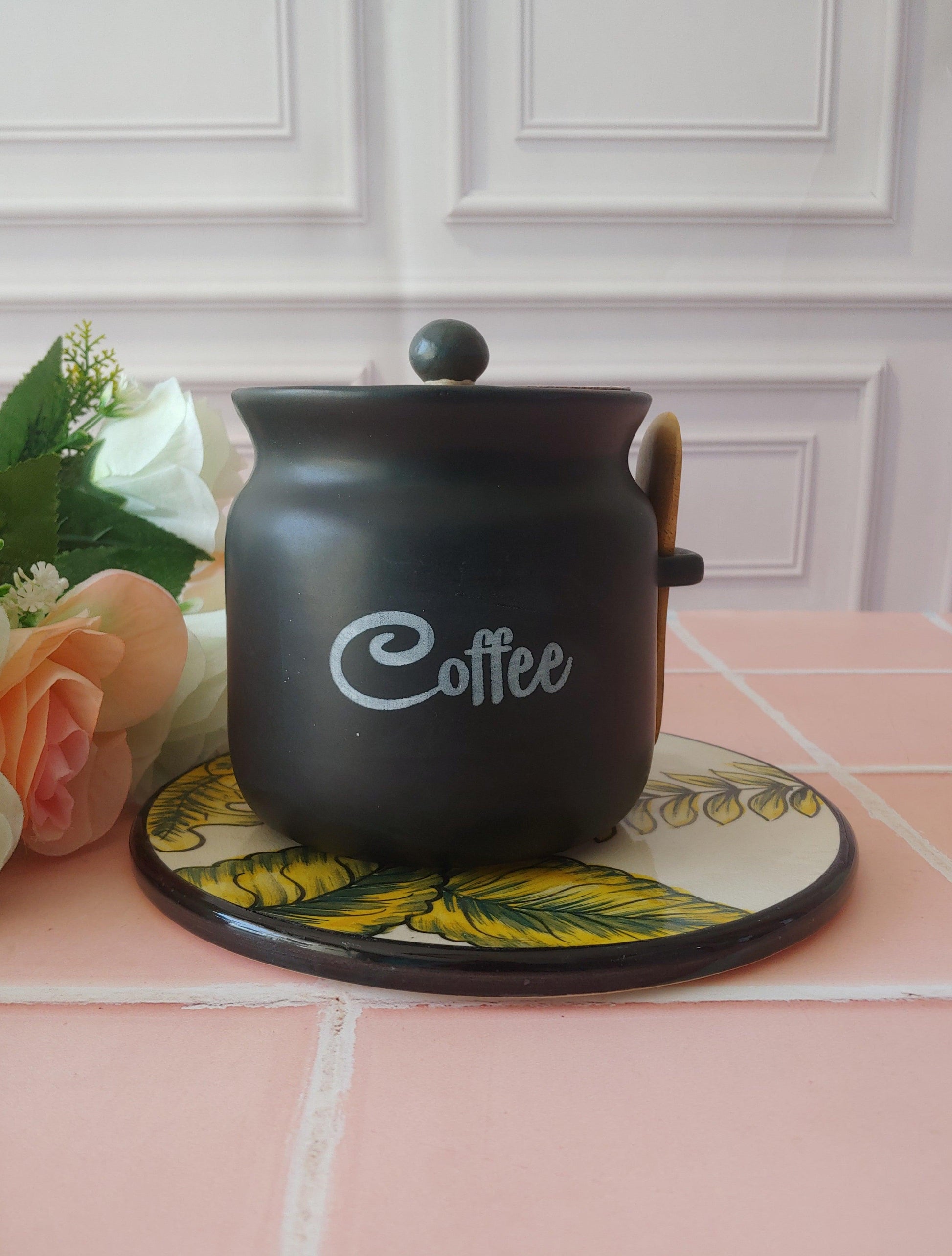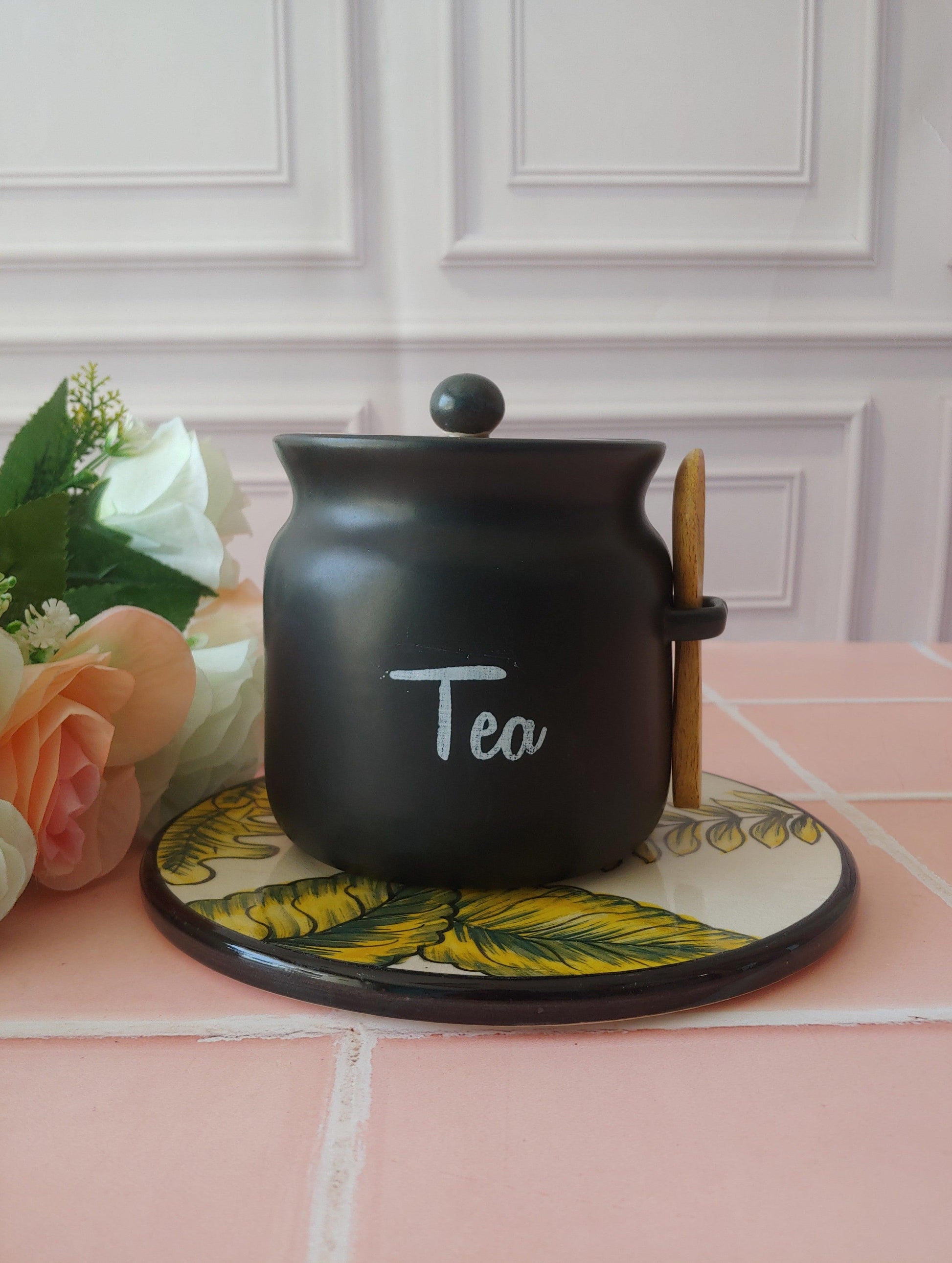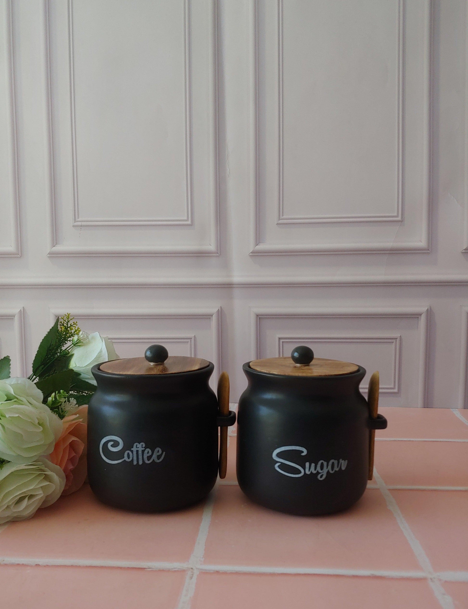 Black Diamond Matka Tea,Coffee, Sugar Solid Ceremic Canisters 500ml