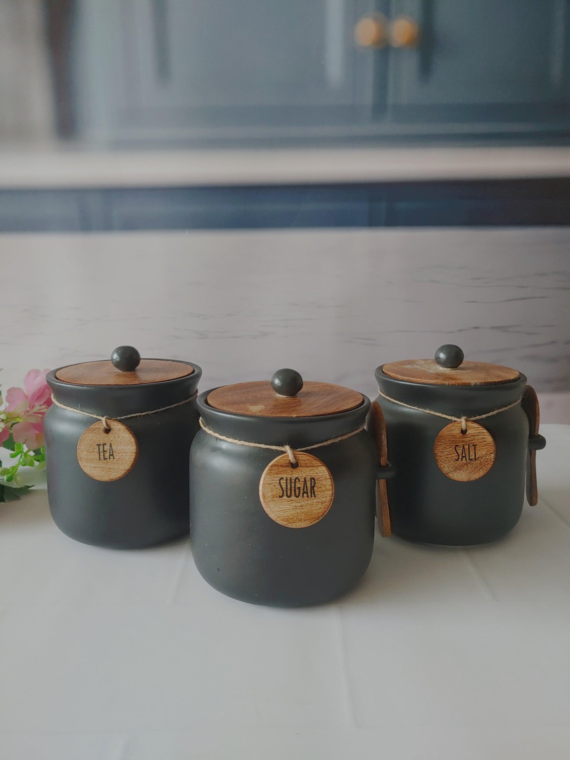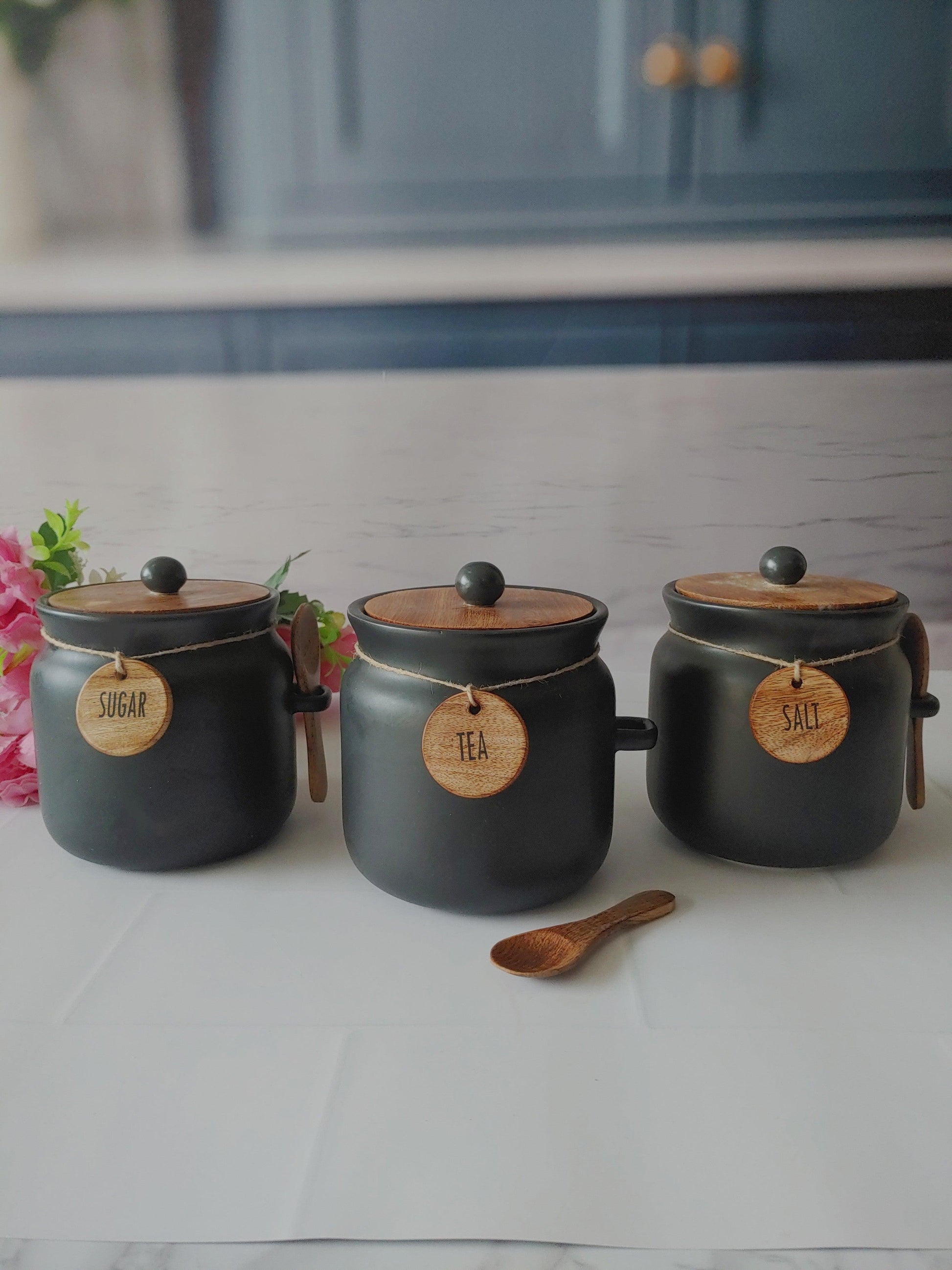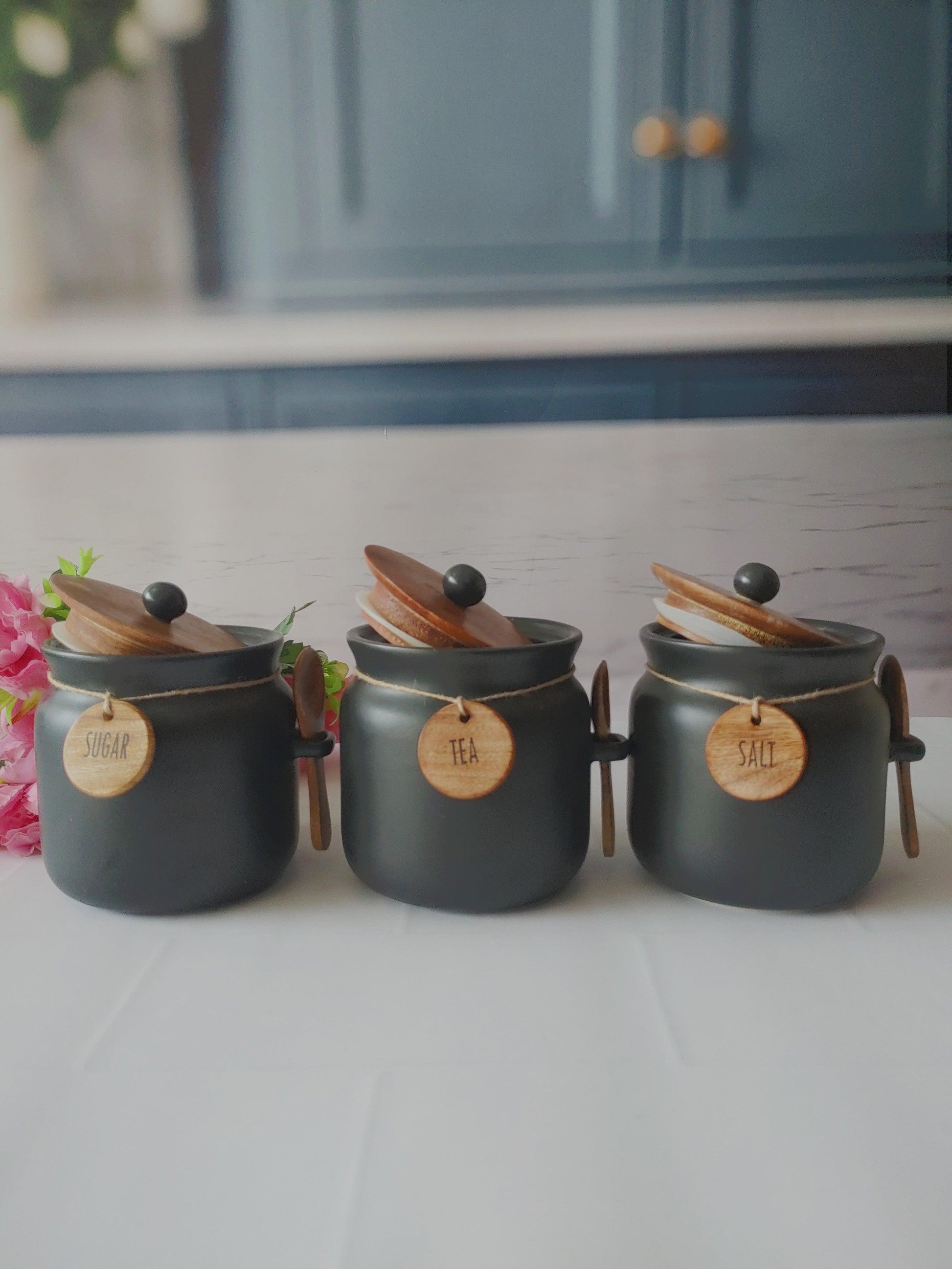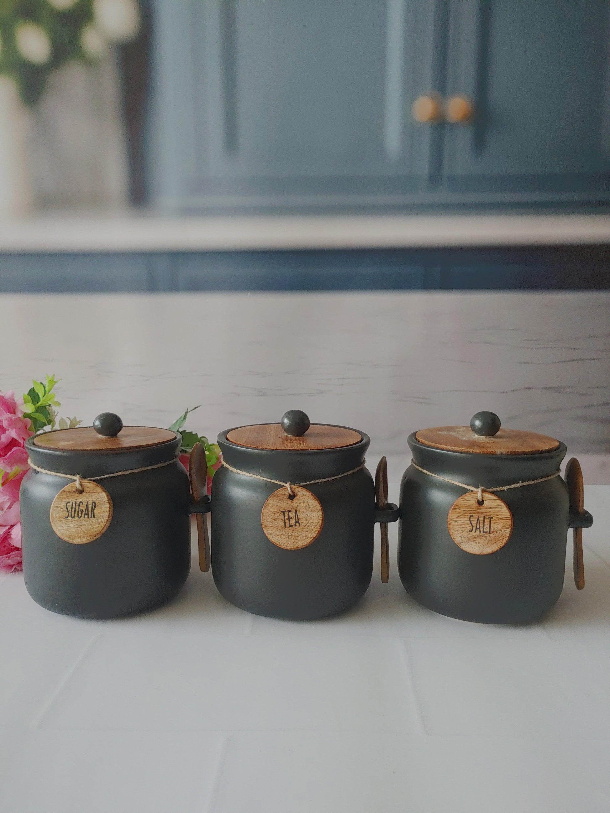 Midnight Black Matka Solid Ceremic Tea, Sugar,Salt, Canisters 500ml