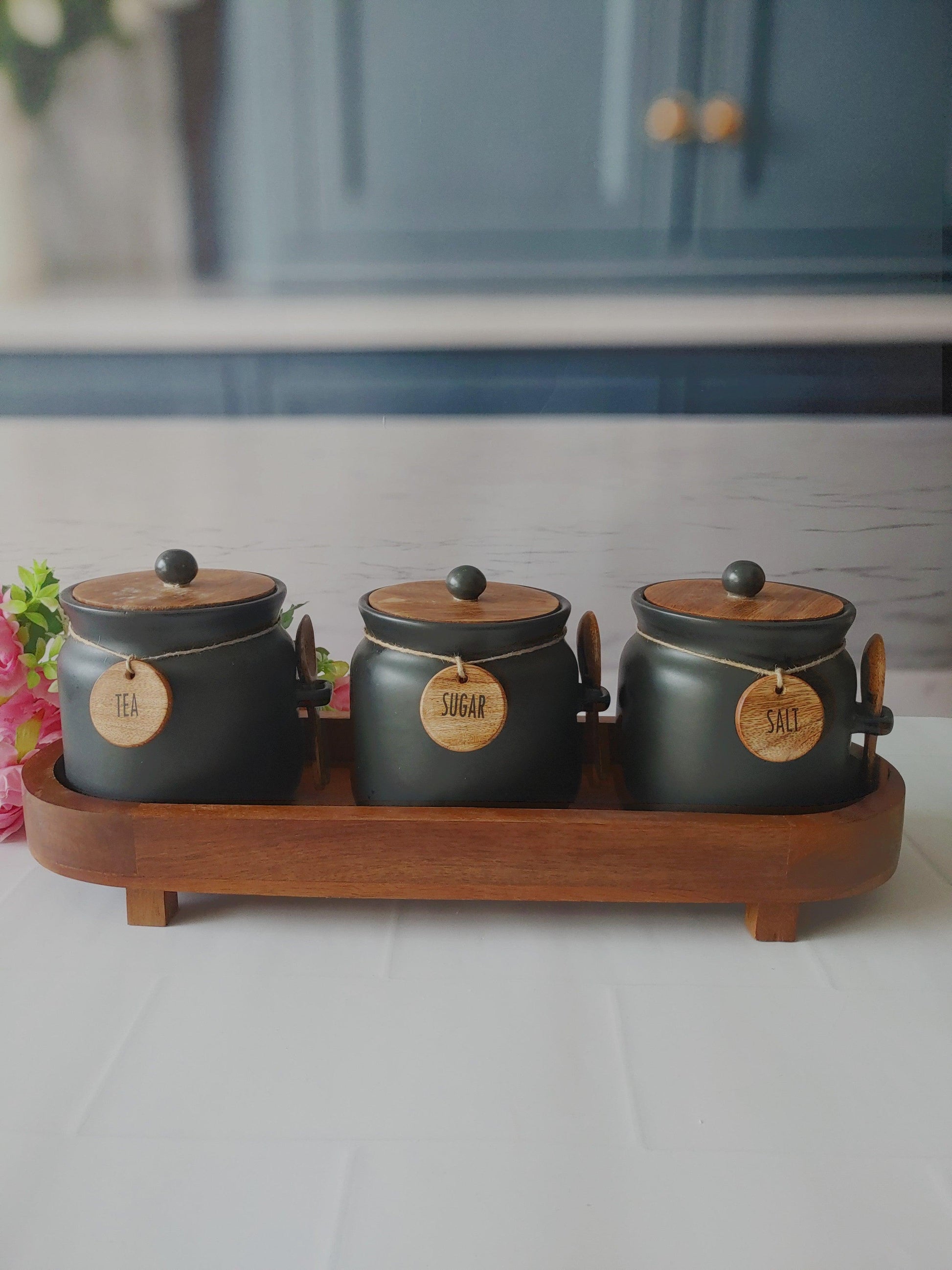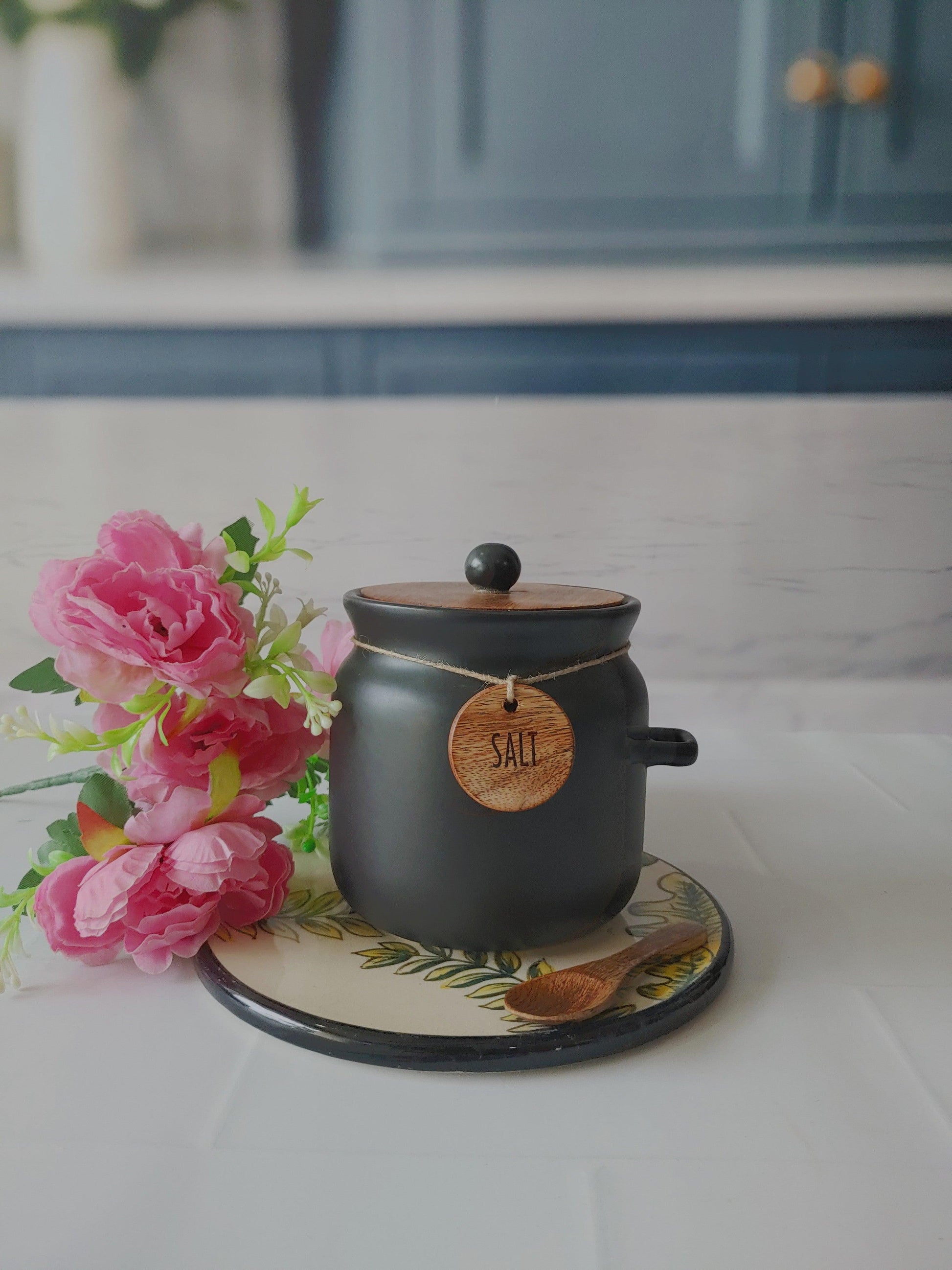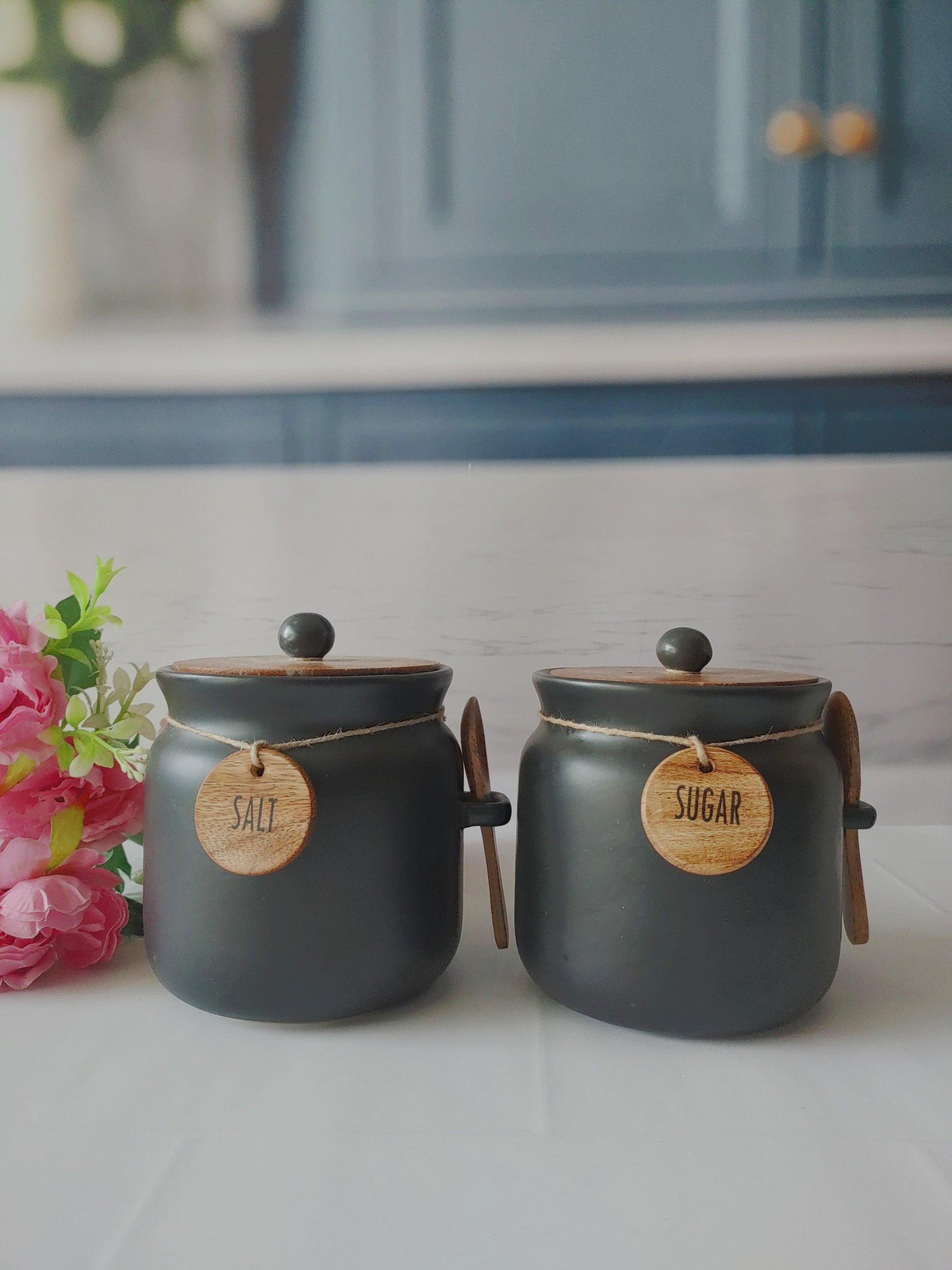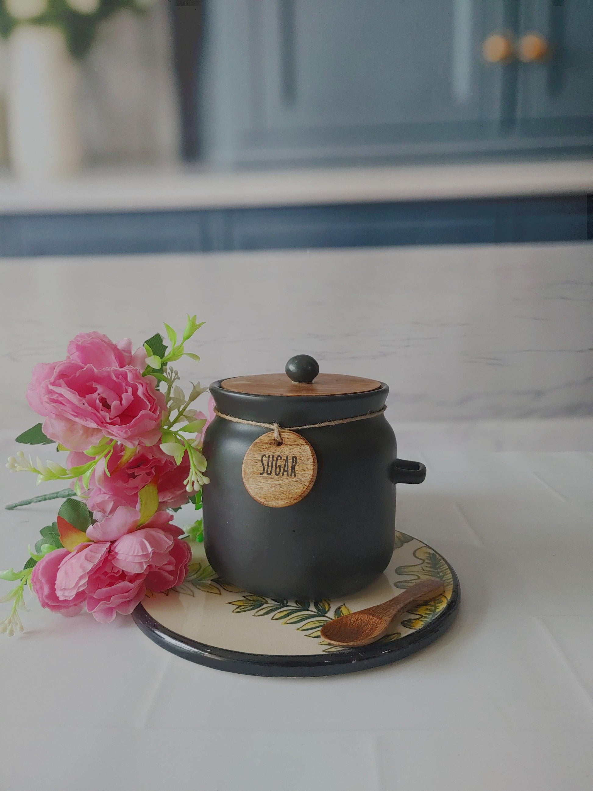 Midnight Black Matka Solid Ceremic Tea, Sugar,Salt, Canisters 500ml