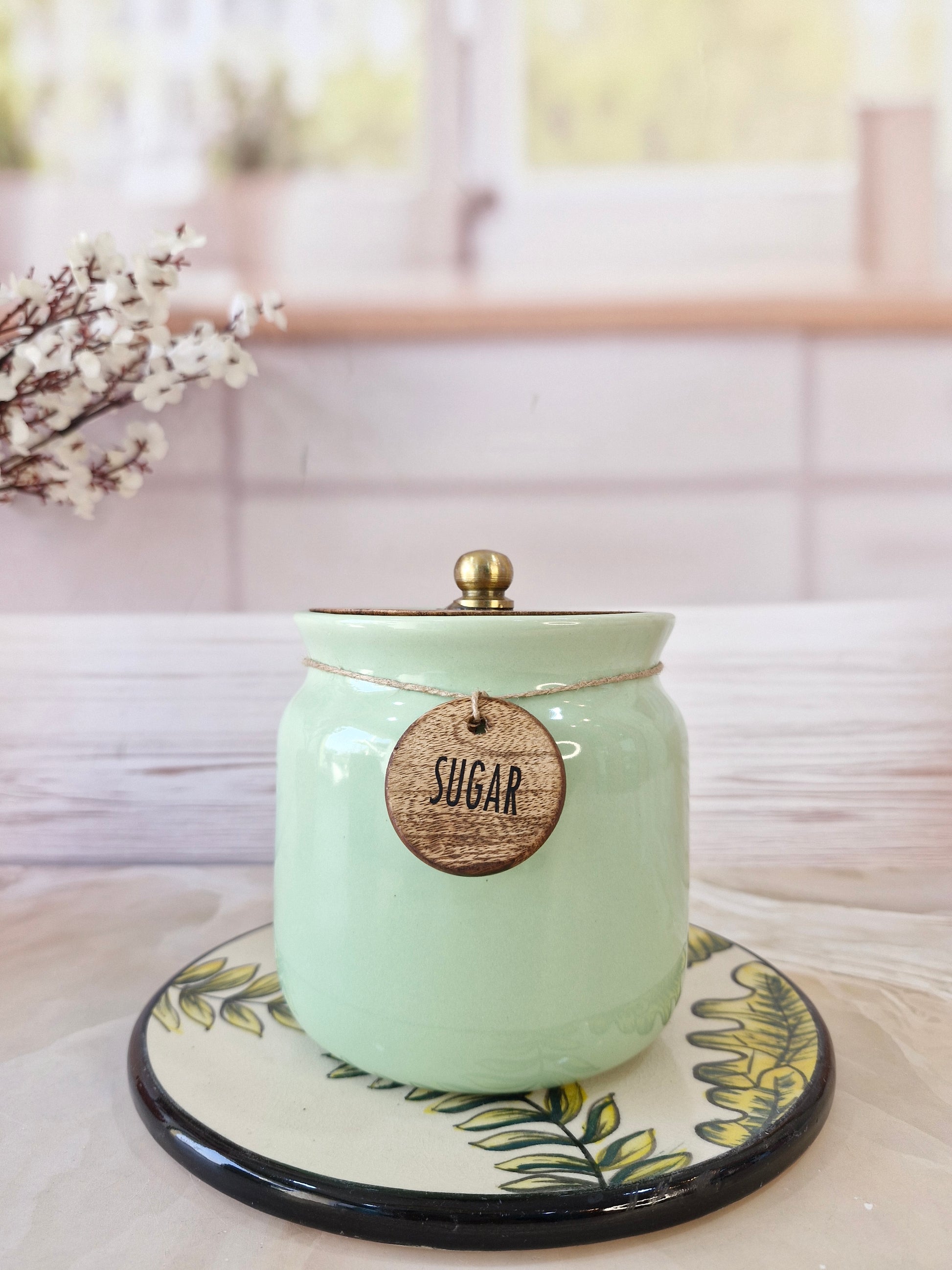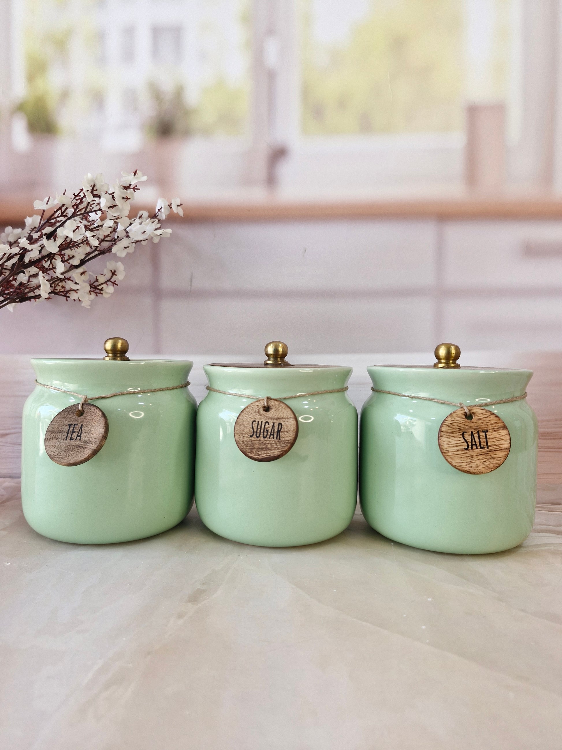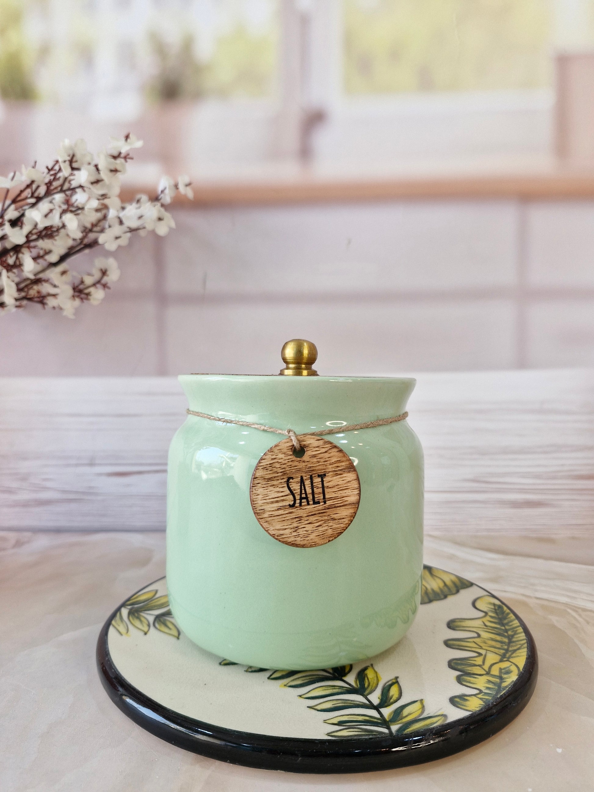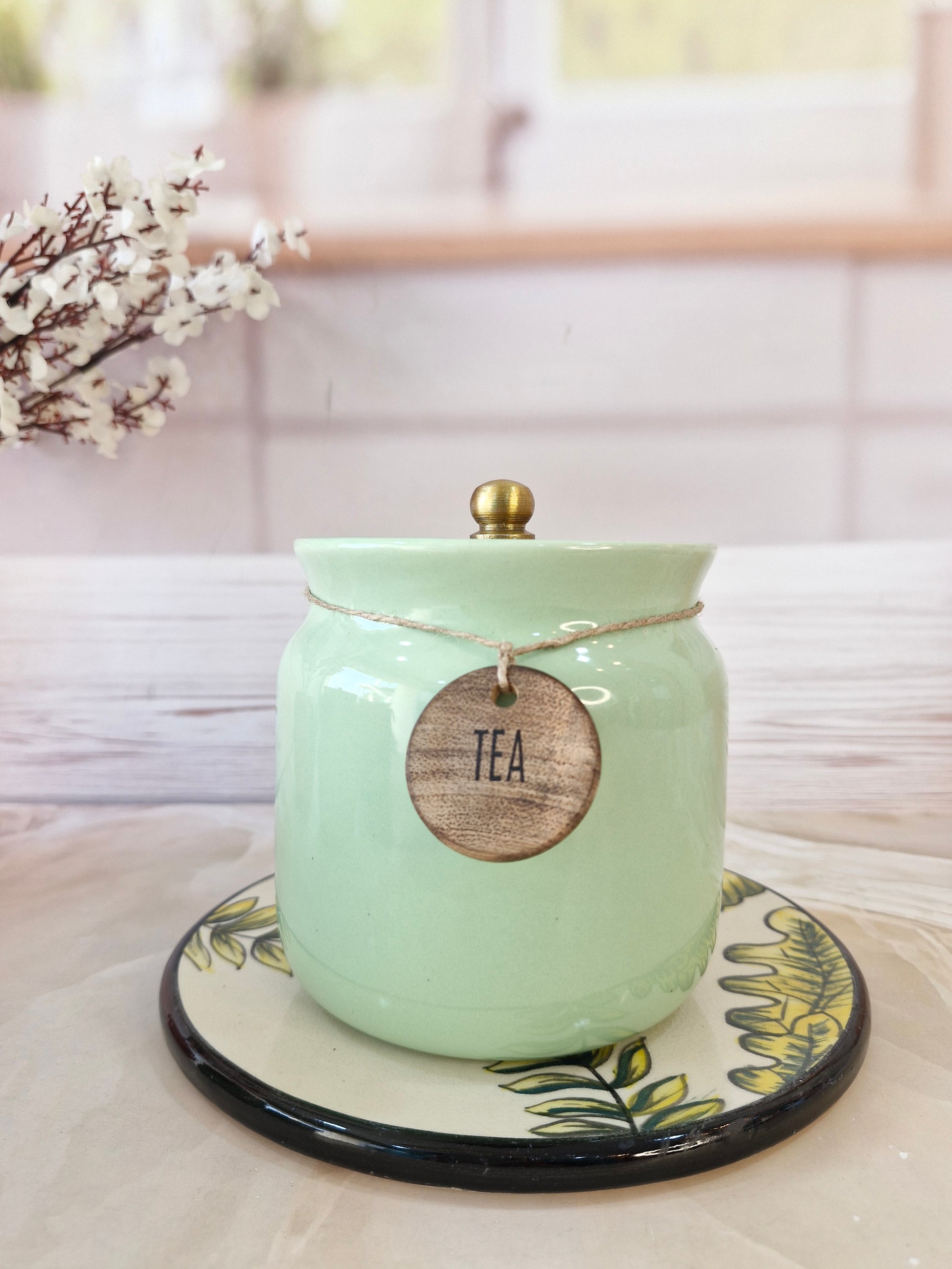 Mint Blossom Airtight Matka Solid Ceremic Tea,Sugar, and Salt,Canisters 500ml