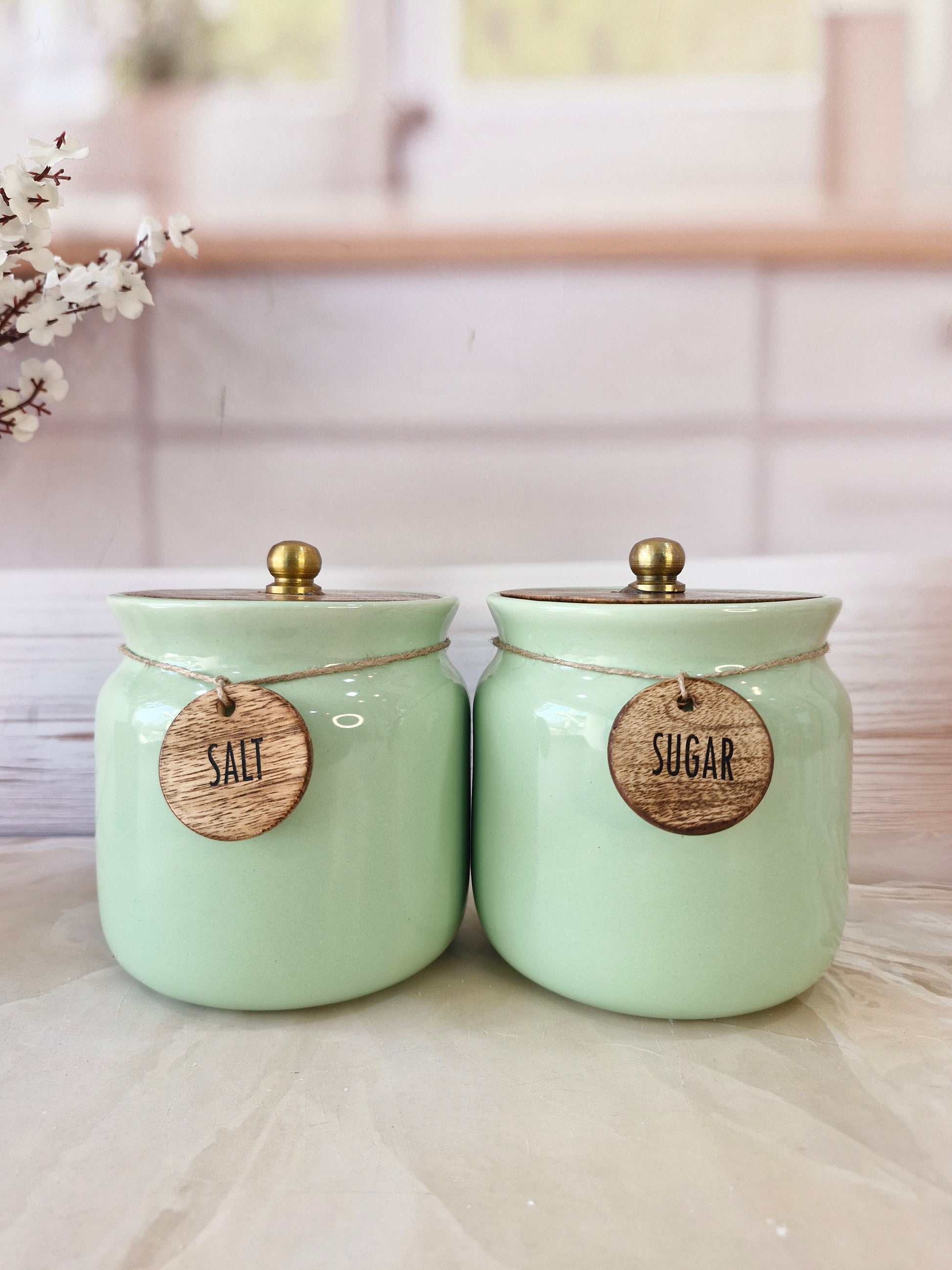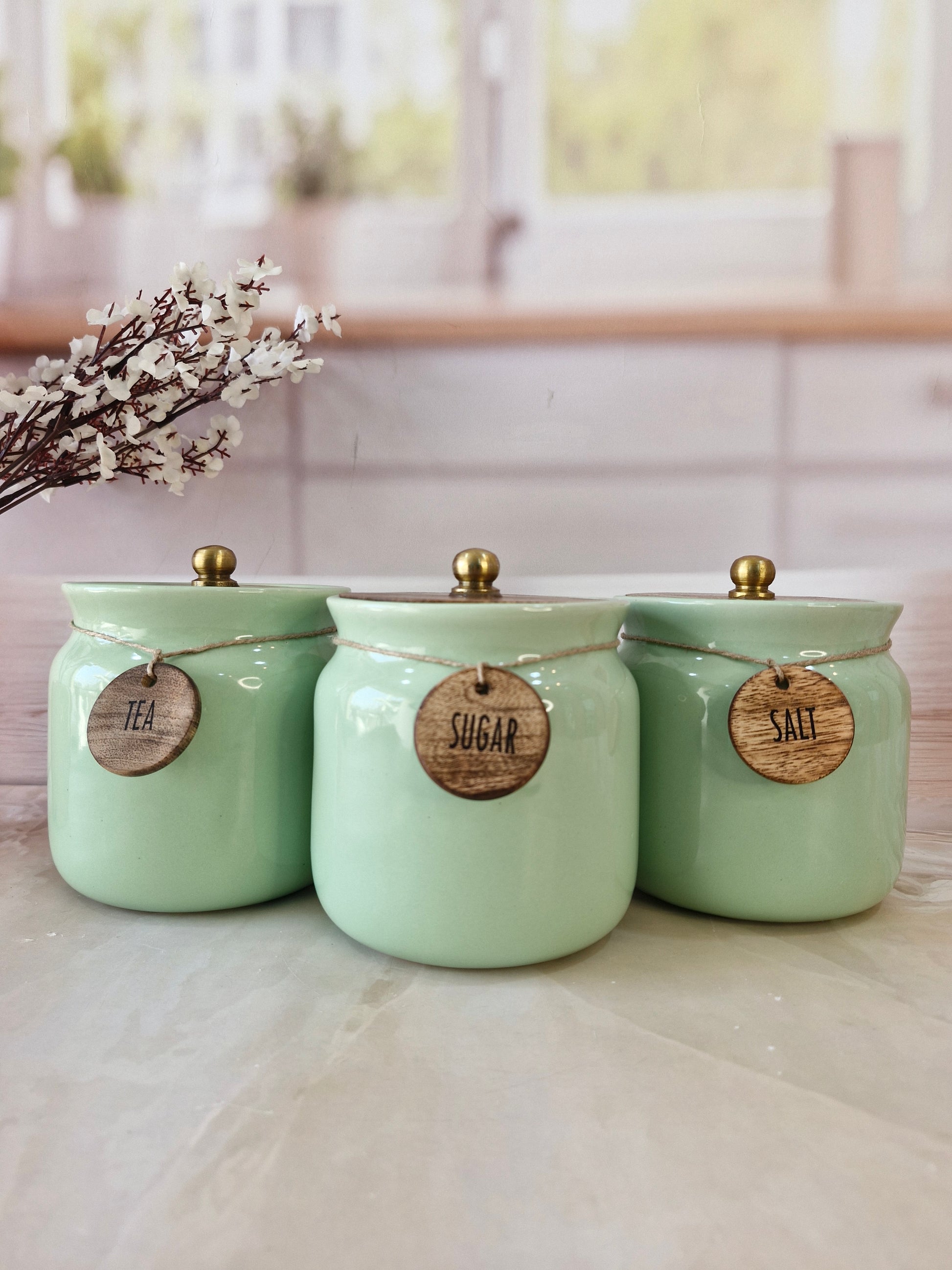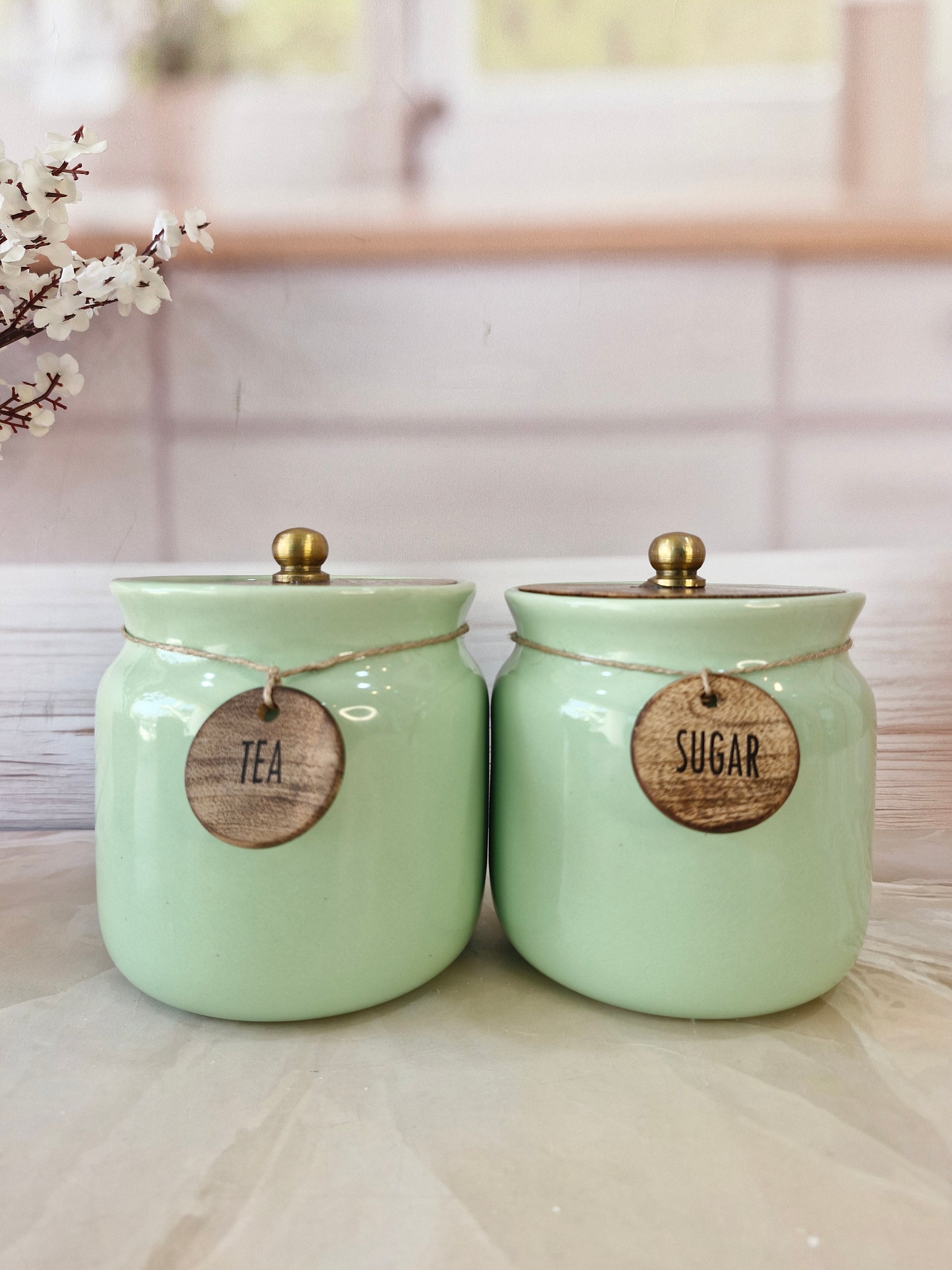 Mint Blossom Airtight Matka Solid Ceremic Tea,Sugar, and Salt,Canisters 500ml