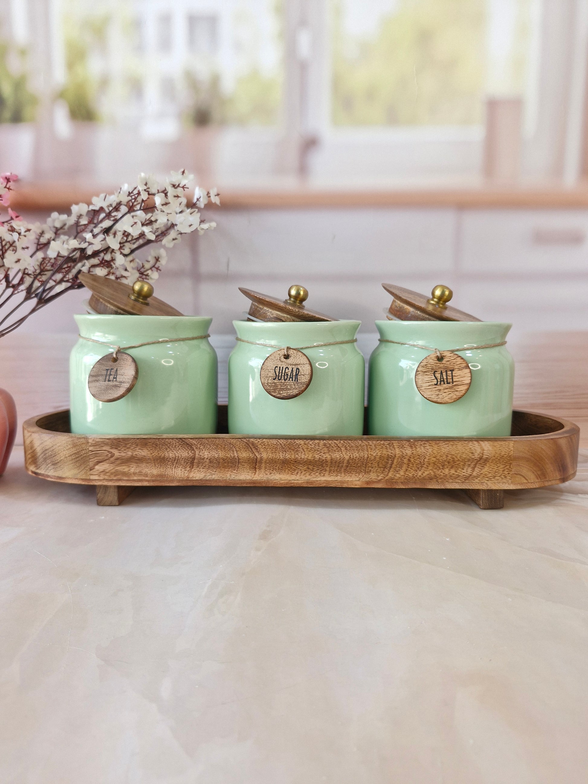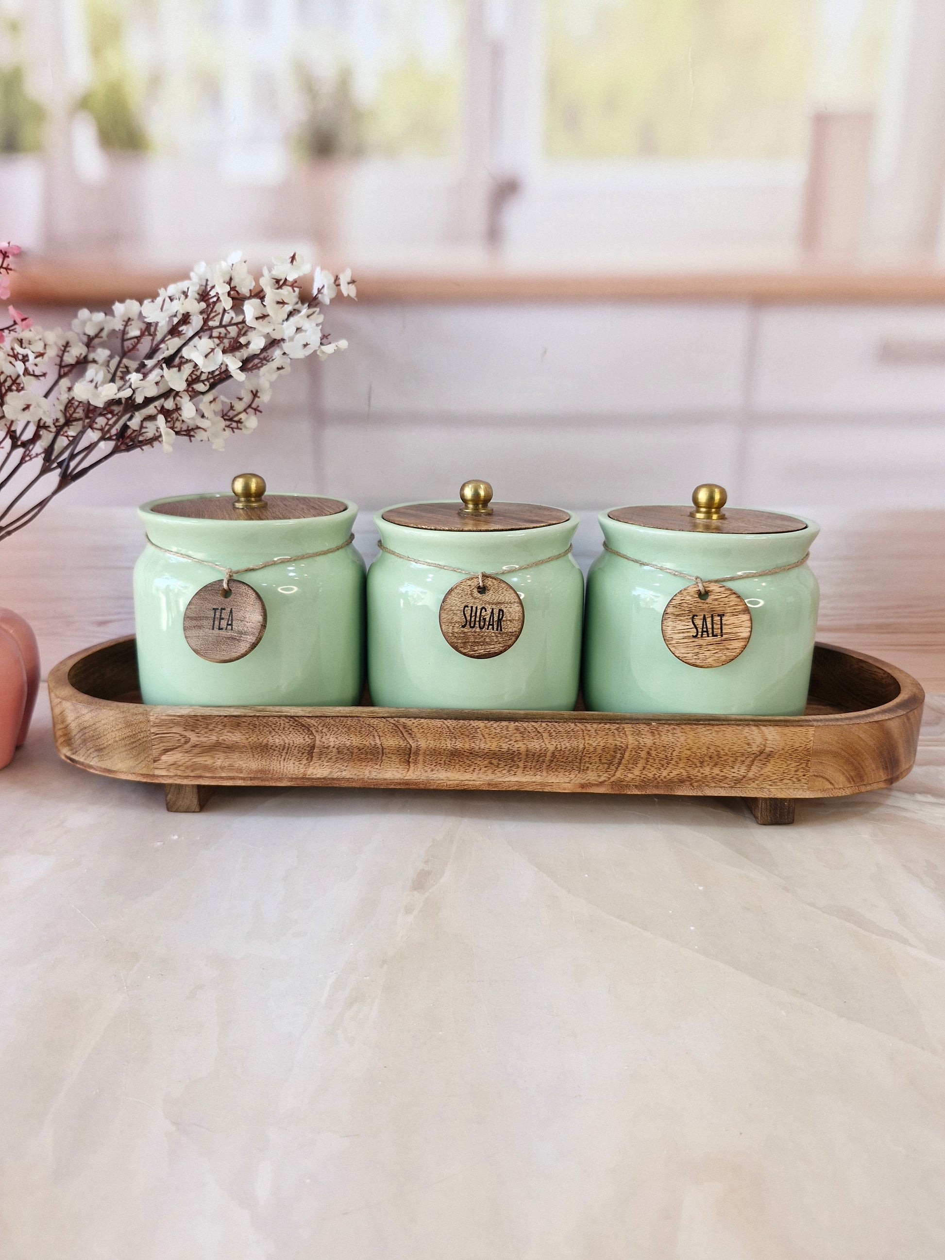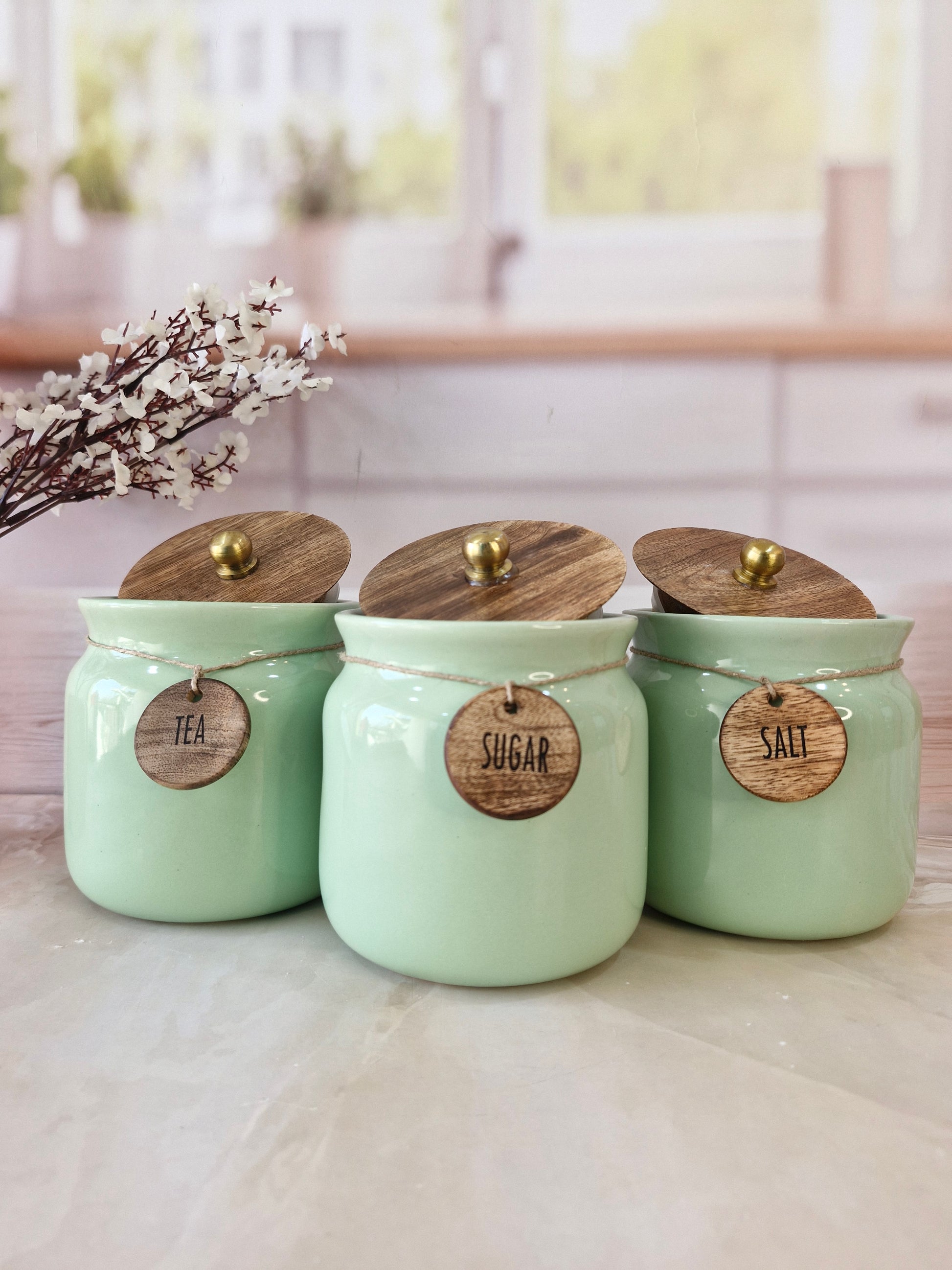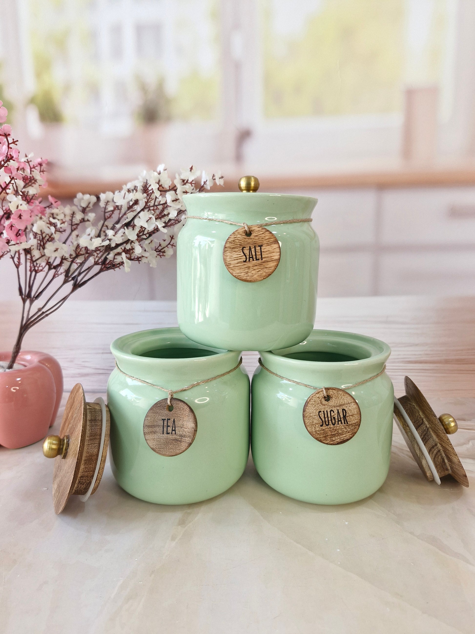 Mint Blossom Airtight Matka Solid Ceremic Tea,Sugar, and Salt,Canisters 500ml