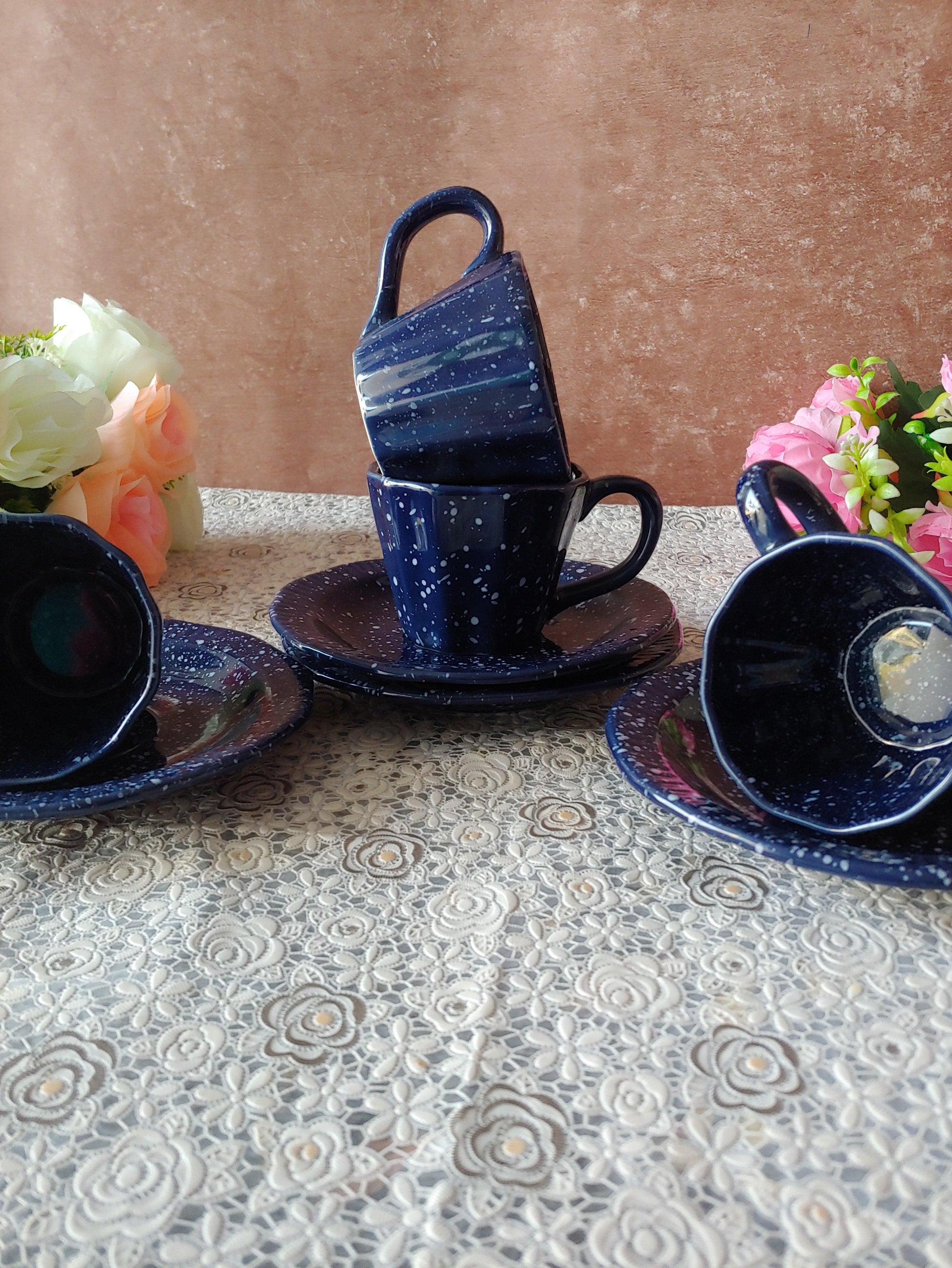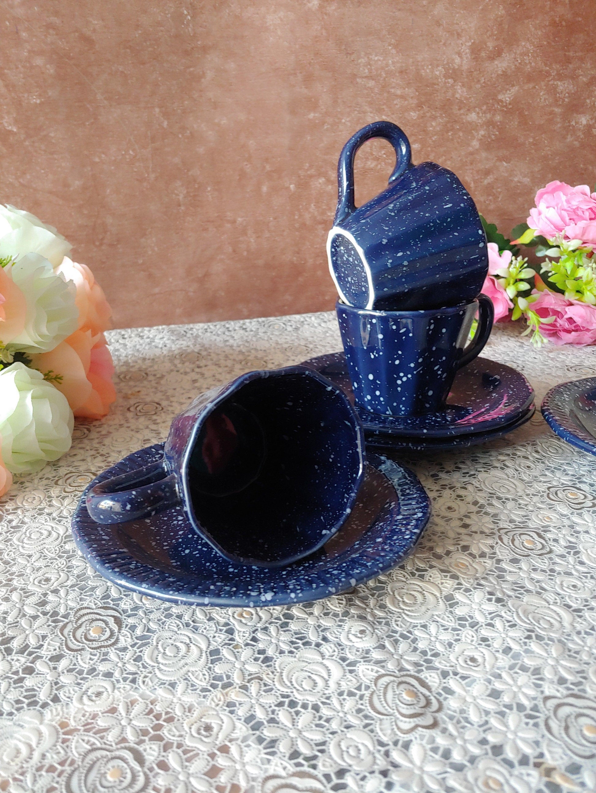 Morning Bloom Decorative Sauccer Cozy Cups With Pair