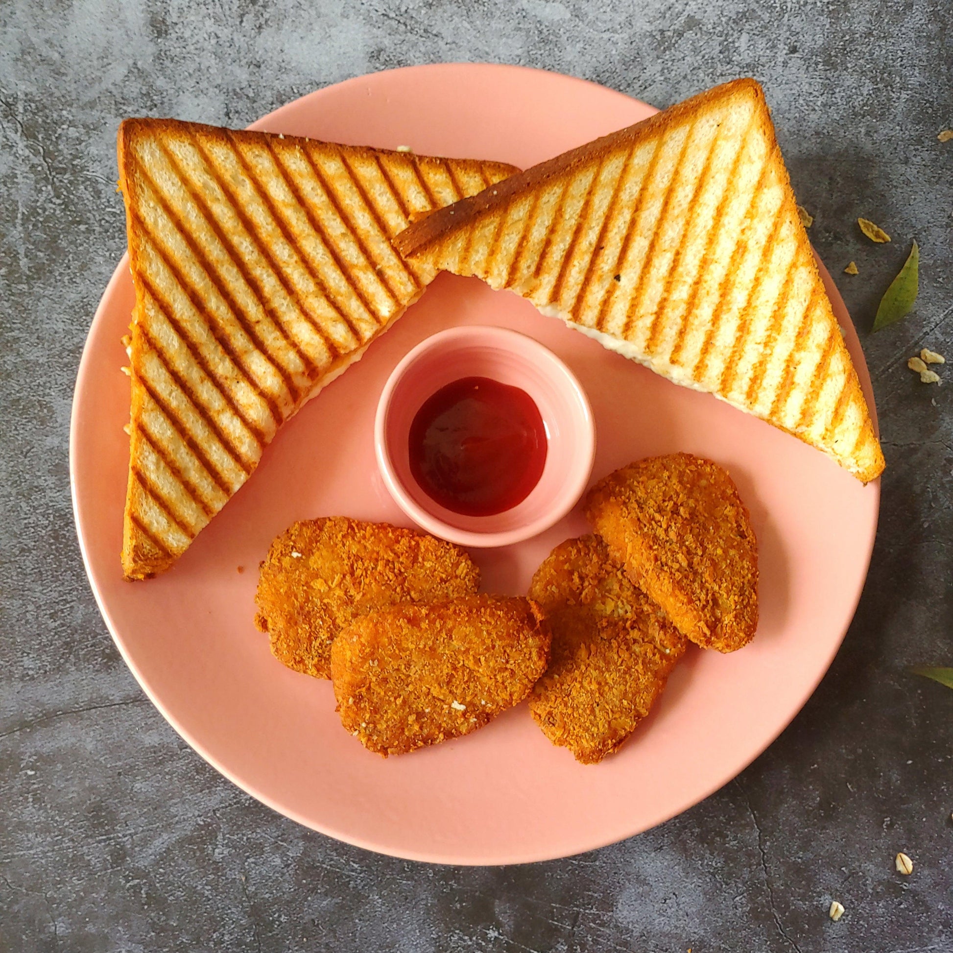 This delicious grilled cheese and nuggets platter is the perfect meal for a casual get-together. The platter is sure to please everyone at your next gathering.