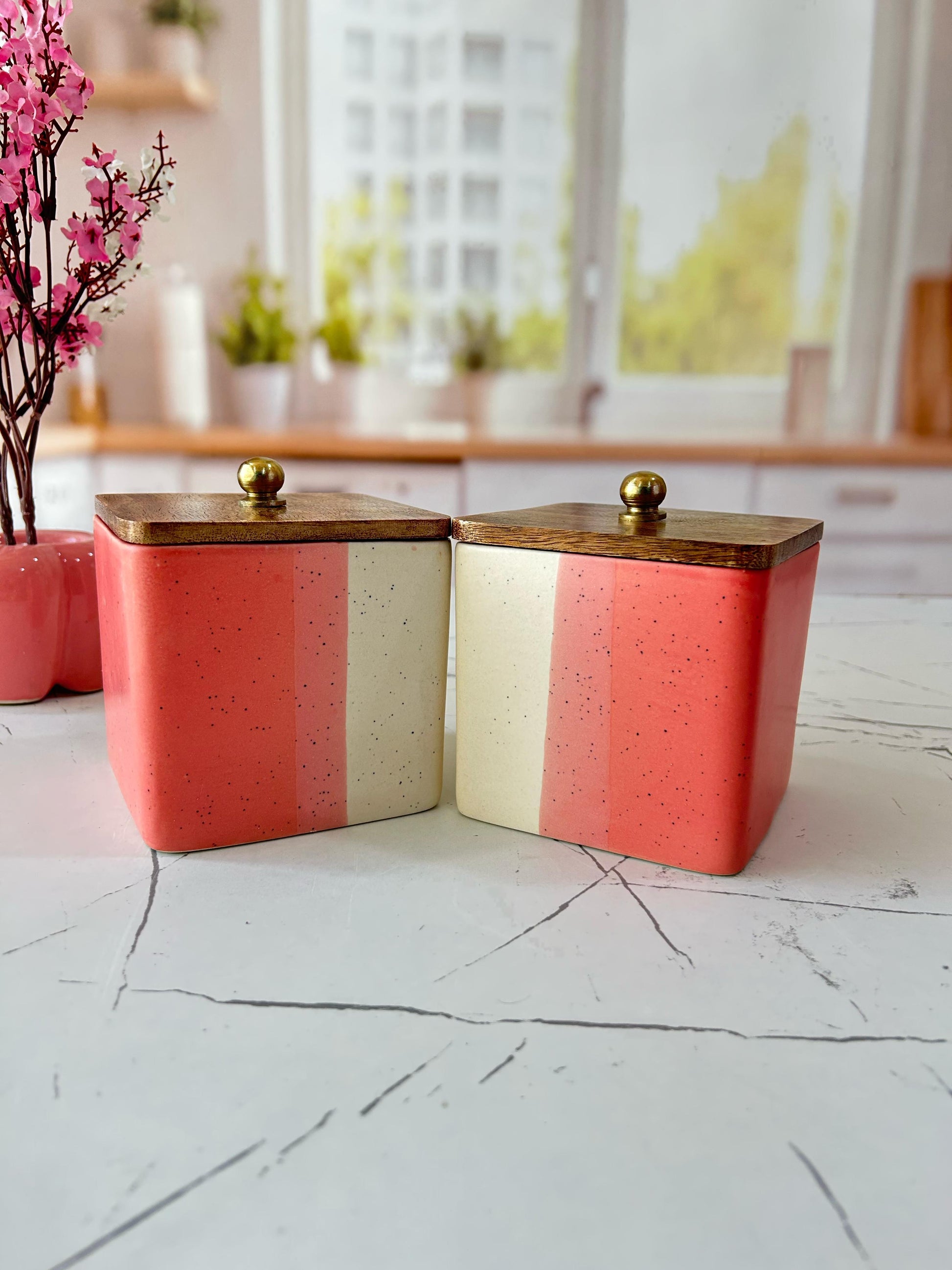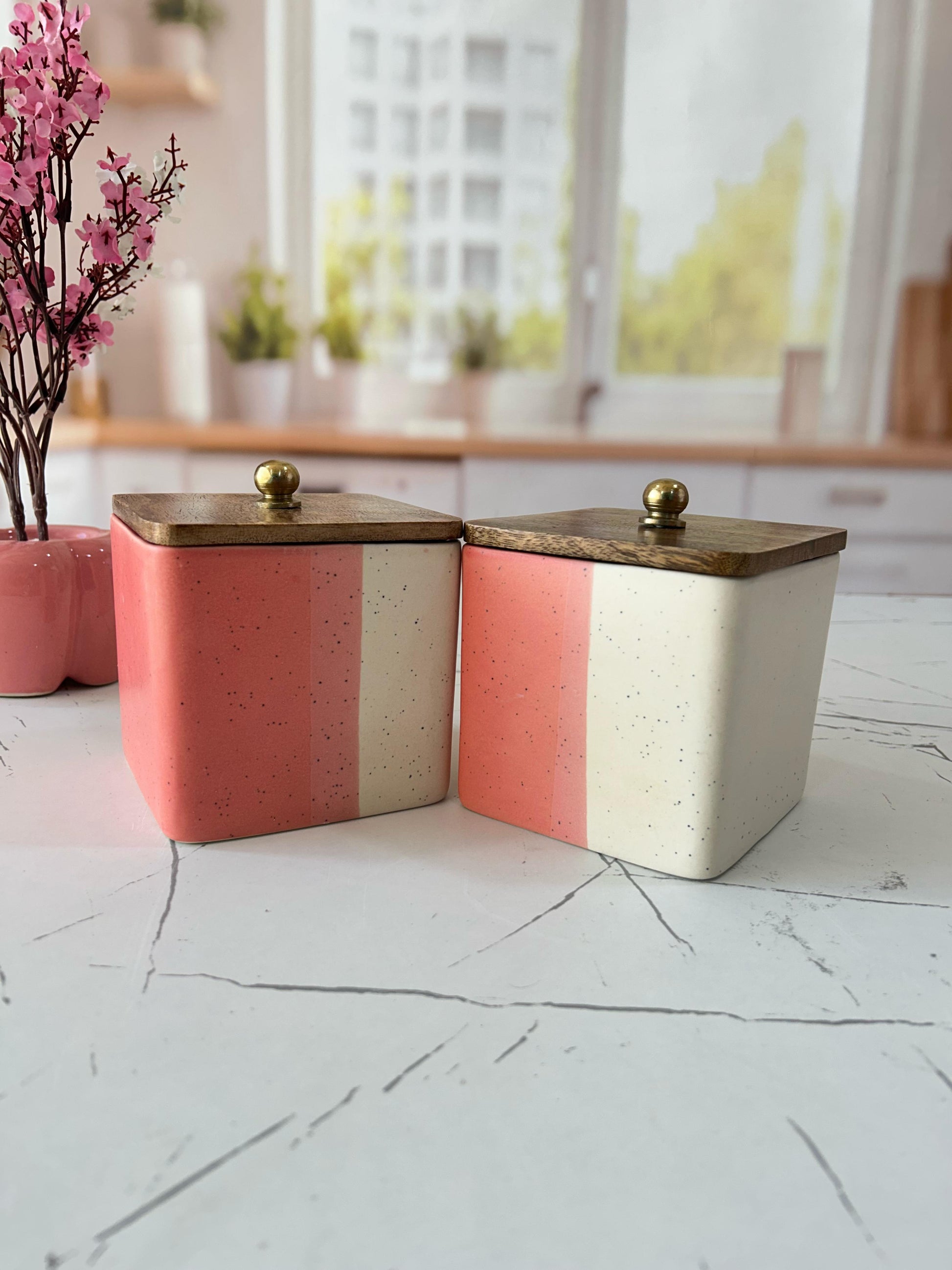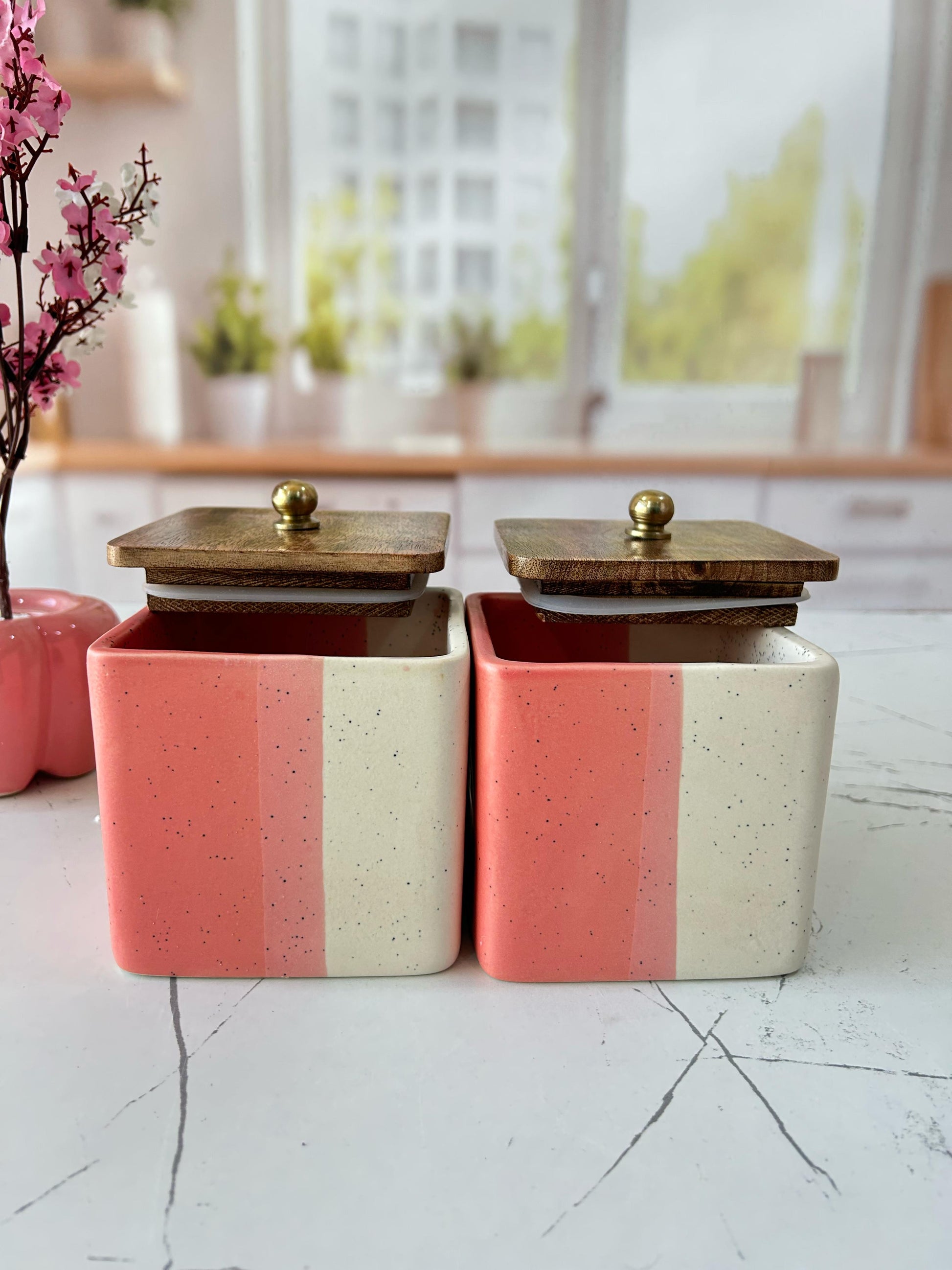 Pink Sweetheart Home Ceramic Airtight Containers with Wooden Lid