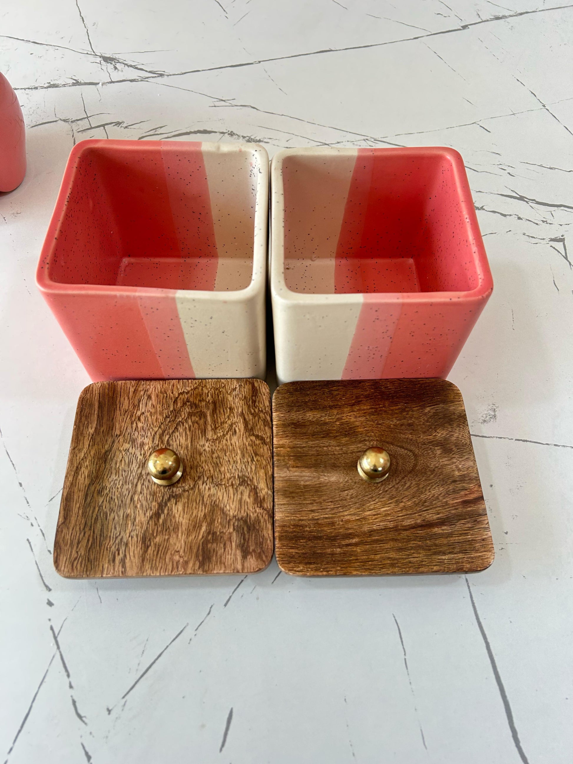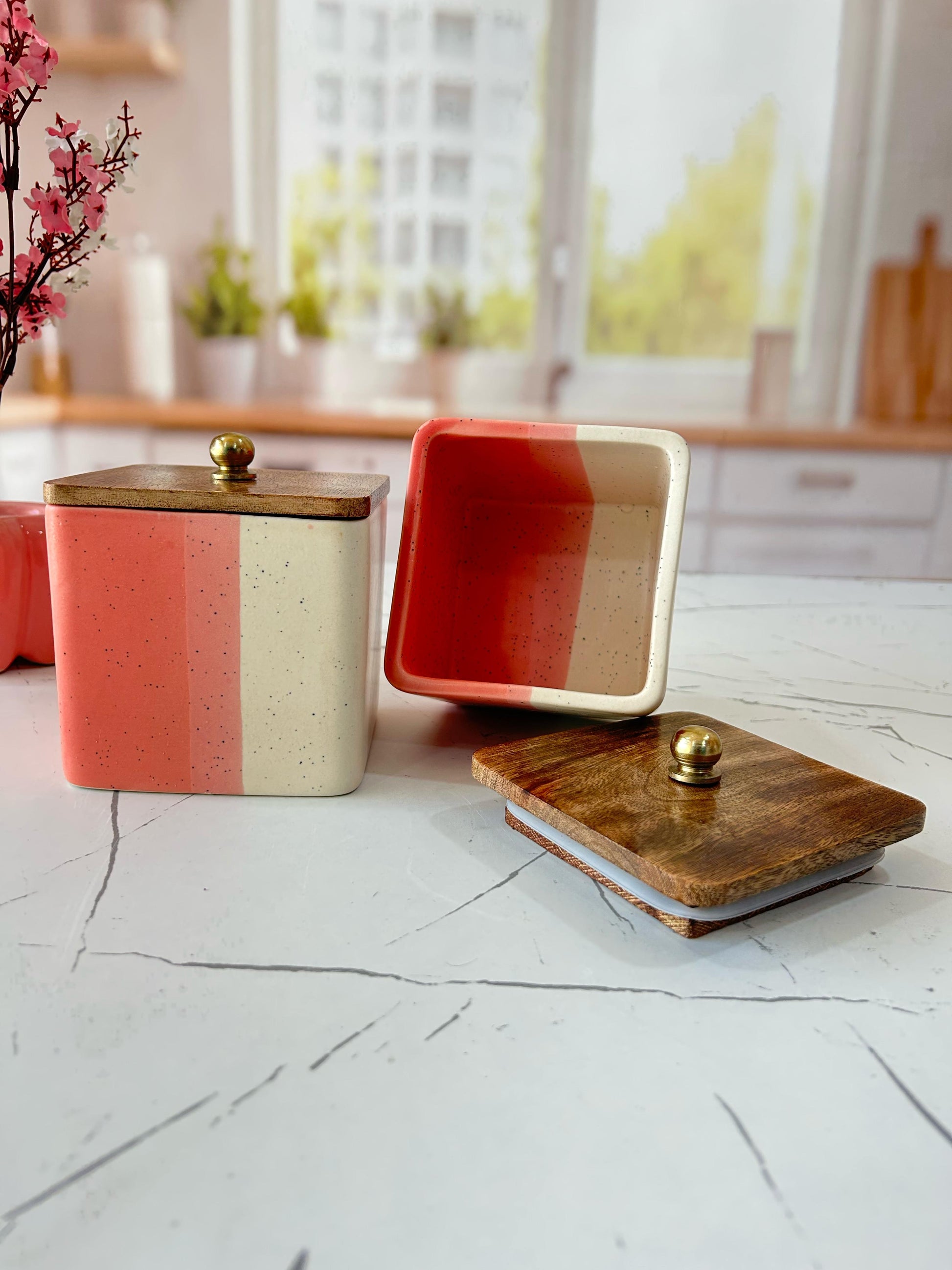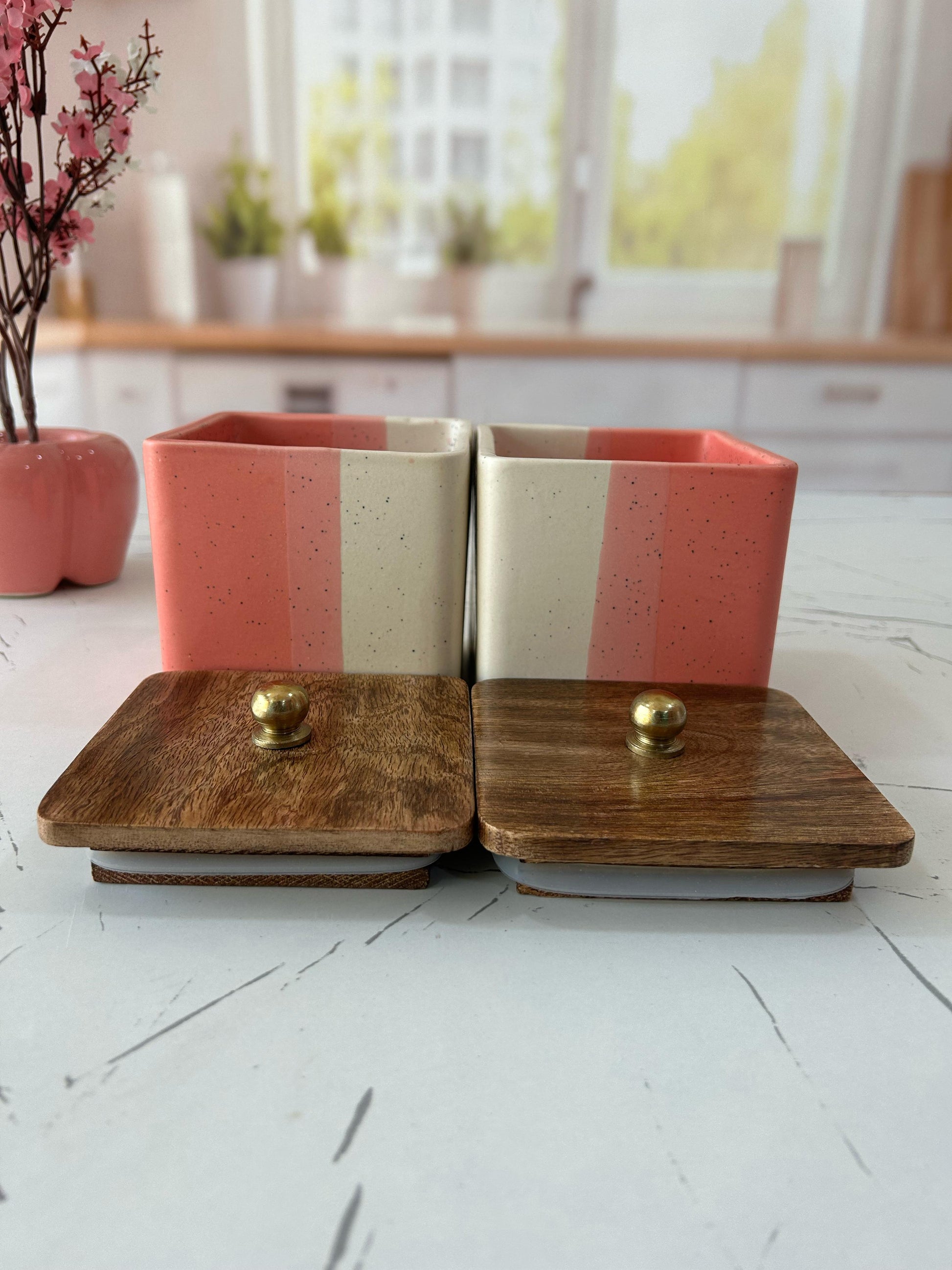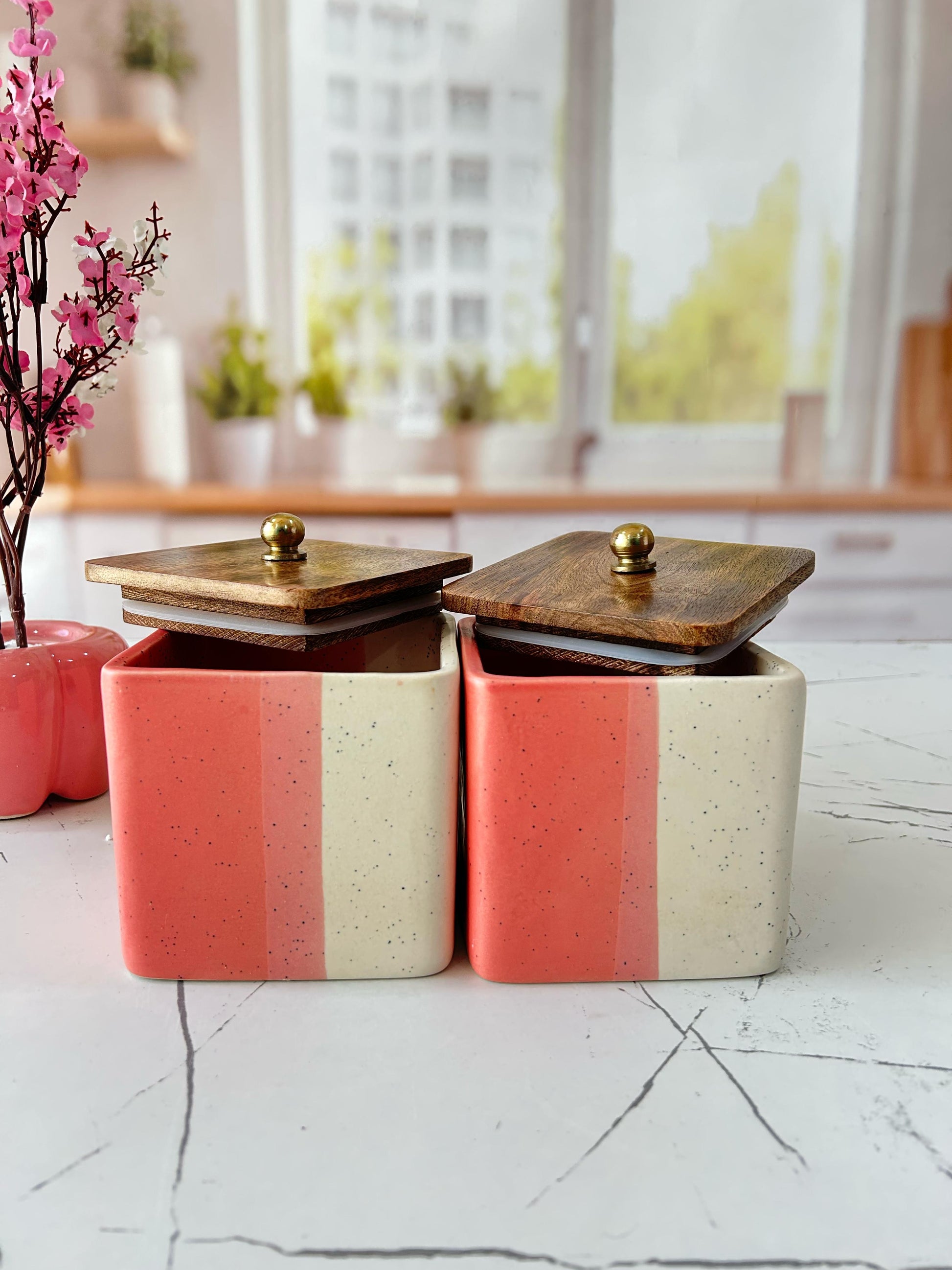 Pink Sweetheart Home Ceramic Airtight Containers with Wooden Lid