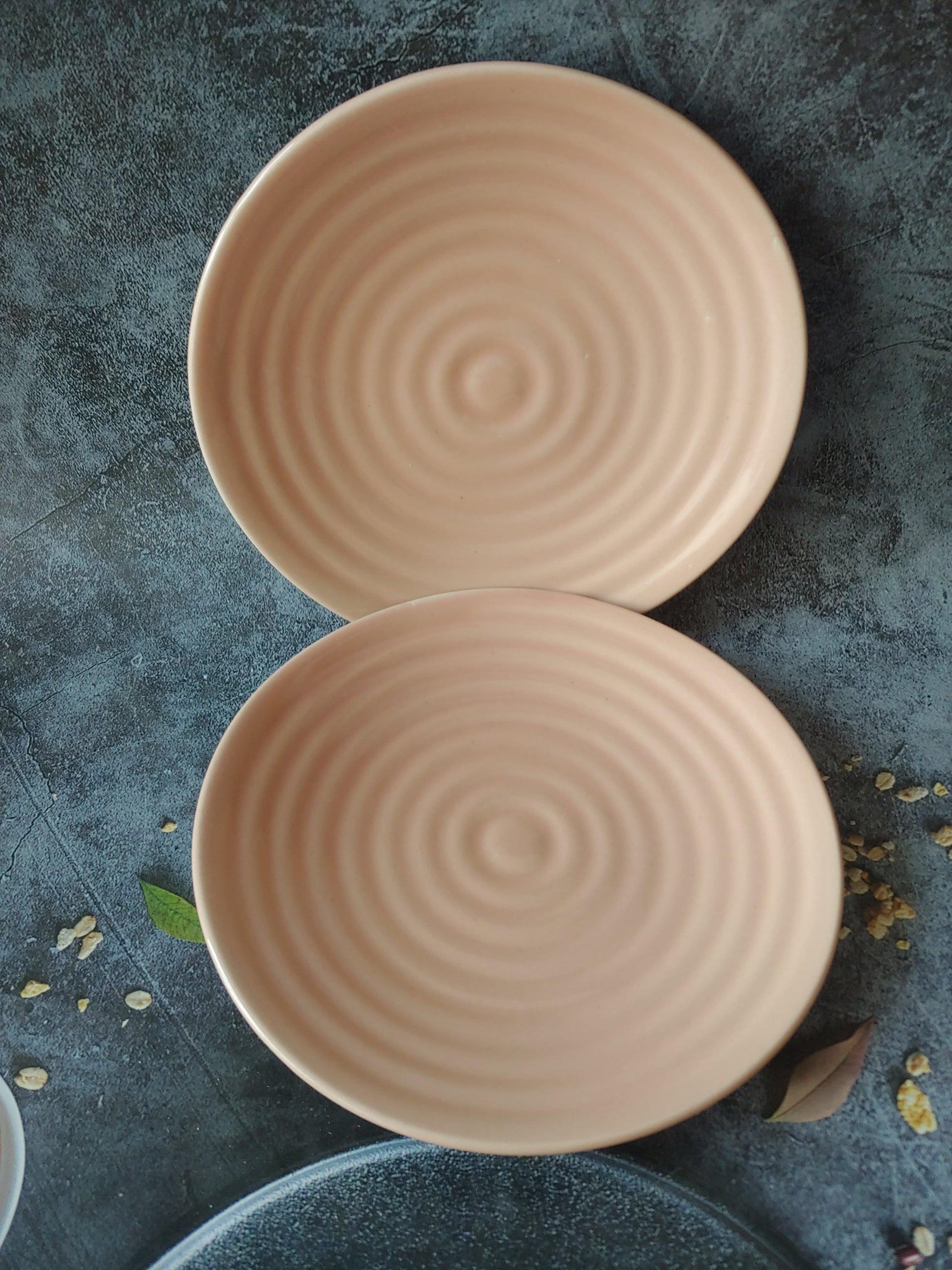 Rippled Pink Quarter Ceramic Plate Set of 2