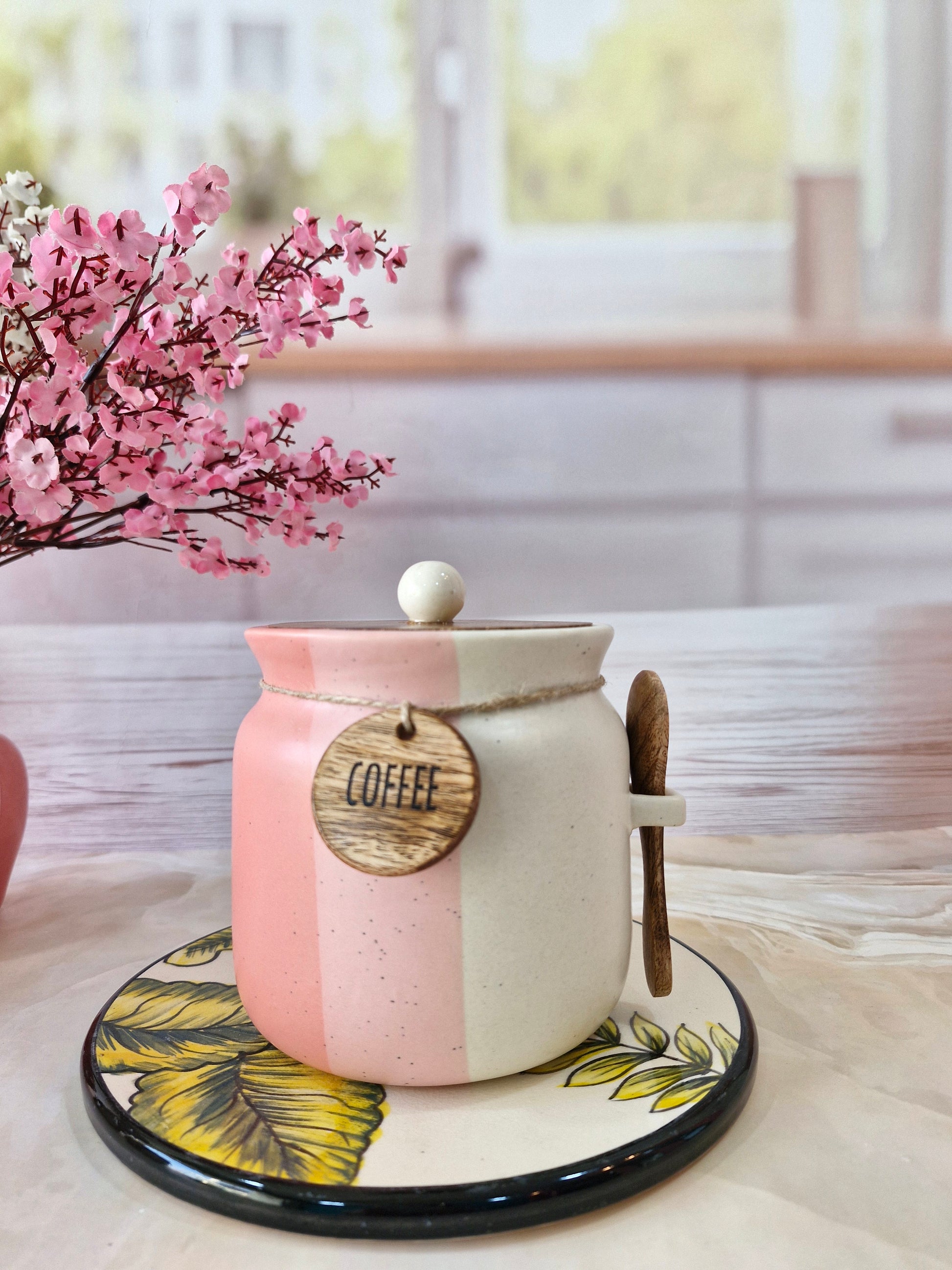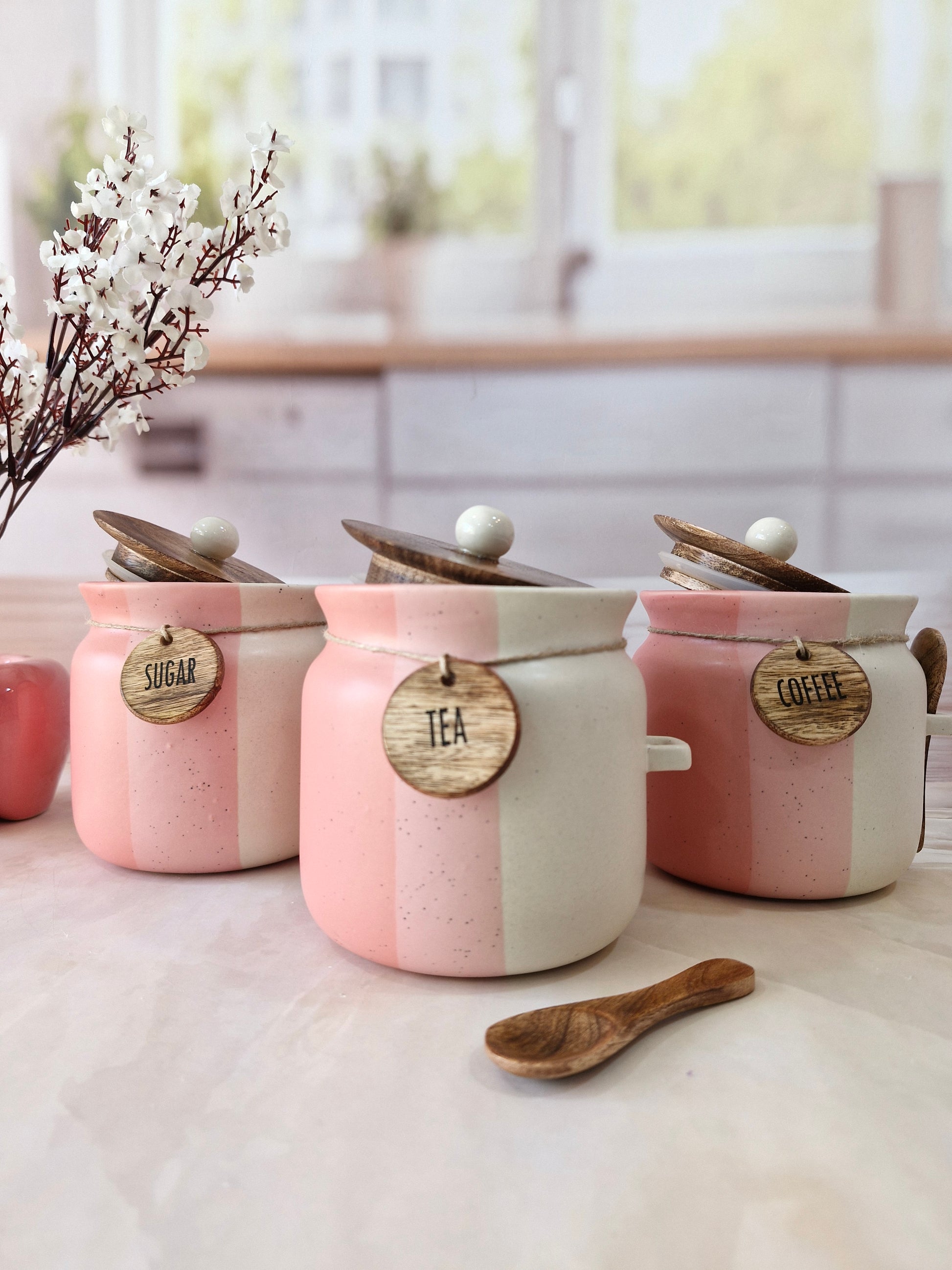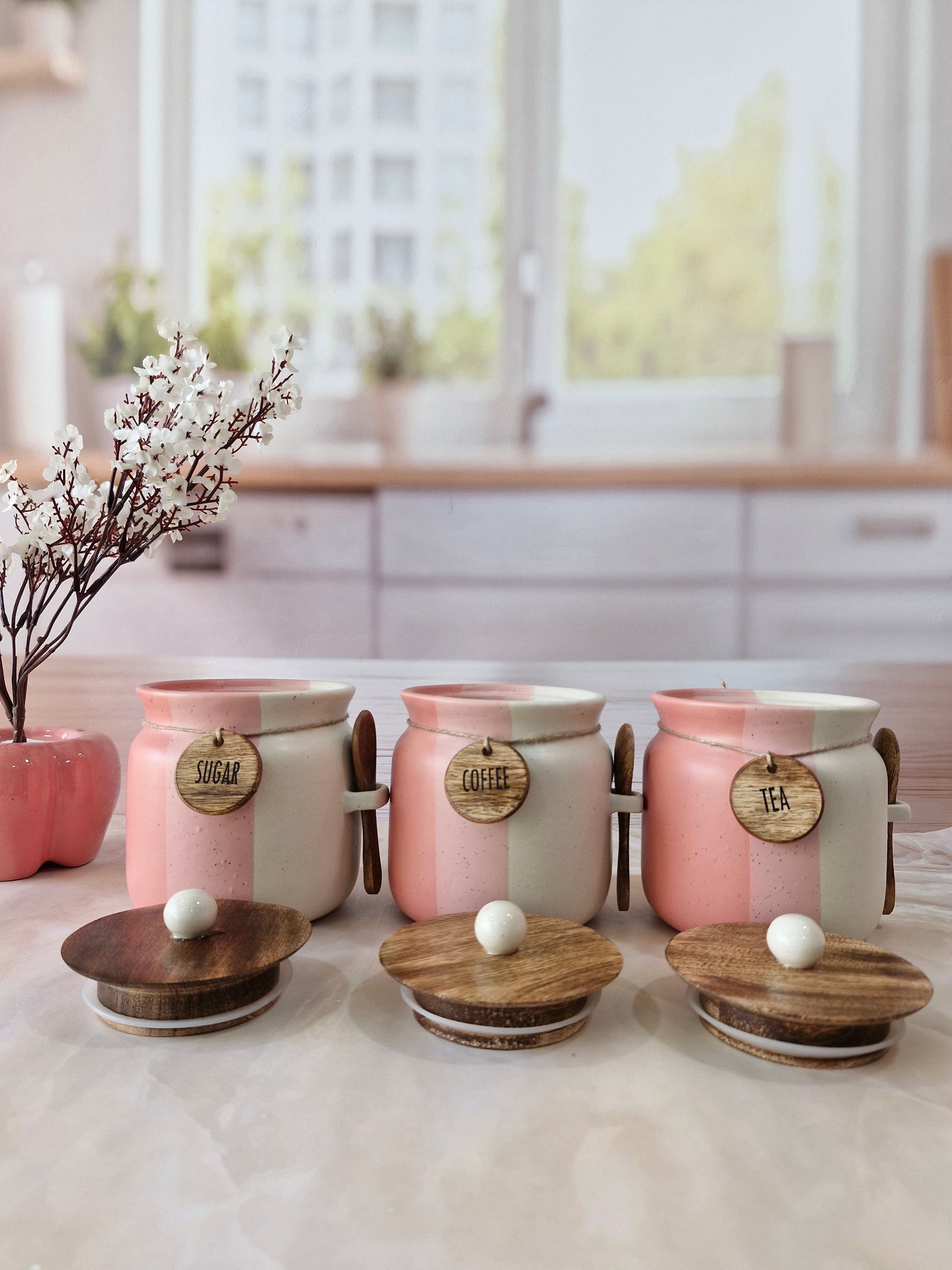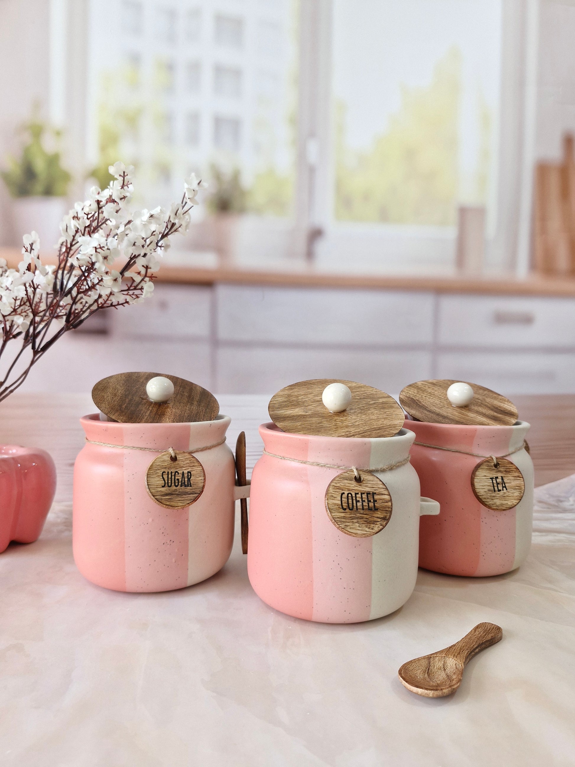 Rosy Blush Airtight Matka Solid Ceremic Tea,coffee, Sugar,Canisters 500ml