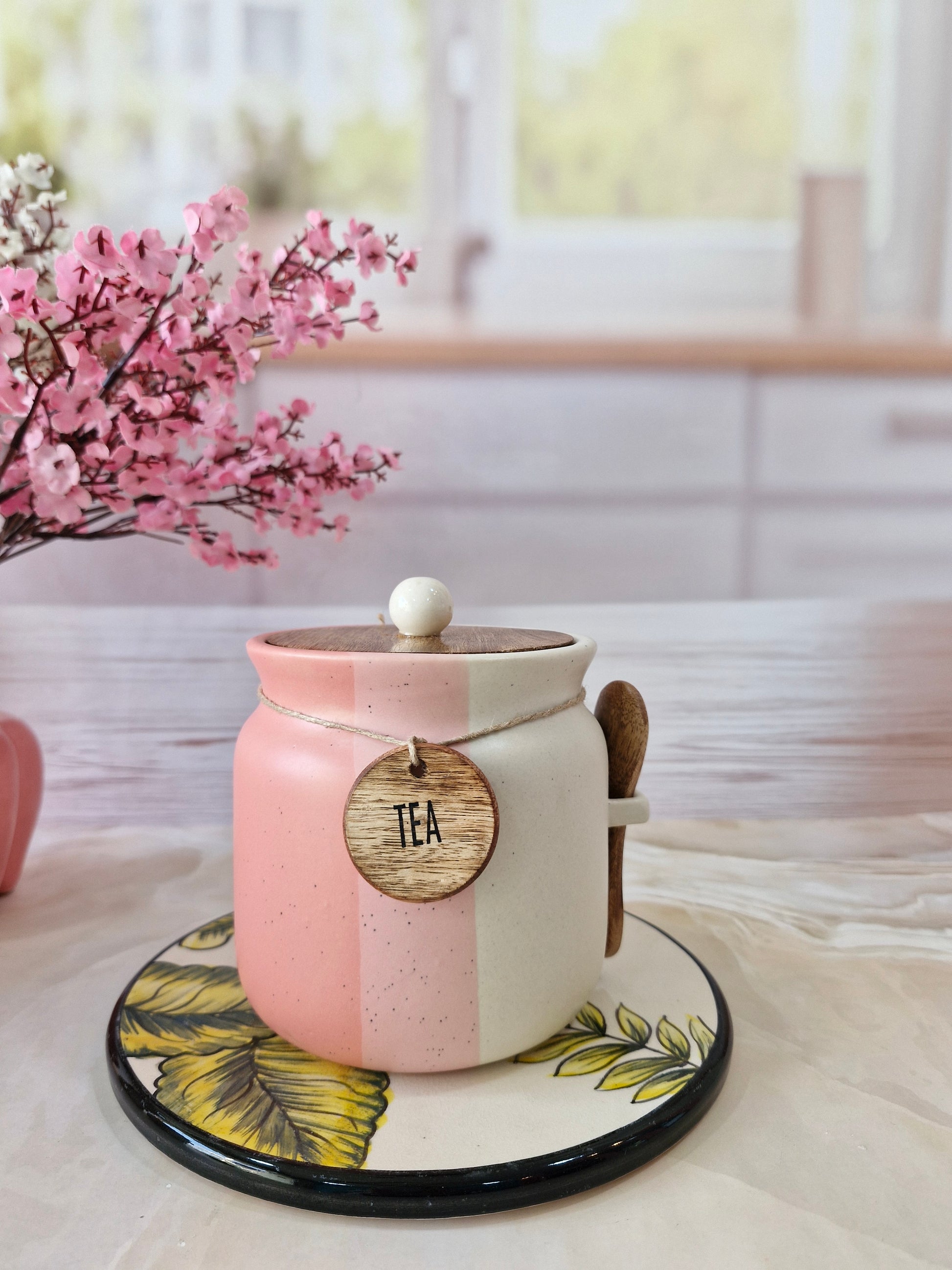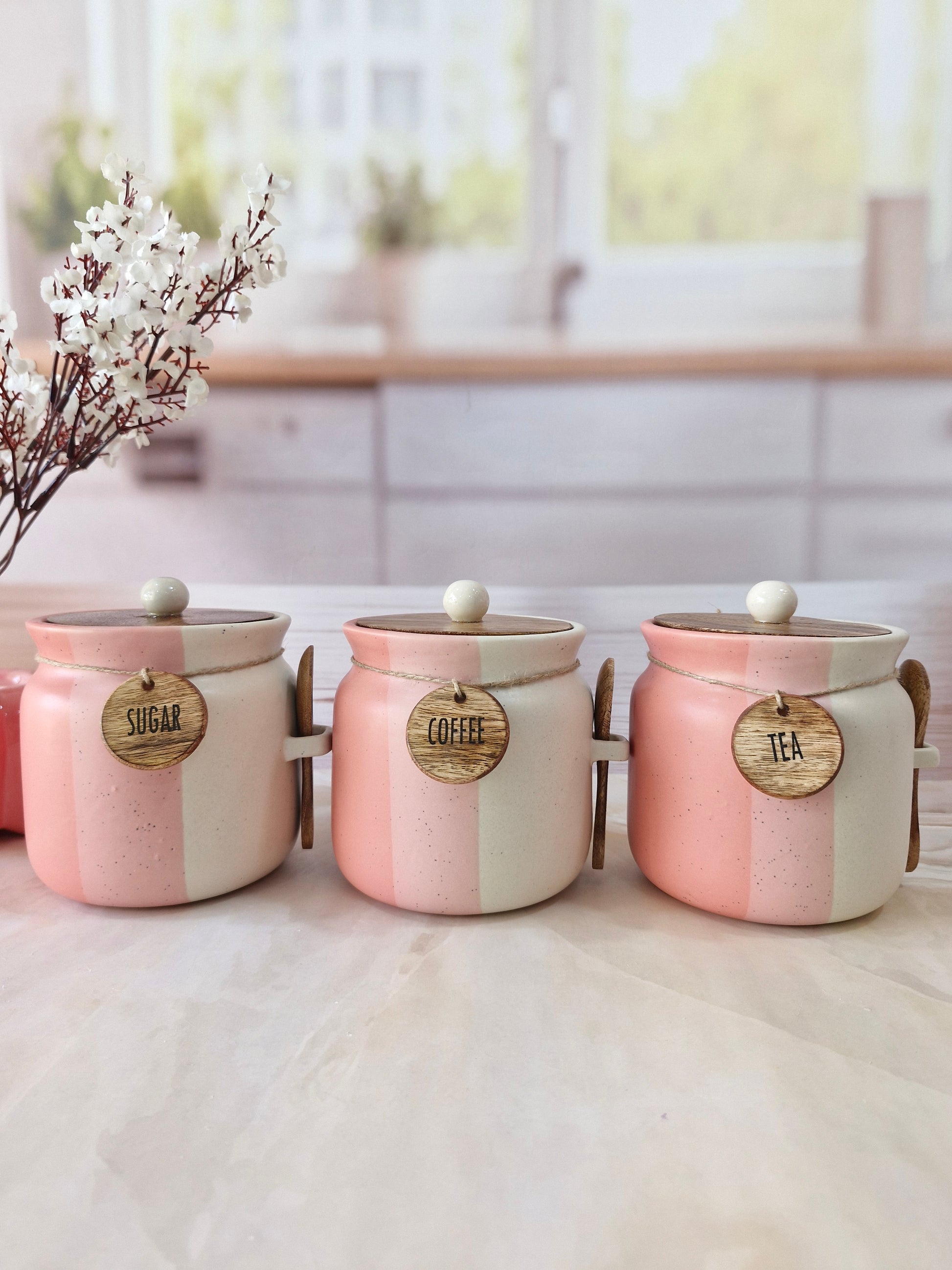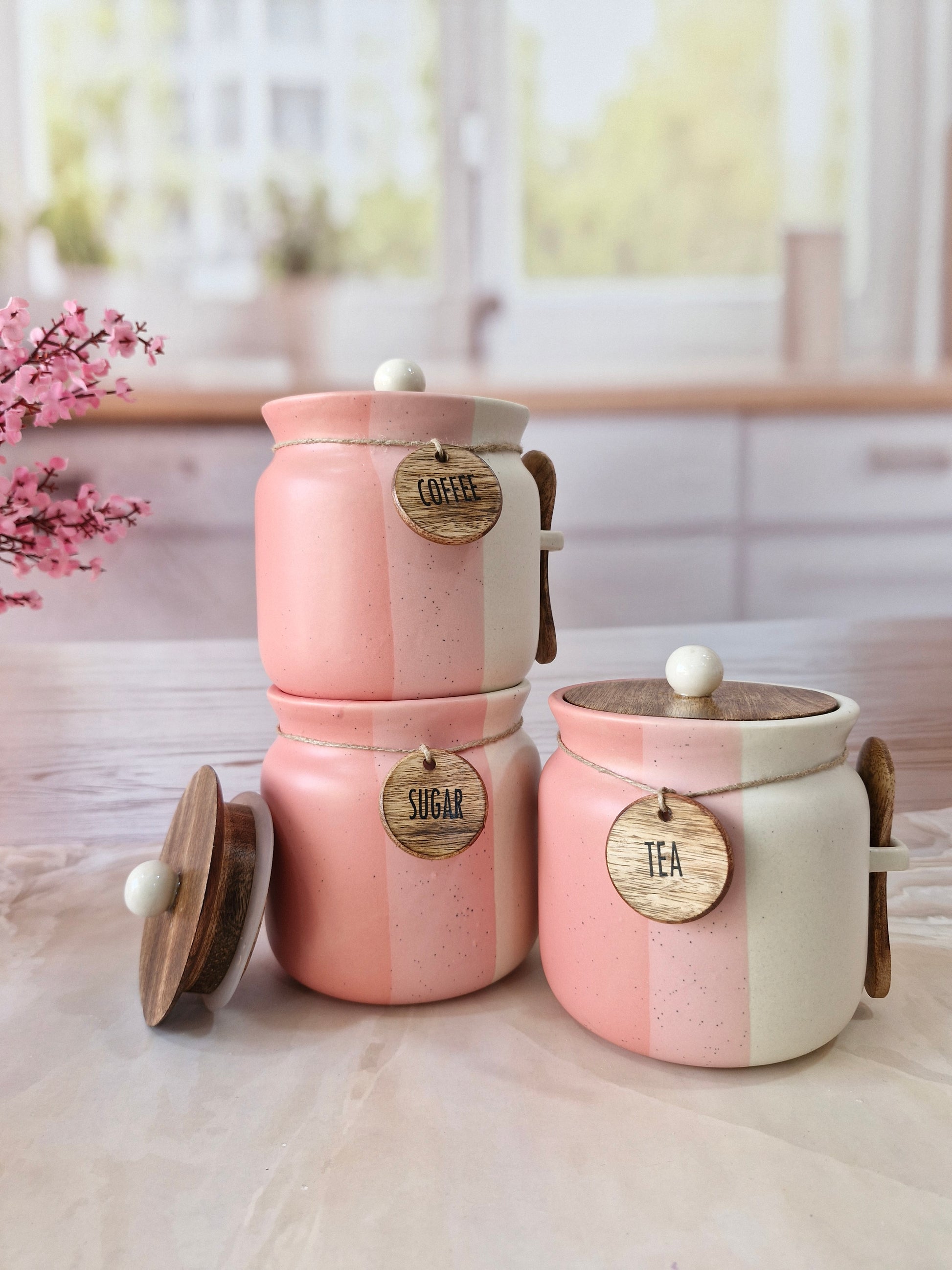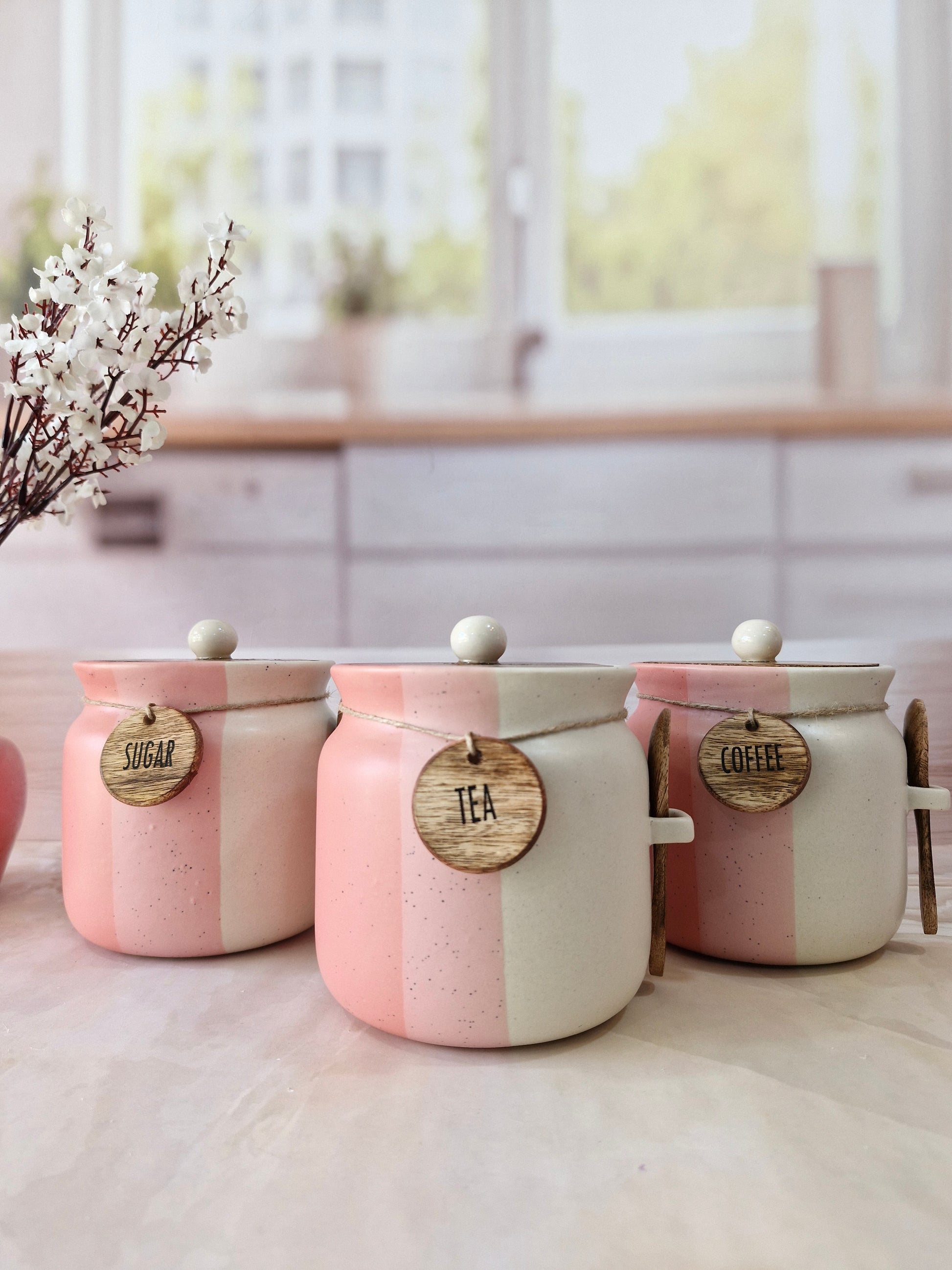 Rosy Blush Airtight Matka Solid Ceremic Tea,coffee, Sugar,Canisters 500ml