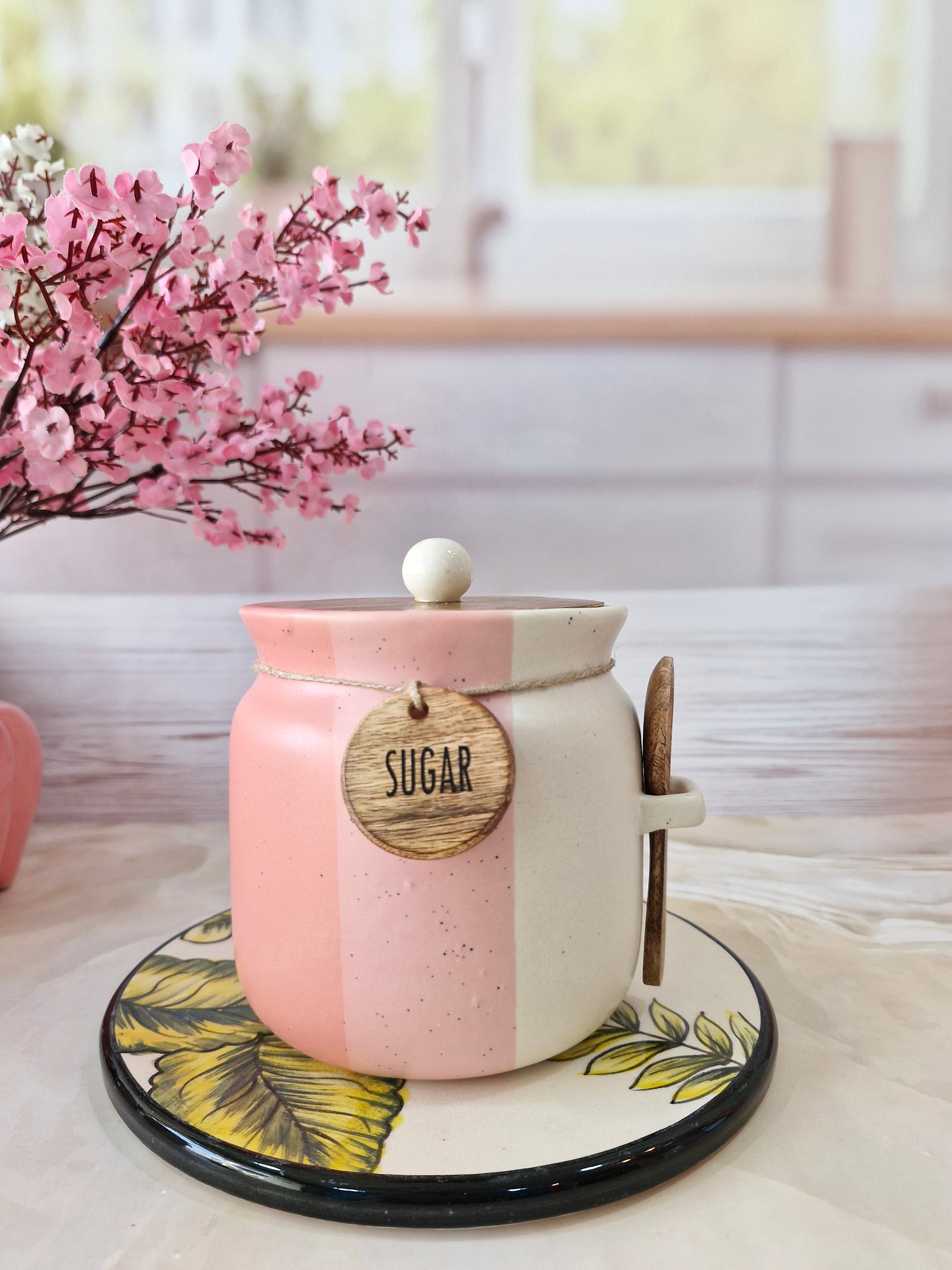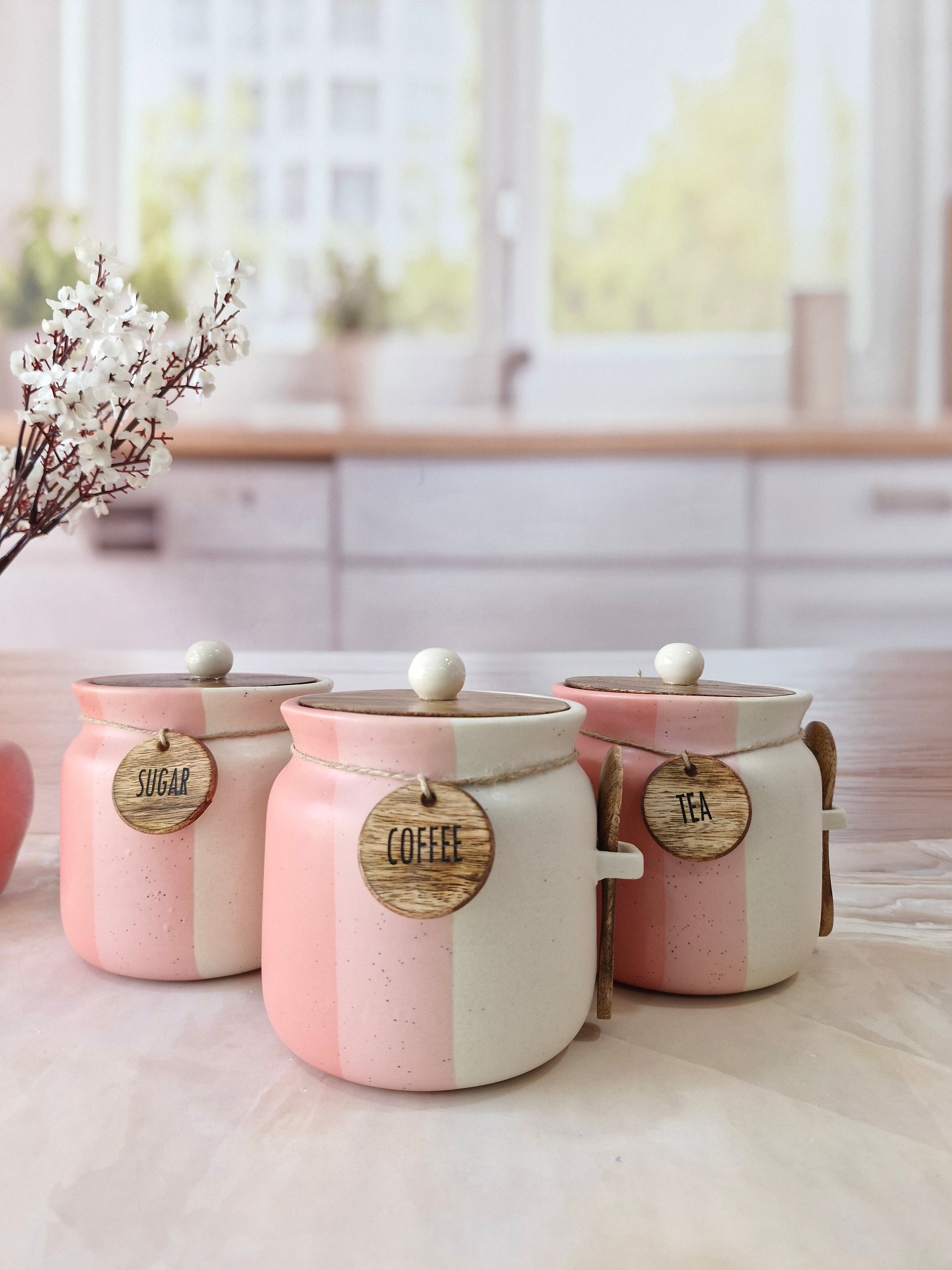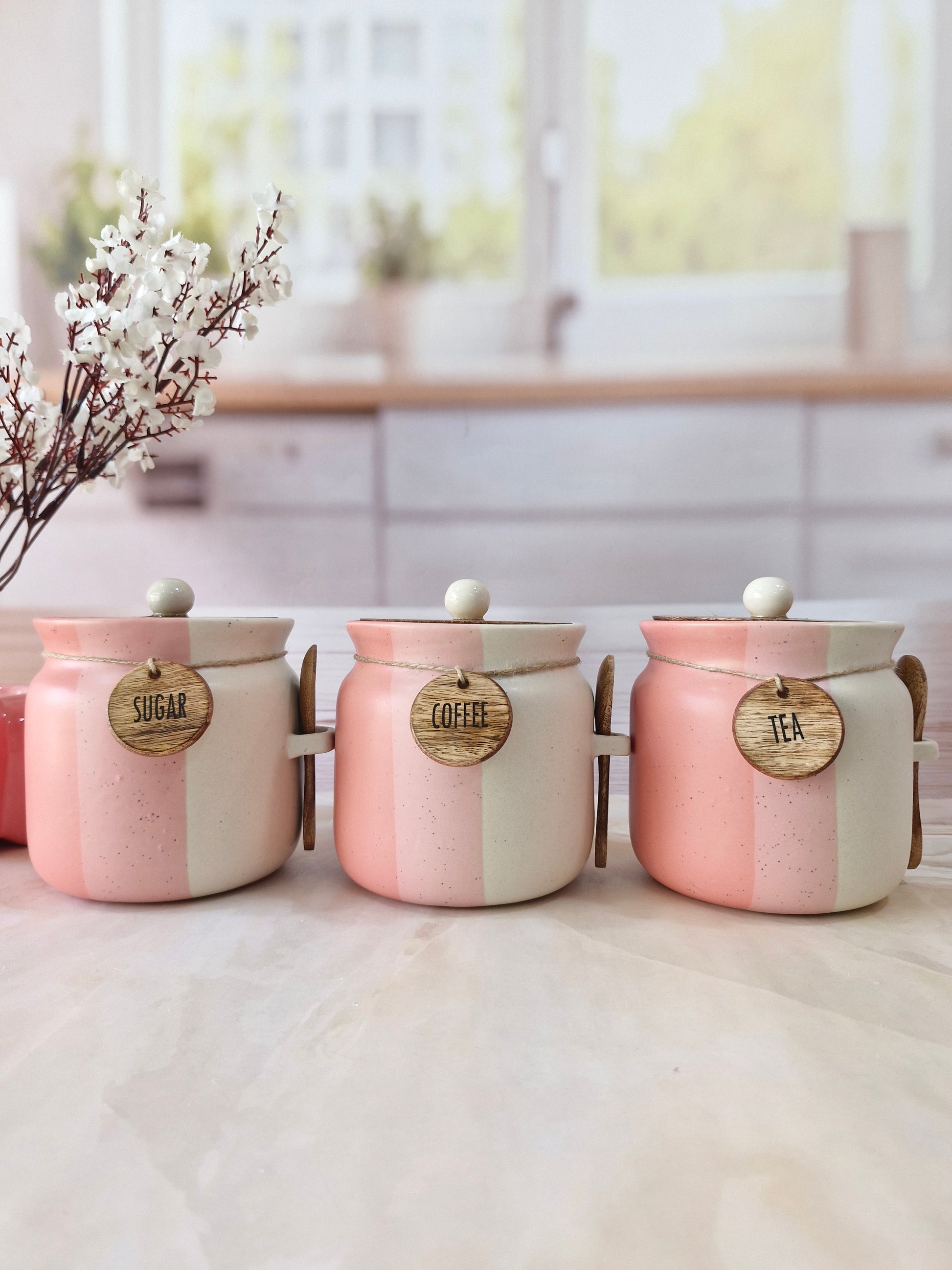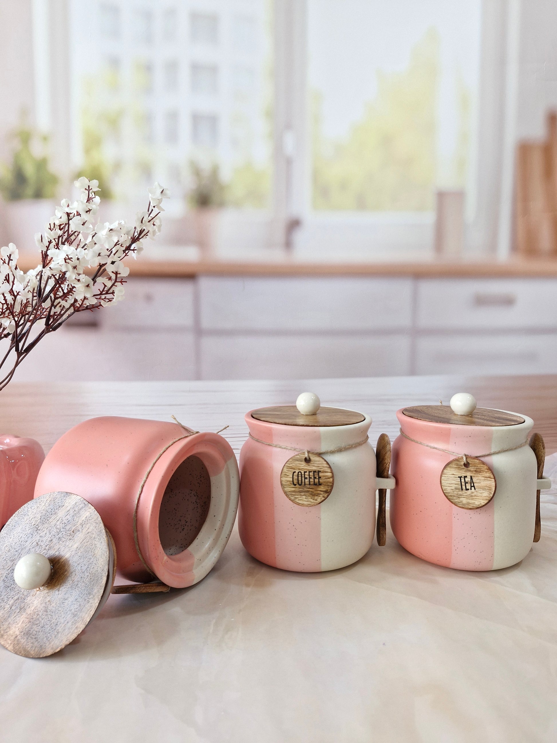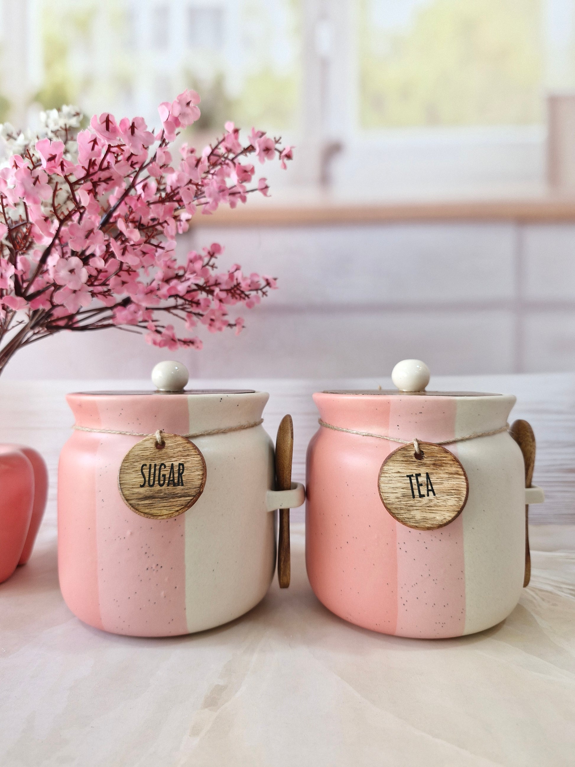 Rosy Blush Airtight Matka Solid Ceremic Tea,coffee, Sugar,Canisters 500ml