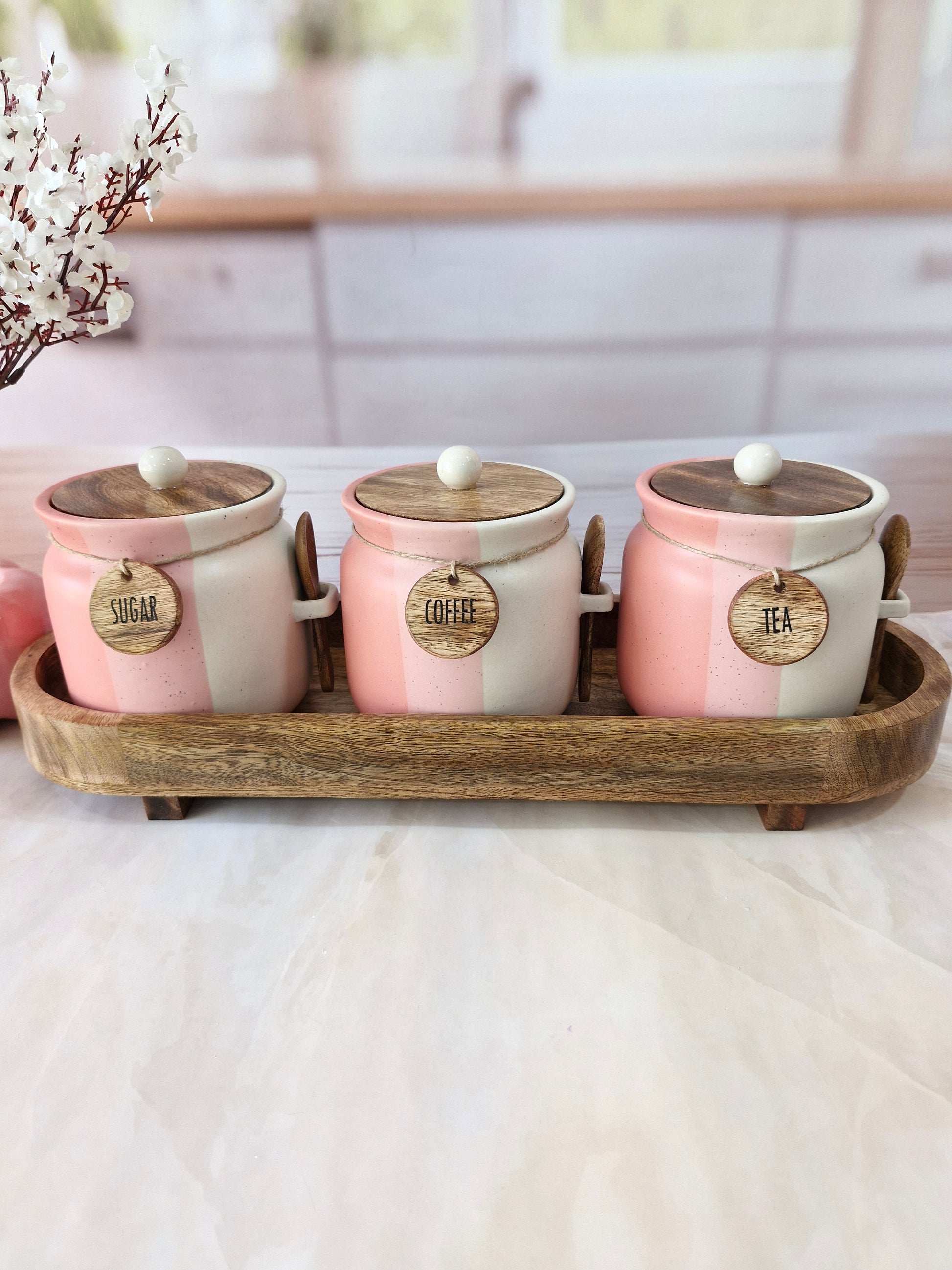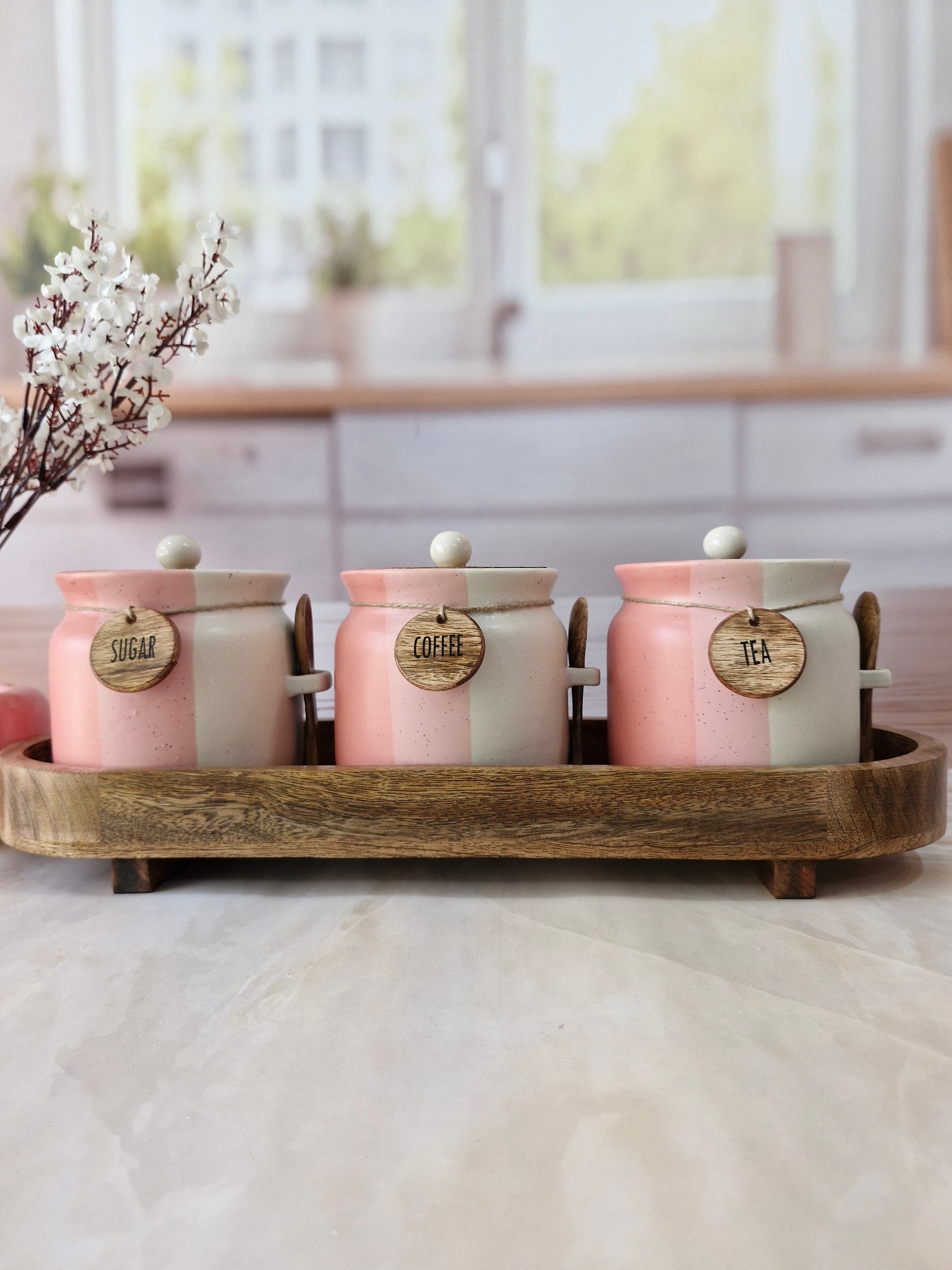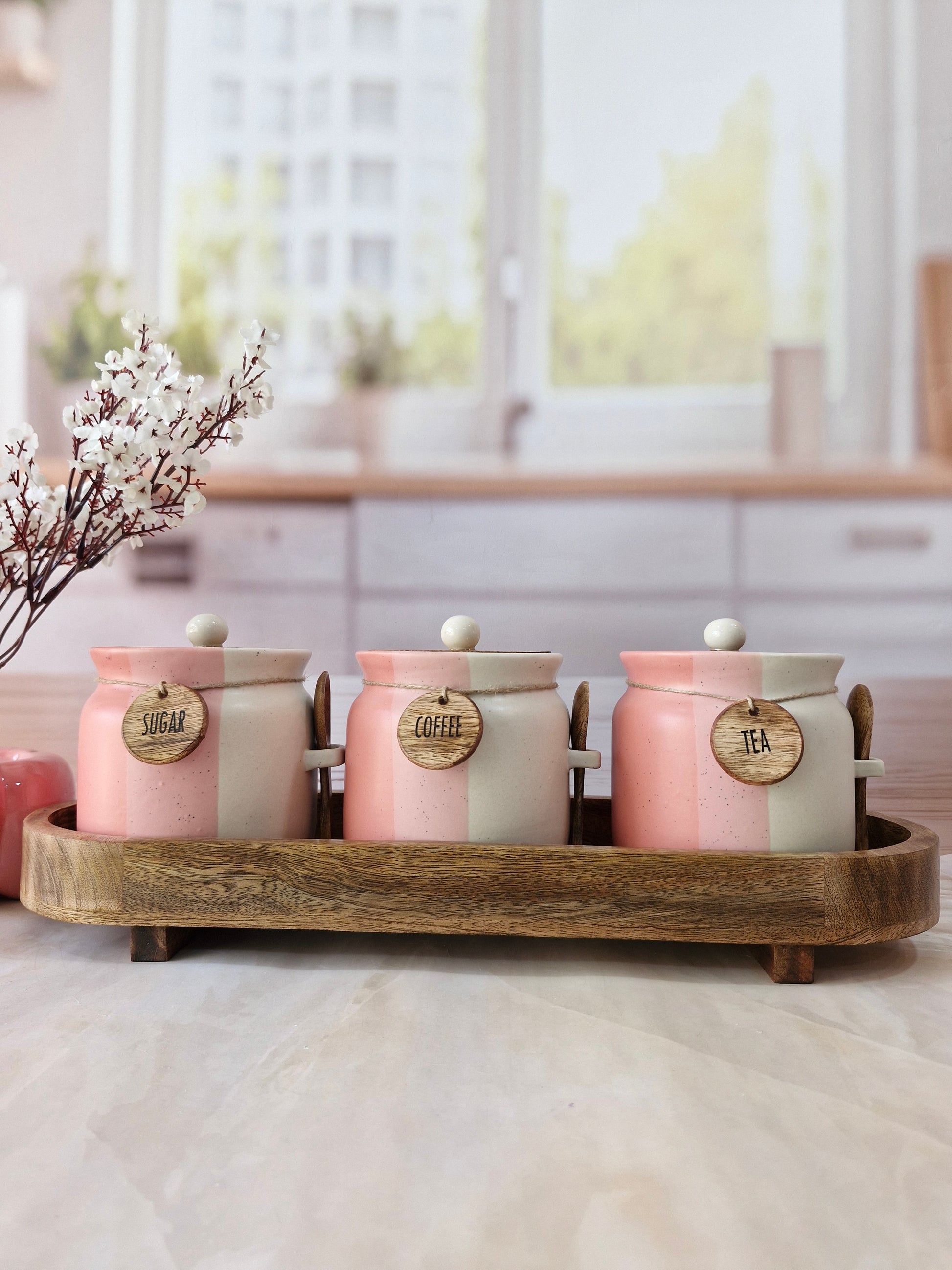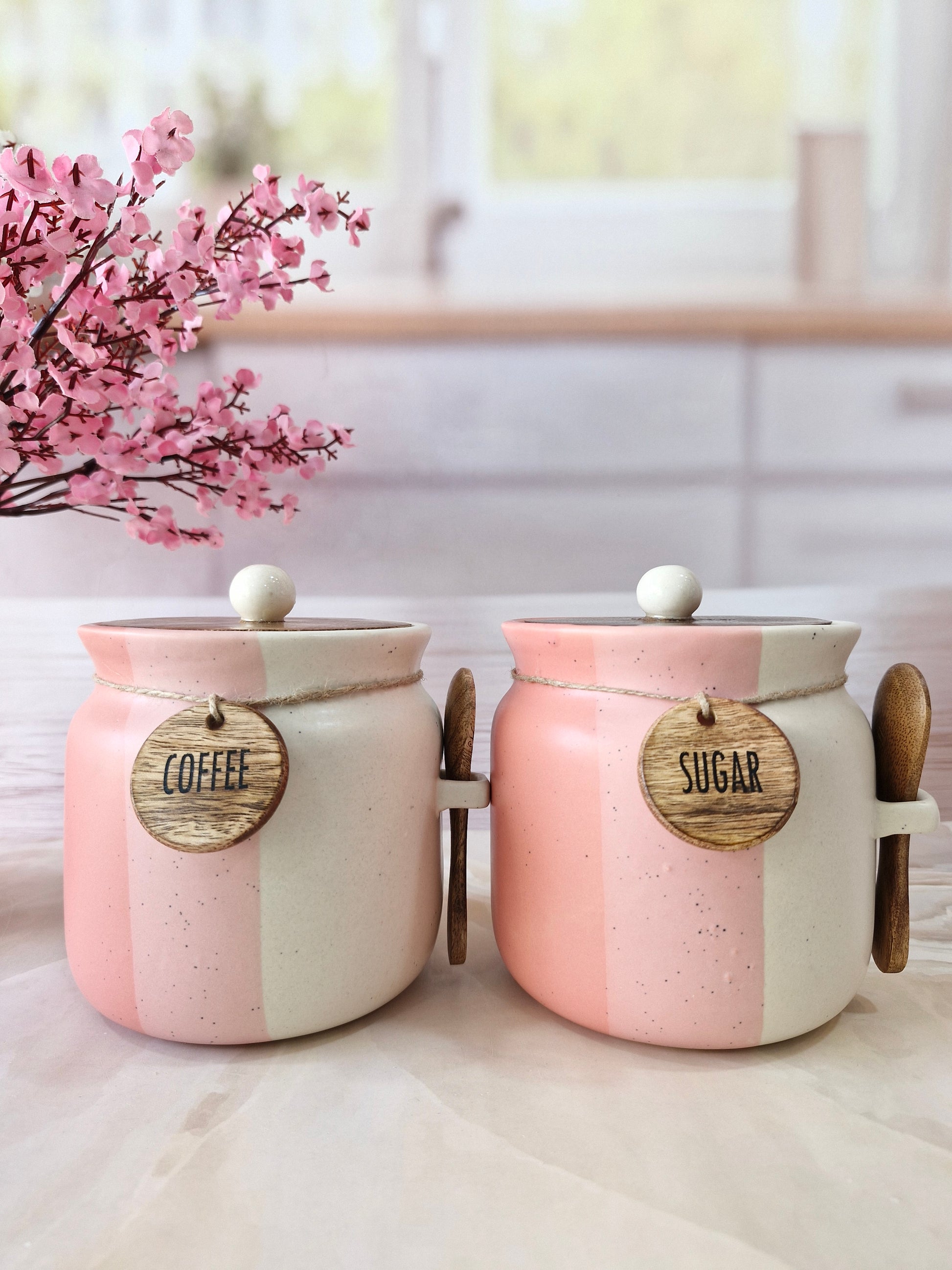 Rosy Blush Airtight Matka Solid Ceremic Tea,coffee, Sugar,Canisters 500ml