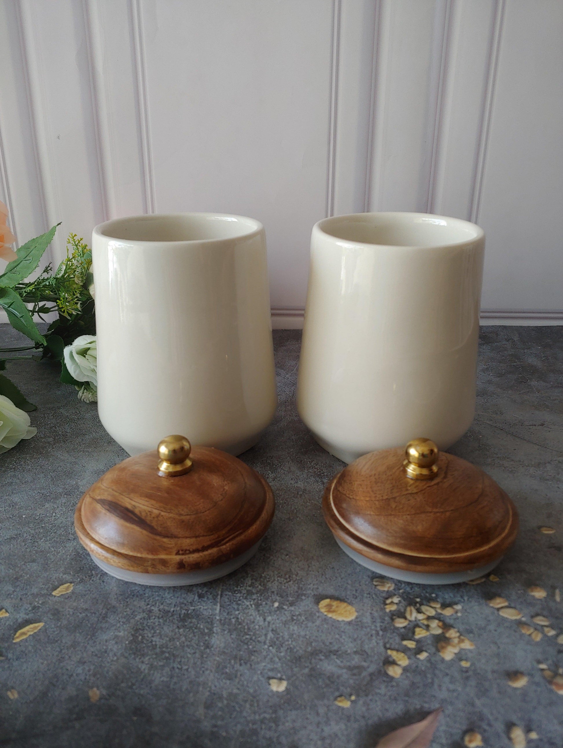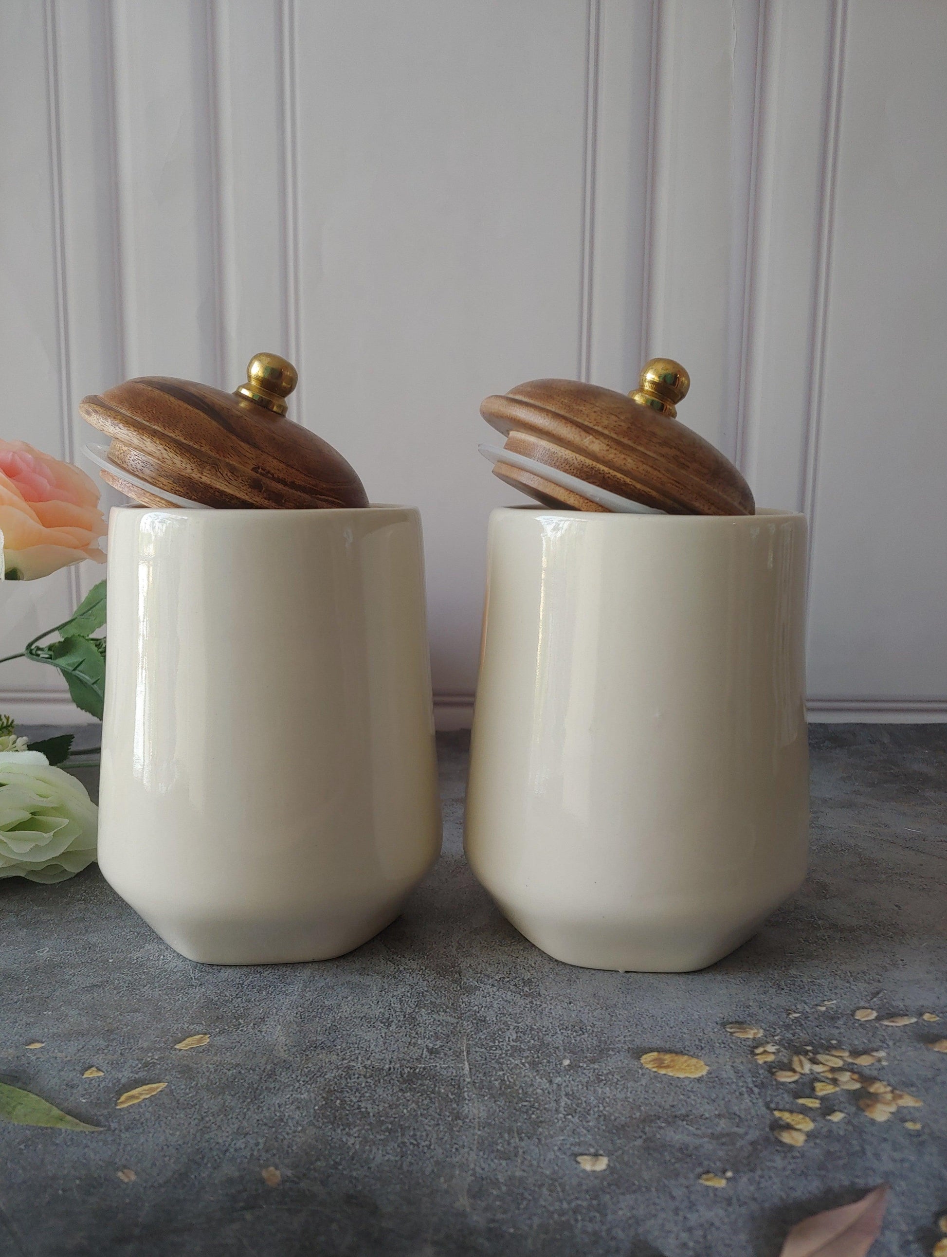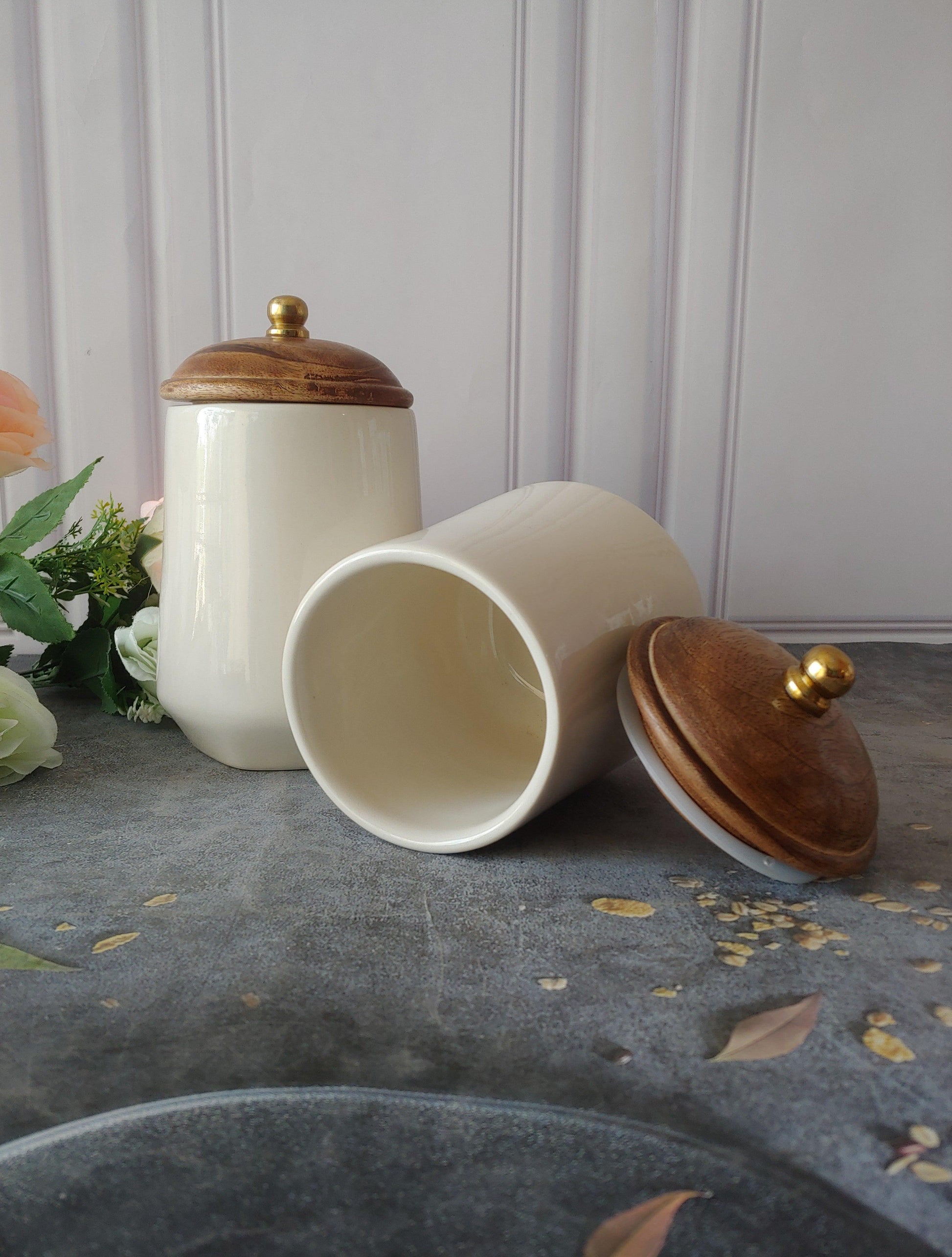 Secret Ivory Airtight Ceramic Jar Set of 2 (1kg) Holds Spices and cookie