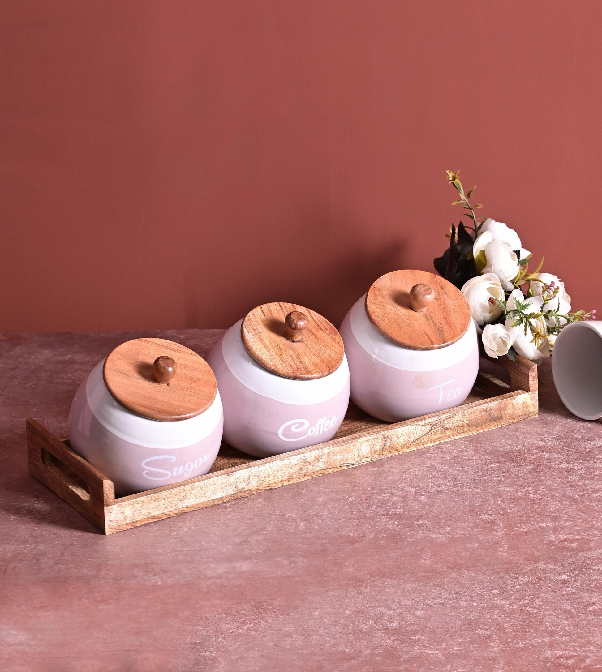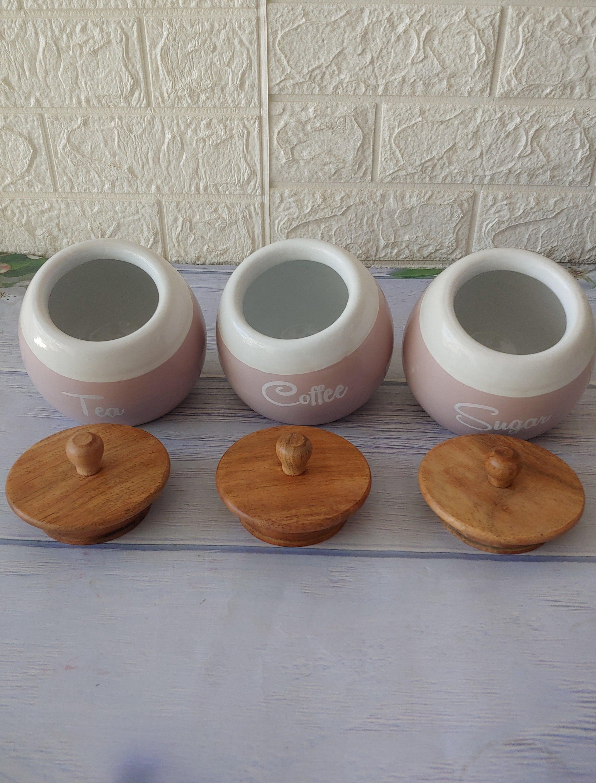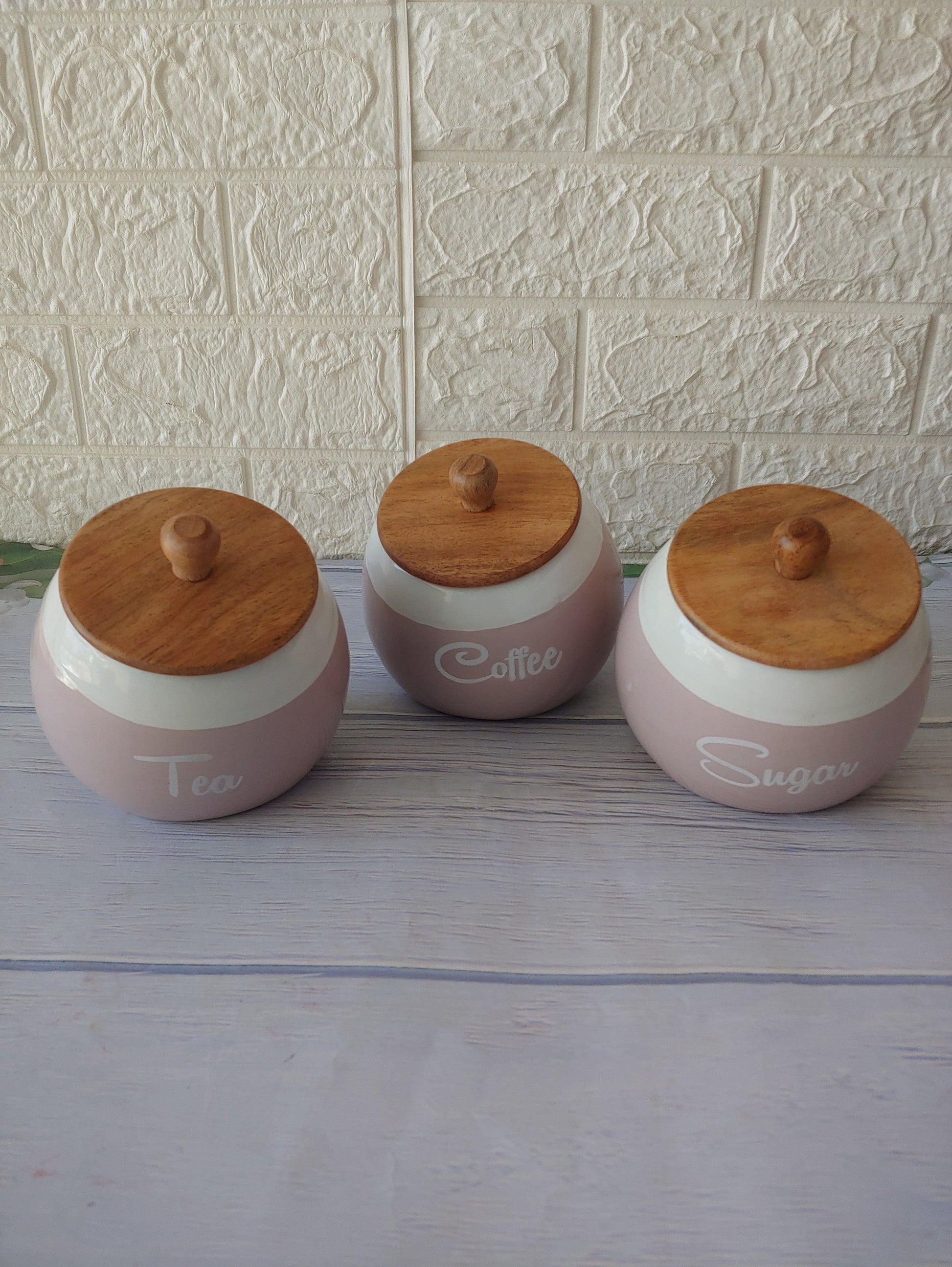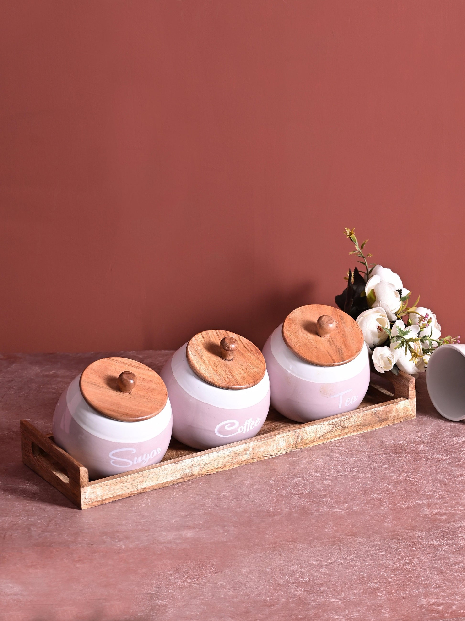 Slanted Baby Pink Ceramic Coffee, Sugar, and Tea Canister Set 500ml