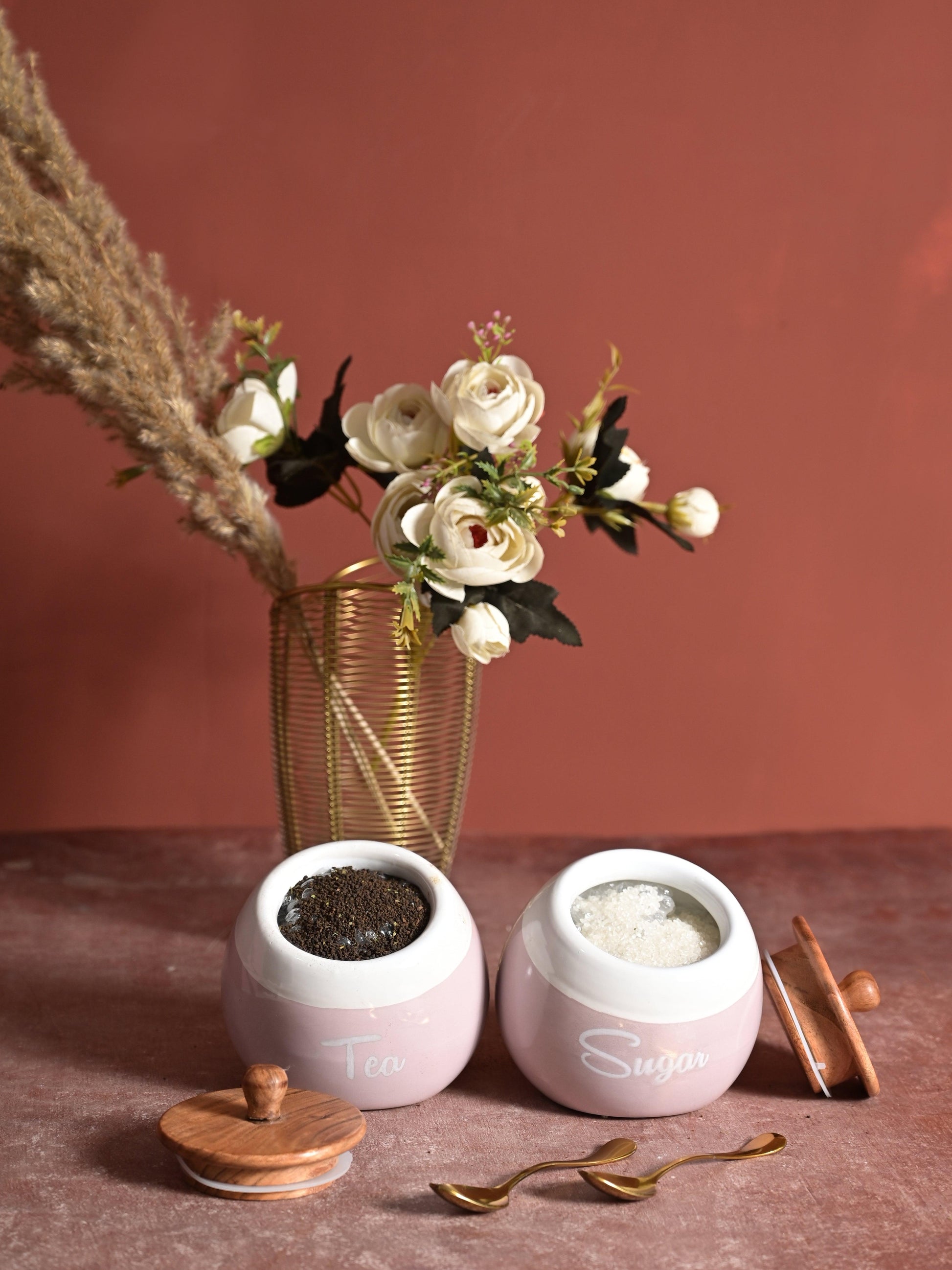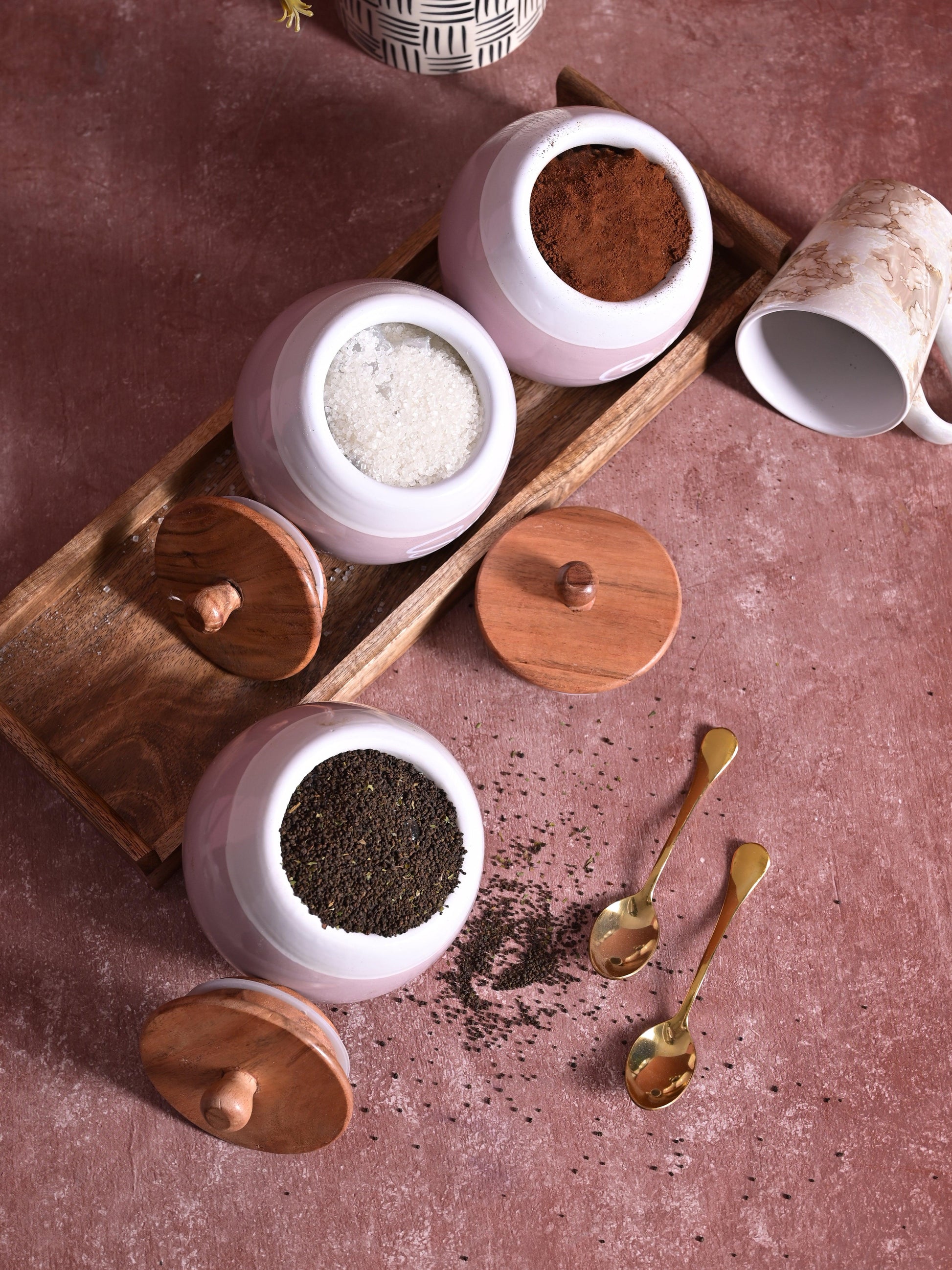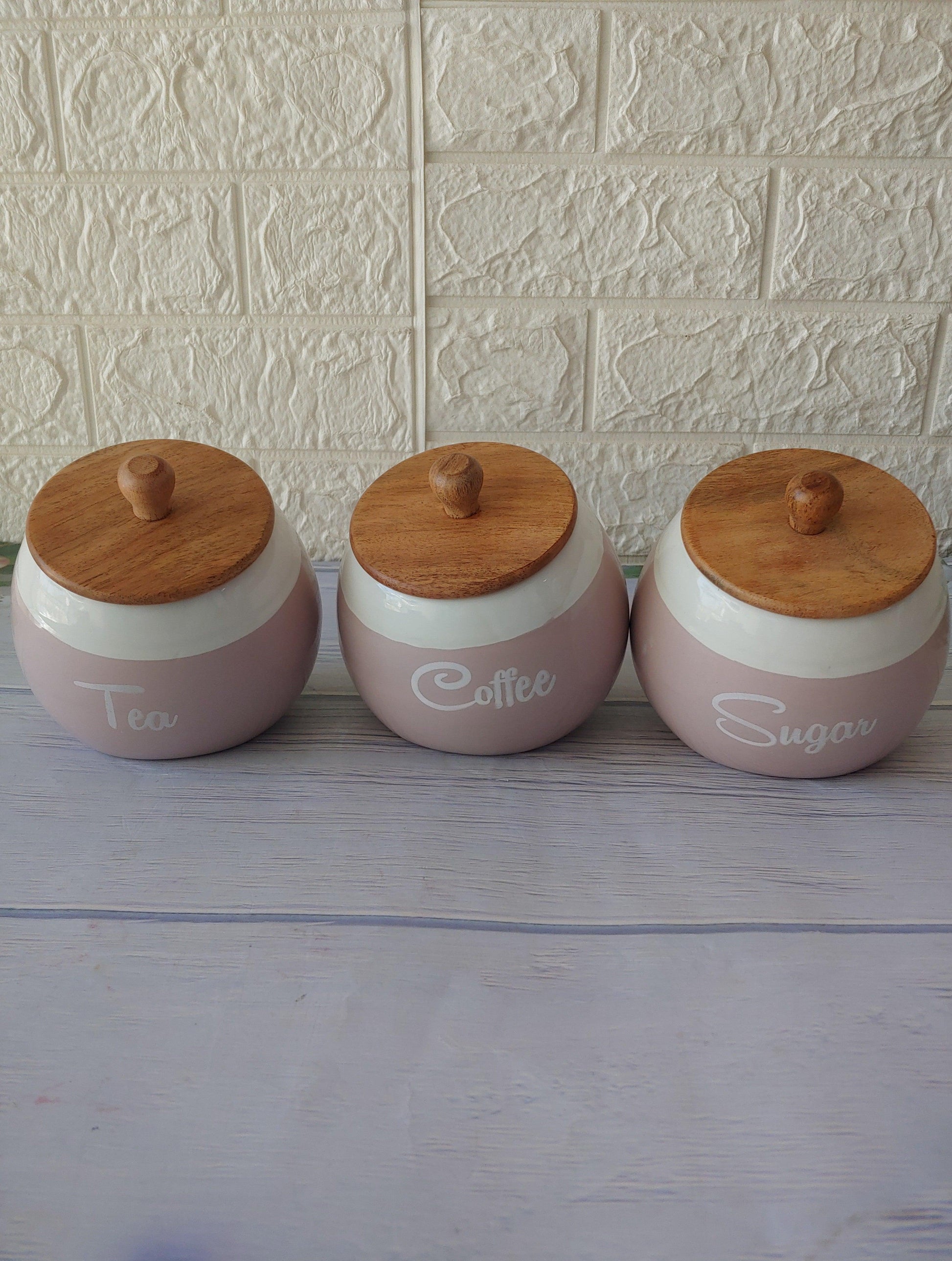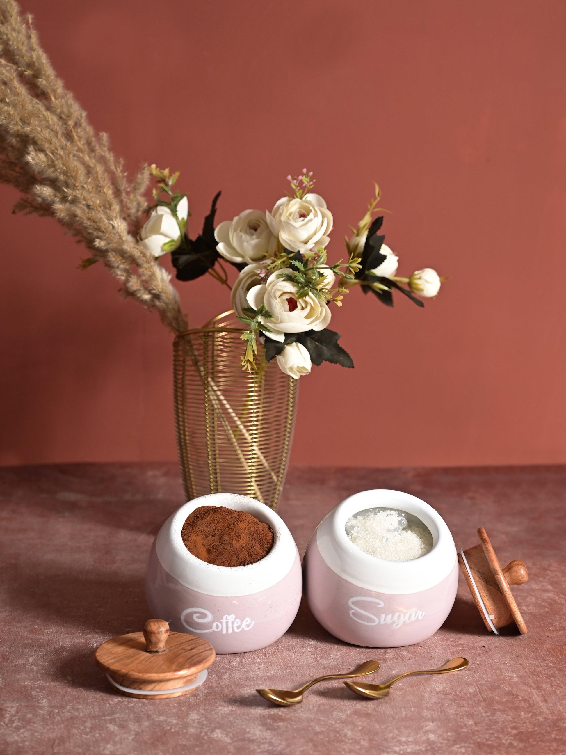 Slanted Baby Pink Ceramic Coffee, Sugar, and Tea Canister Set 500ml