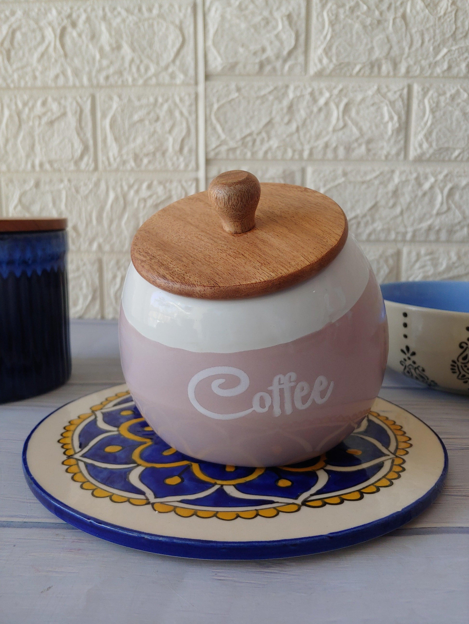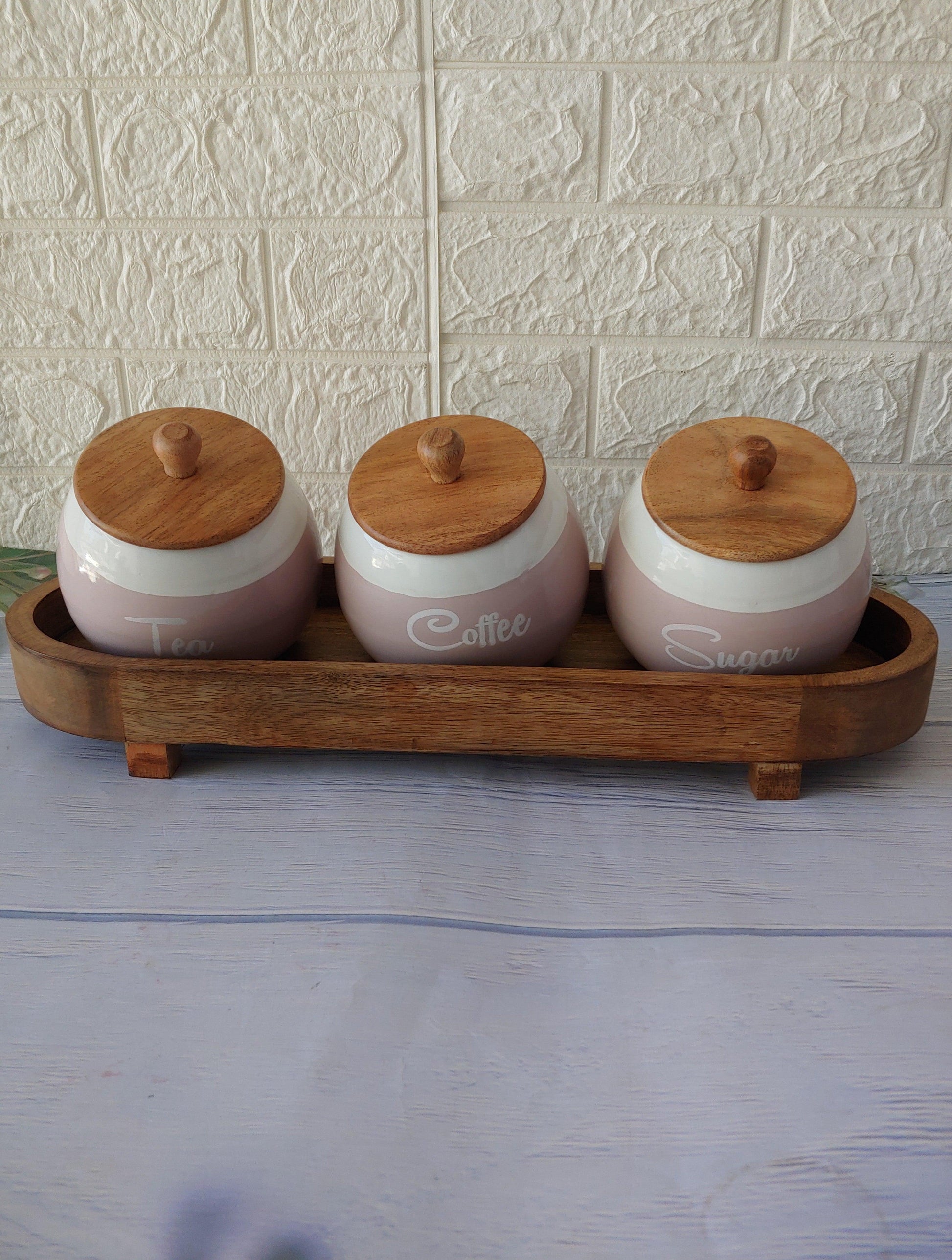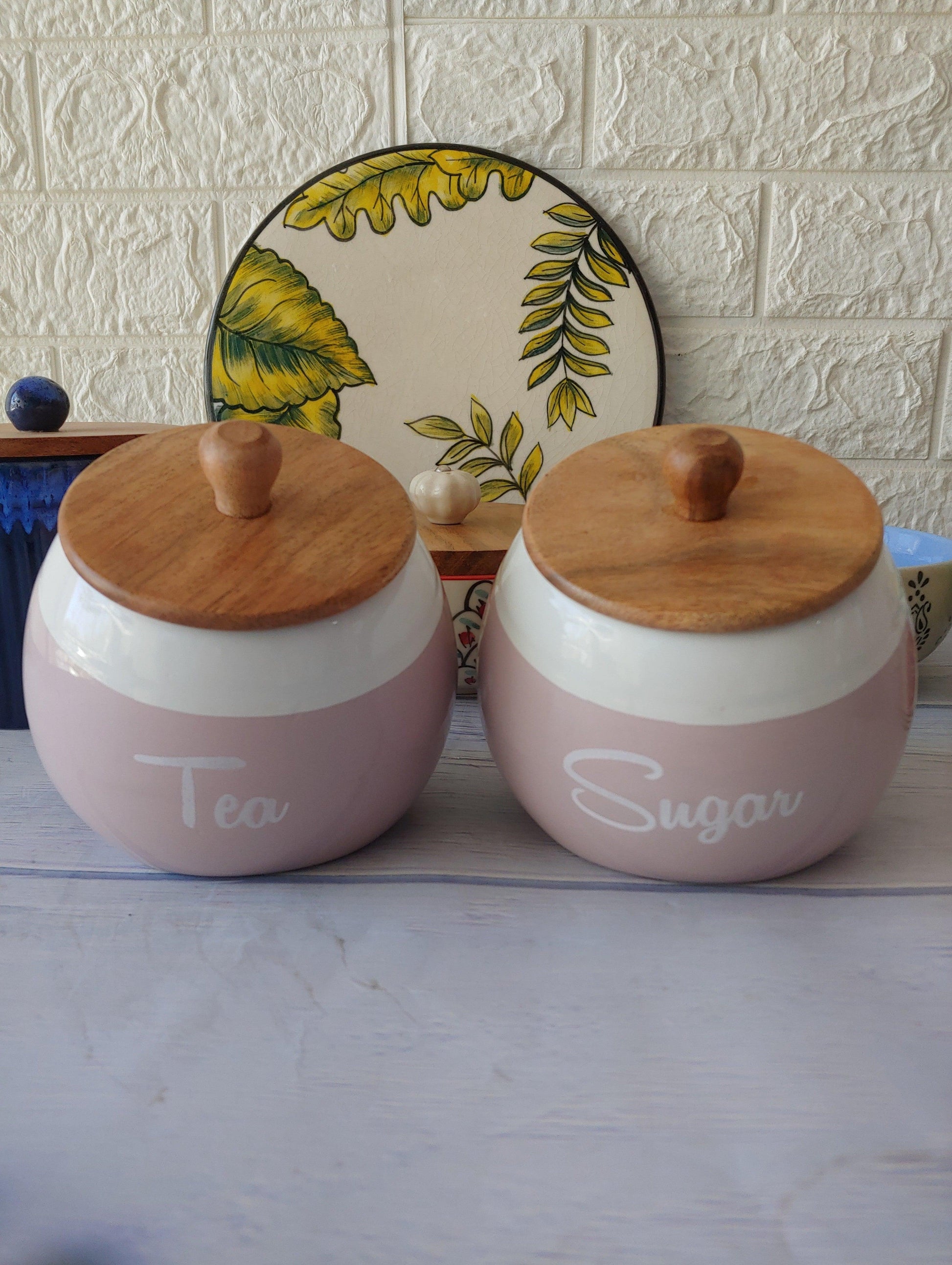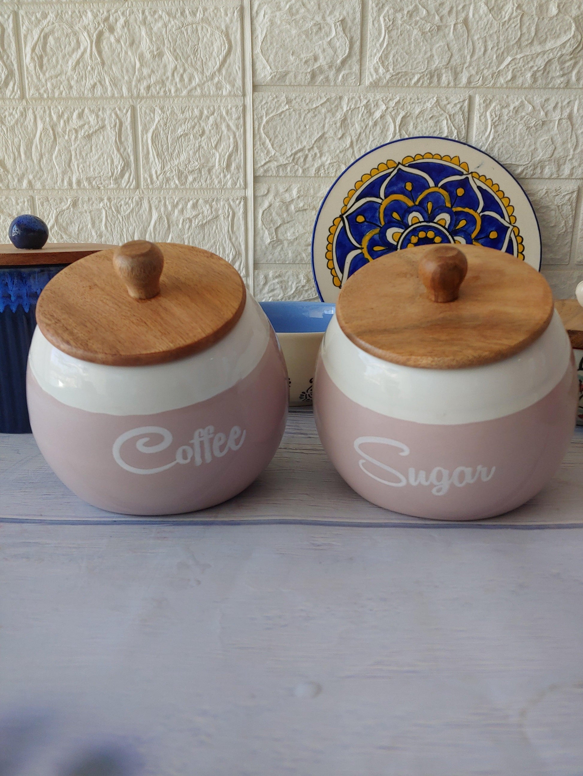 Slanted Baby Pink Ceramic Coffee, Sugar, and Tea Canister Set 500ml
