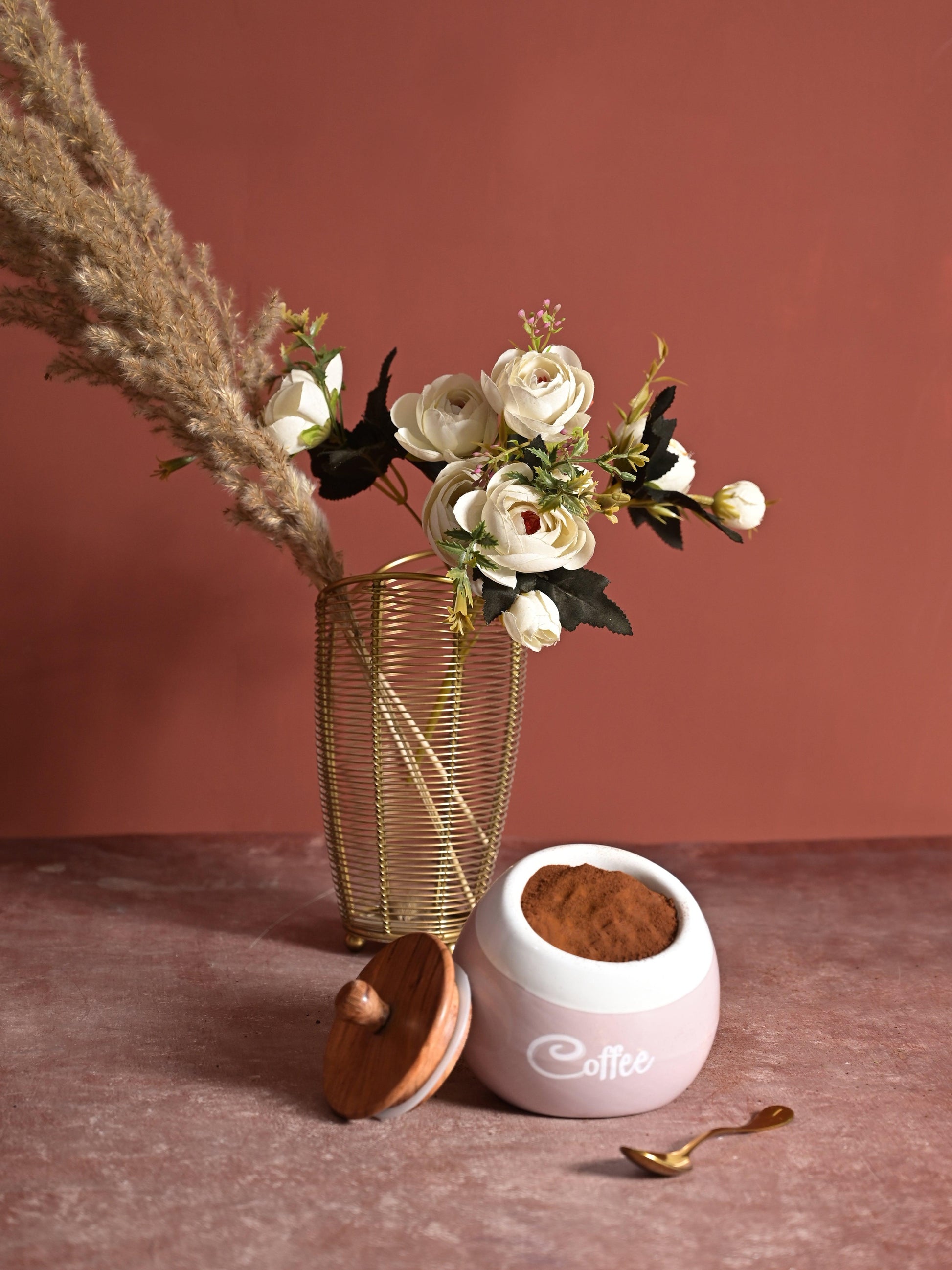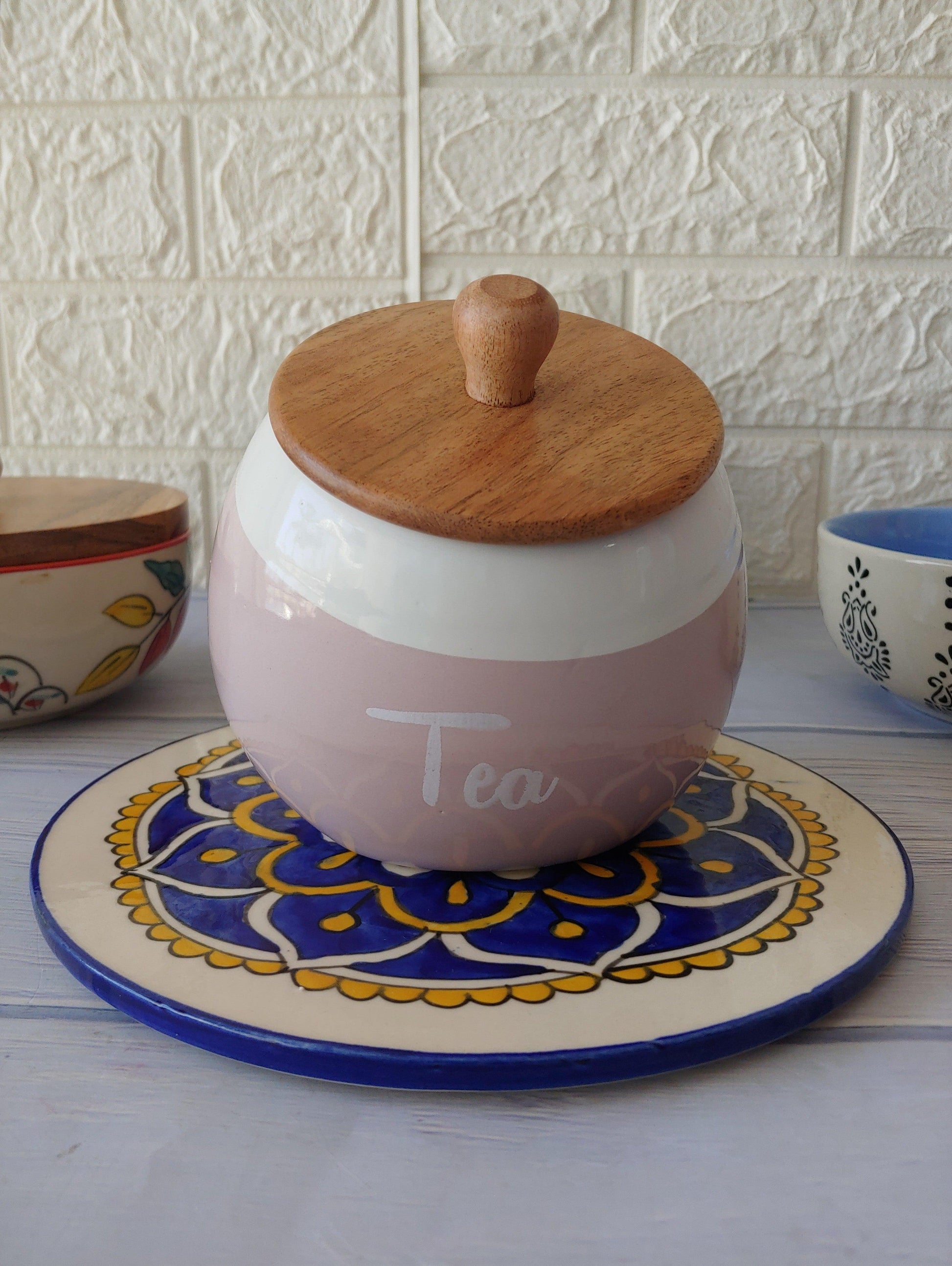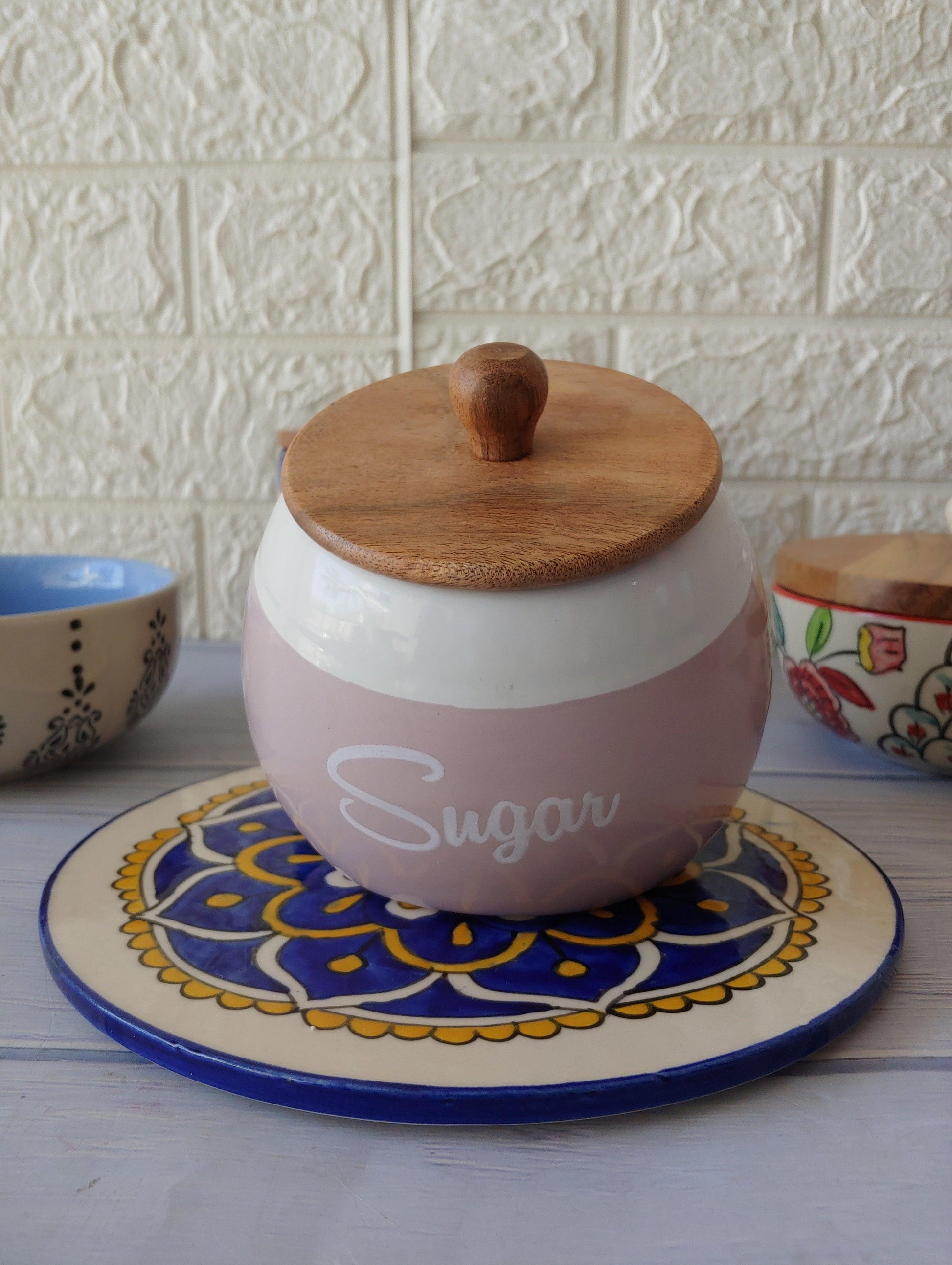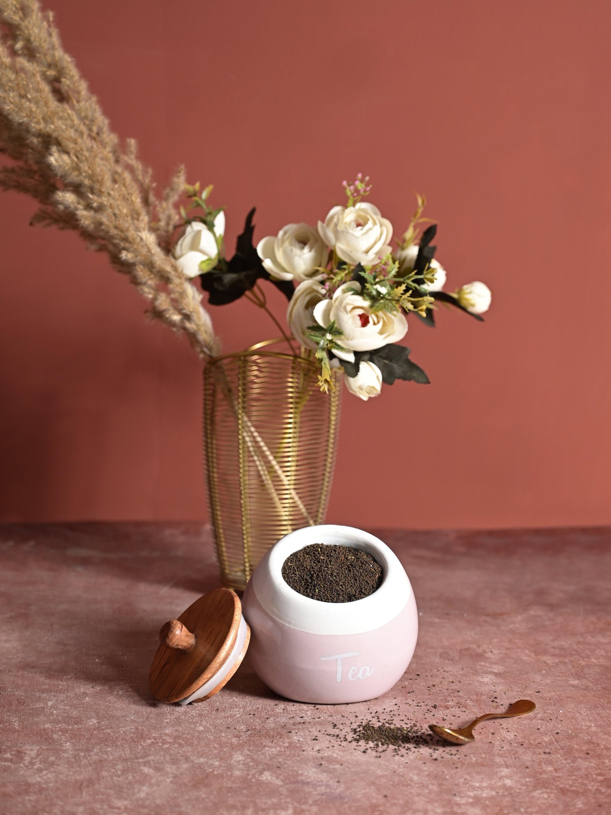 Slanted Baby Pink Ceramic Coffee, Sugar, and Tea Canister Set 500ml