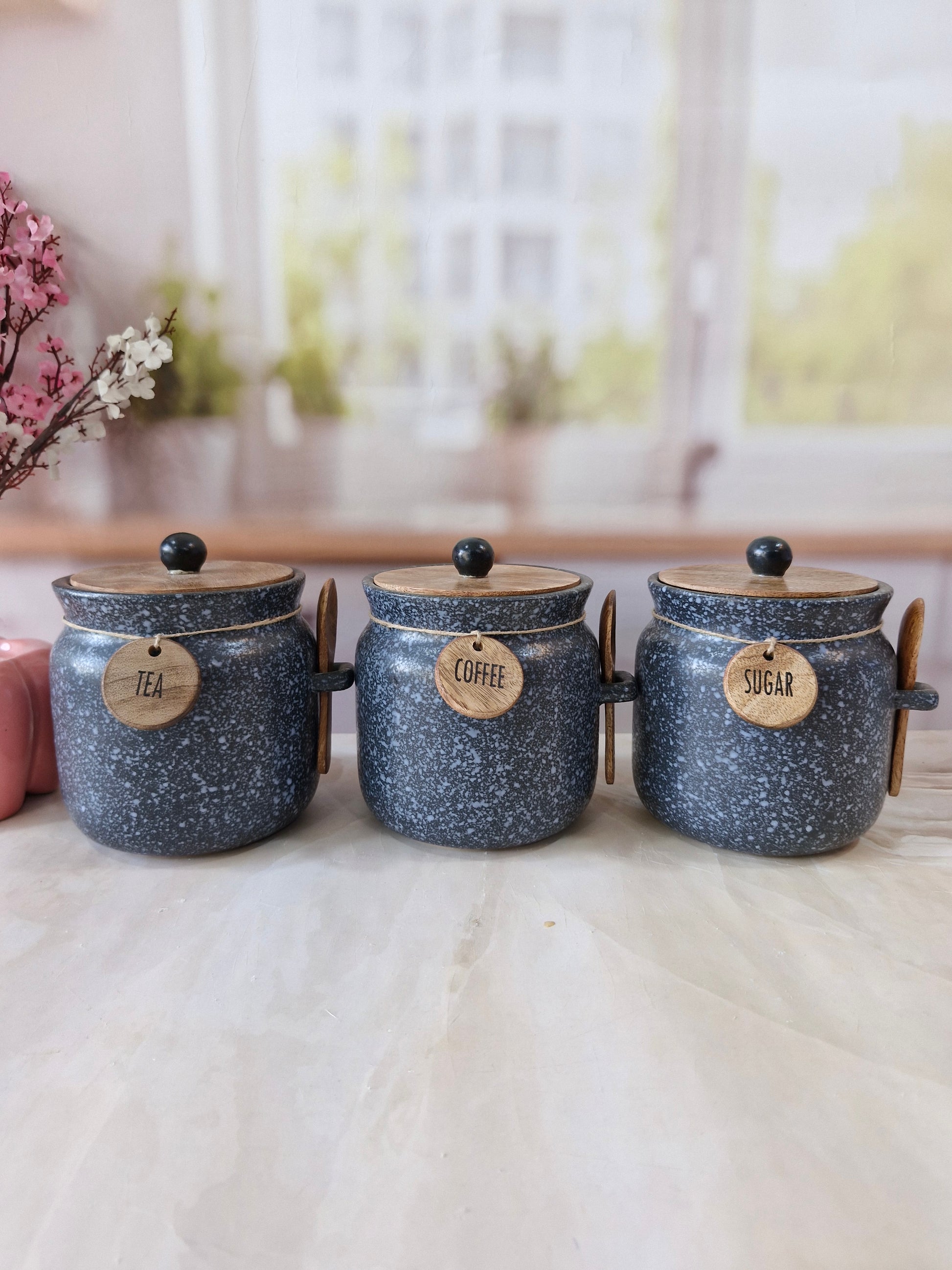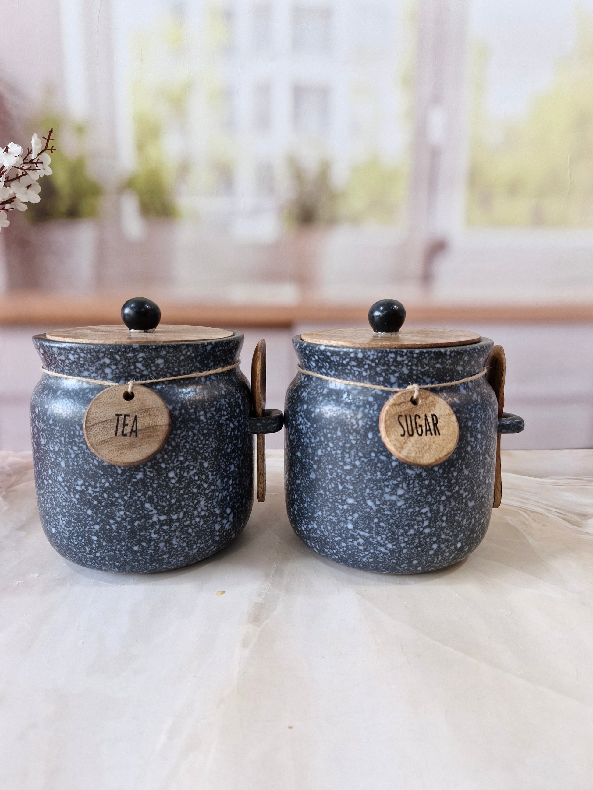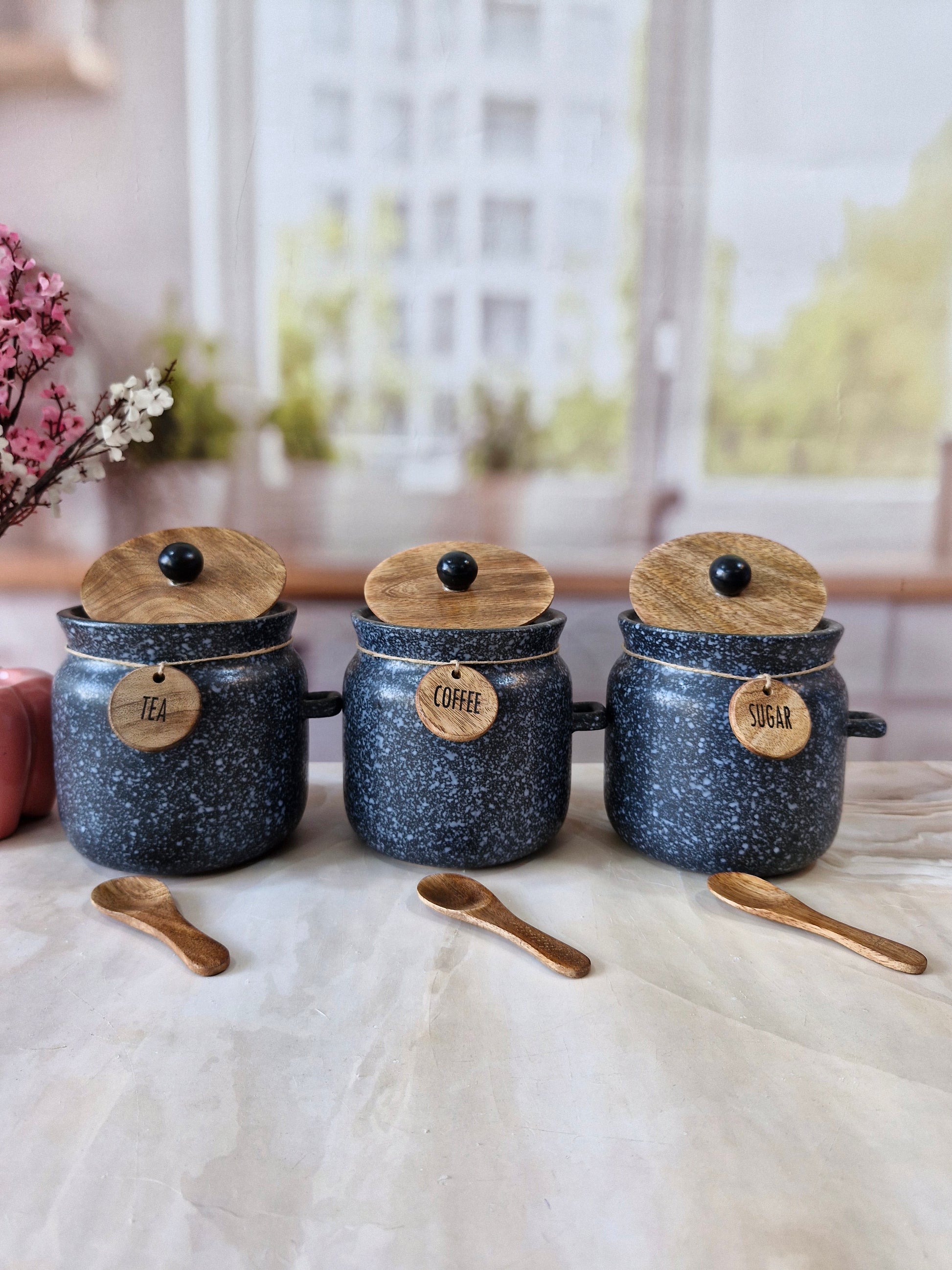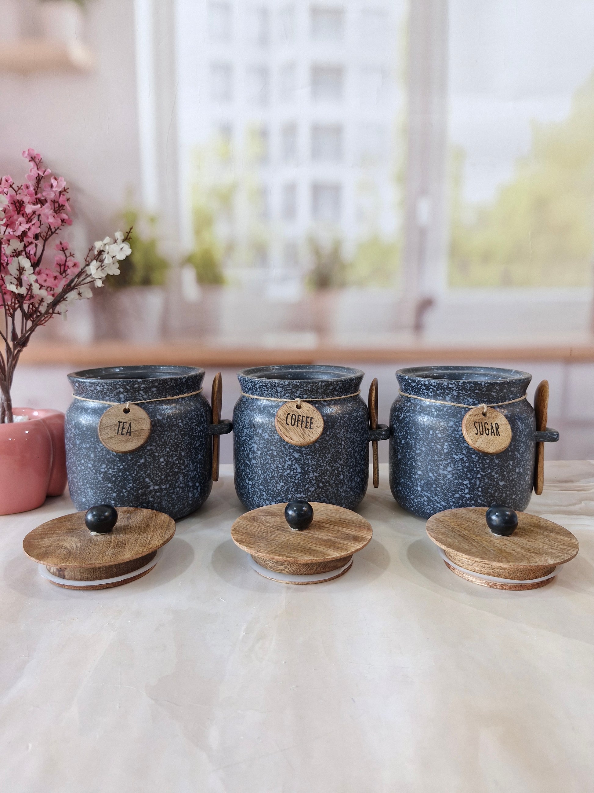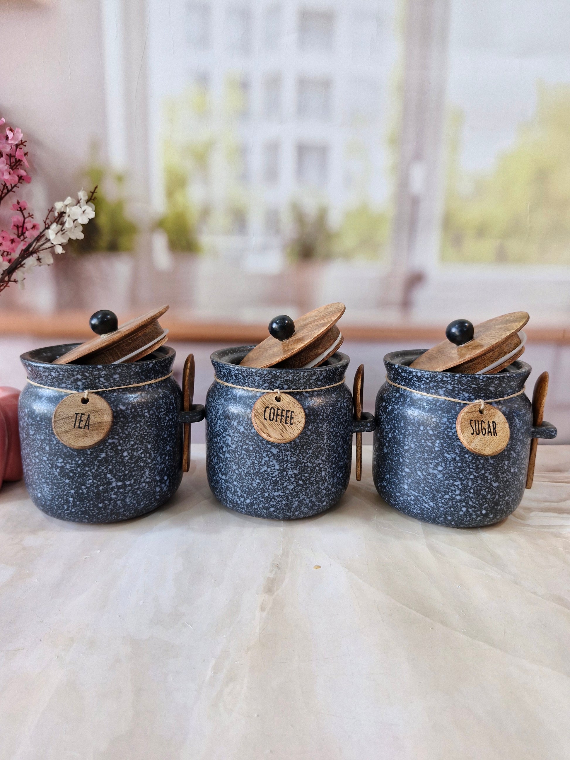 Speckled black Airtight Matka Tea ,Coffee, Sugar, Solid Ceremic Canisters (500ml)
