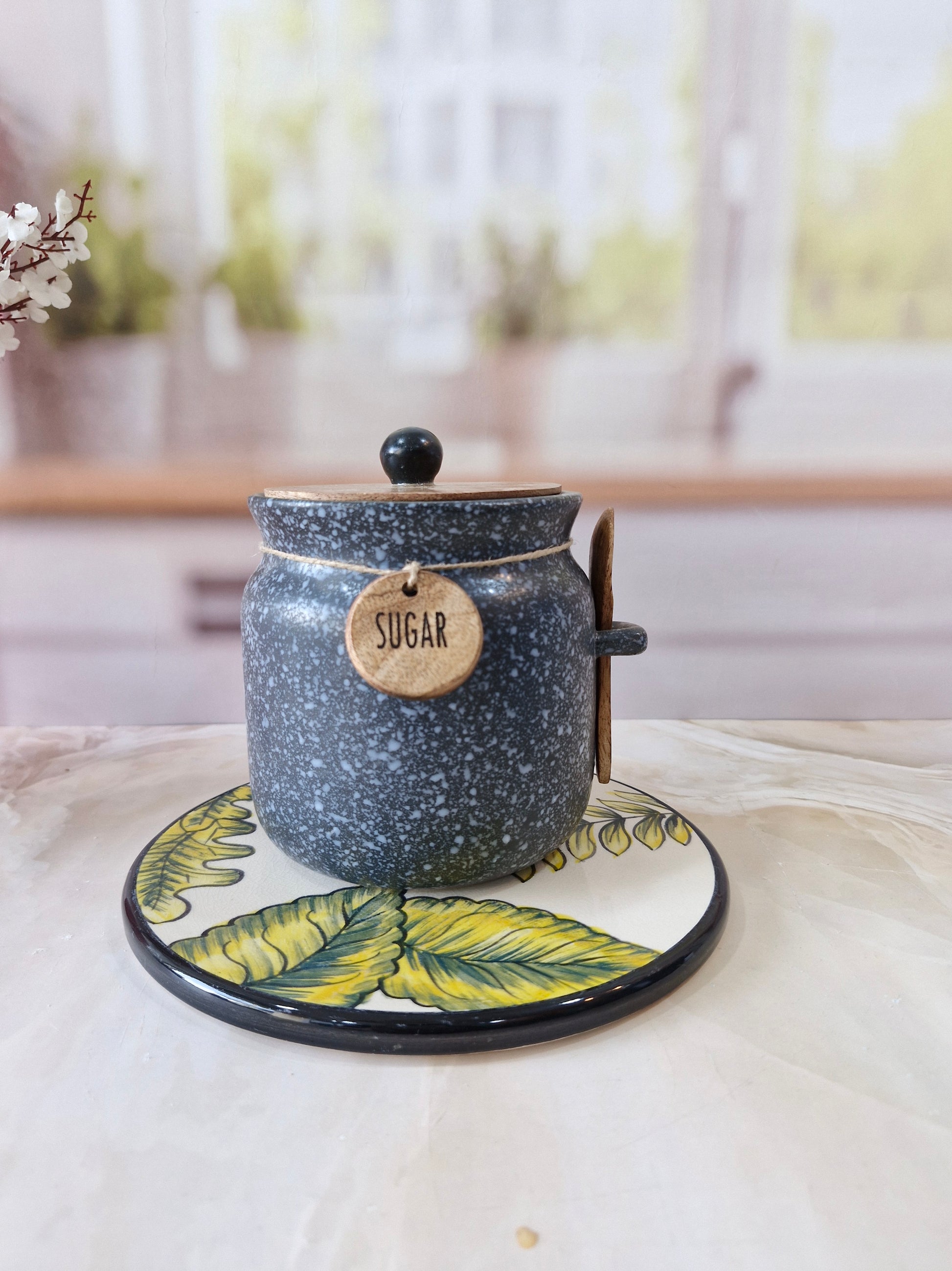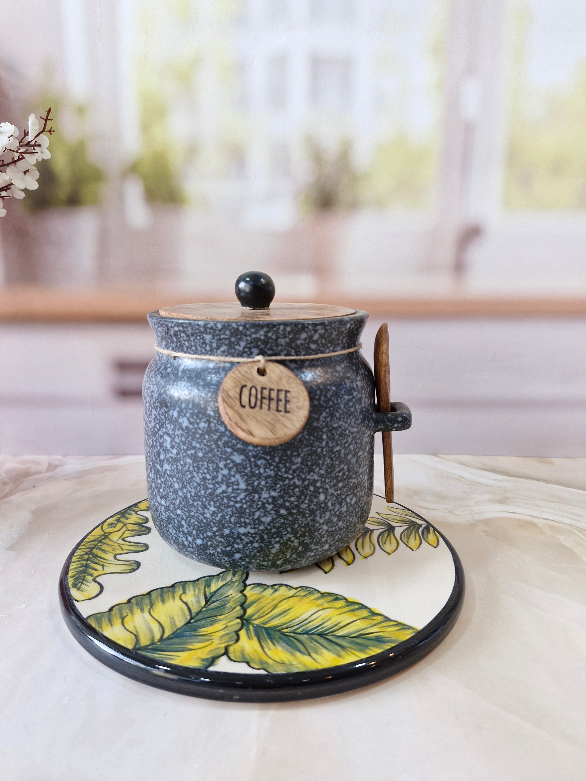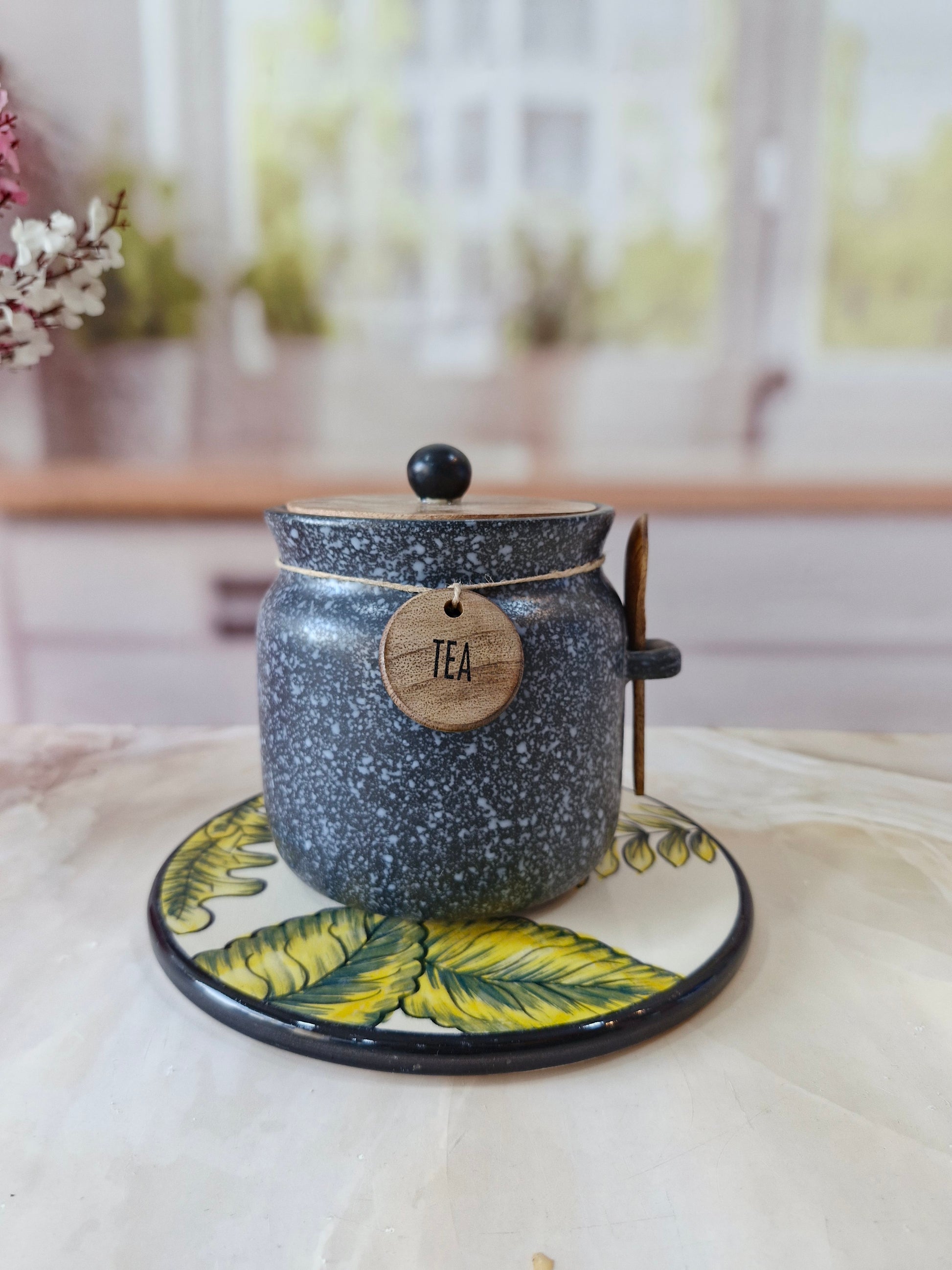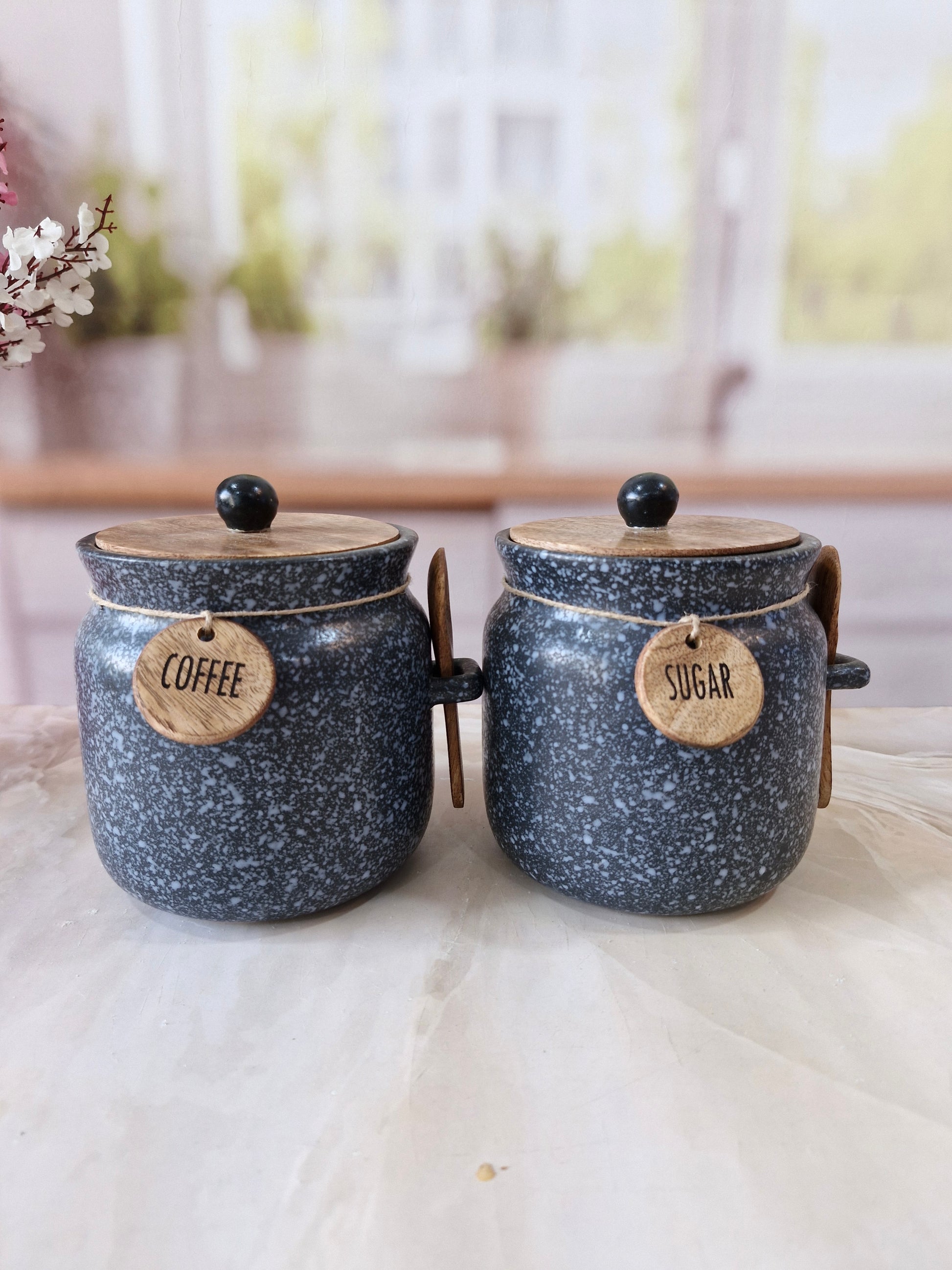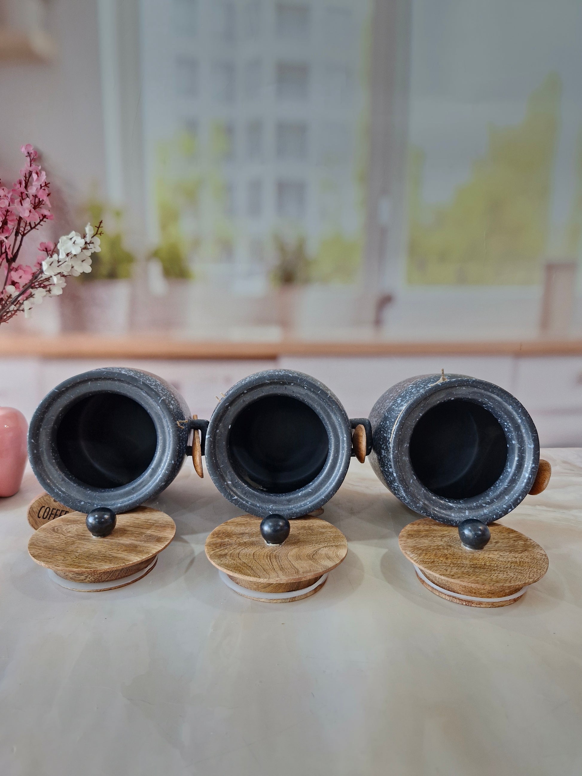 Speckled black Airtight Matka Tea ,Coffee, Sugar, Solid Ceremic Canisters (500ml)