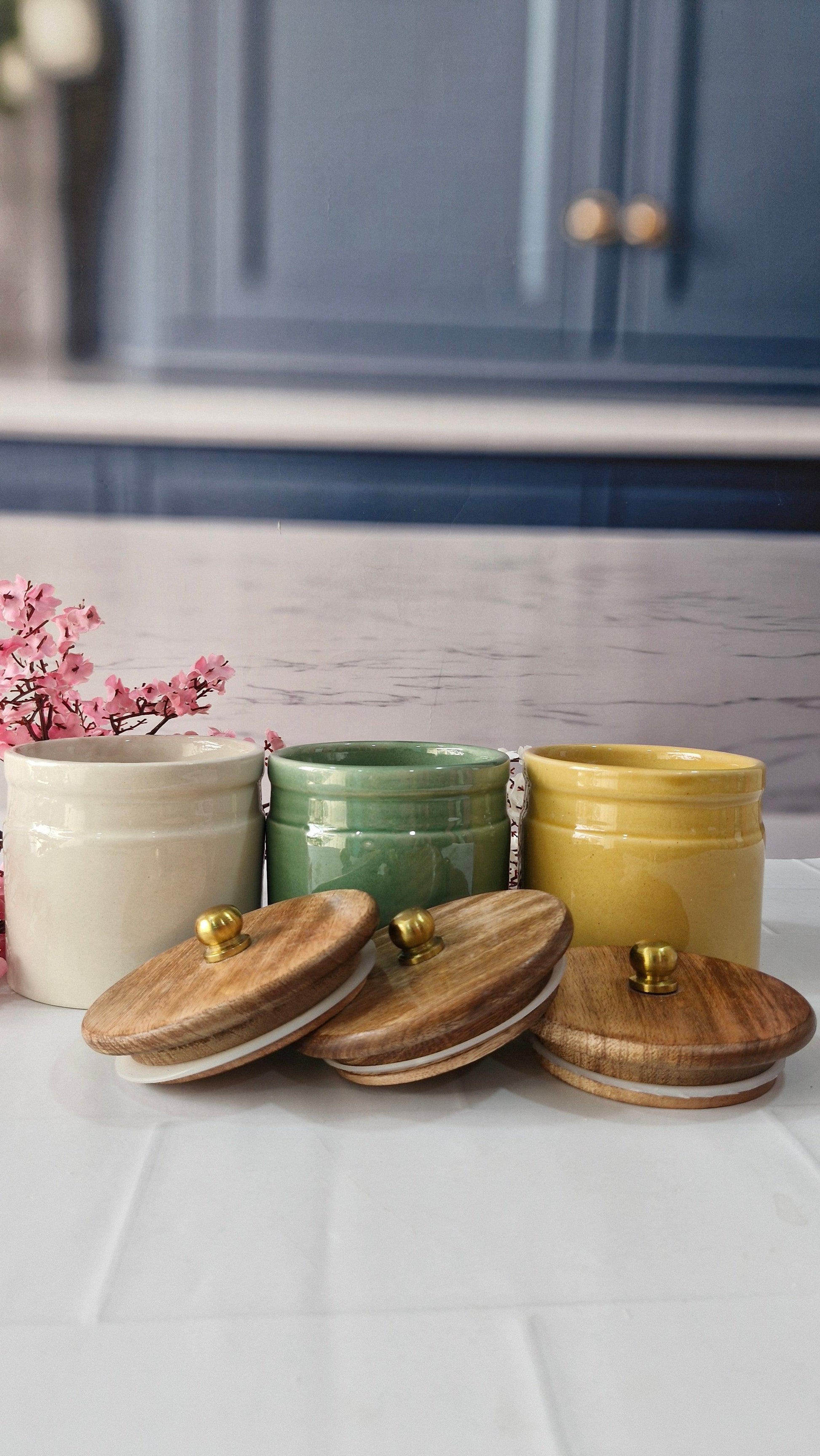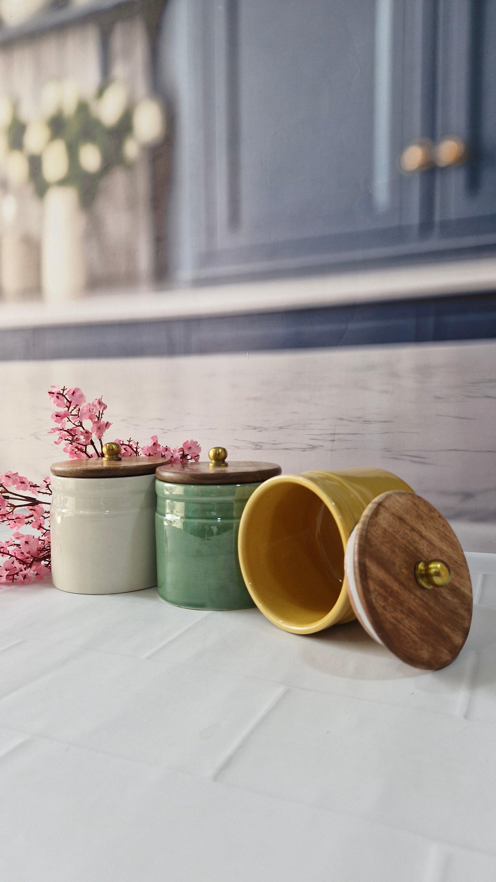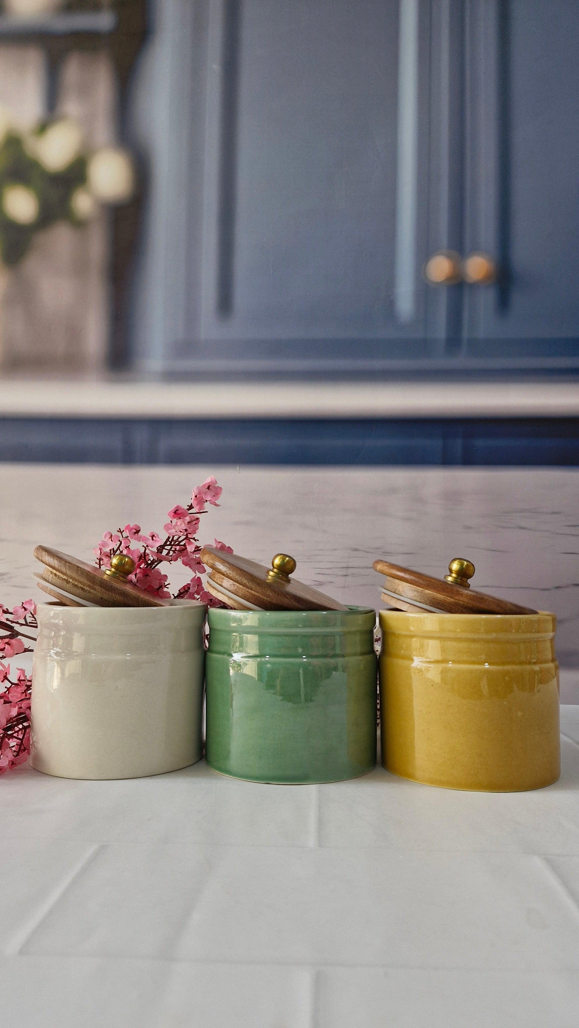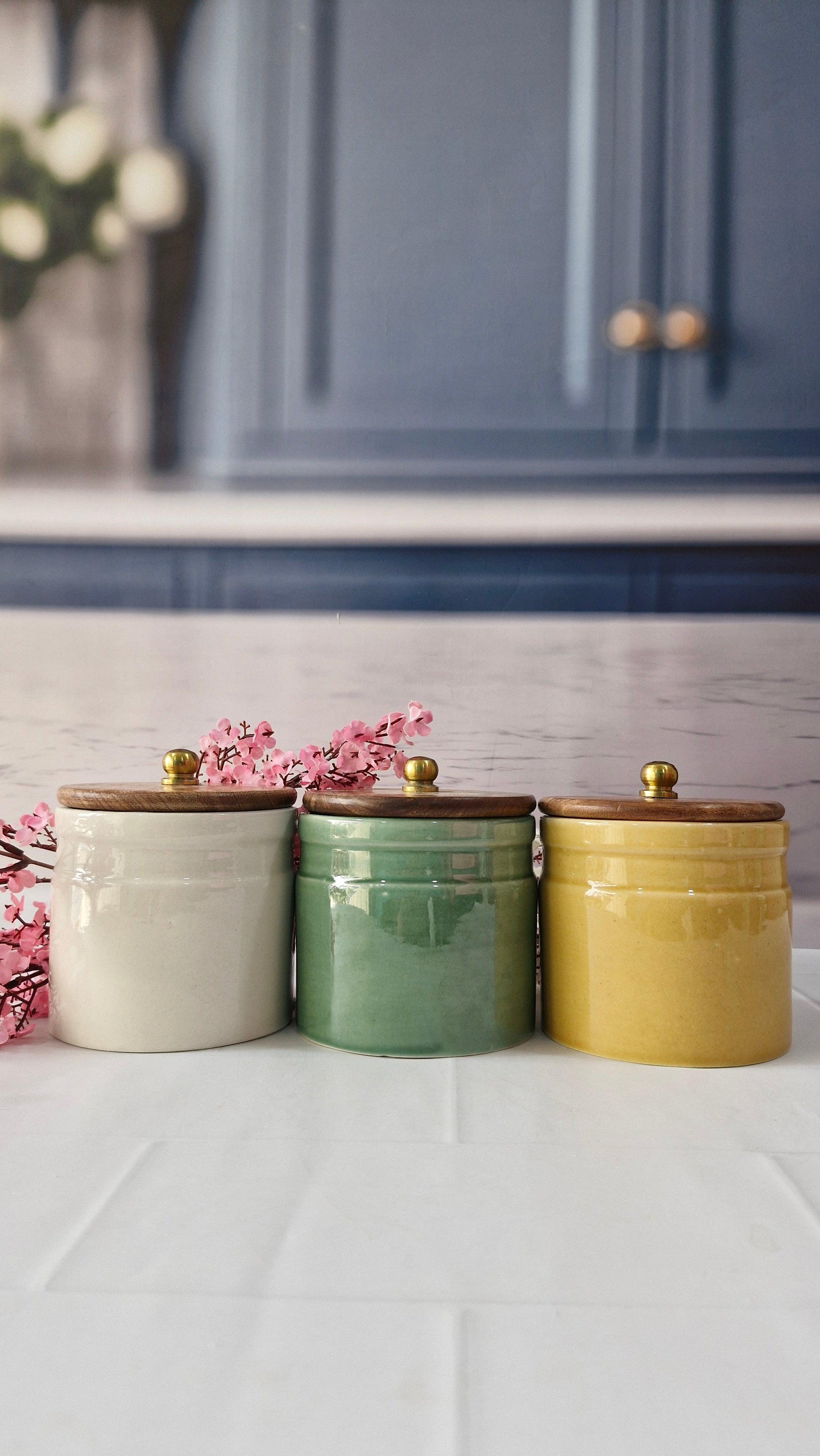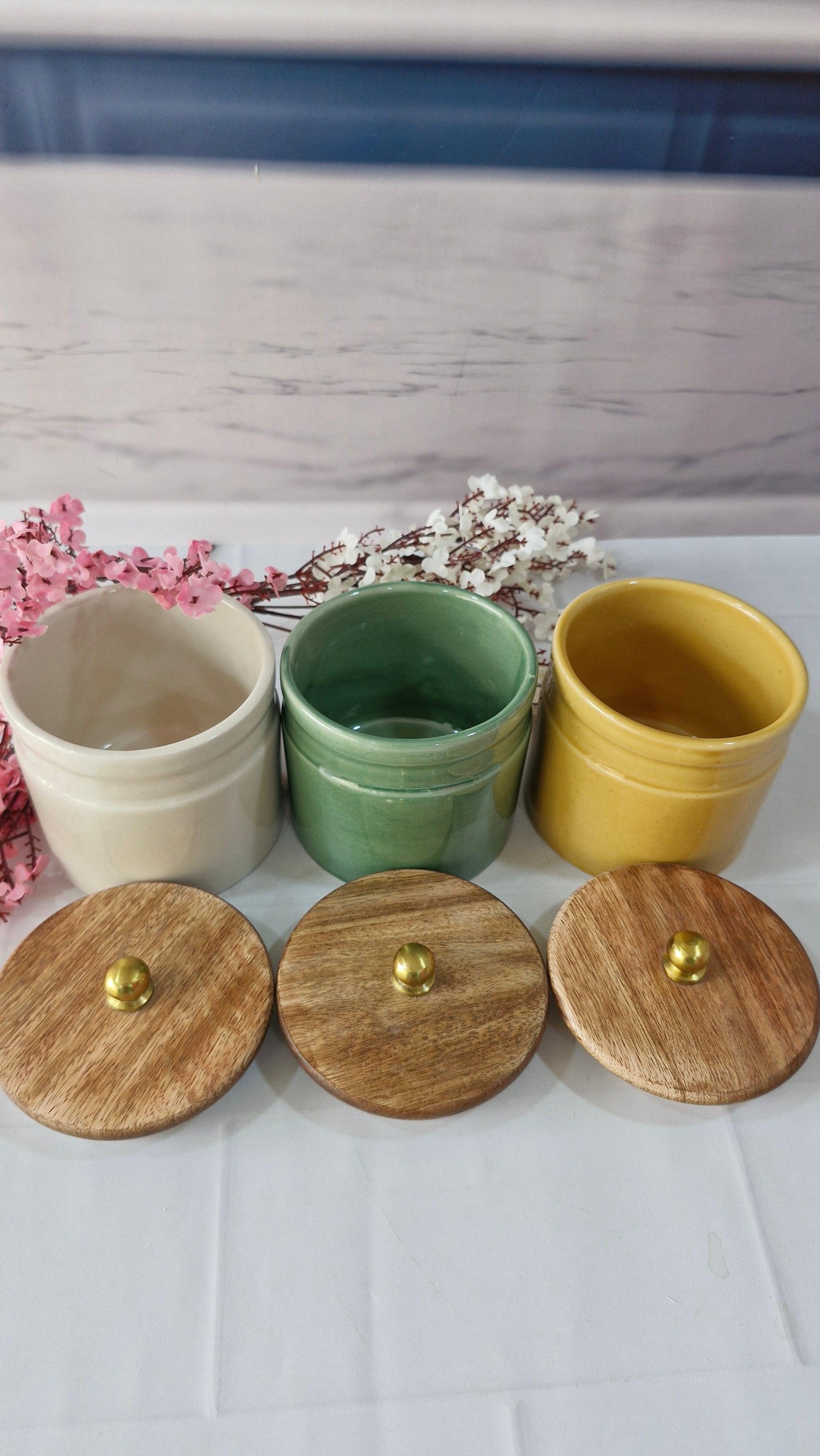 Products included: Set of 3 ceramic Jars,