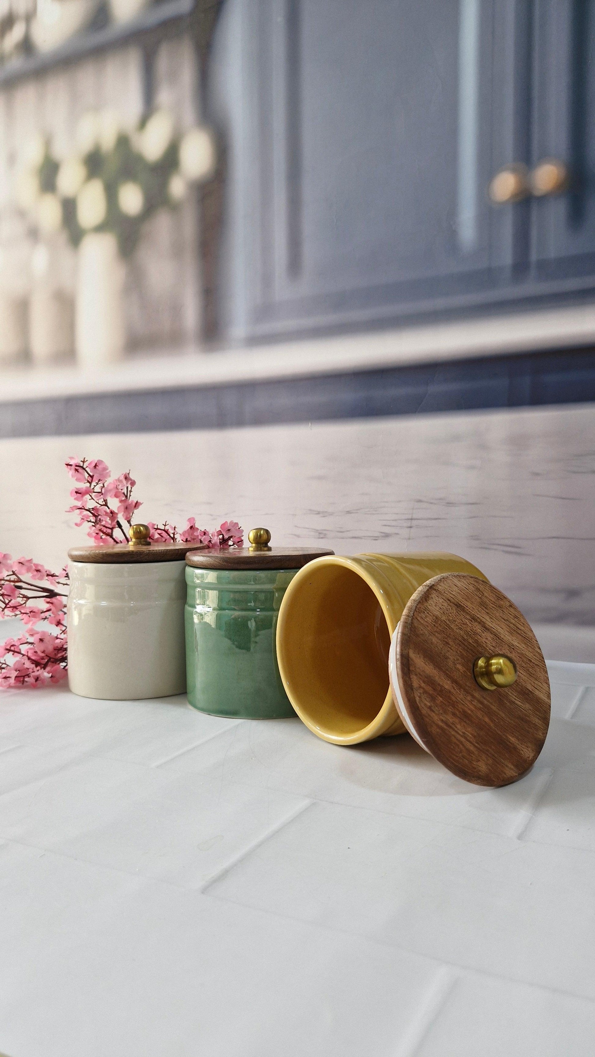 Material: Ceramic, Mango Wood lid,