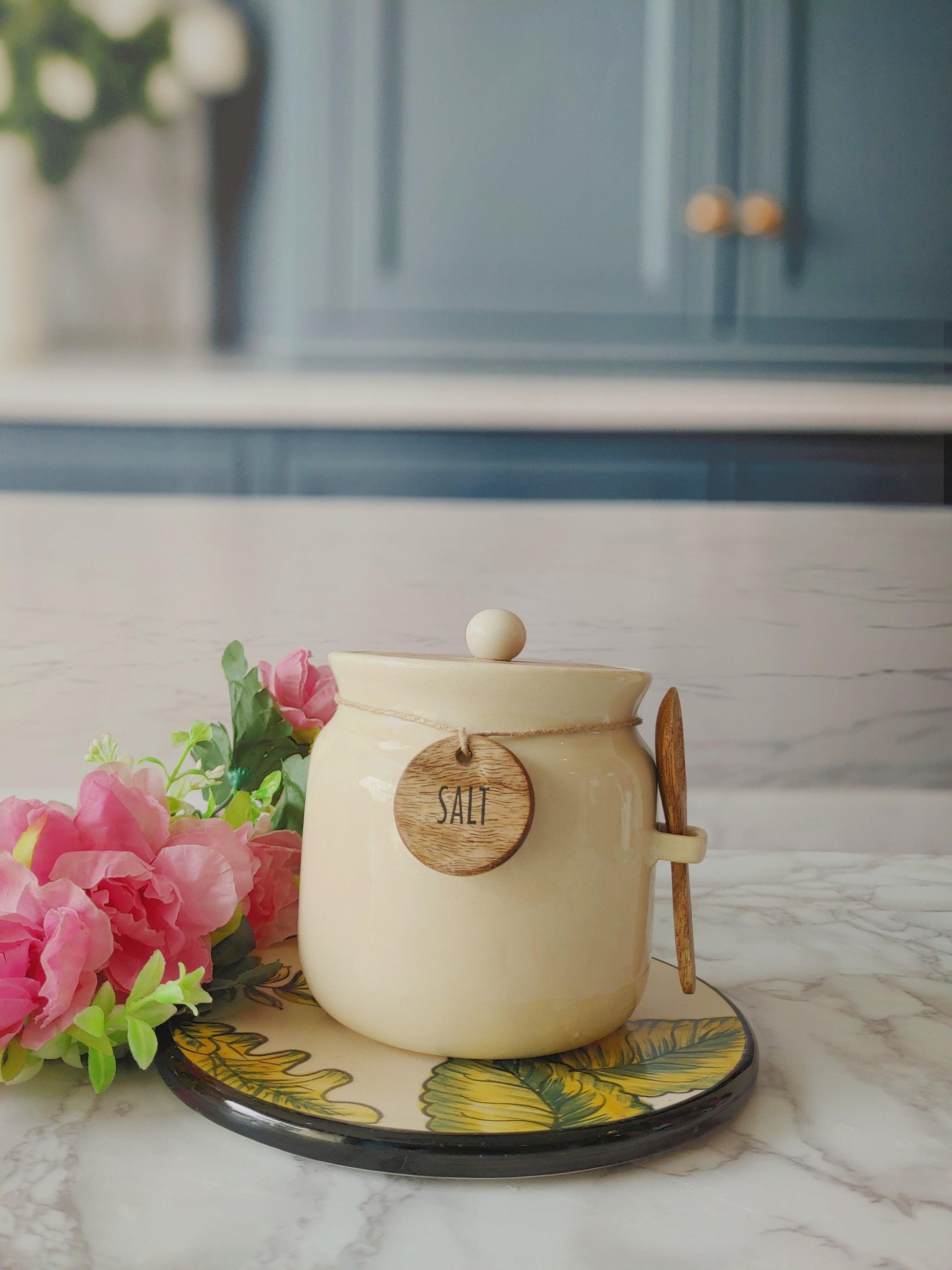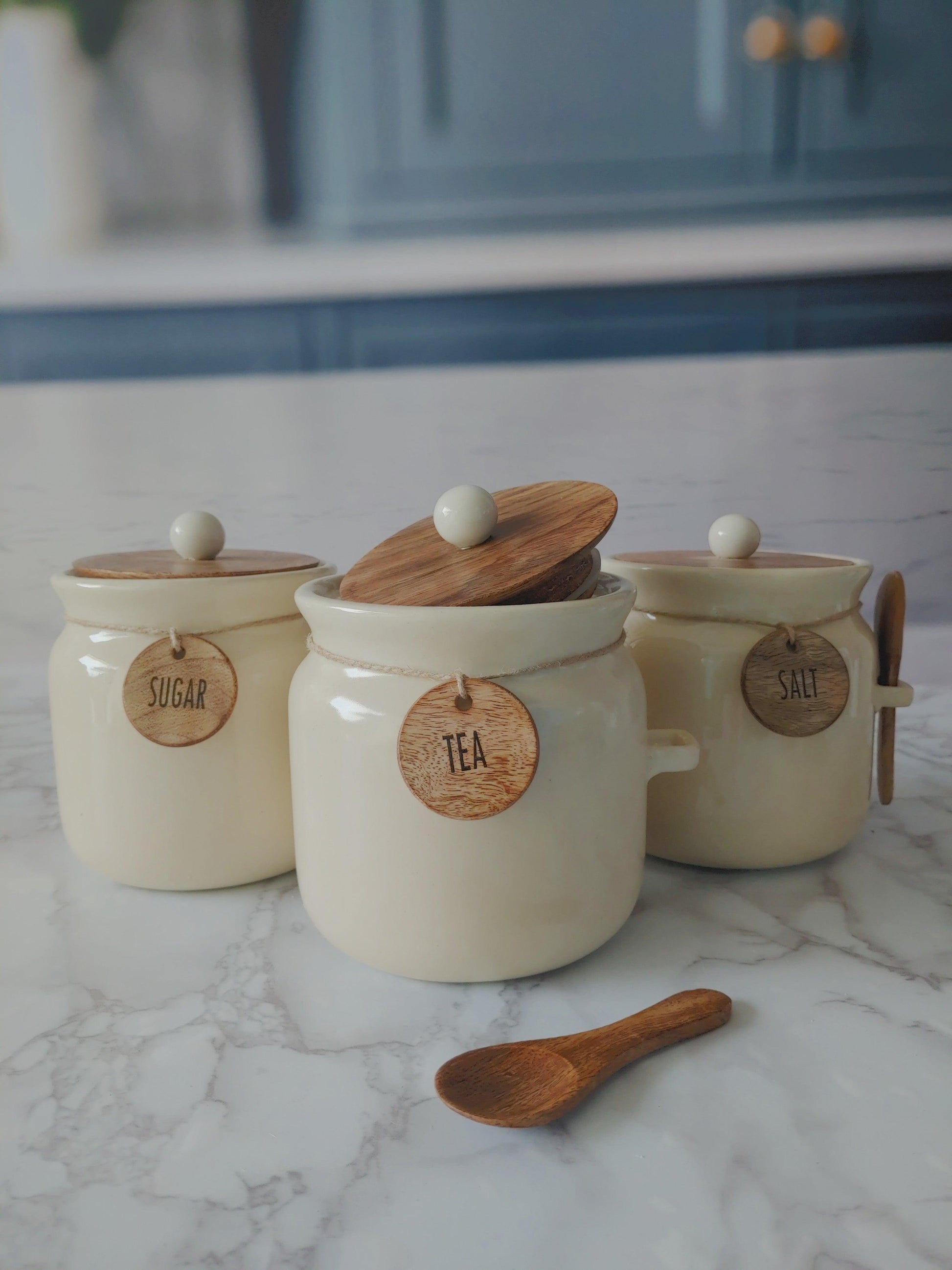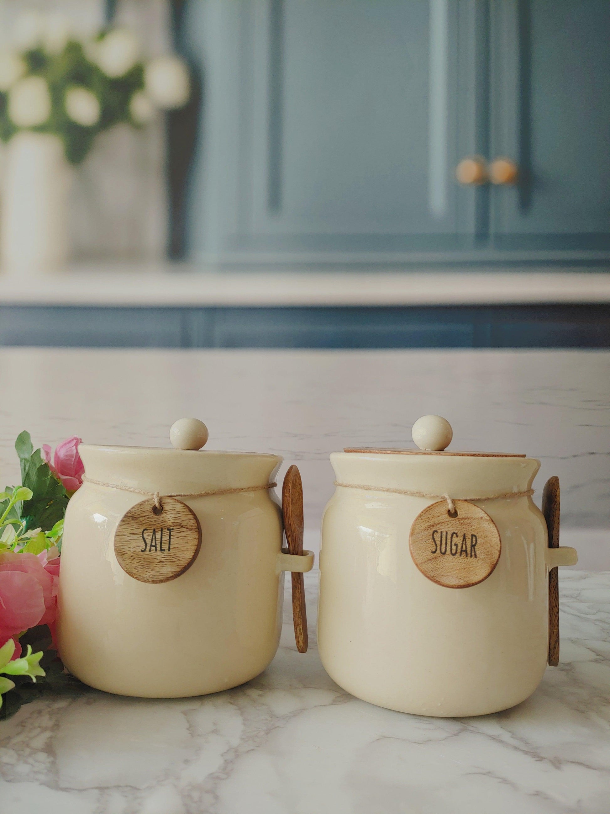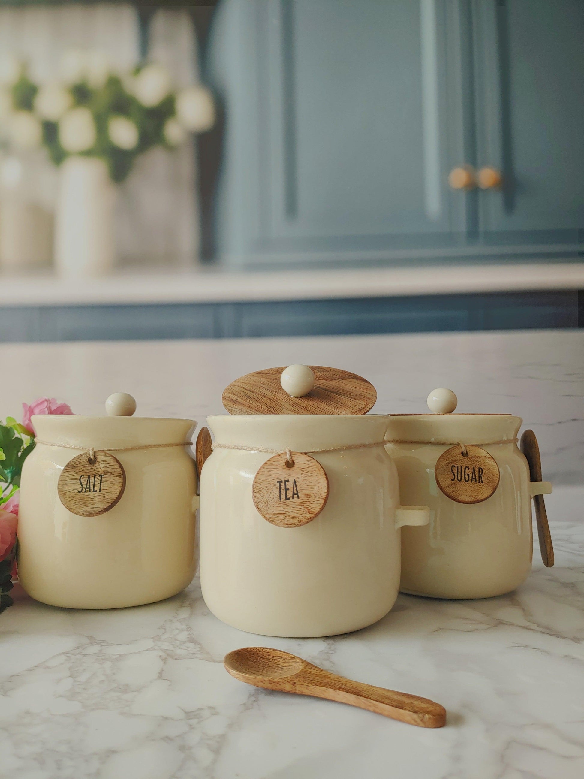 Sweet Talk ivory Matka Solid Ceremic Tea, Sugar,Salt, Canisters 500ml