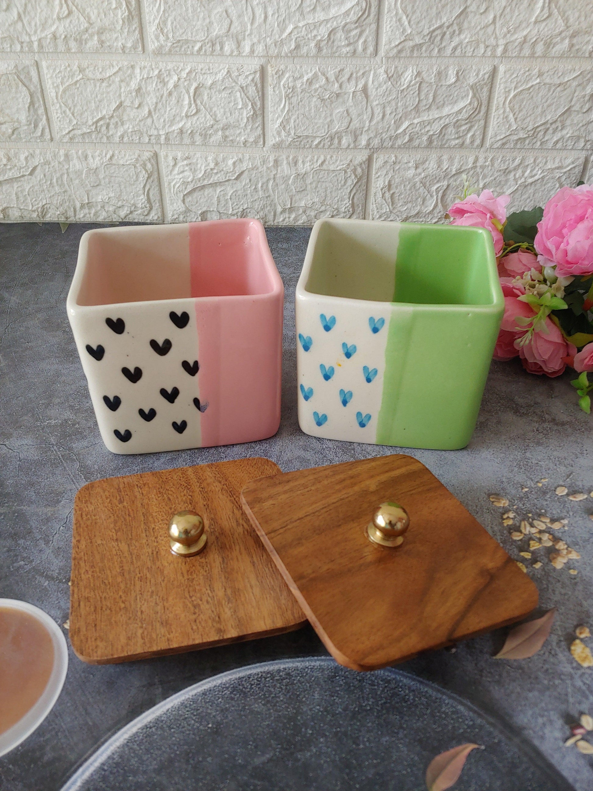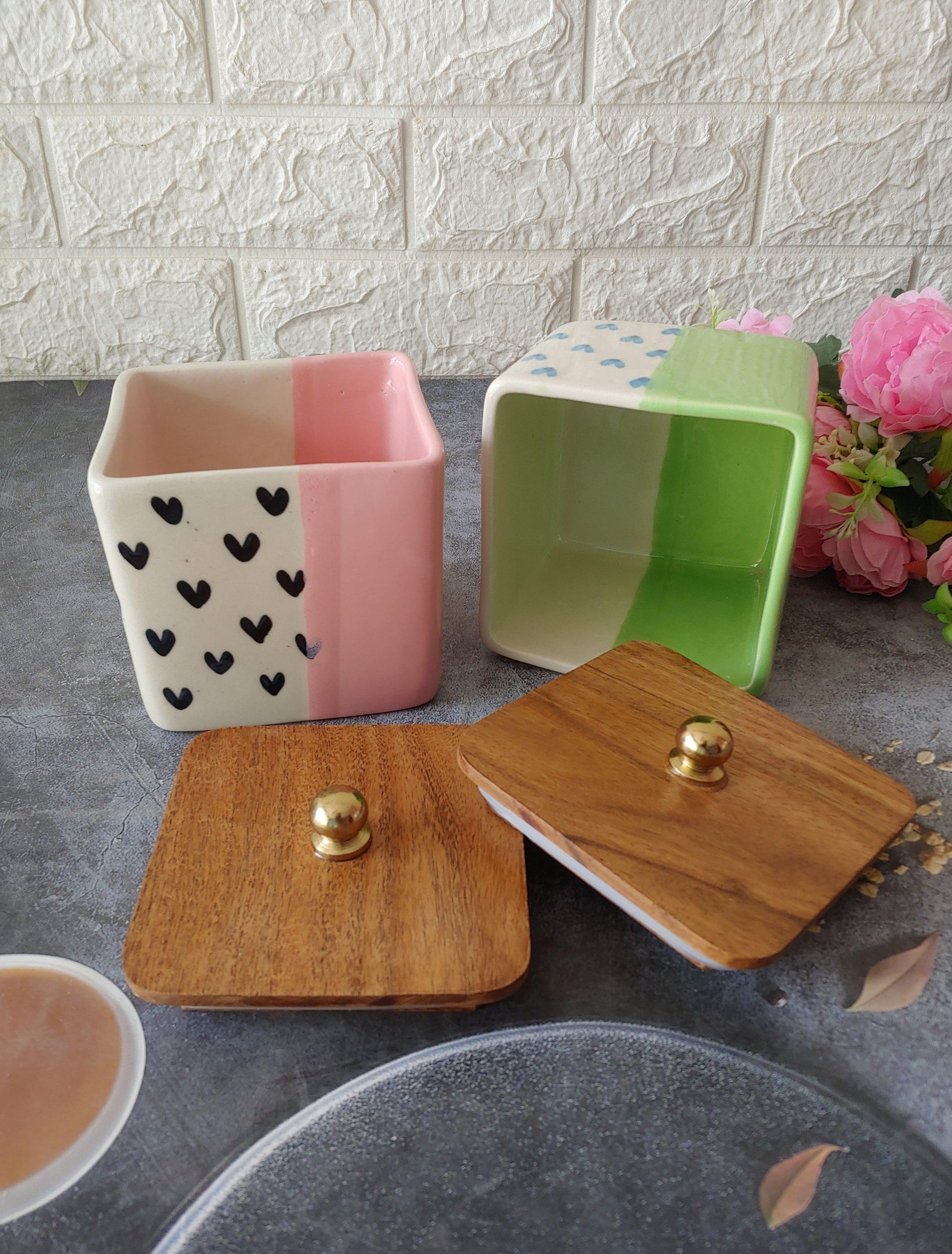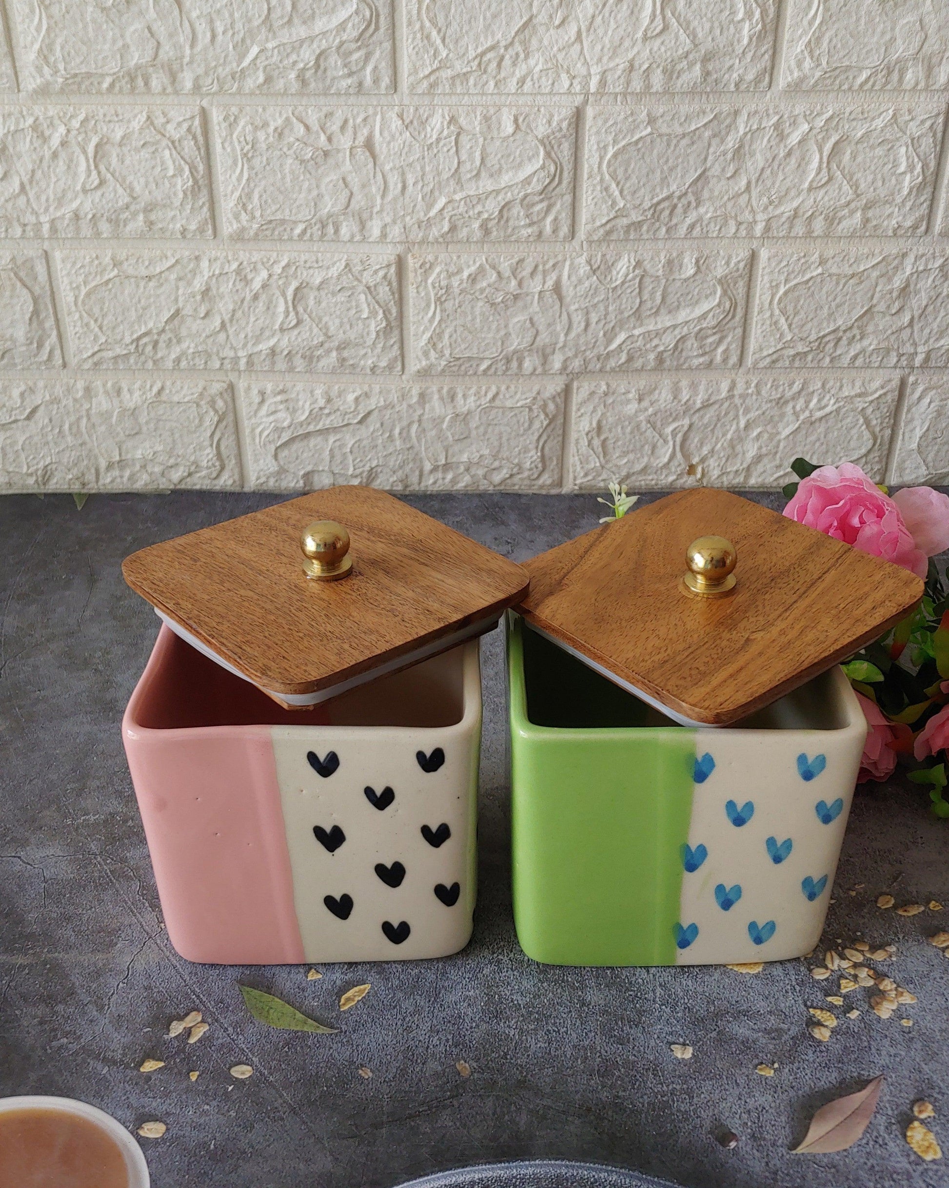 Sweetheart Home Ceramic Airtight Containers with Wooden Lid