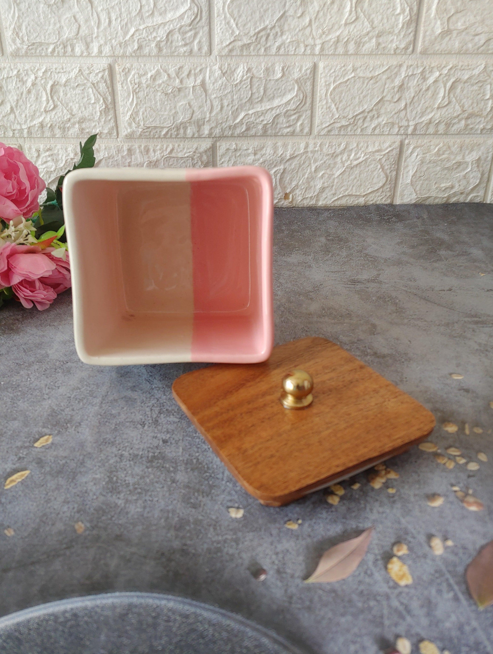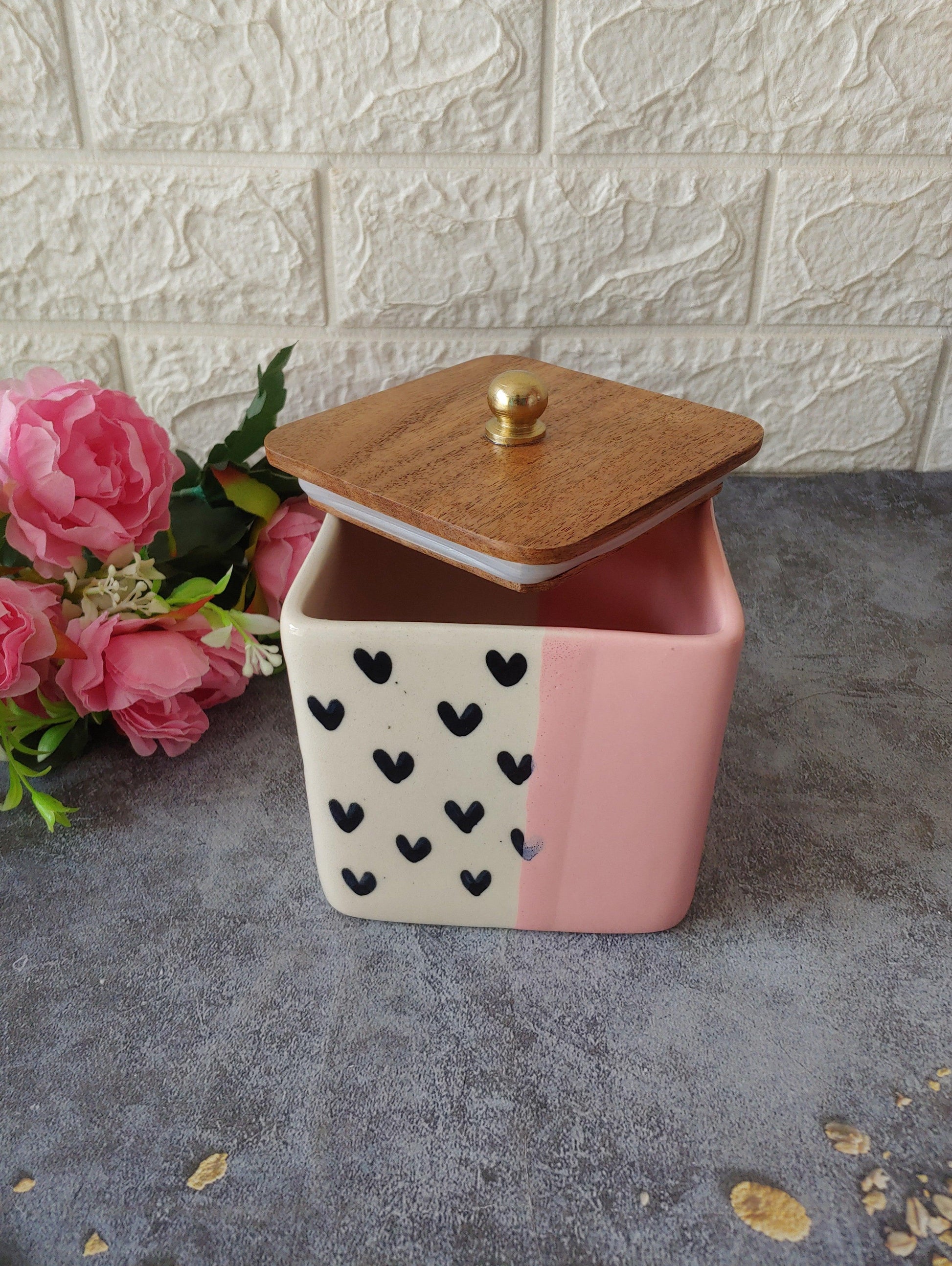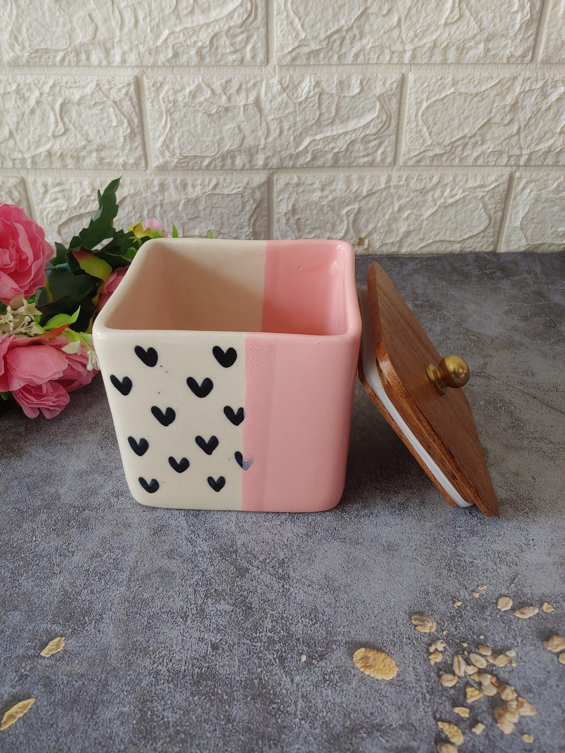 Sweetheart Home Ceramic Airtight Containers with Wooden Lid