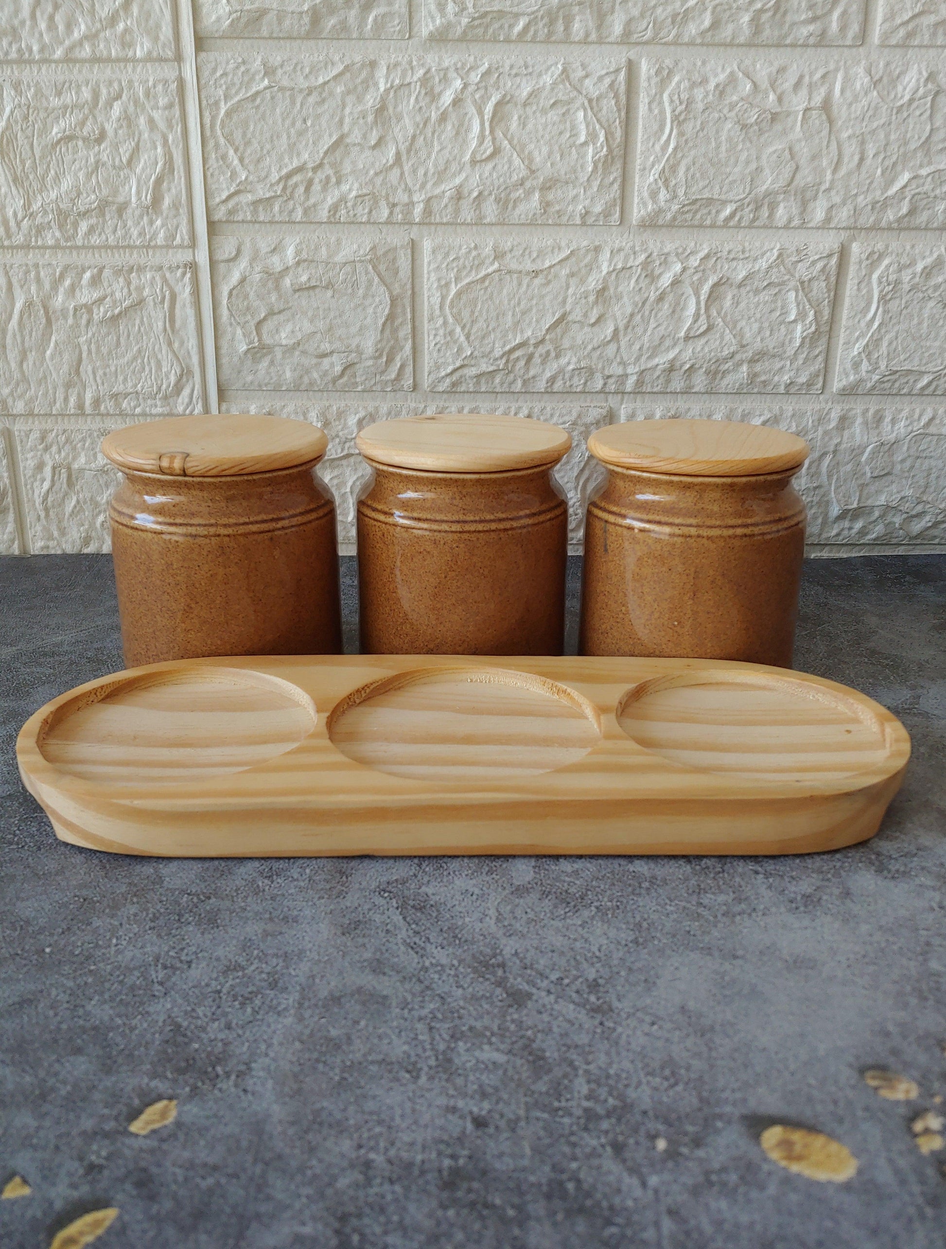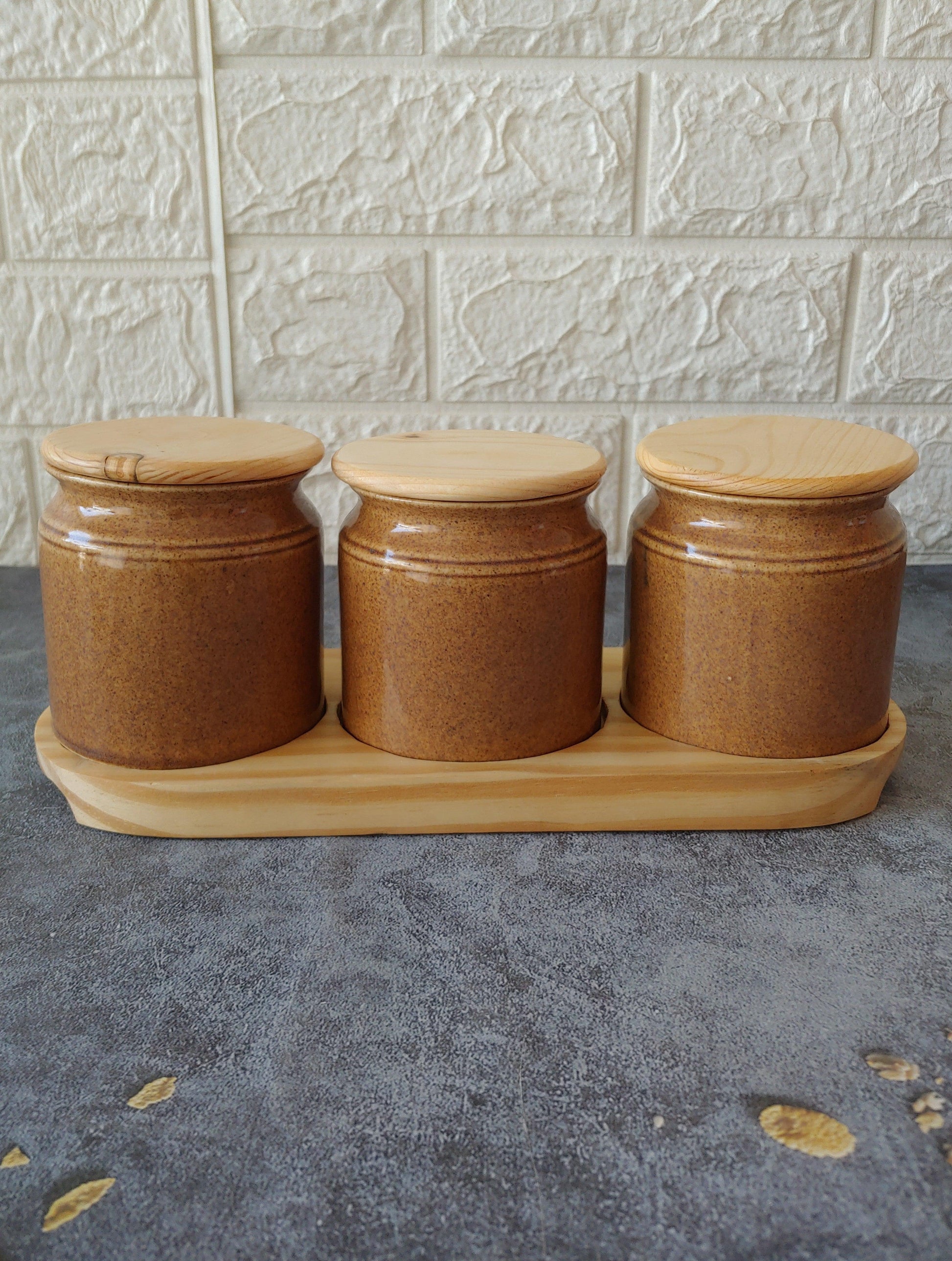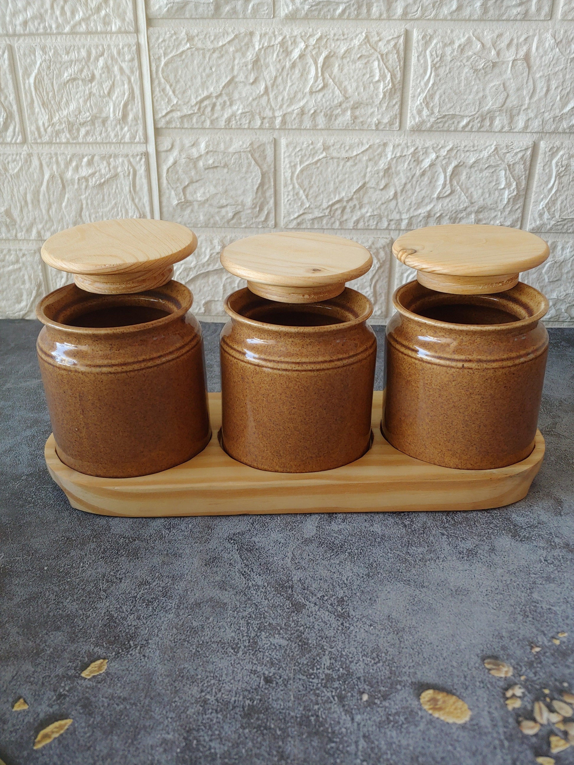 The Delft Delights Ceramic Kimchi Pickle Jar Set with wooden lid and tray