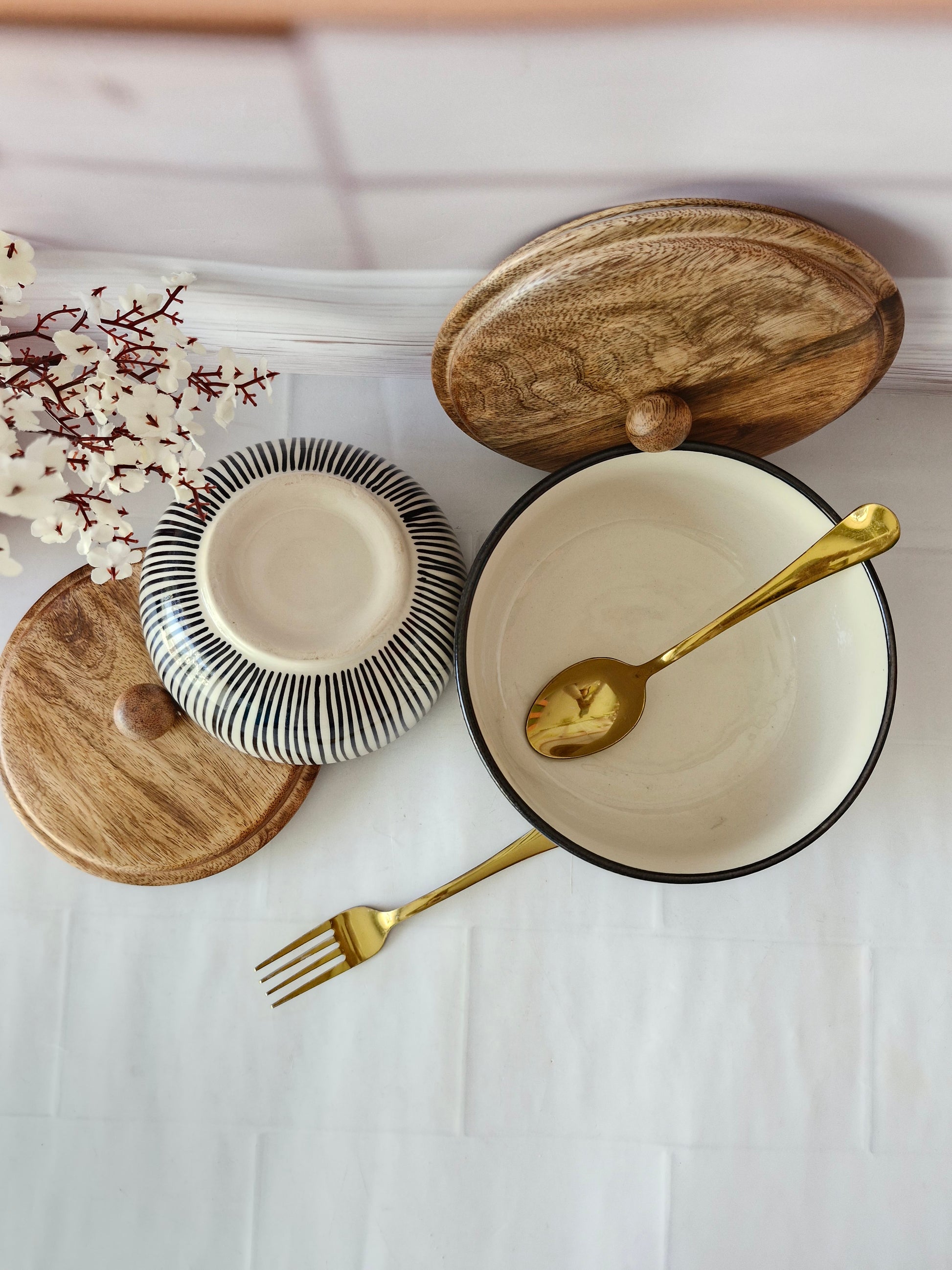 The Dynamic Handpainted Ceramic black  line Round Serving  Dining Bowls with Lid