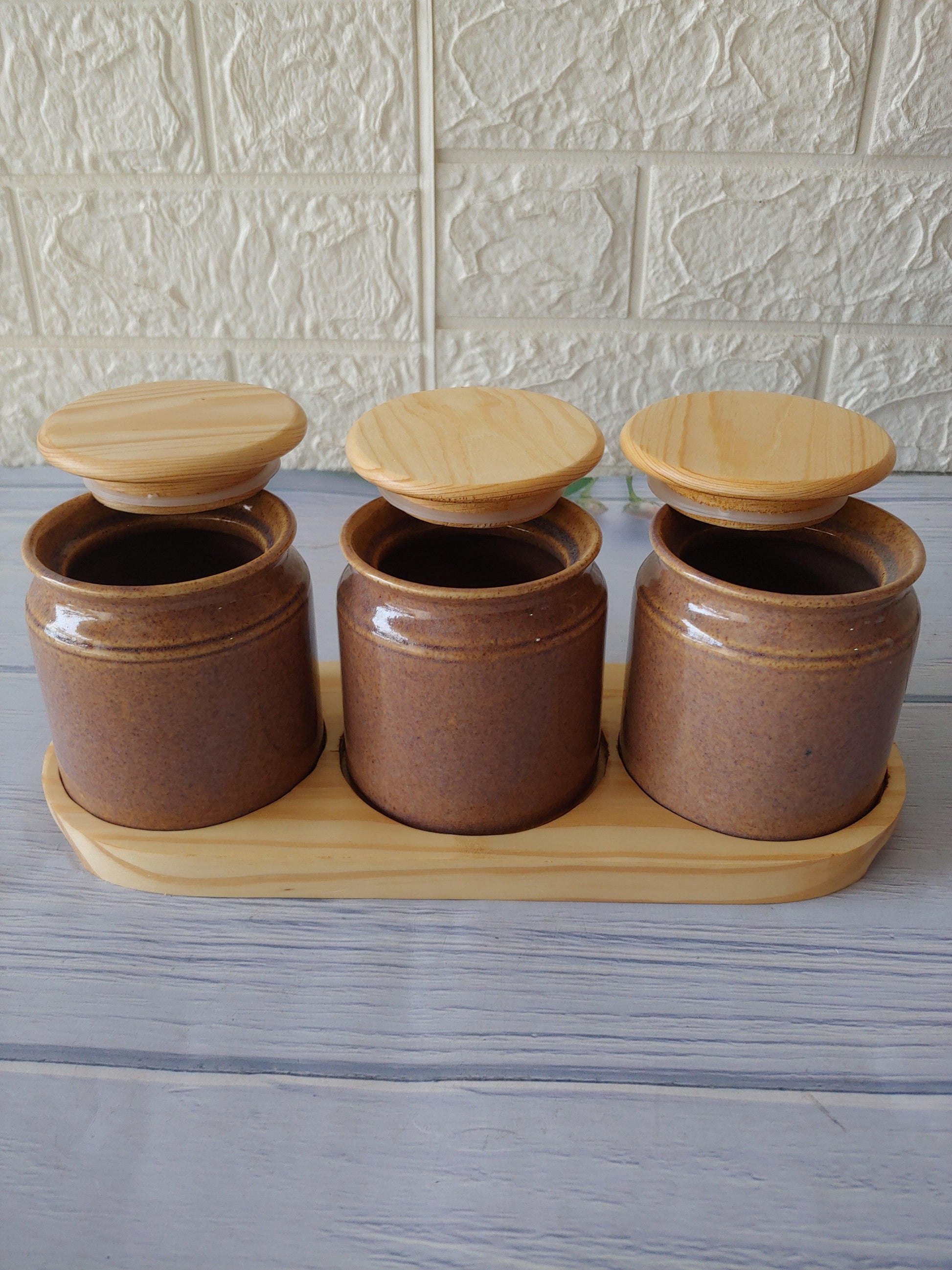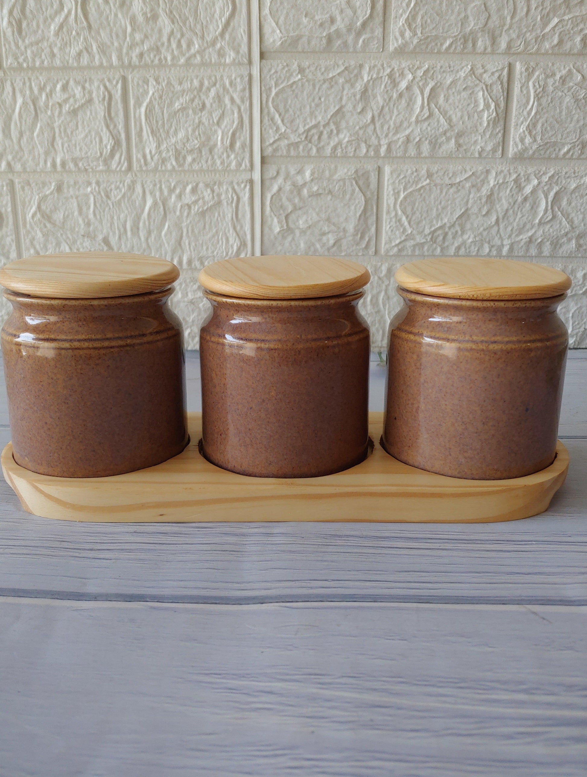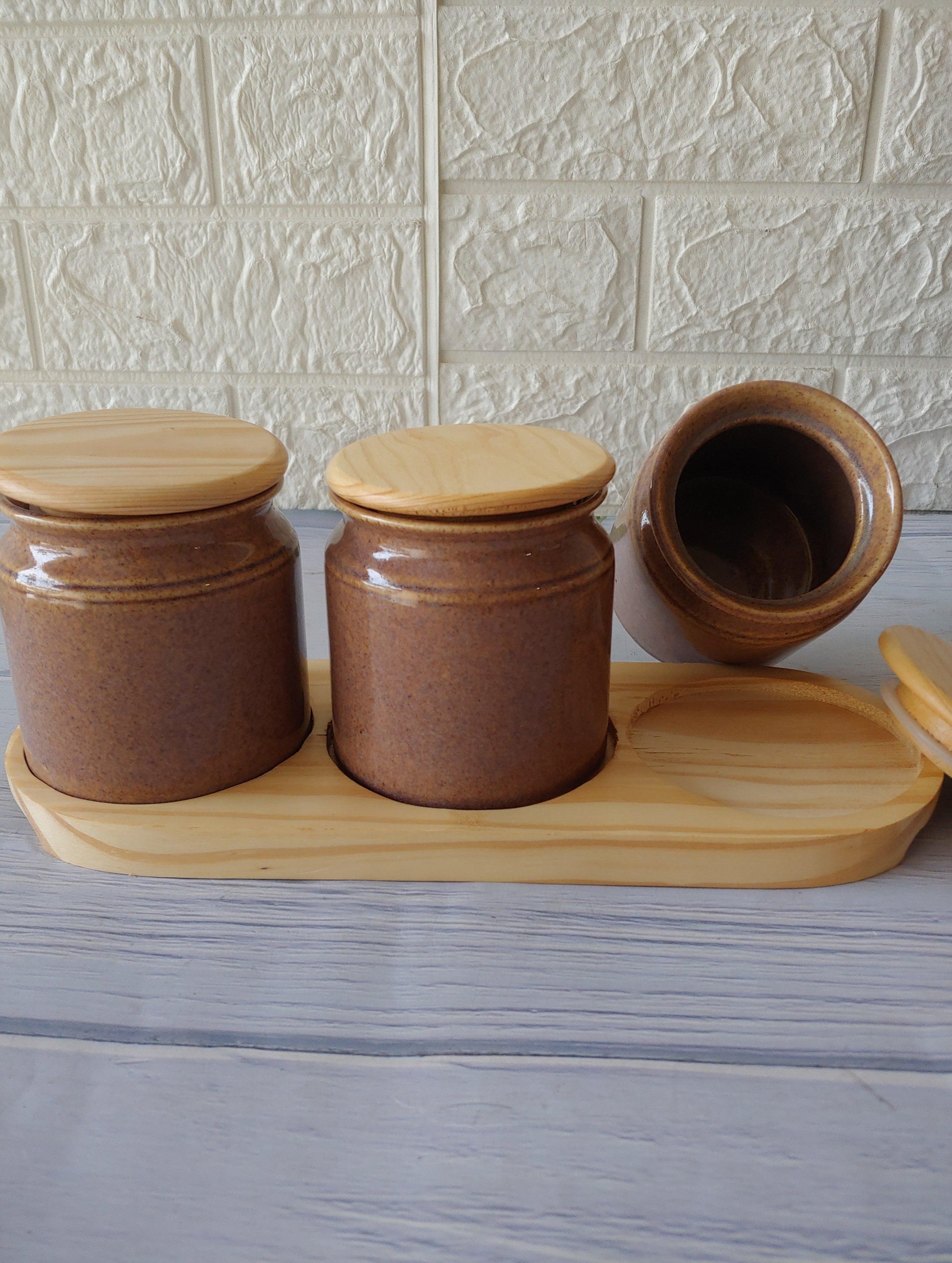 The Spice Sirens Flavor Pickle Jar Set with wooden lid and tray