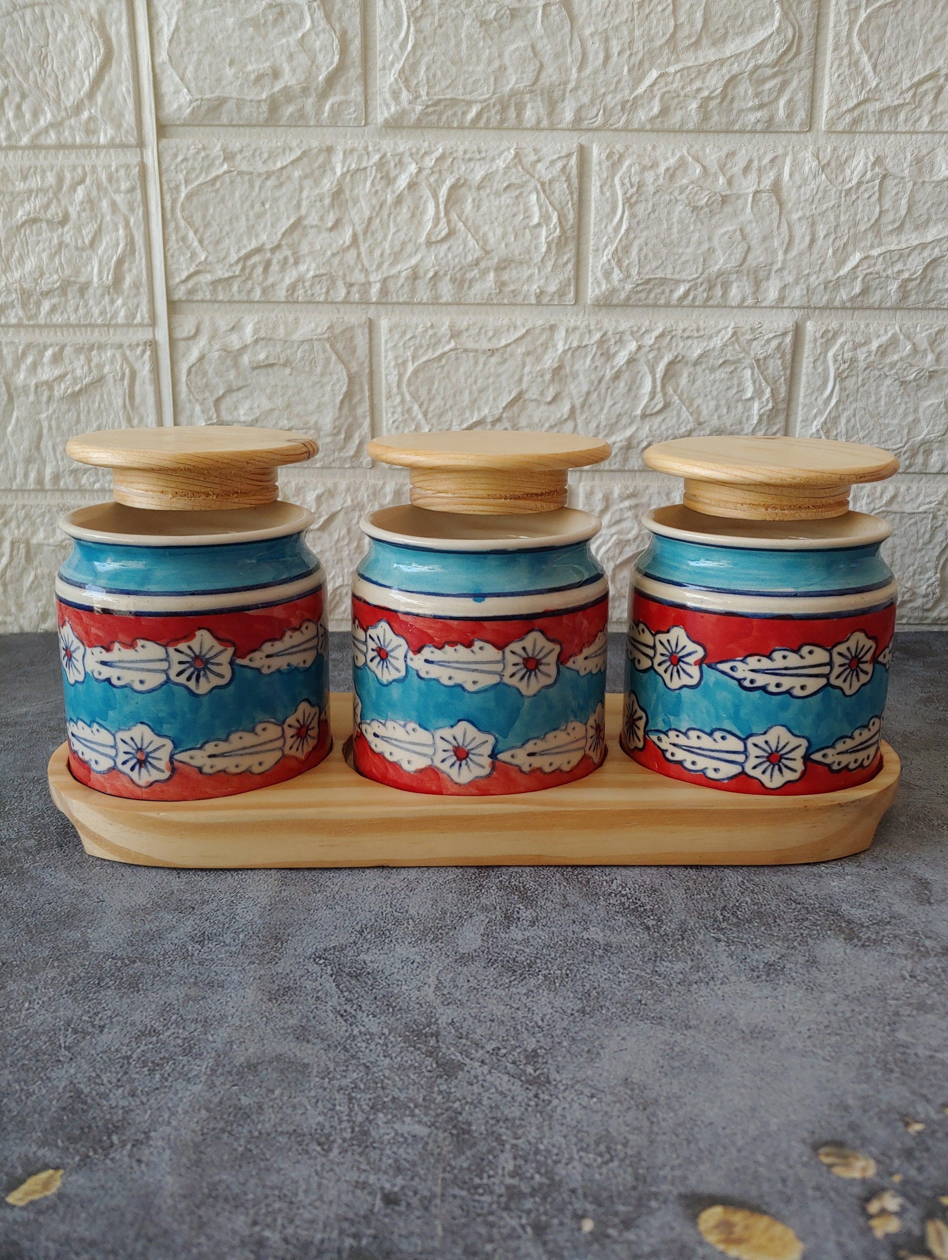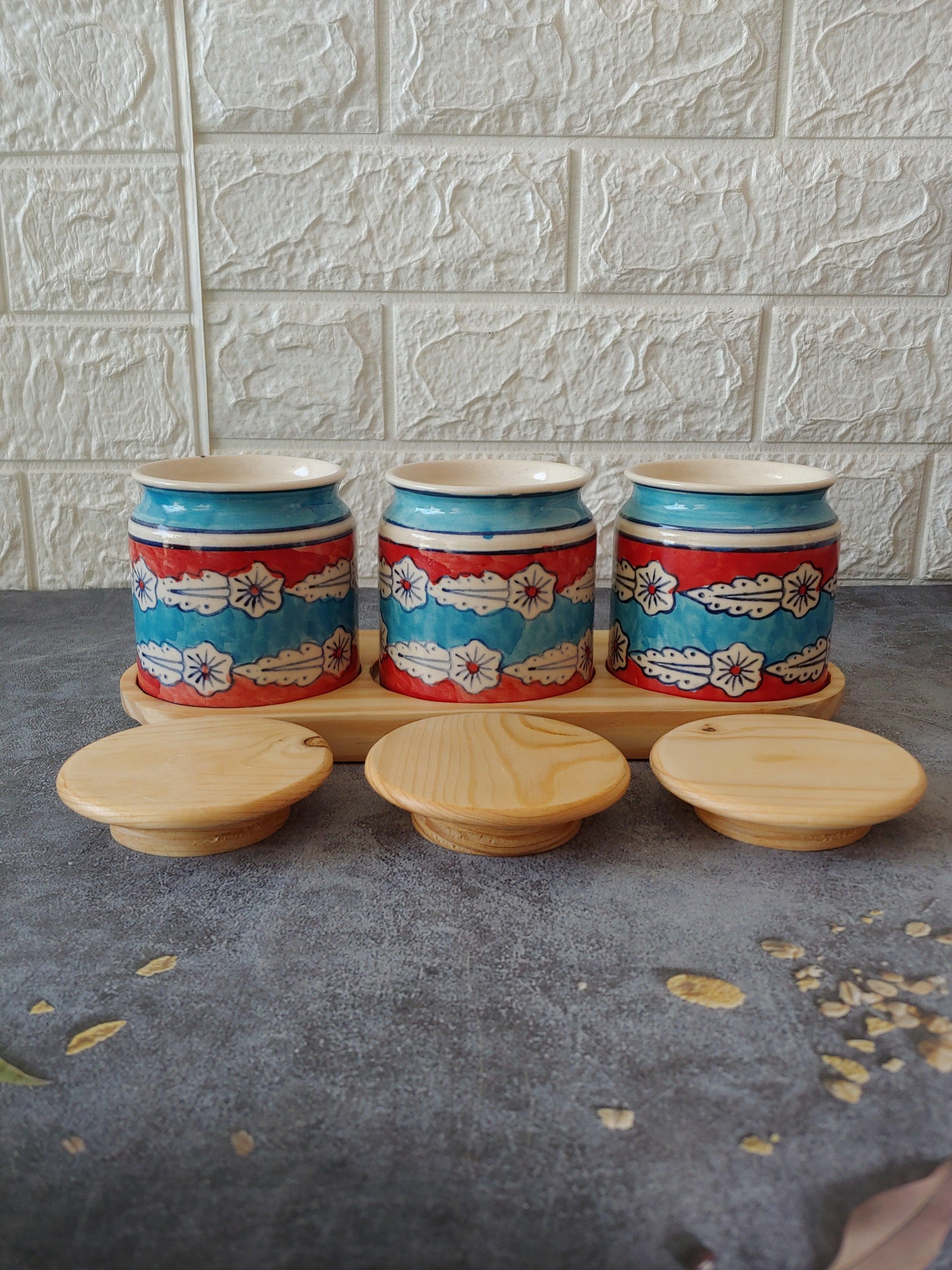 The Spice Trio of Treats Ceramic Kimchi Pickle Jar Set with wooden lid and tray