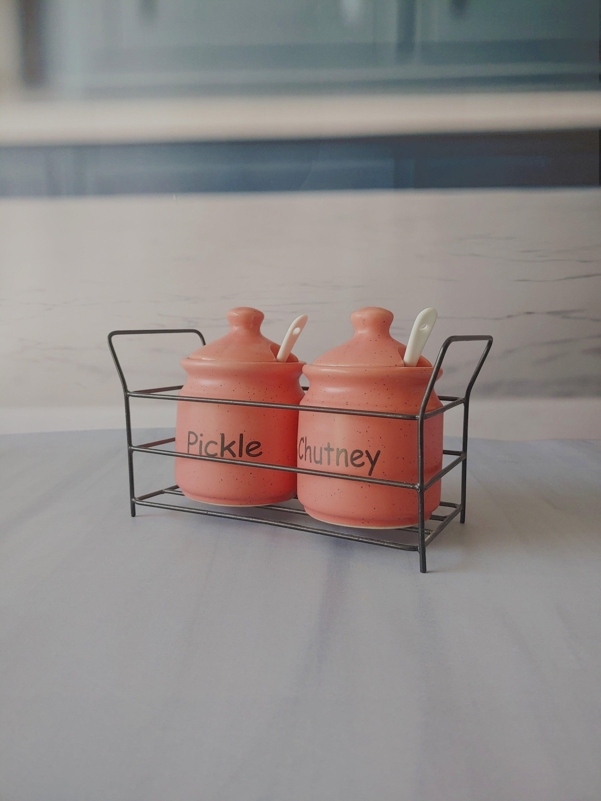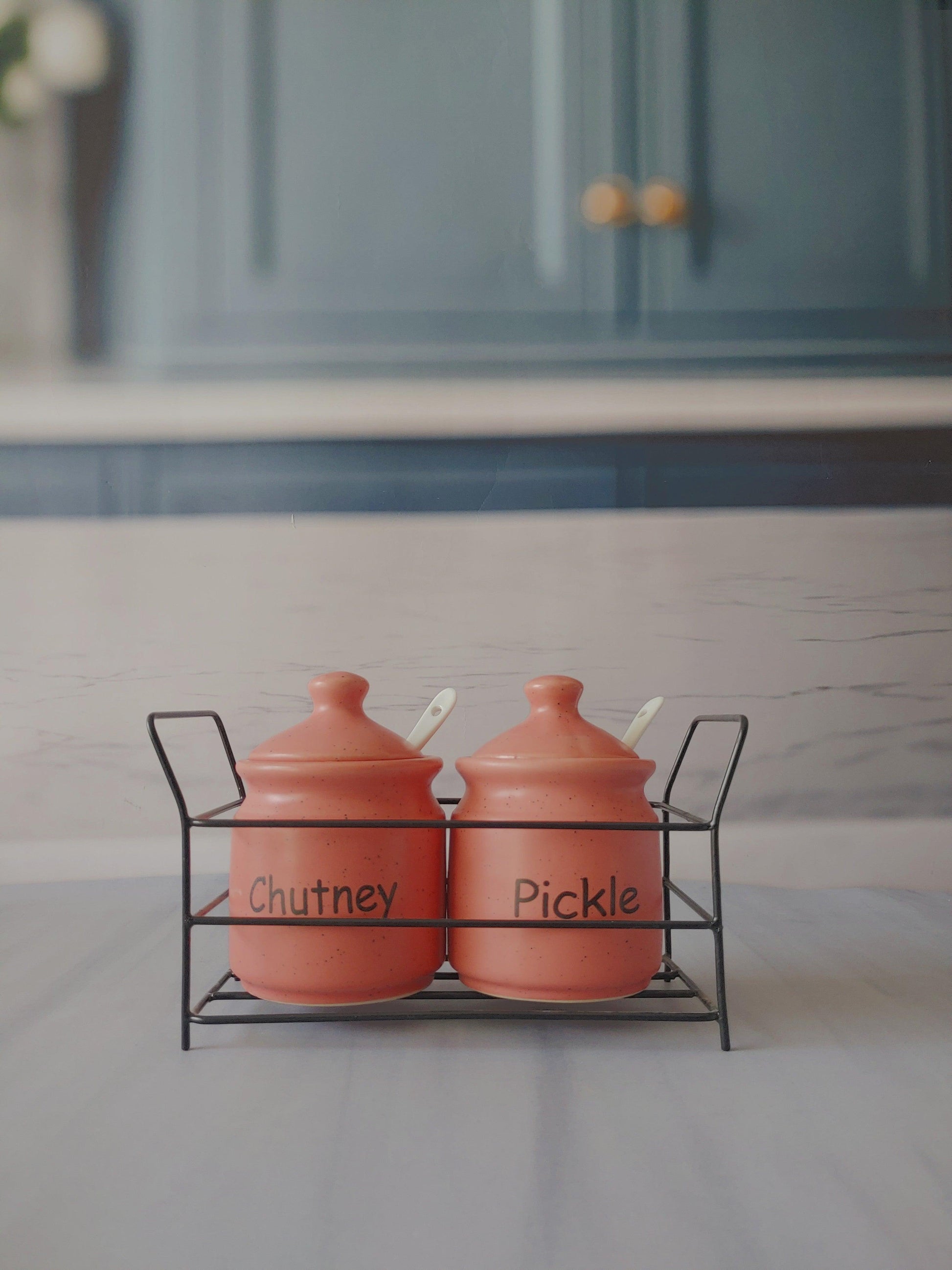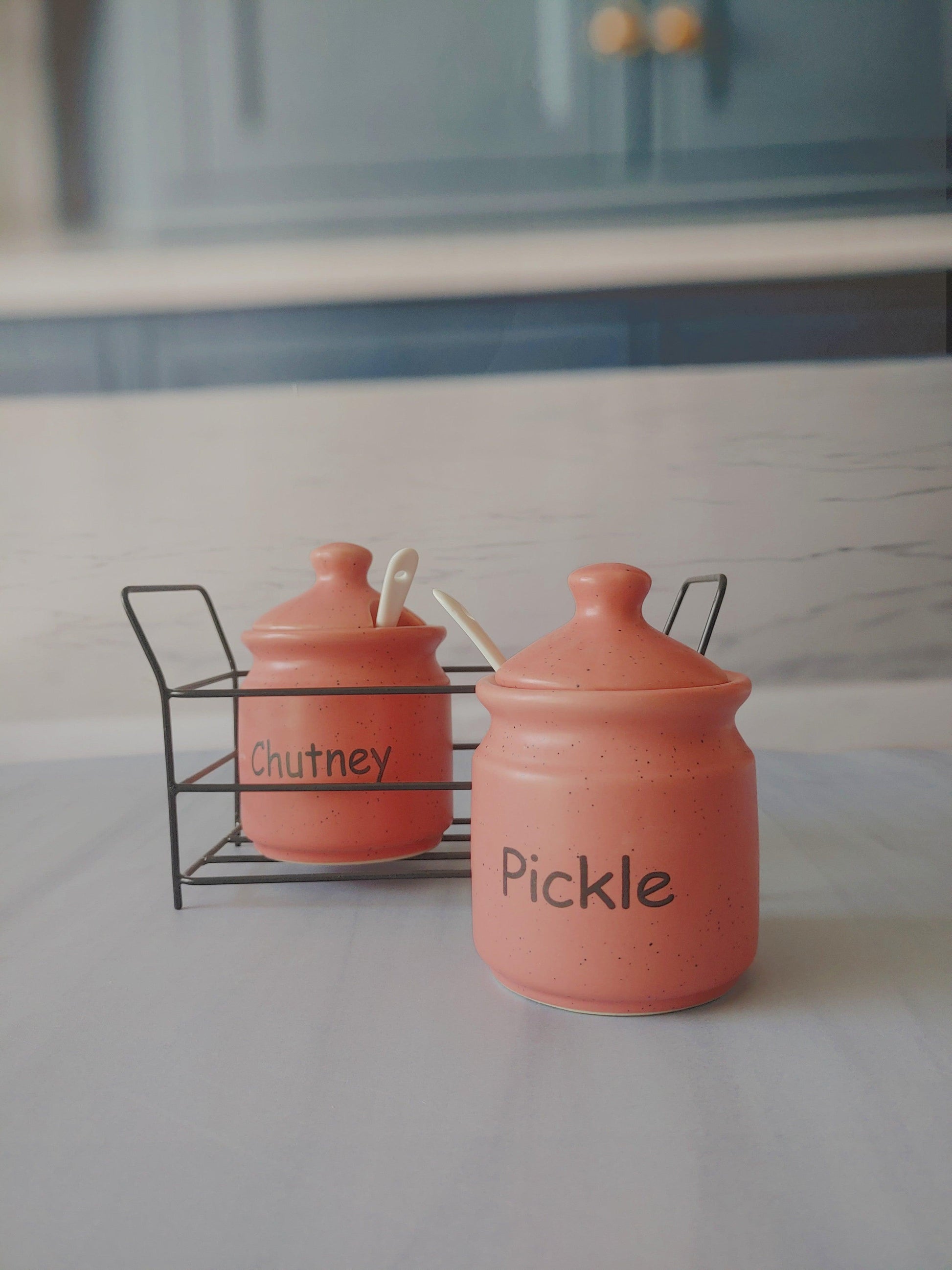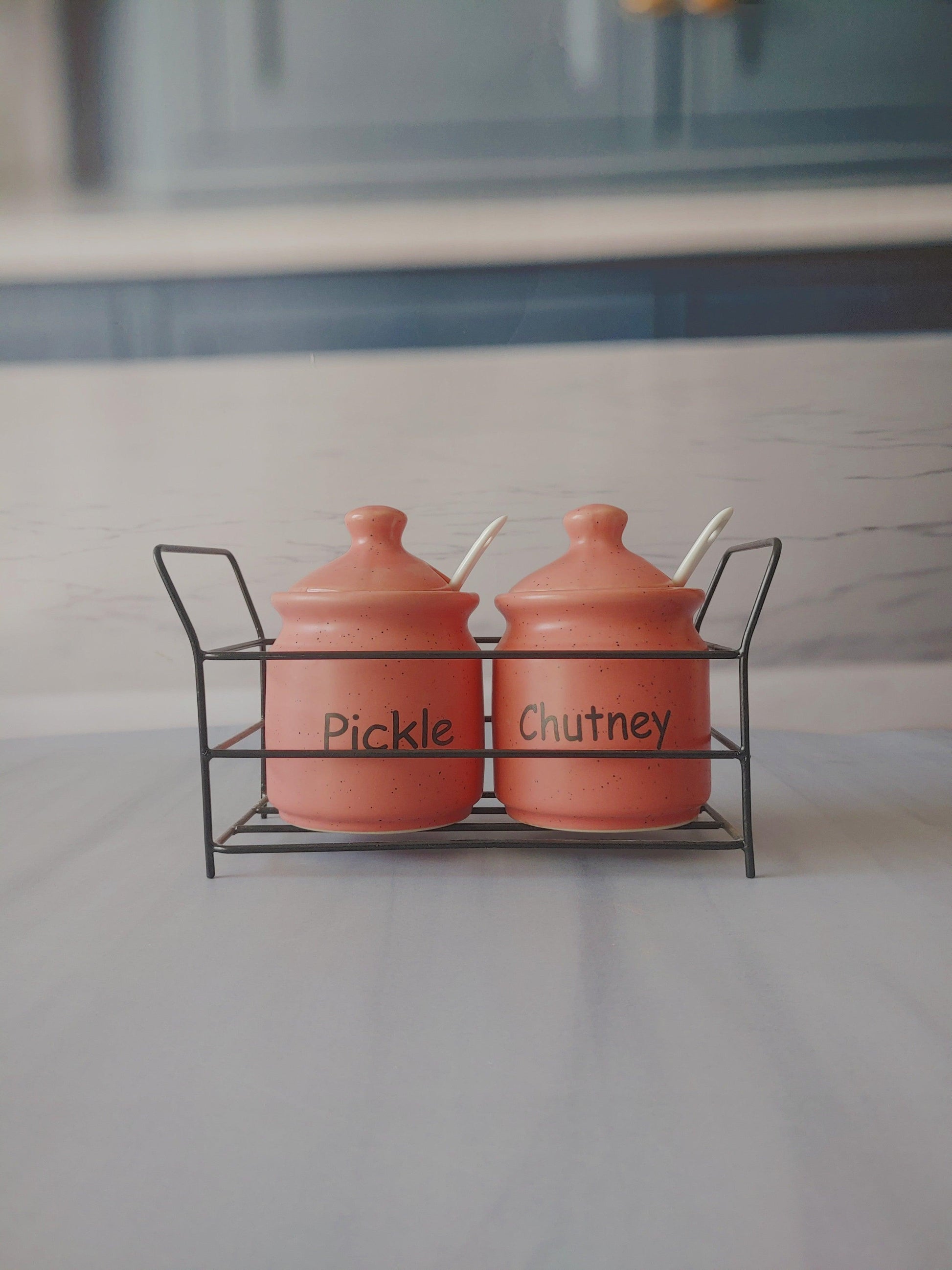 The Tasteful Twins Ceramic Kimchi Pickle and Chutney Jar with Metal stand