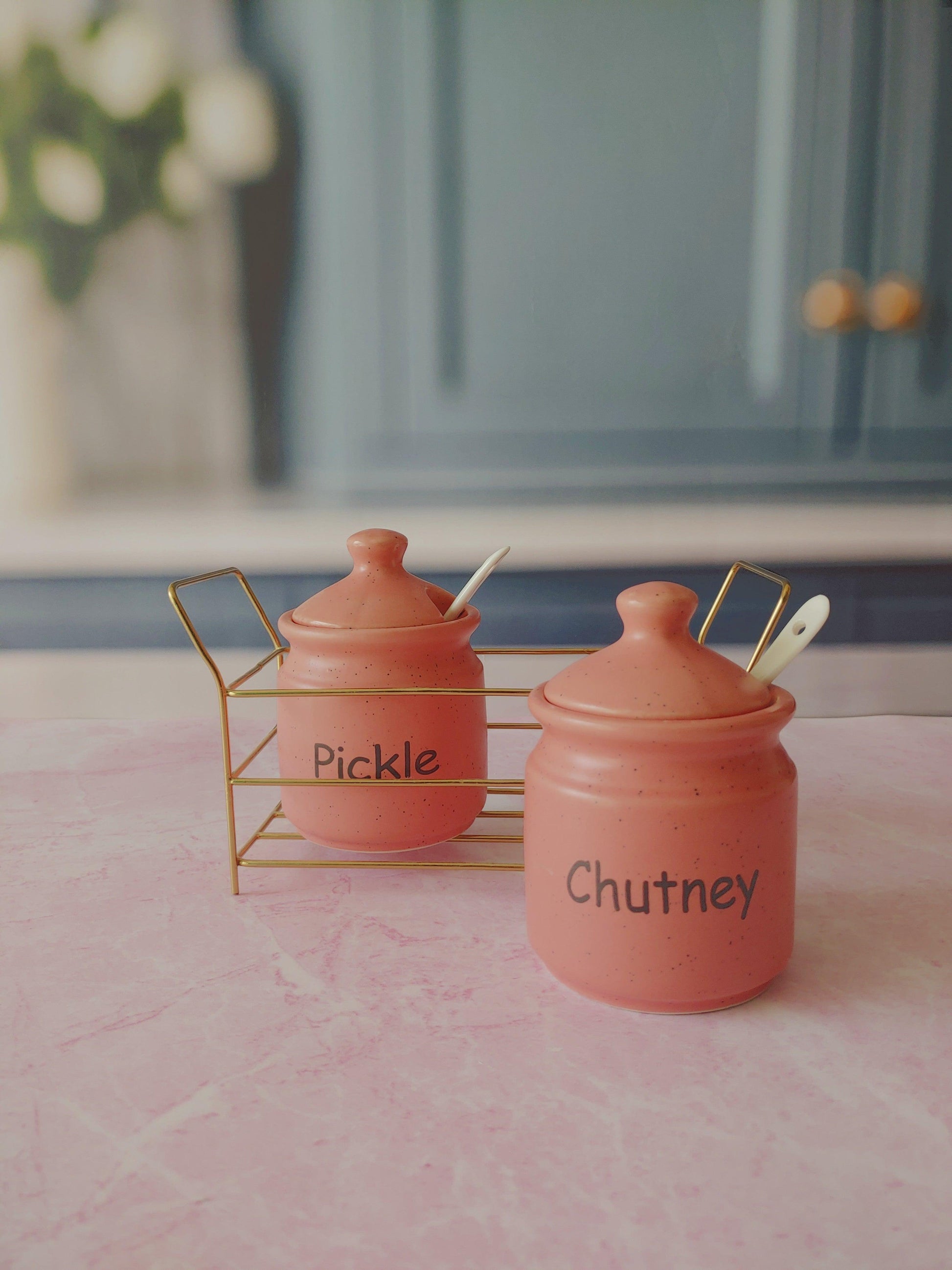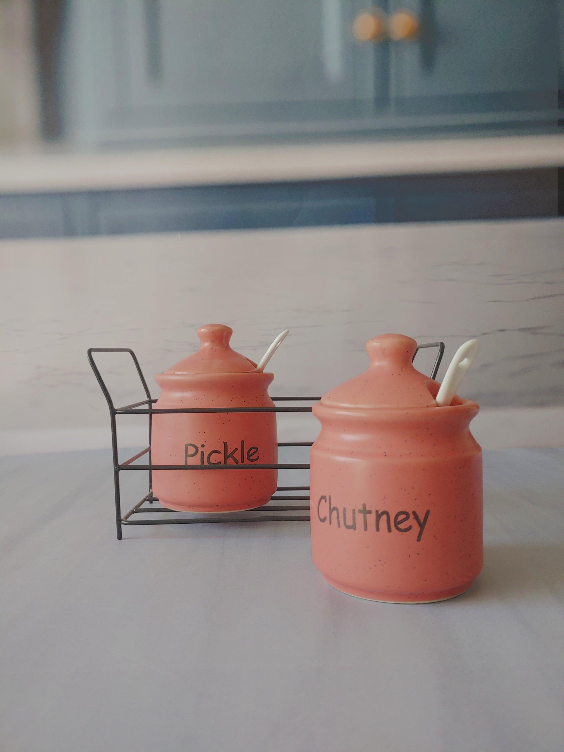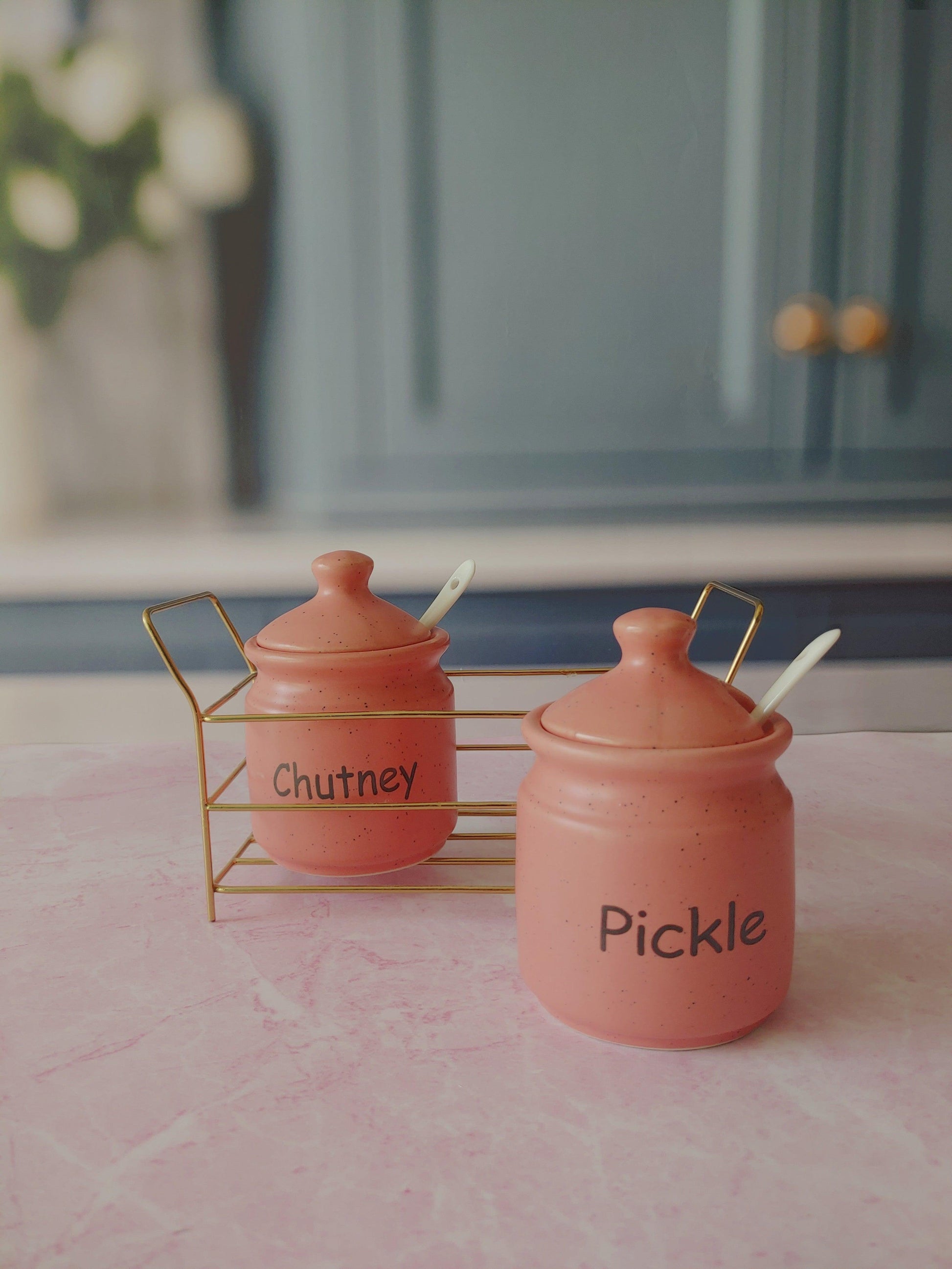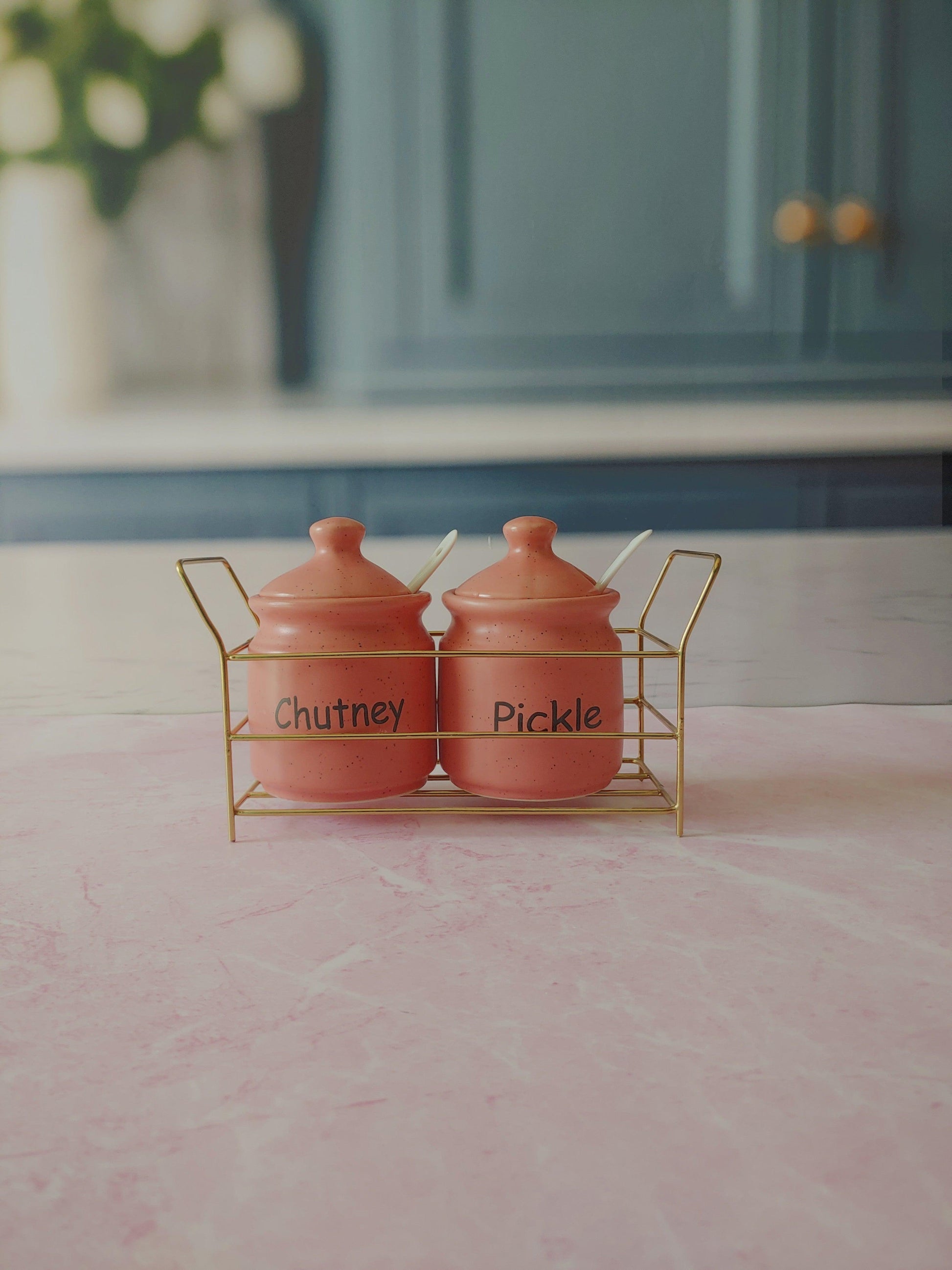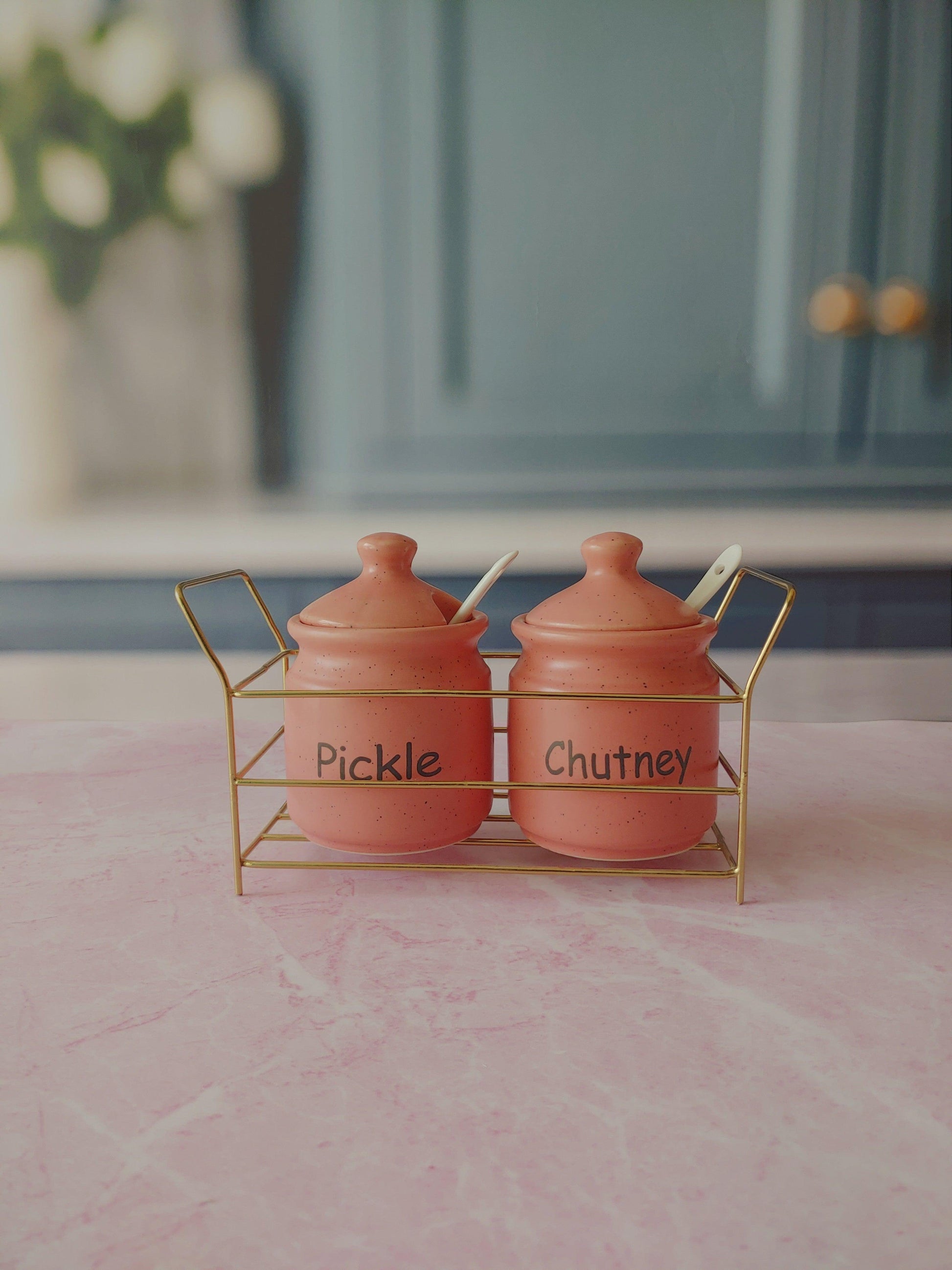 The Tasteful Twins Ceramic Kimchi Pickle and Chutney Jar with Metal stand