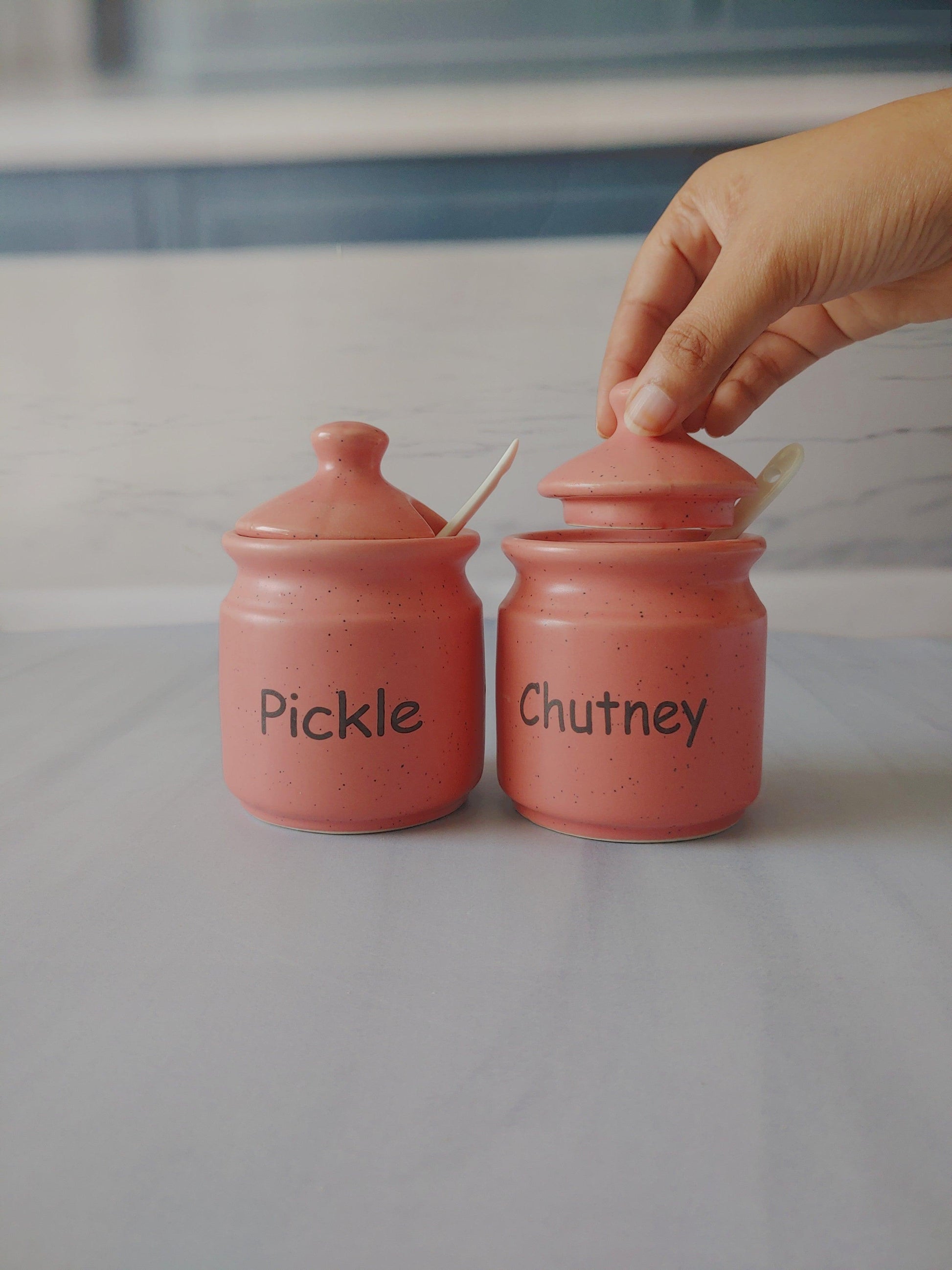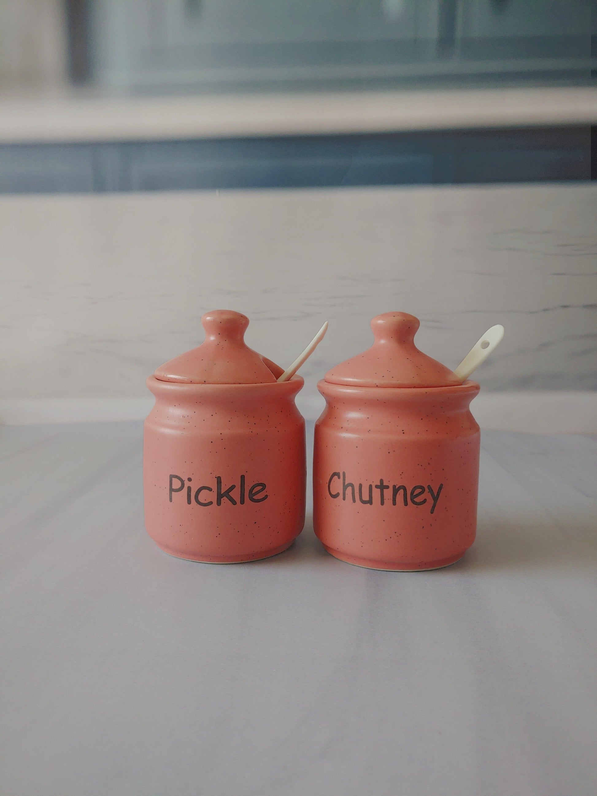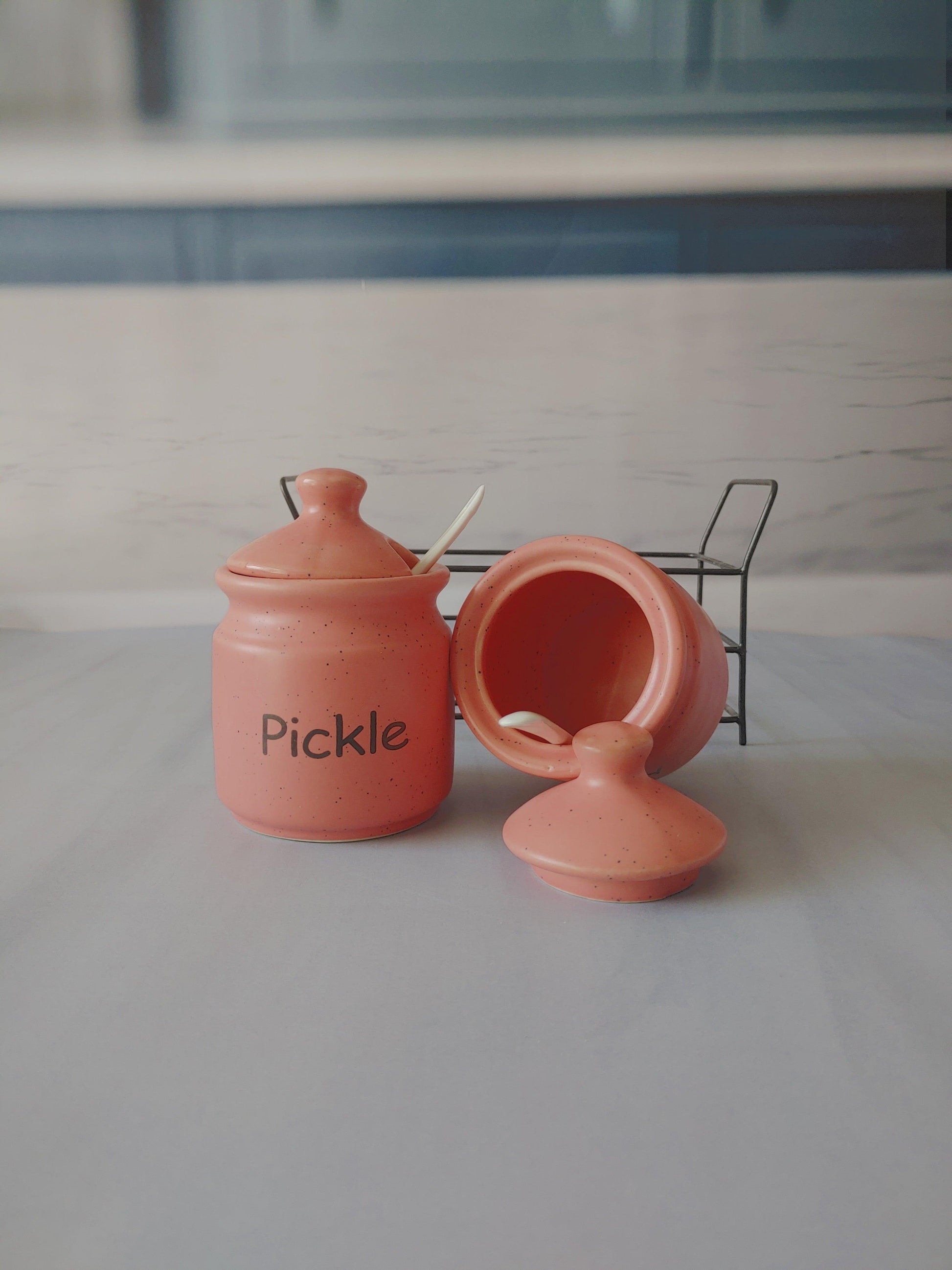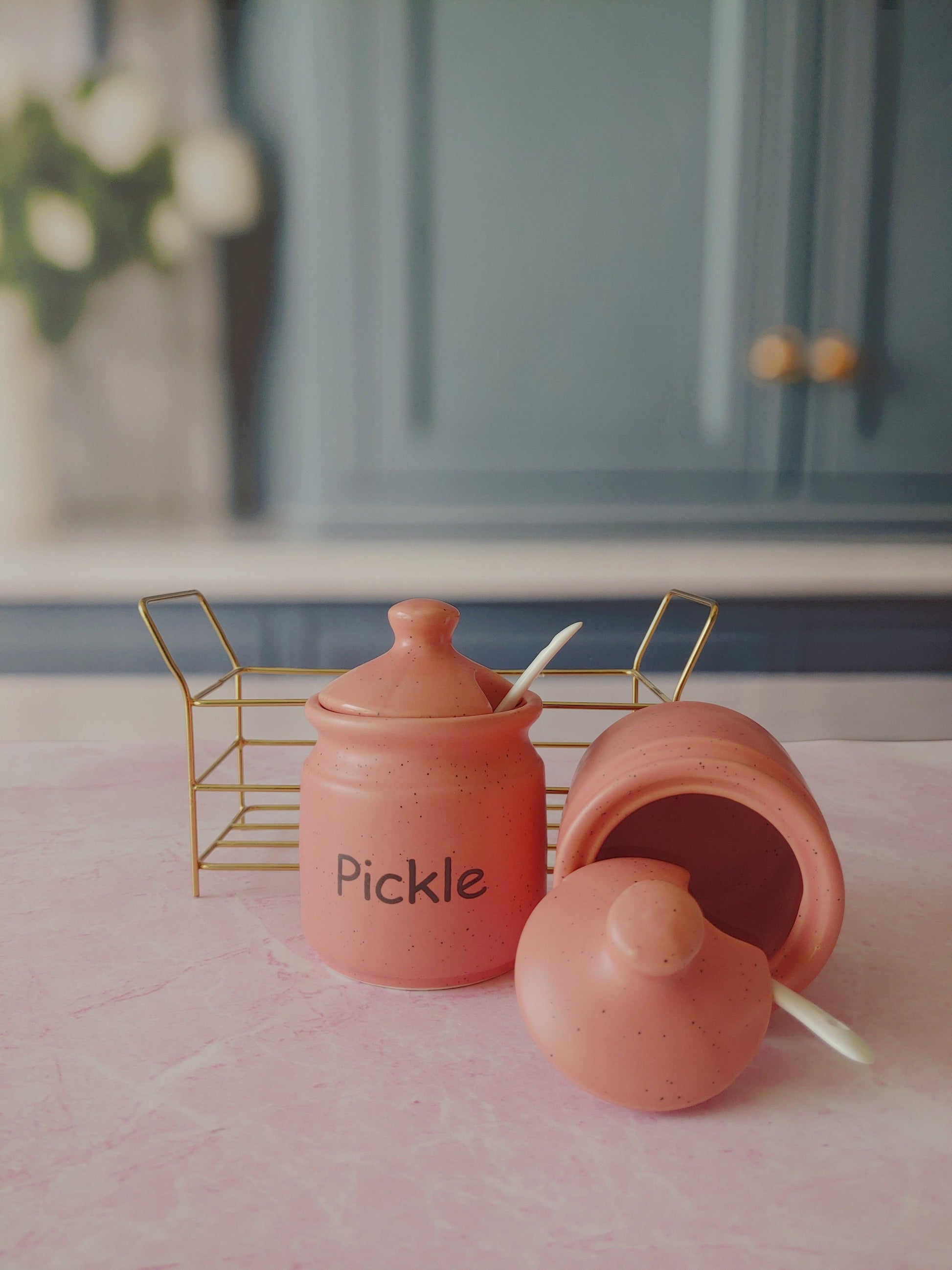 The Tasteful Twins Ceramic Kimchi Pickle and Chutney Jar with Metal stand