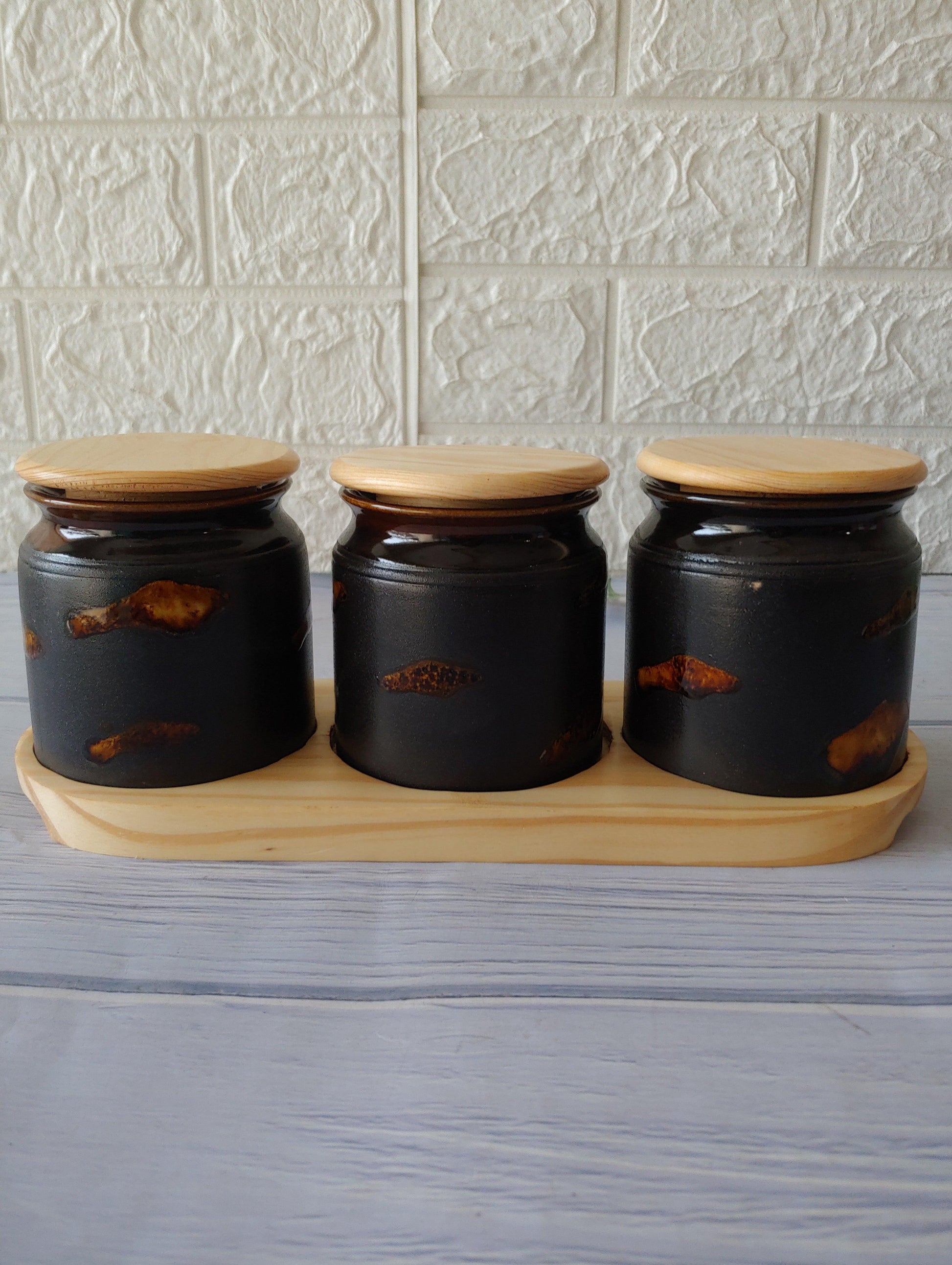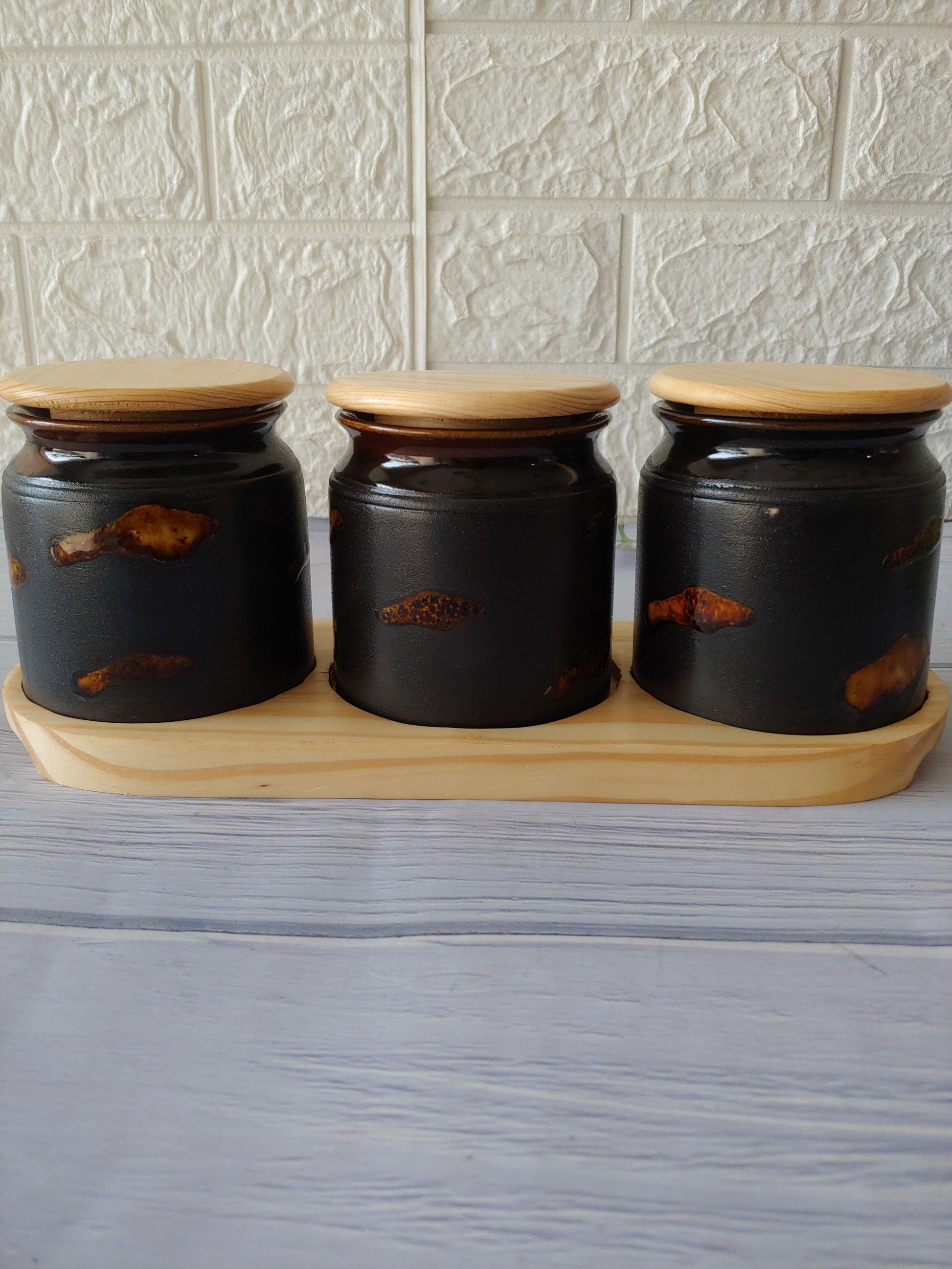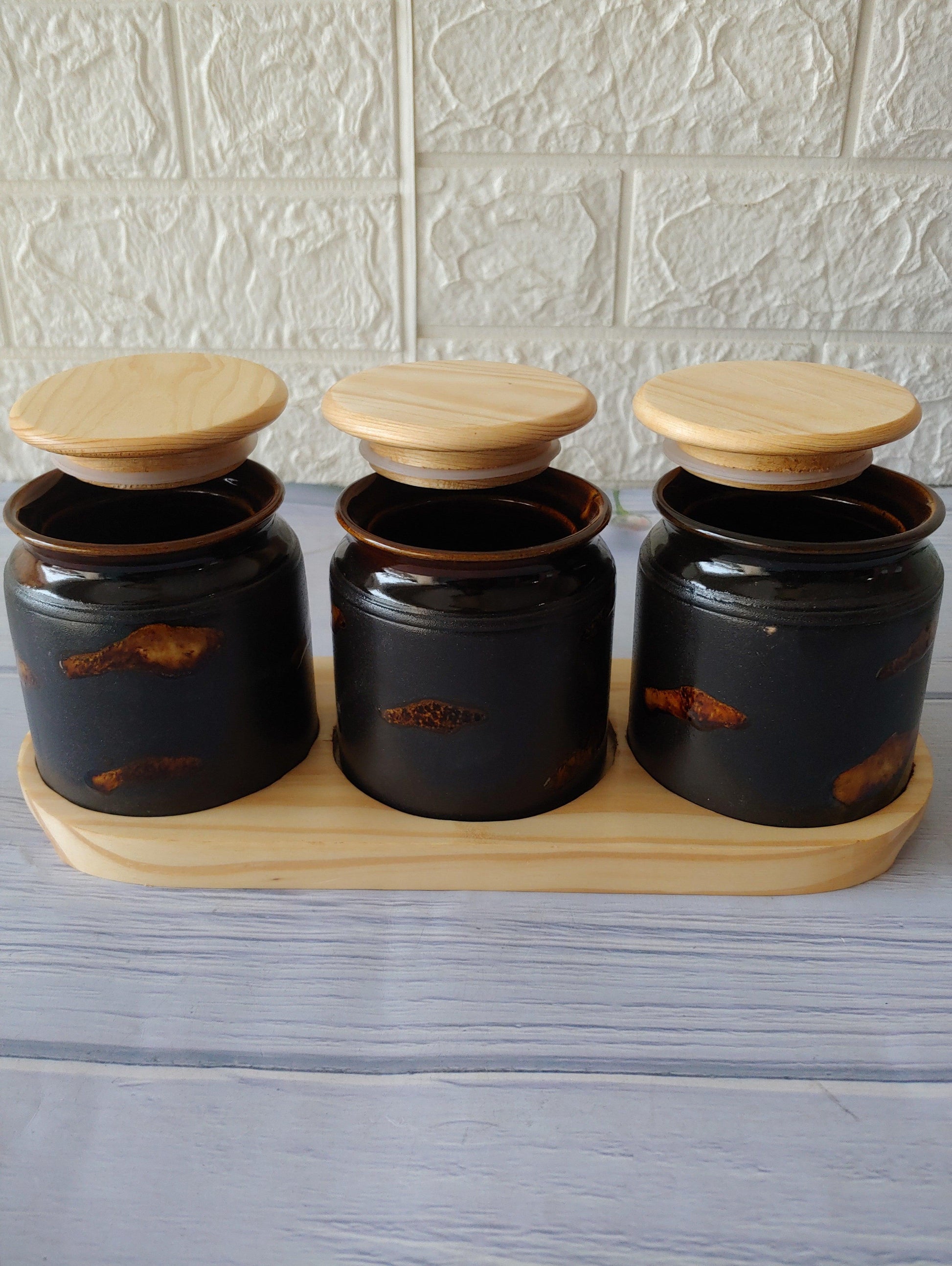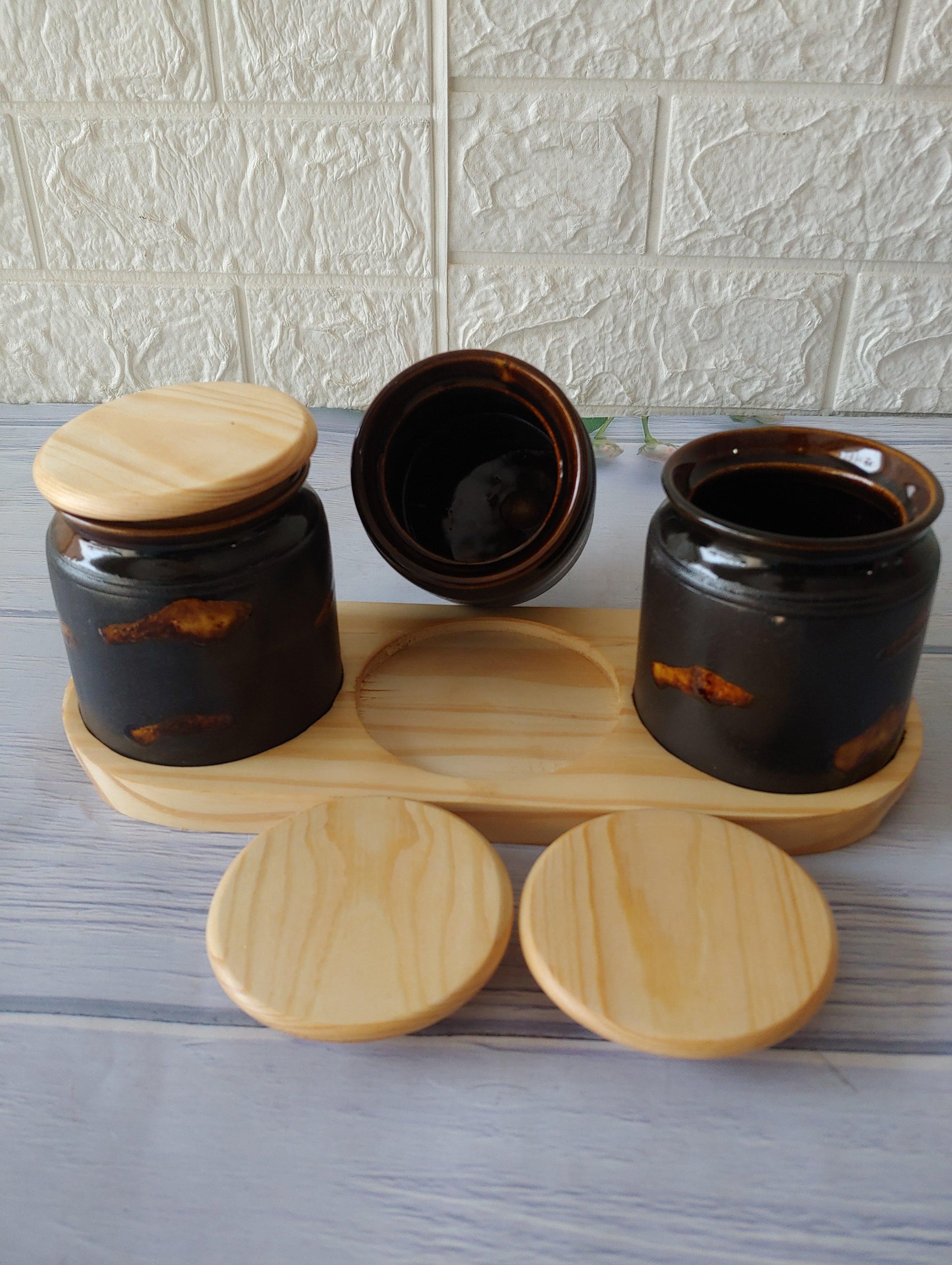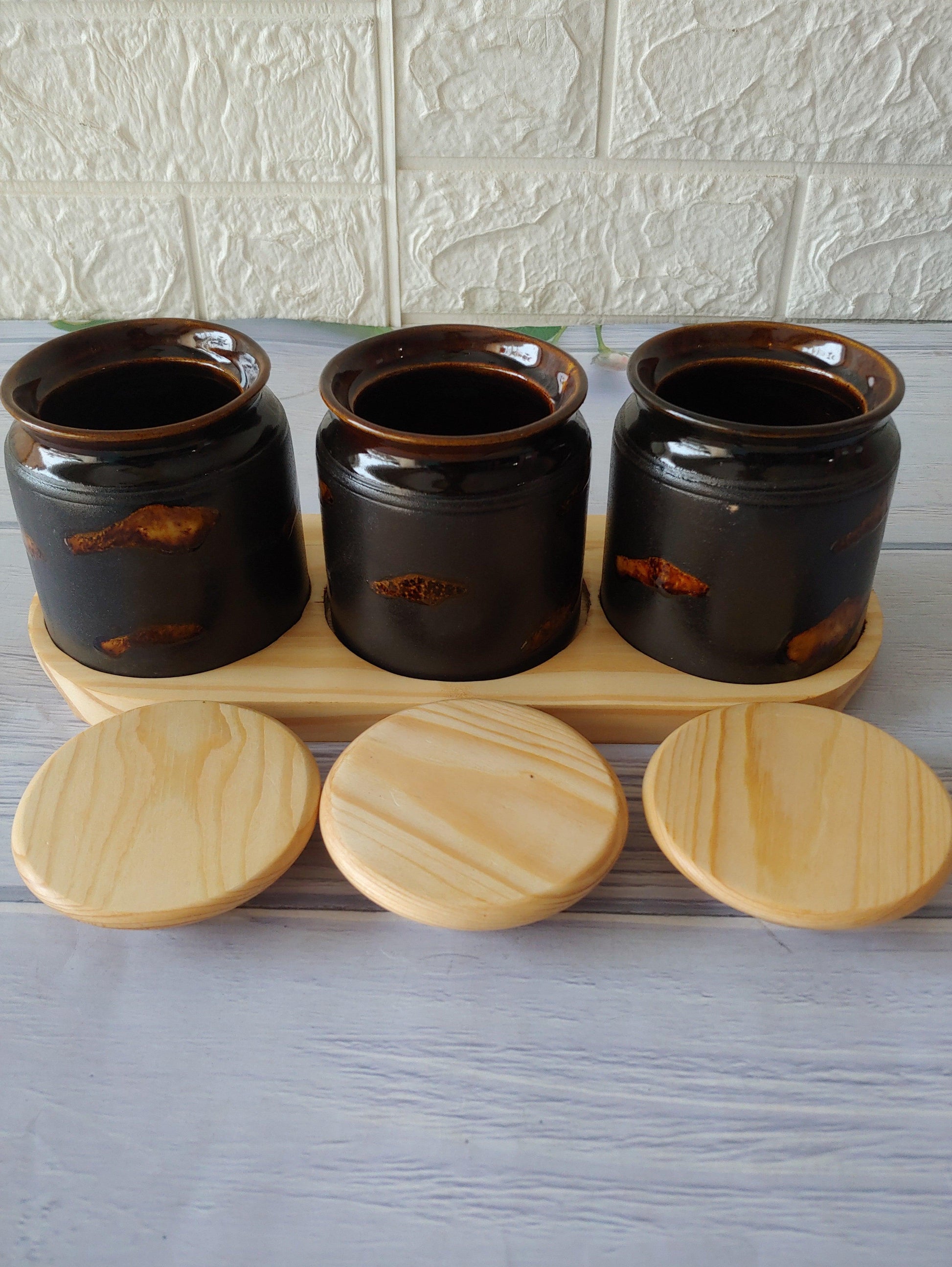 Thyme kimchi Pickle Jar Set with wooden lid and tray