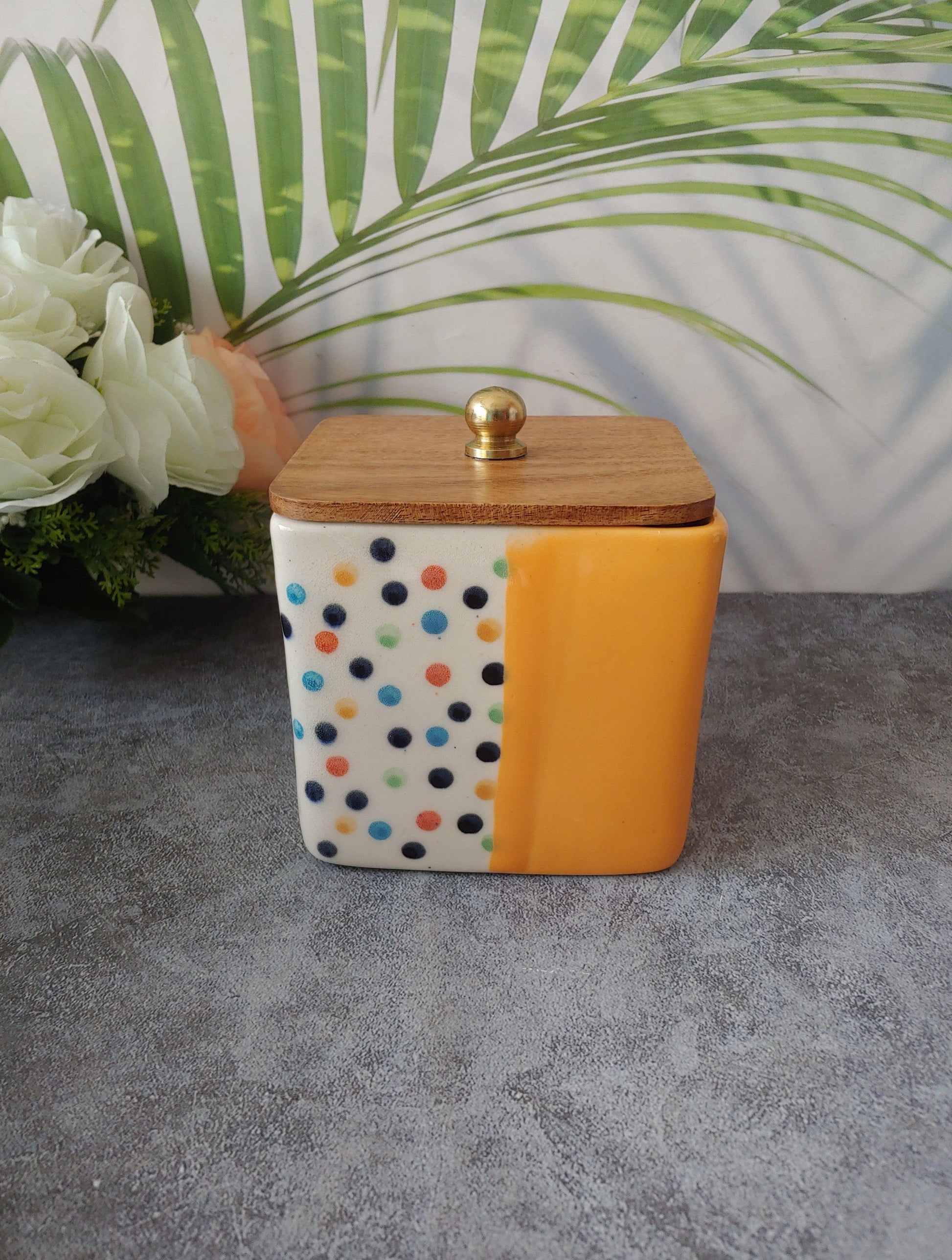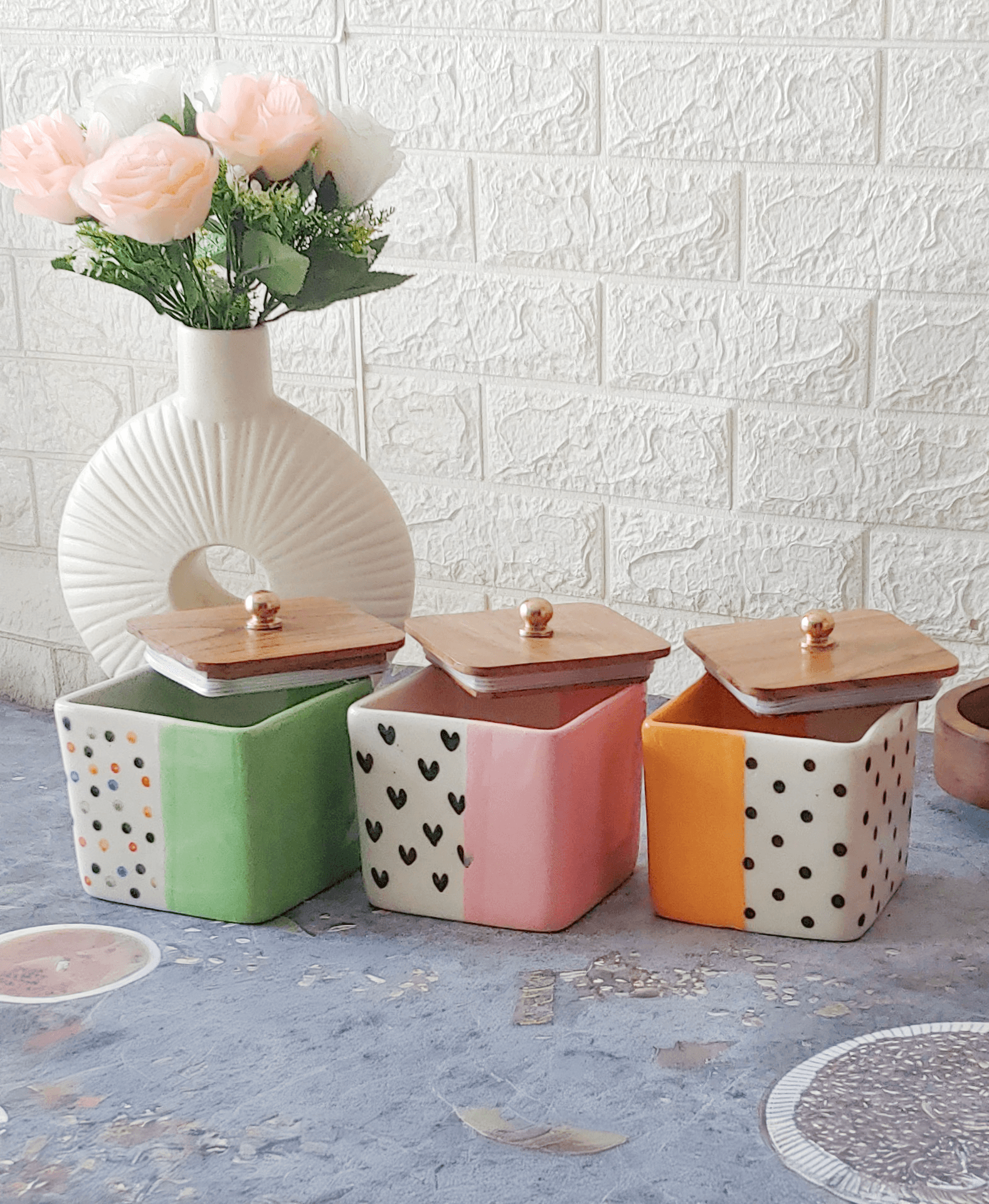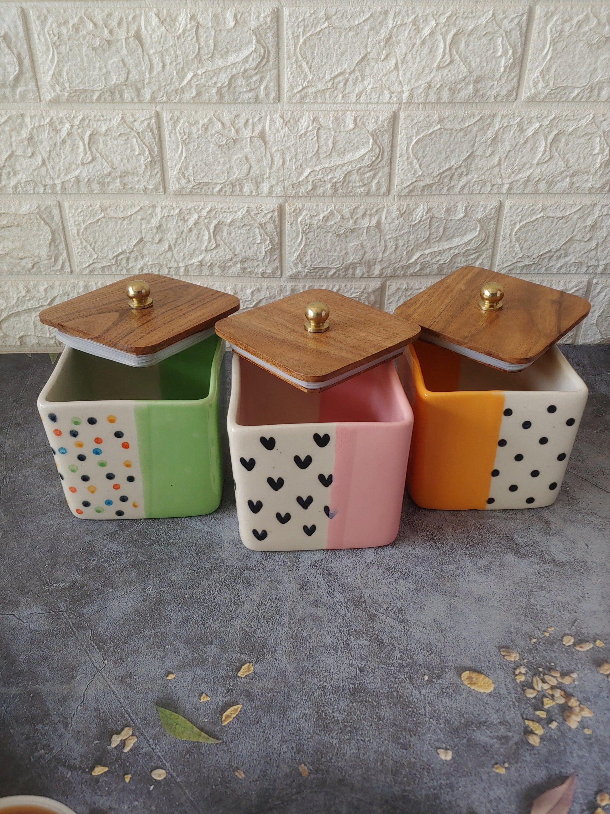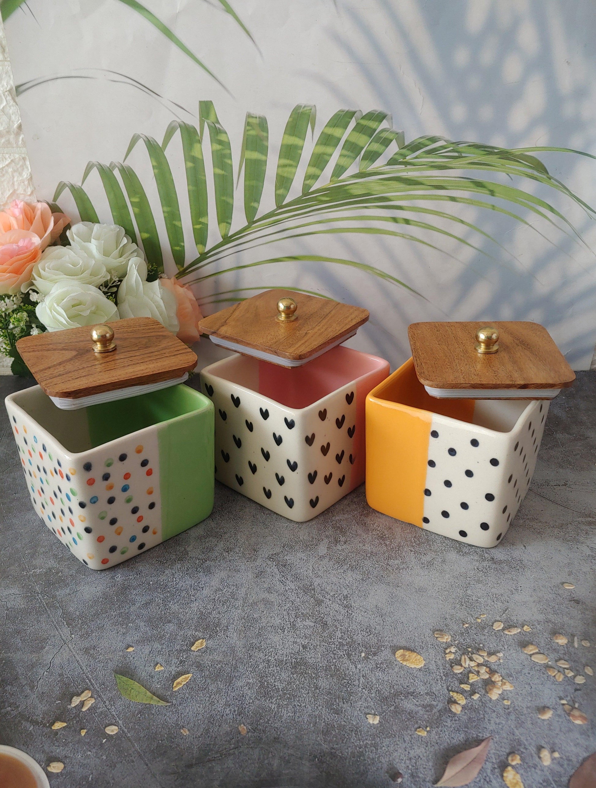 Trinket Happy Heart Ceramic Airtight Containers with Wooden Lid set of 3