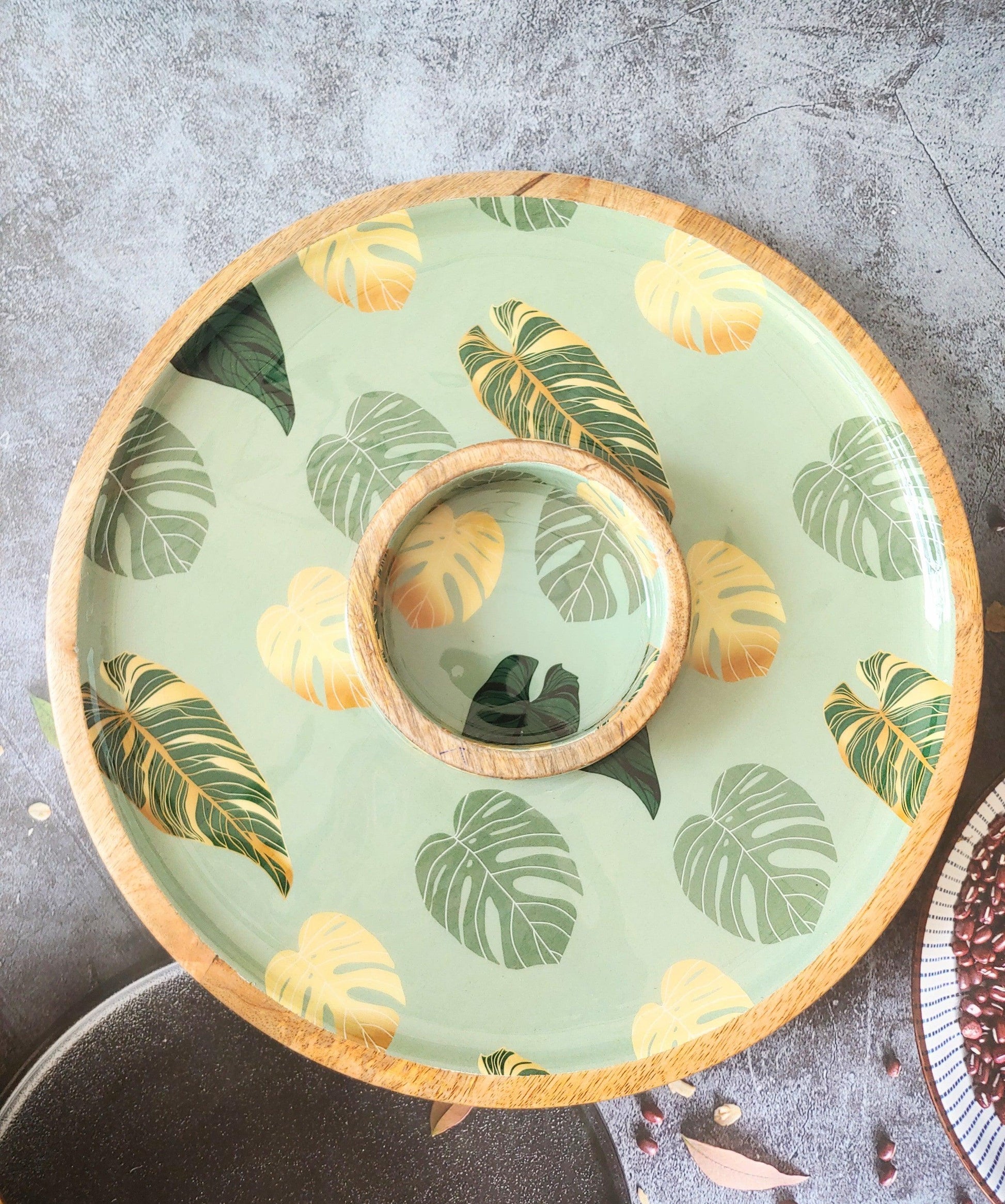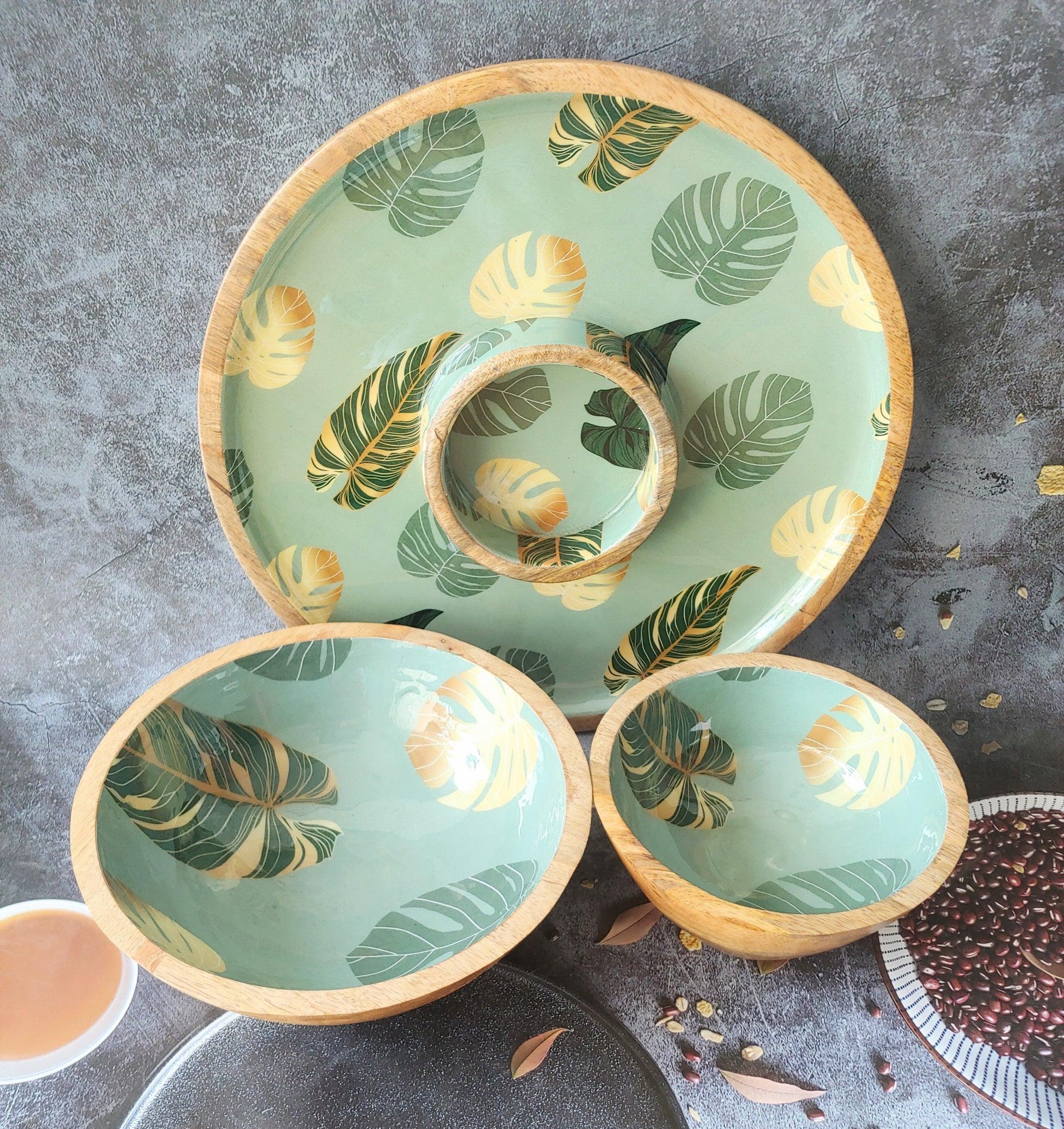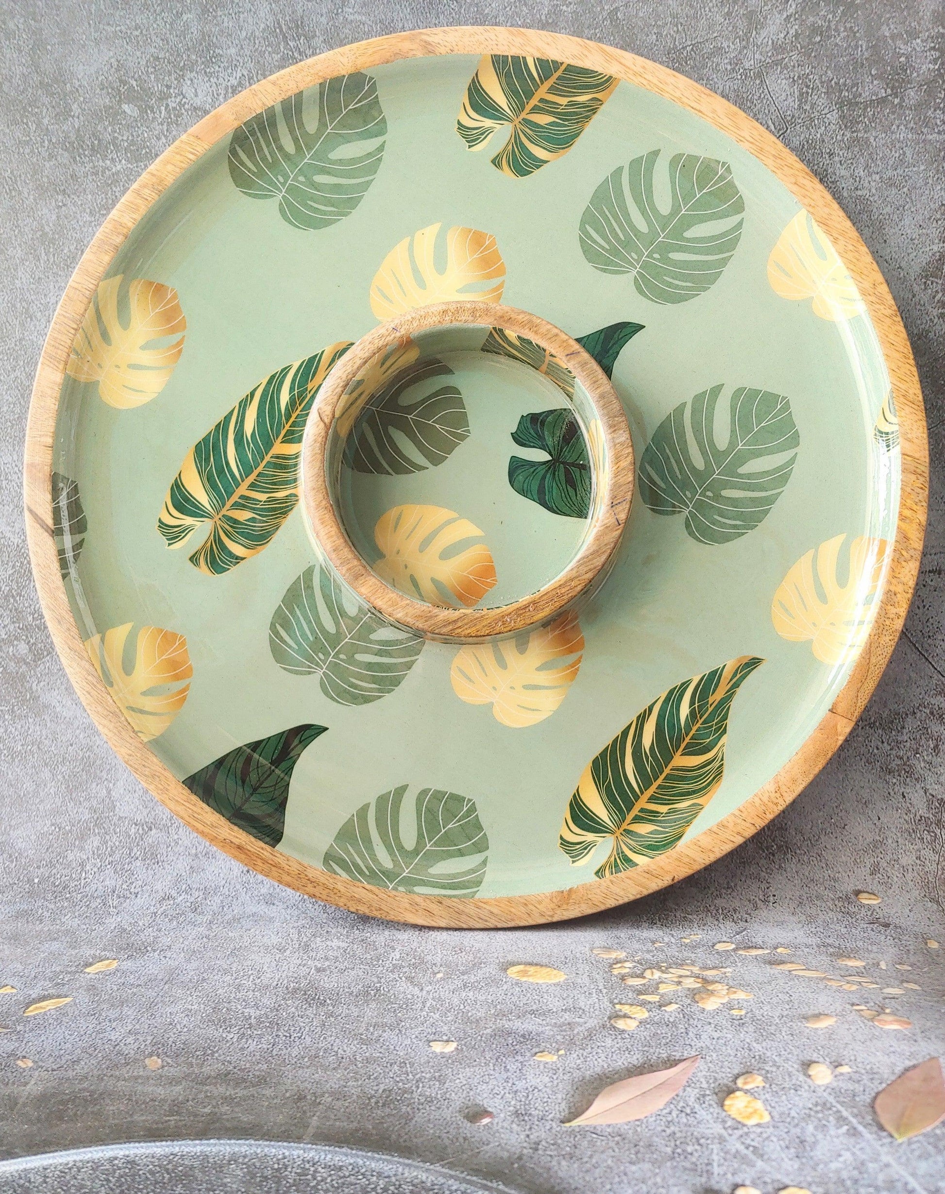Tropical Leaf Green and Gold Monstera Leaf Serving Platter