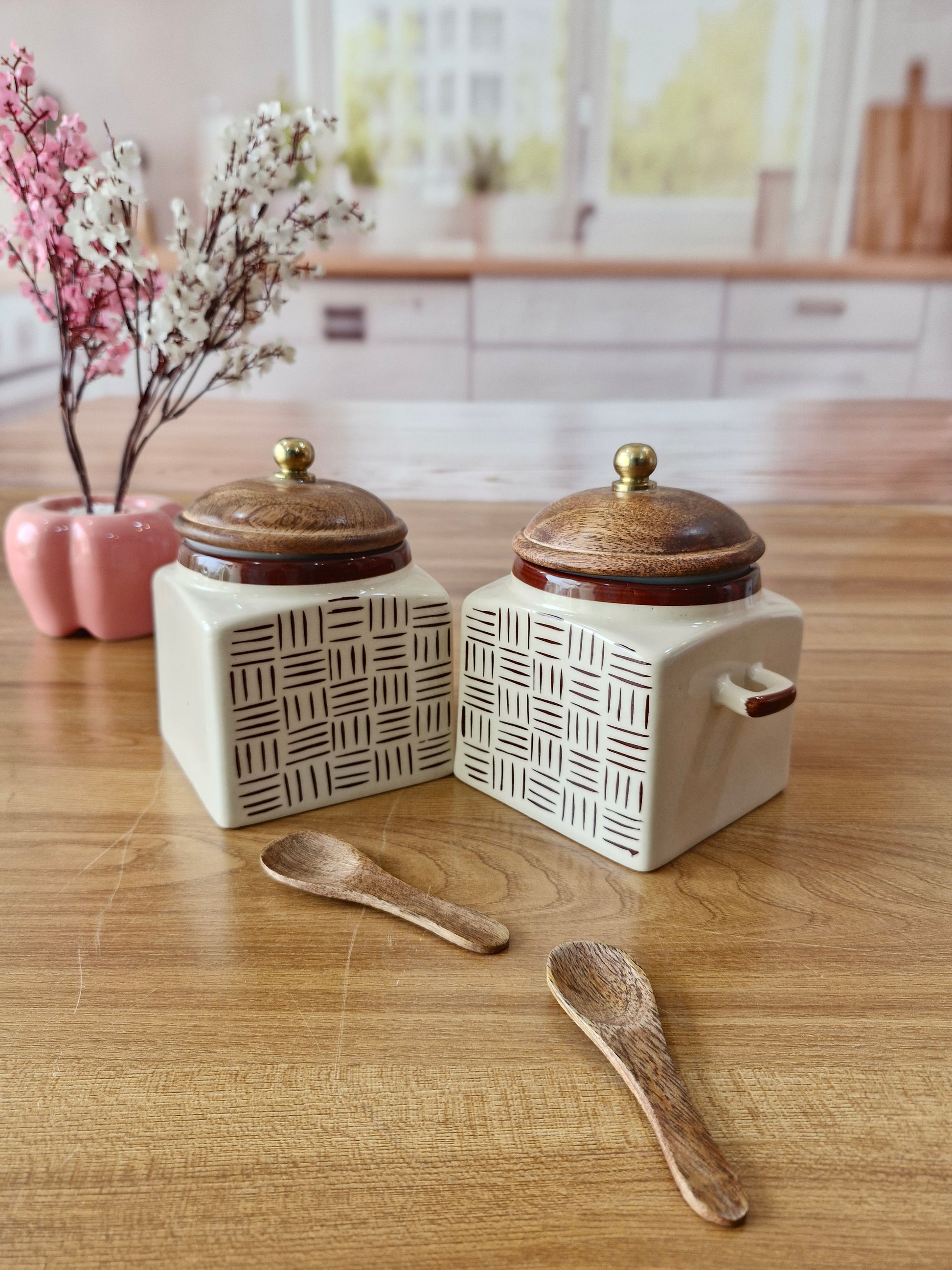 Water Lily Designs with Love Retreat (1/2 kg) Airtight Square Jars with spoon