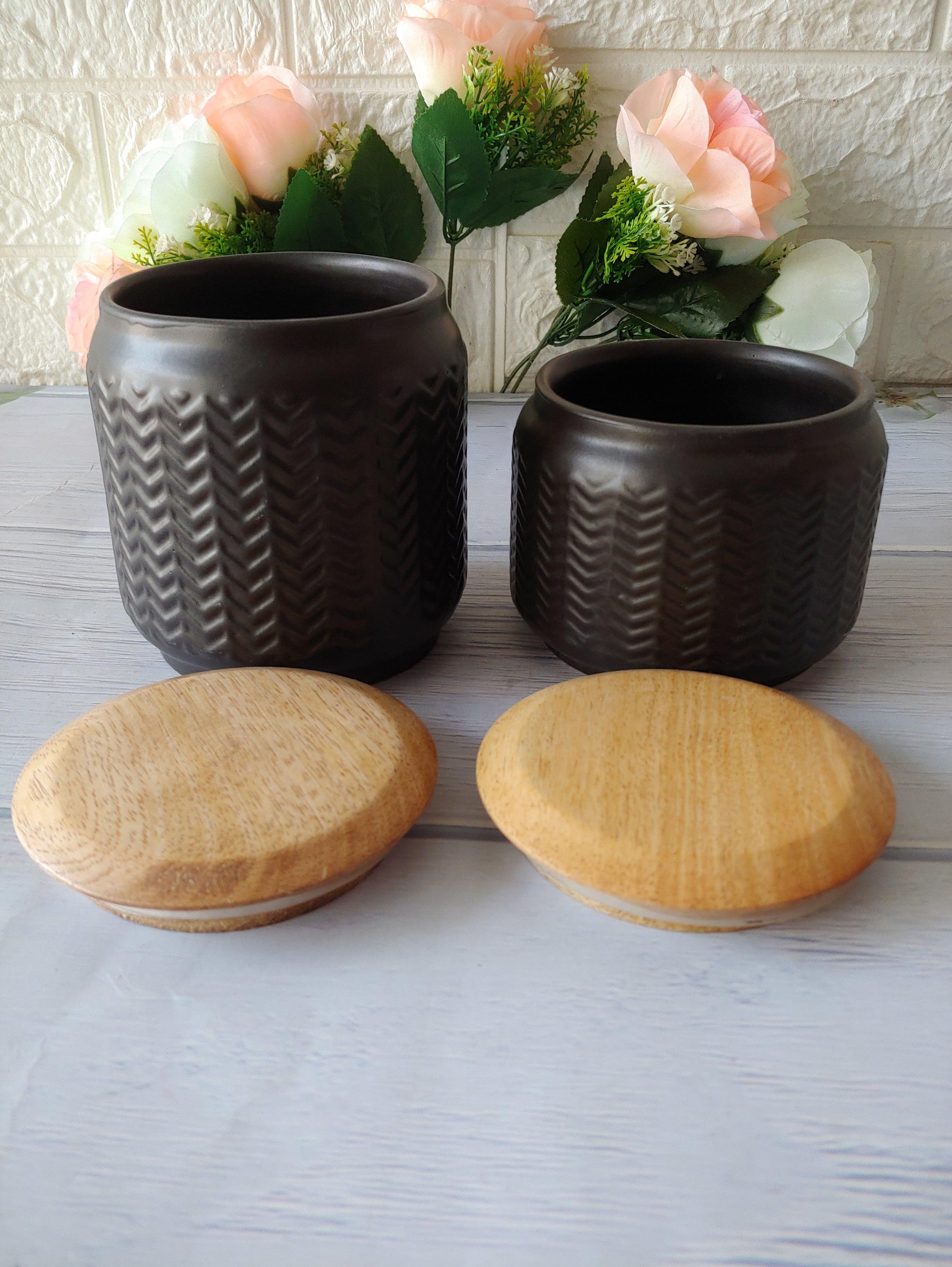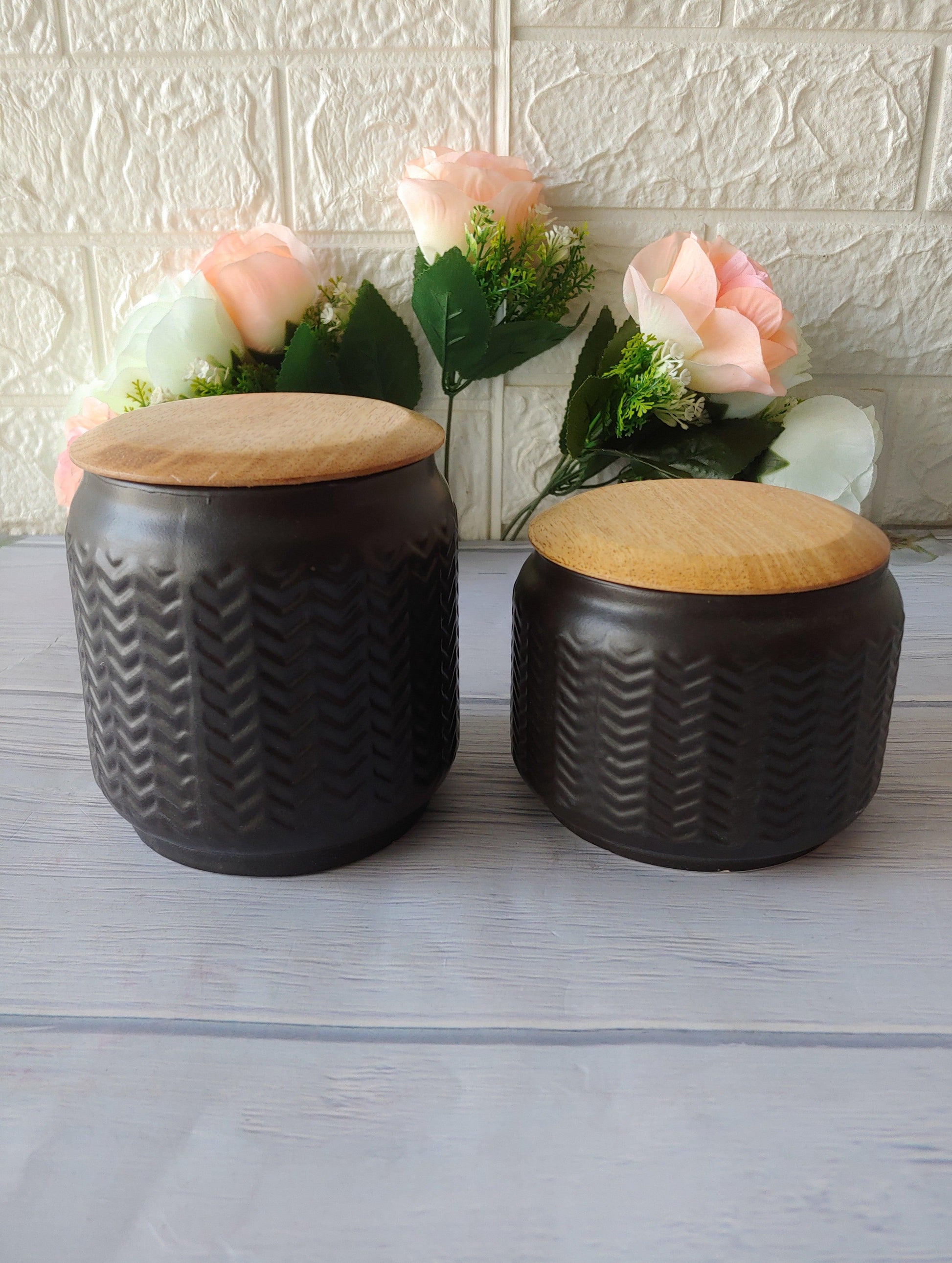 Zig-Zag Pastel black set of 2 Airtight Storage container