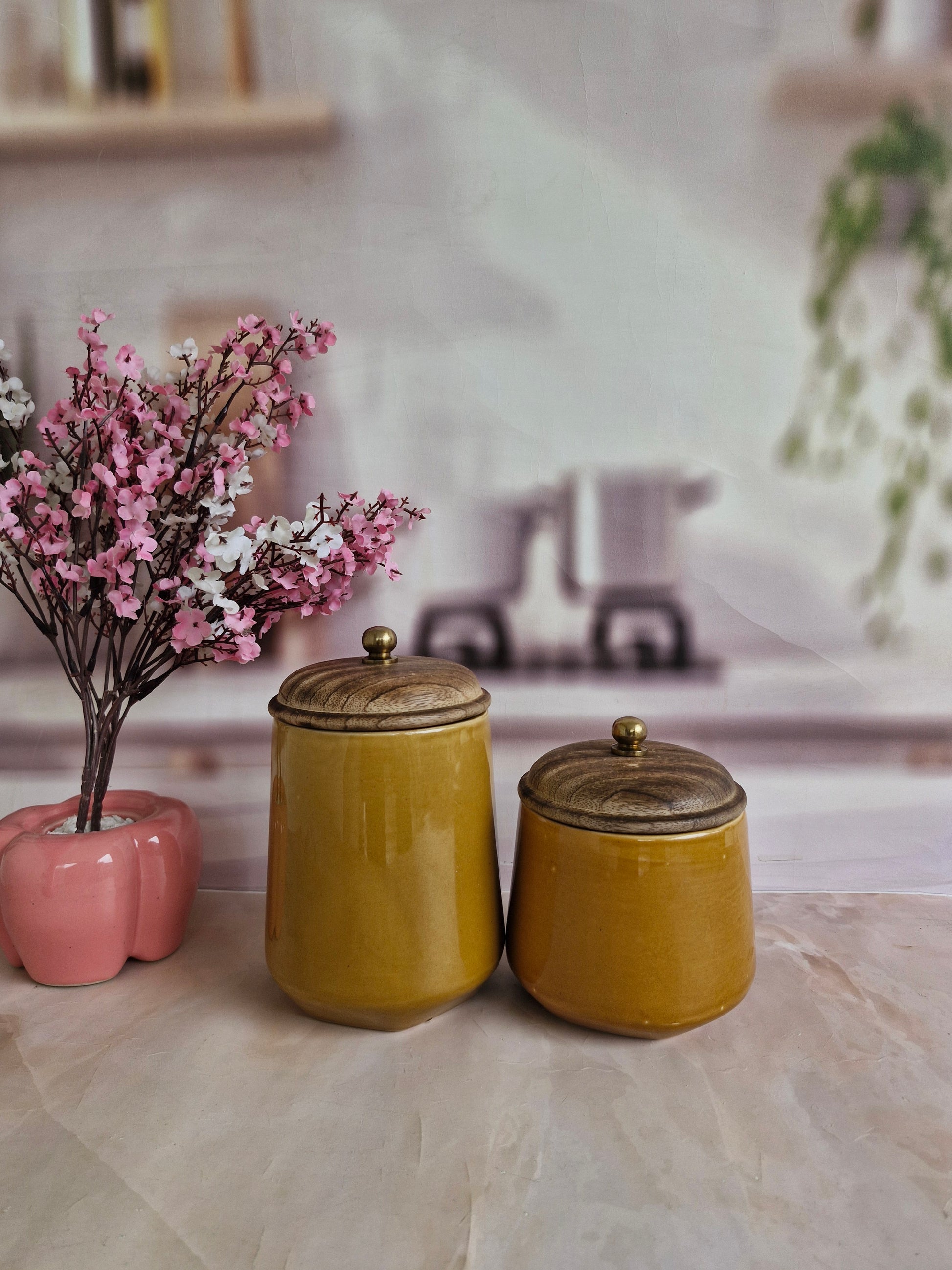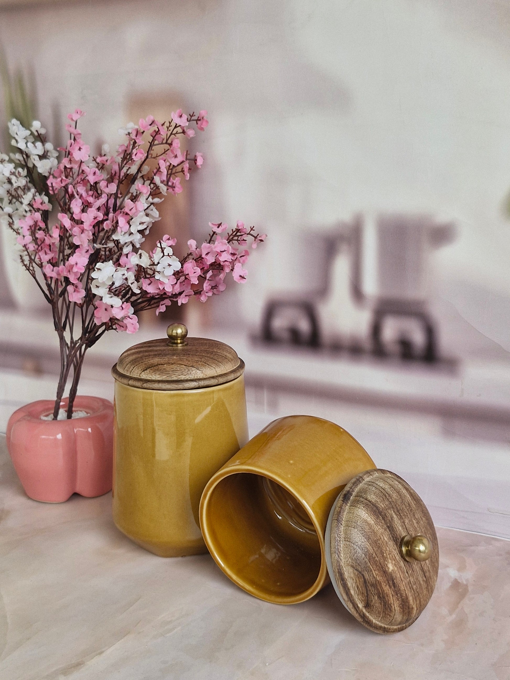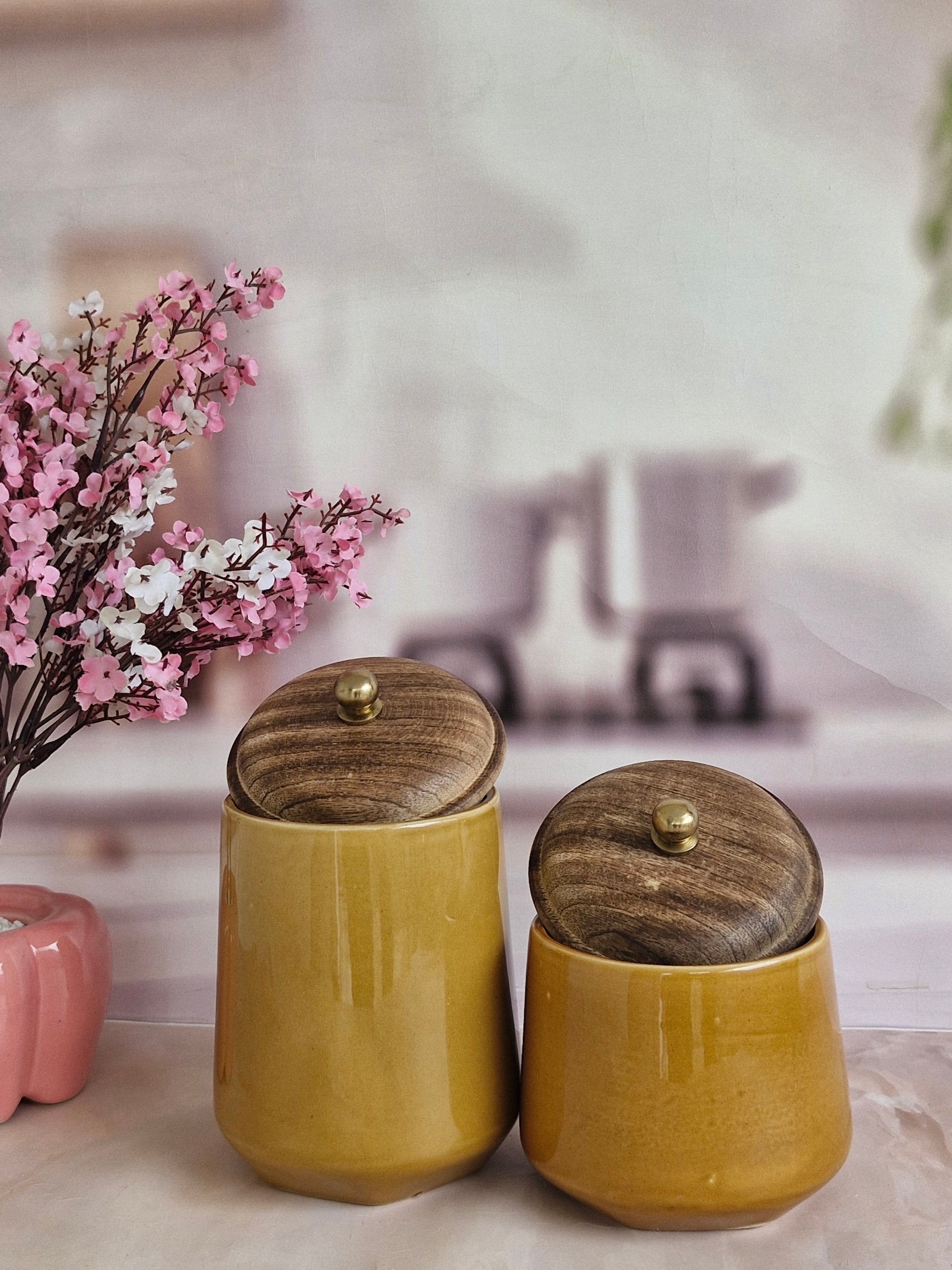 Honey Goldenrod Ceramic Canister Jar with Wooden Lid 1kg and (1/2 kg) airtight jar Spices & Cookies For Spices & Cookies