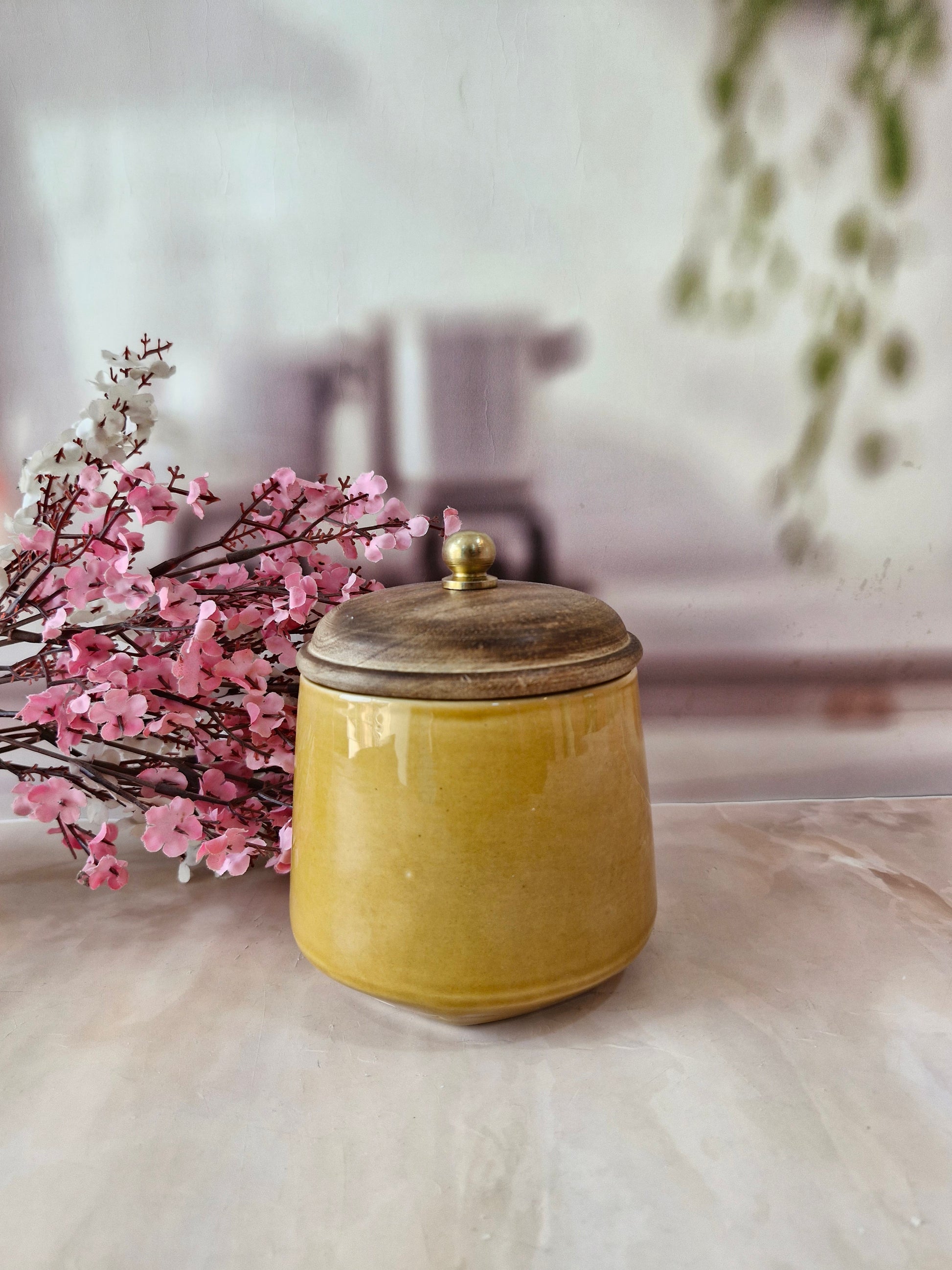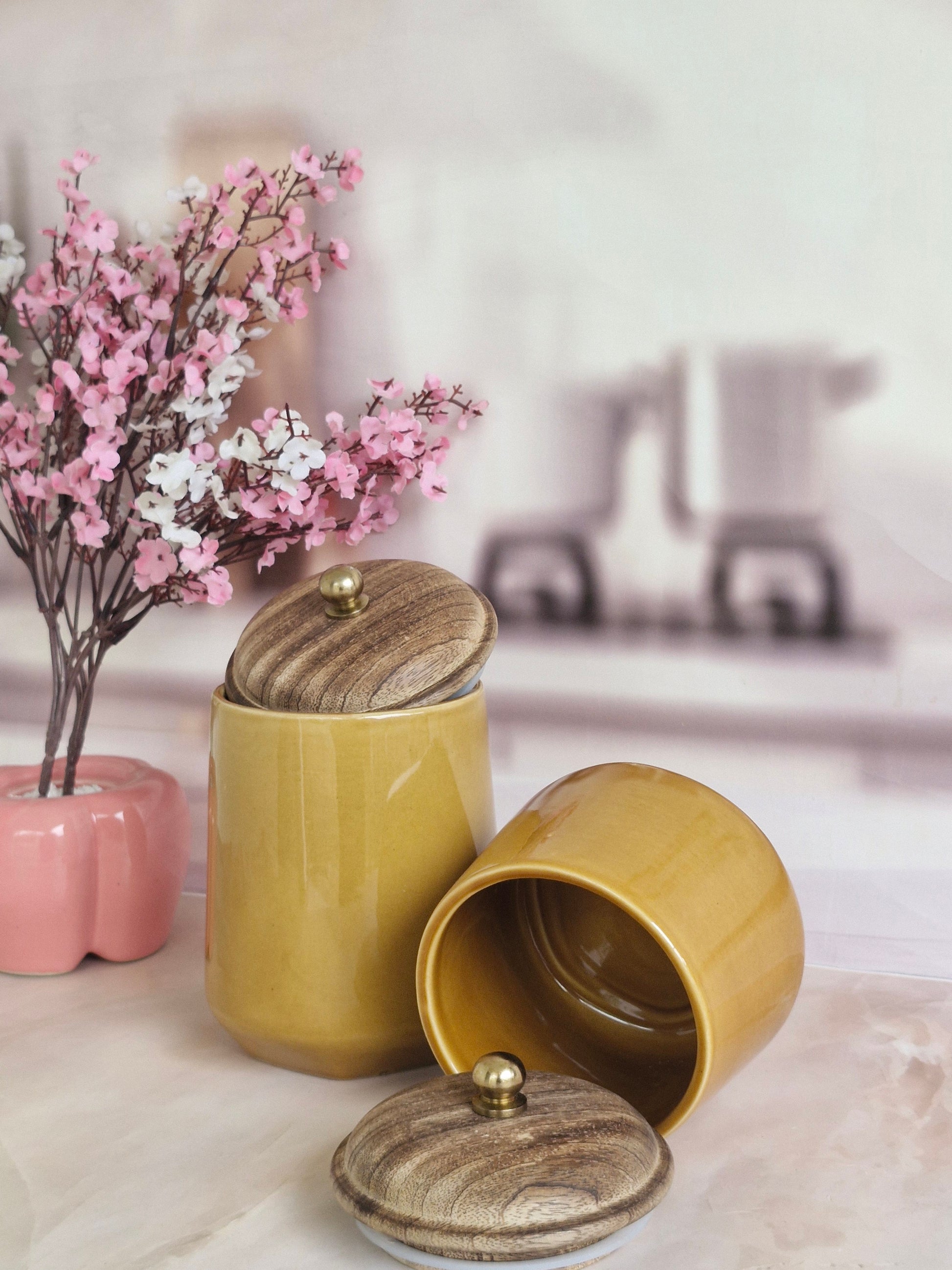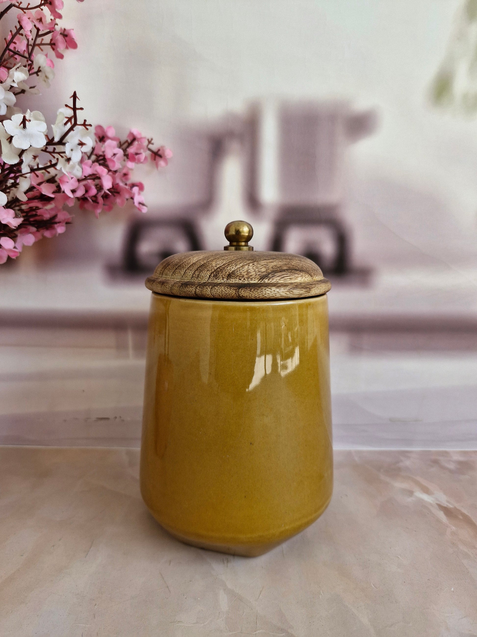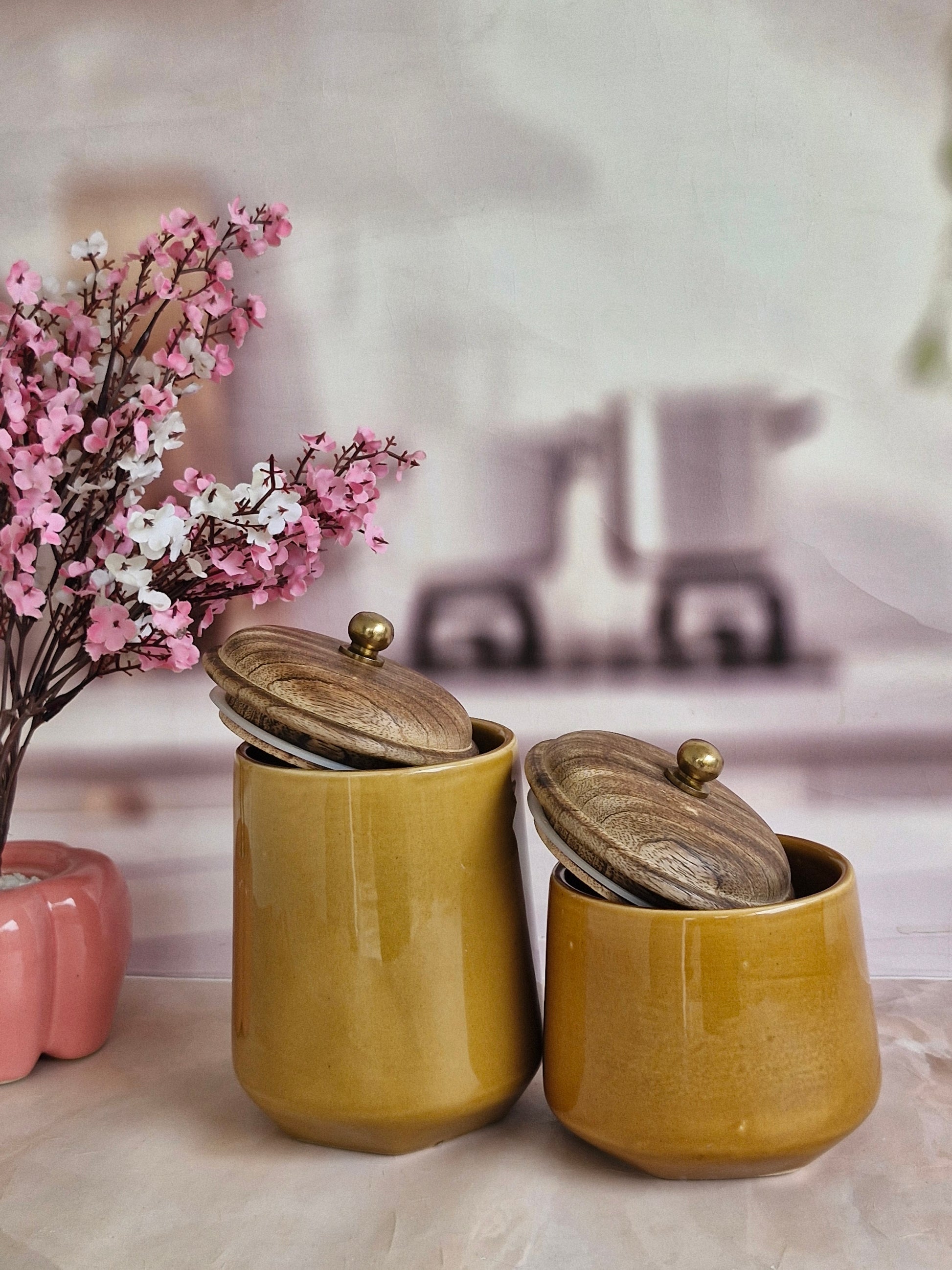 Honey Goldenrod Ceramic Canister Jar with Wooden Lid 1kg and (1/2 kg) airtight jar Spices & Cookies For Spices & Cookies
