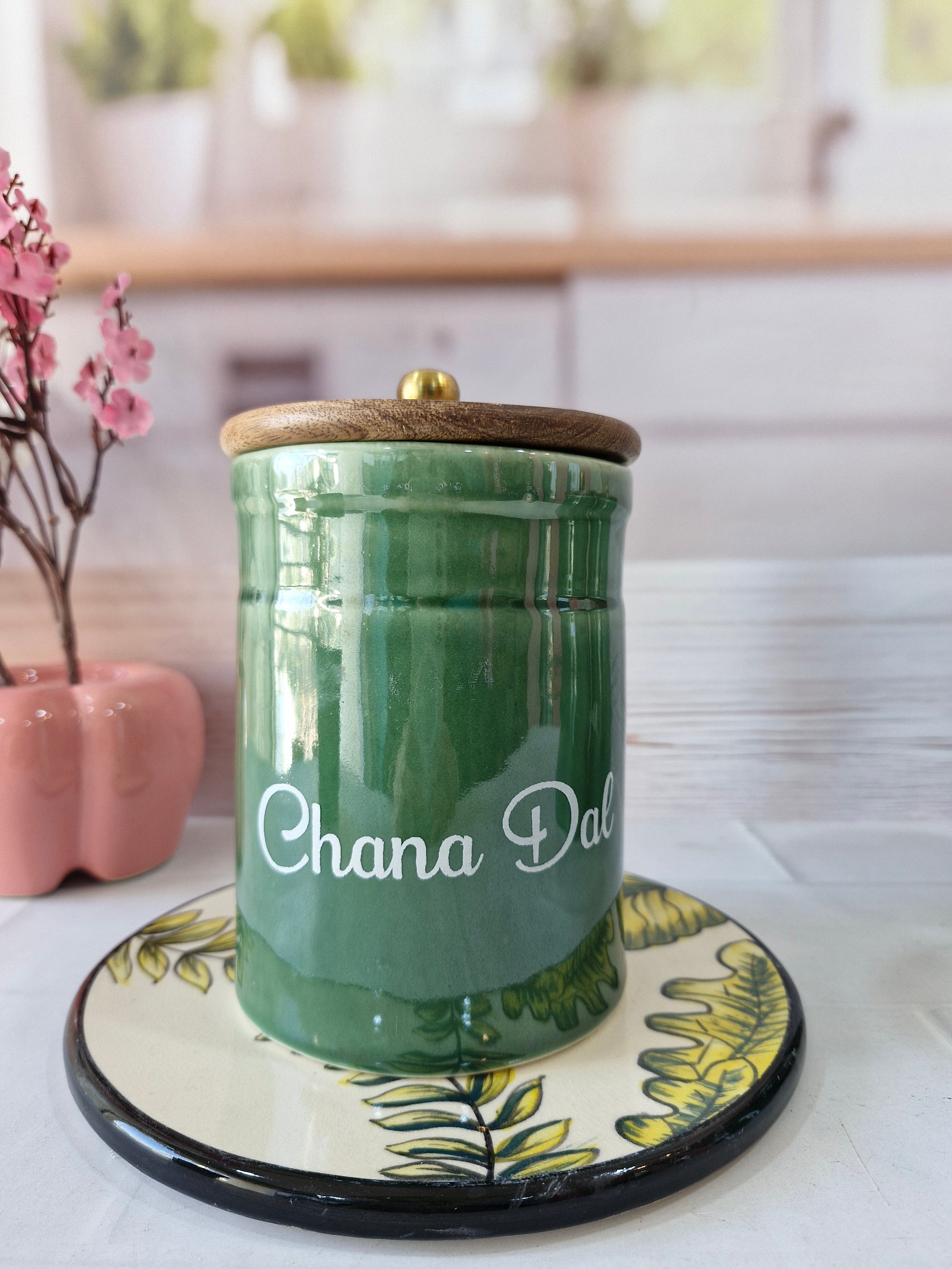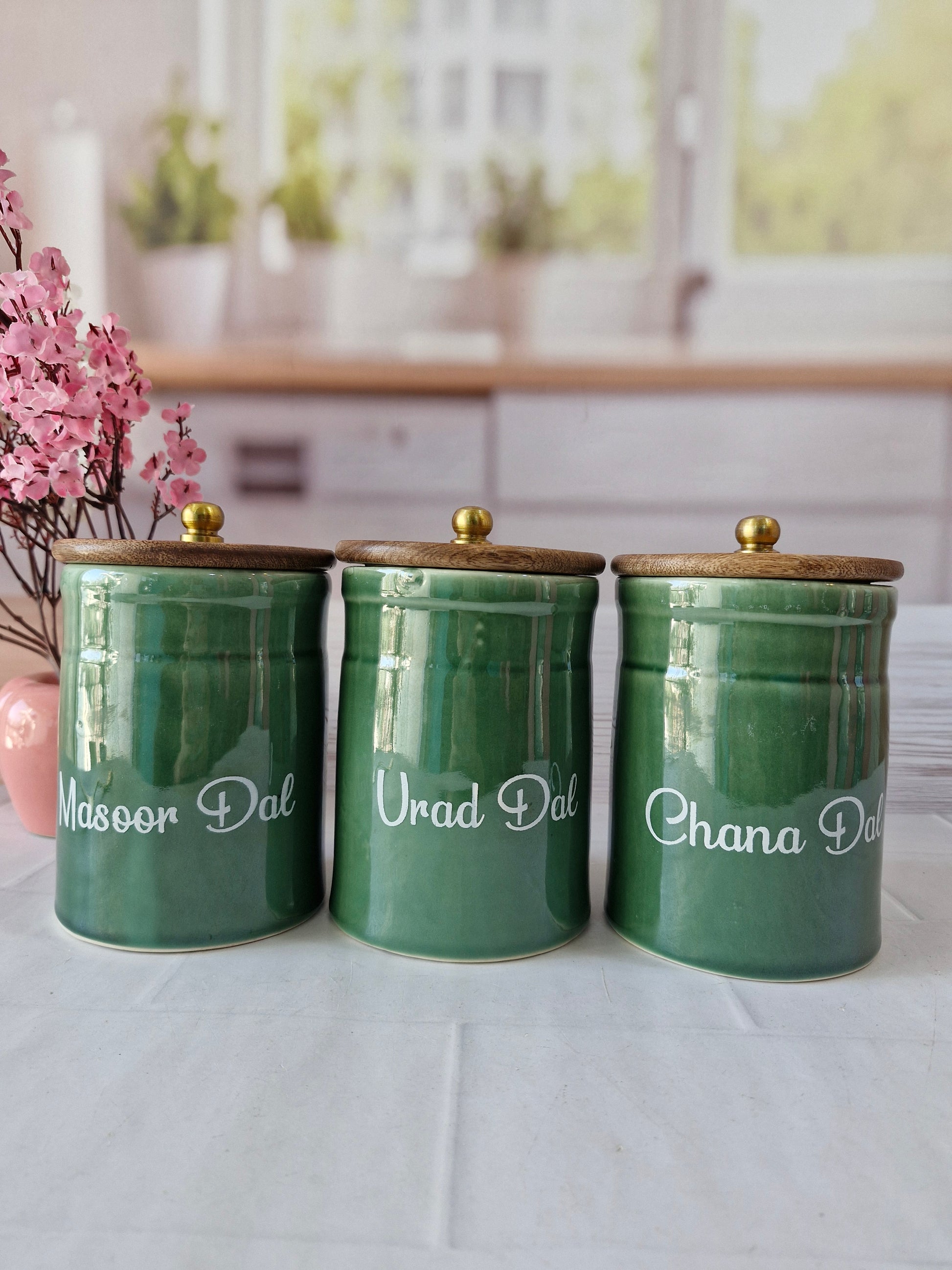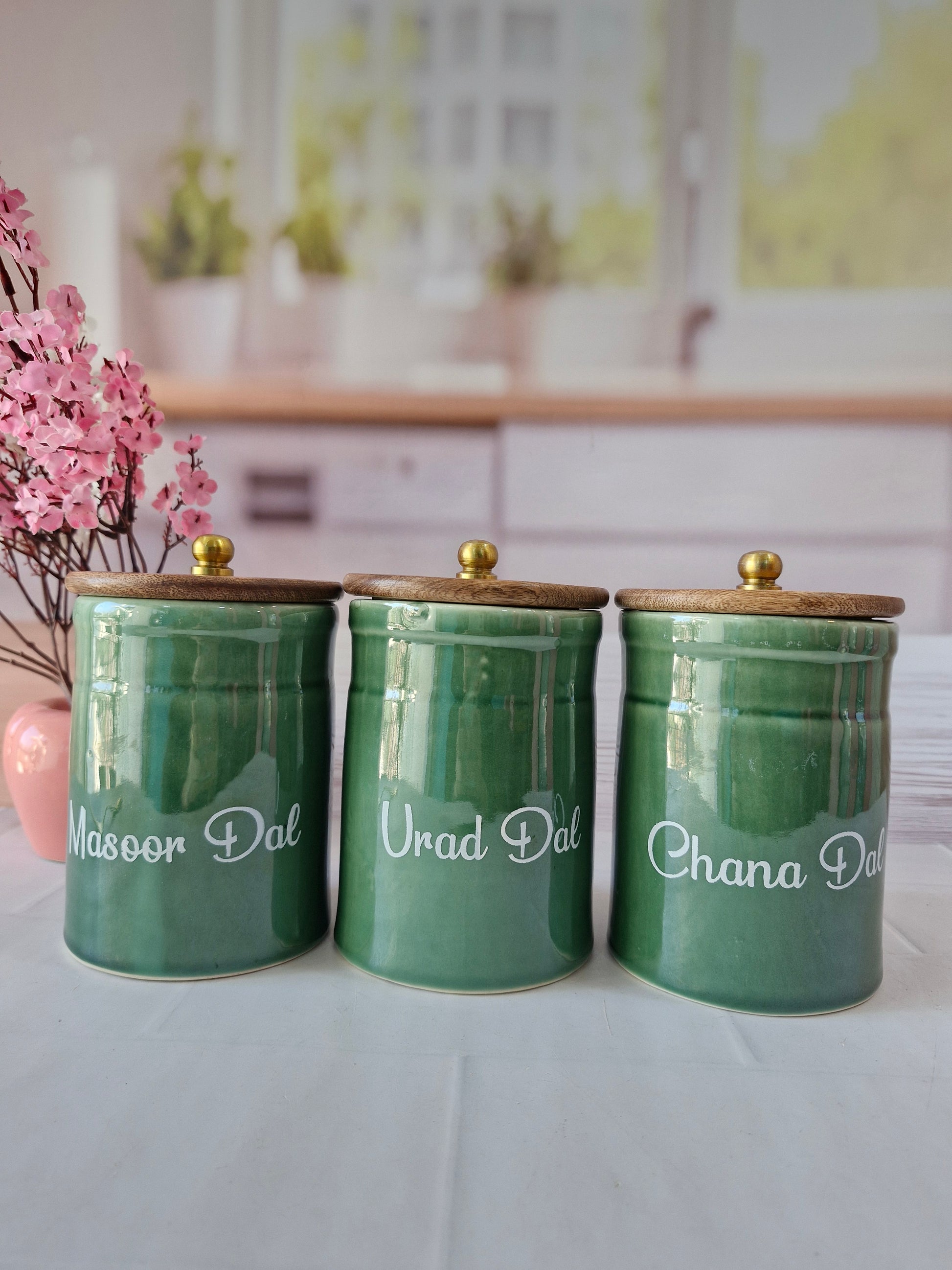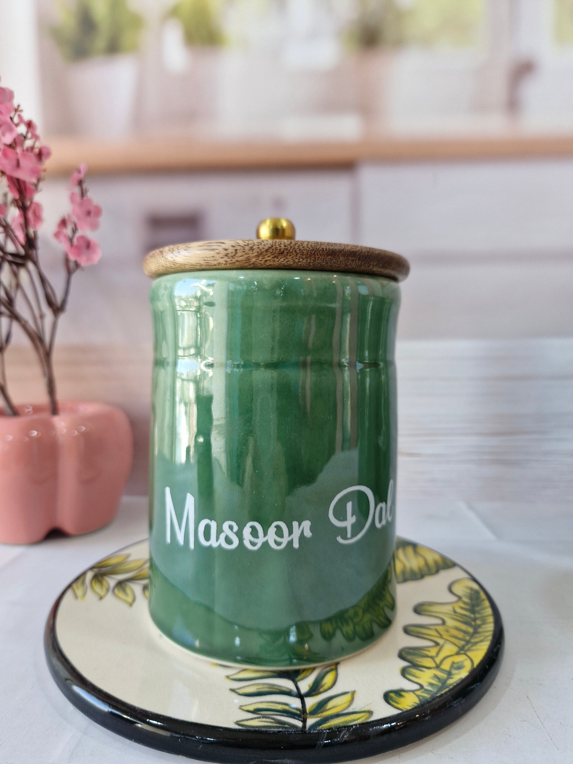 Dals collection Spice Delight Airtight Ceramic Container (1kg) with wooden Lid